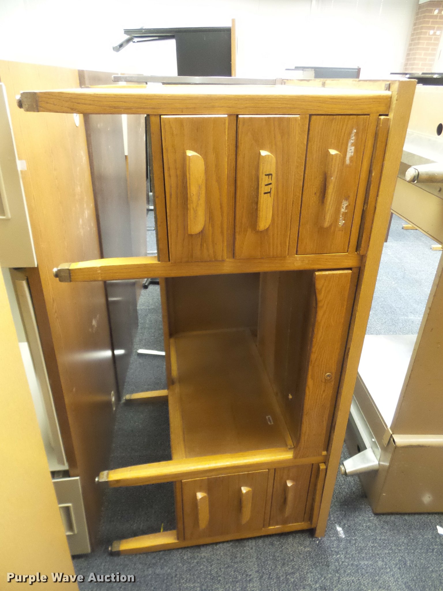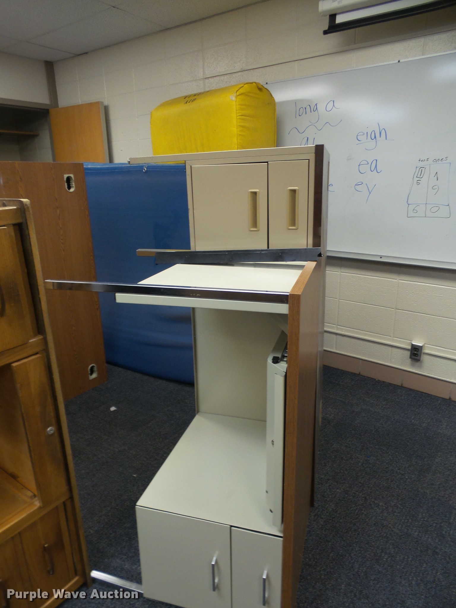 Purple Wave is selling a used Furniture in Kansas. This item is a (49) teachers desks with the following: (12) wood desks, (37) metal desks, Most are 5'W, Unit# 141