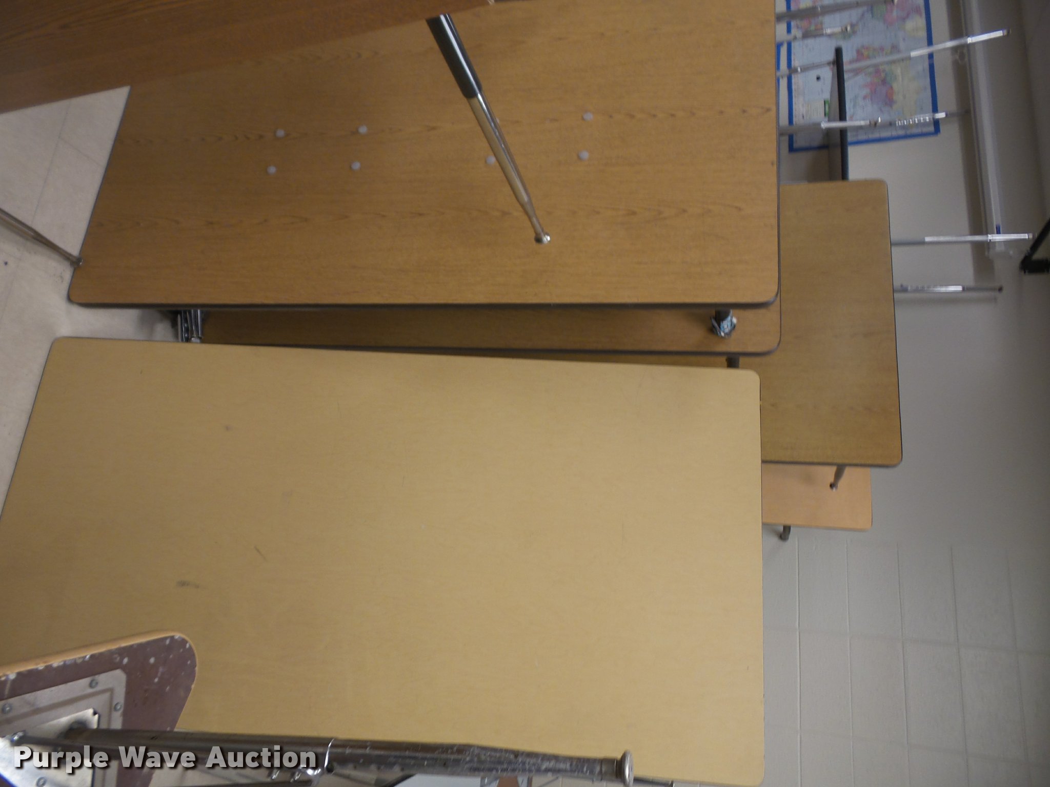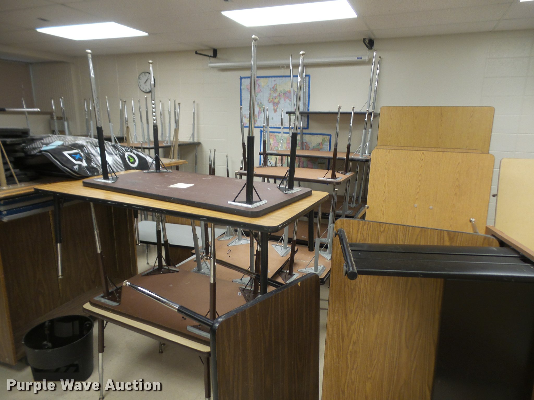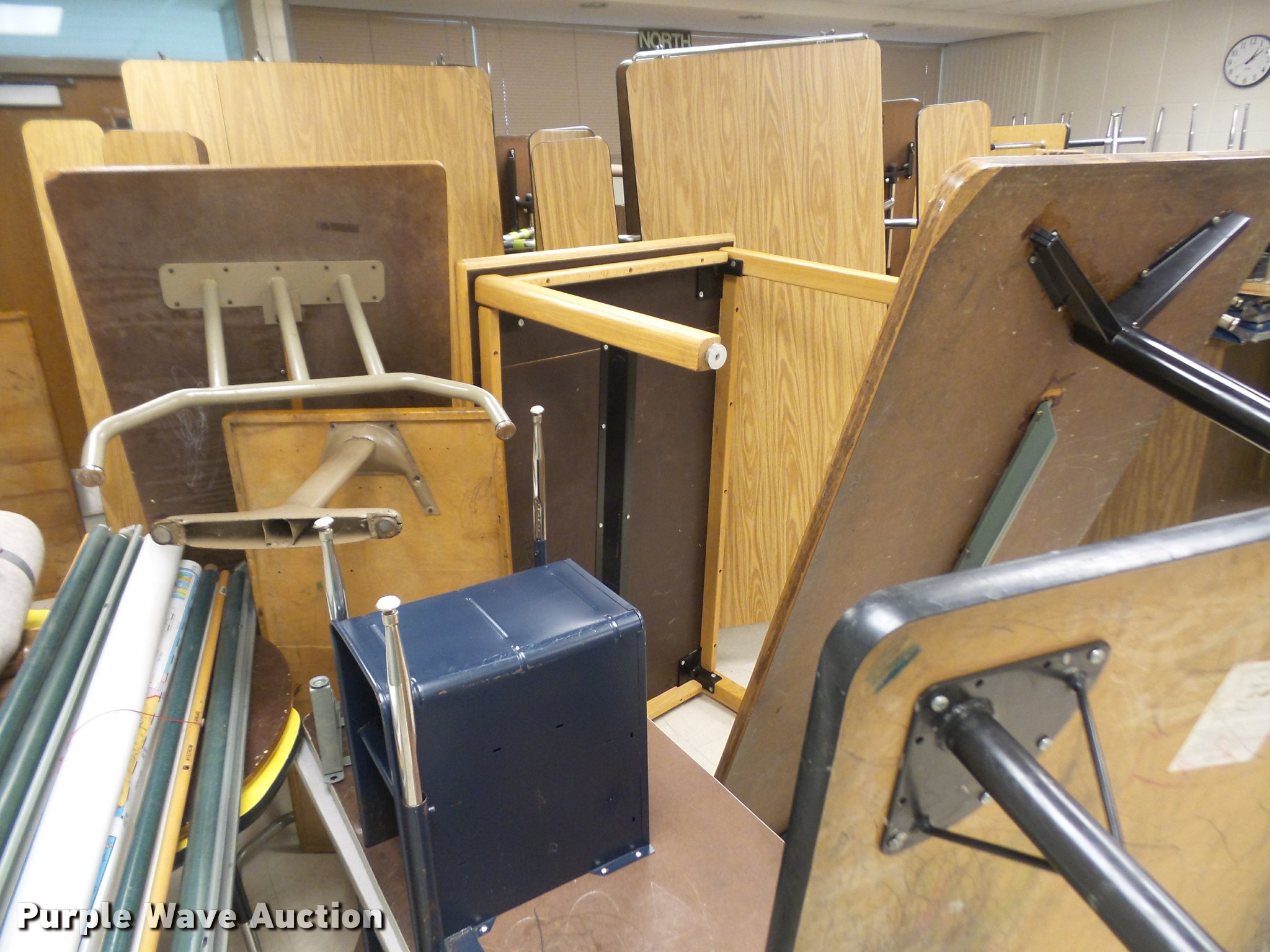 Purple Wave is selling a used Furniture in Kansas. This item is a Furniture with the following: (3) 12' folding lunch tables, (20) 3' tables, (9) 2.5' tables, (4) 6' tables, (14) 4' tables, (5) 5' tables, (2) 4' round tables, Assorted tables, Unit# 138
