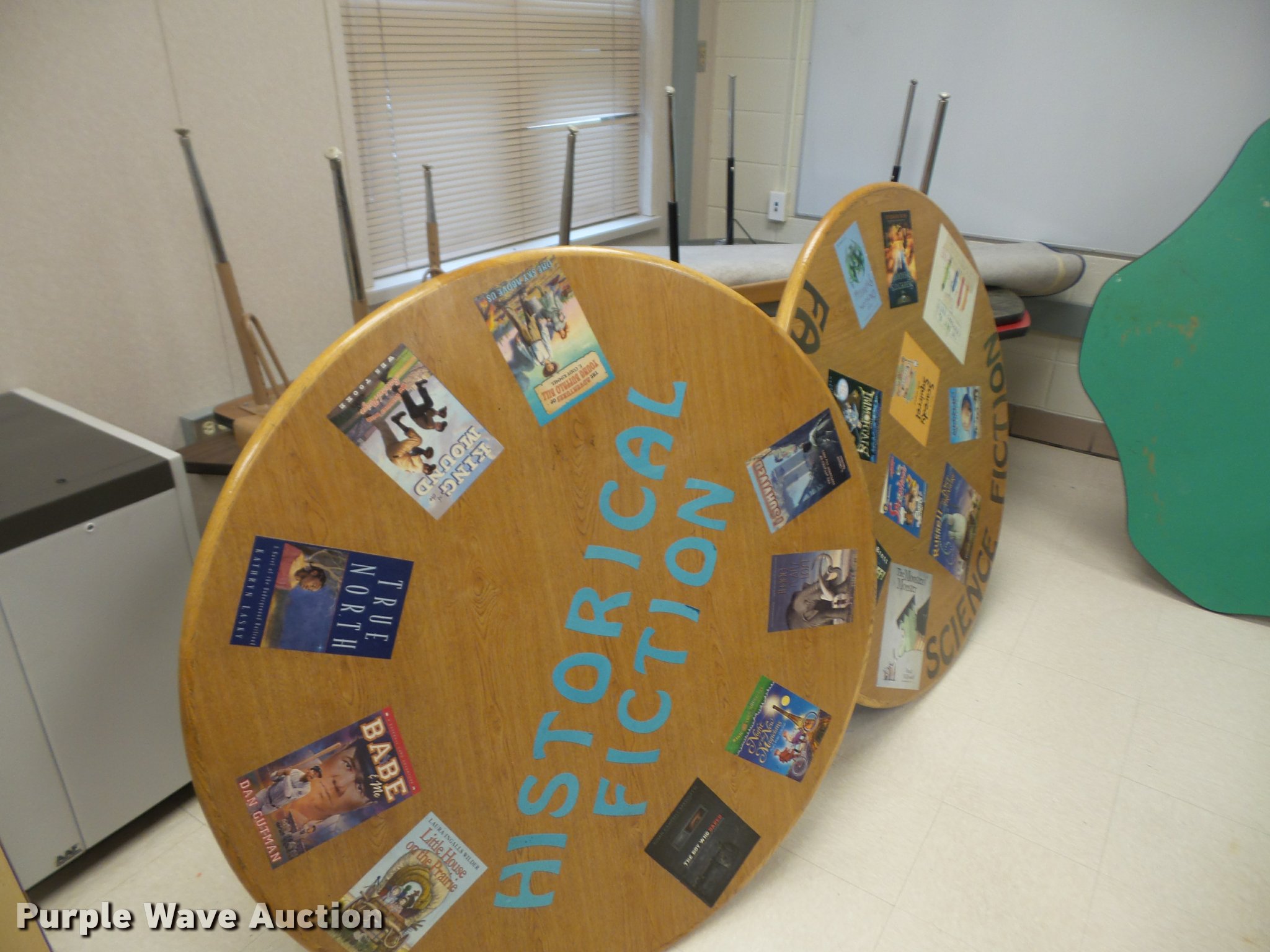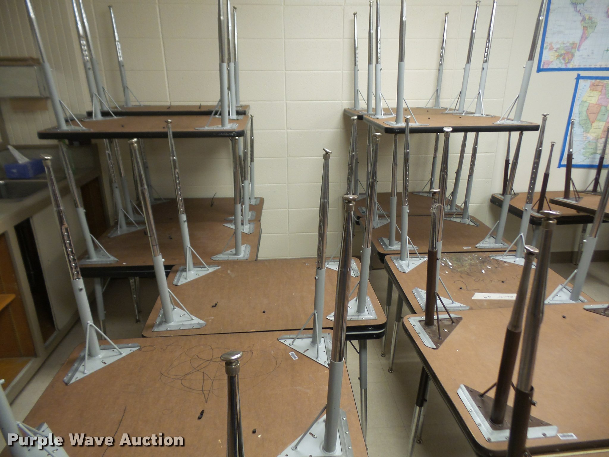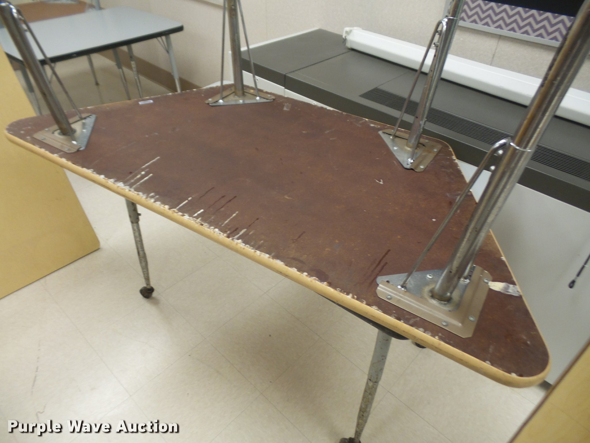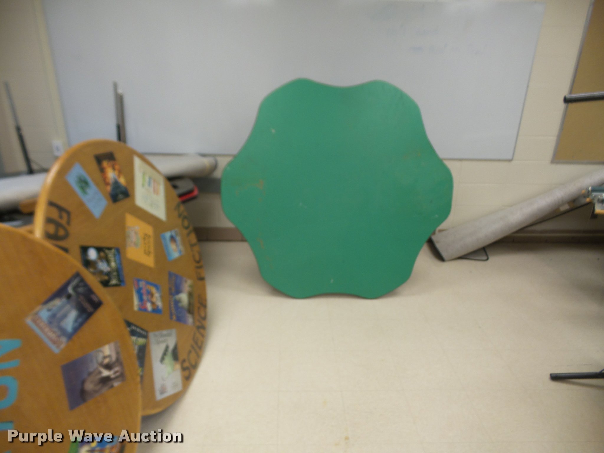 Purple Wave is selling a used Furniture in Kansas. This item is a Furniture with the following: (3) 12' folding lunch tables, (20) 3' tables, (9) 2.5' tables, (4) 6' tables, (14) 4' tables, (5) 5' tables, (2) 4' round tables, Assorted tables, Unit# 138