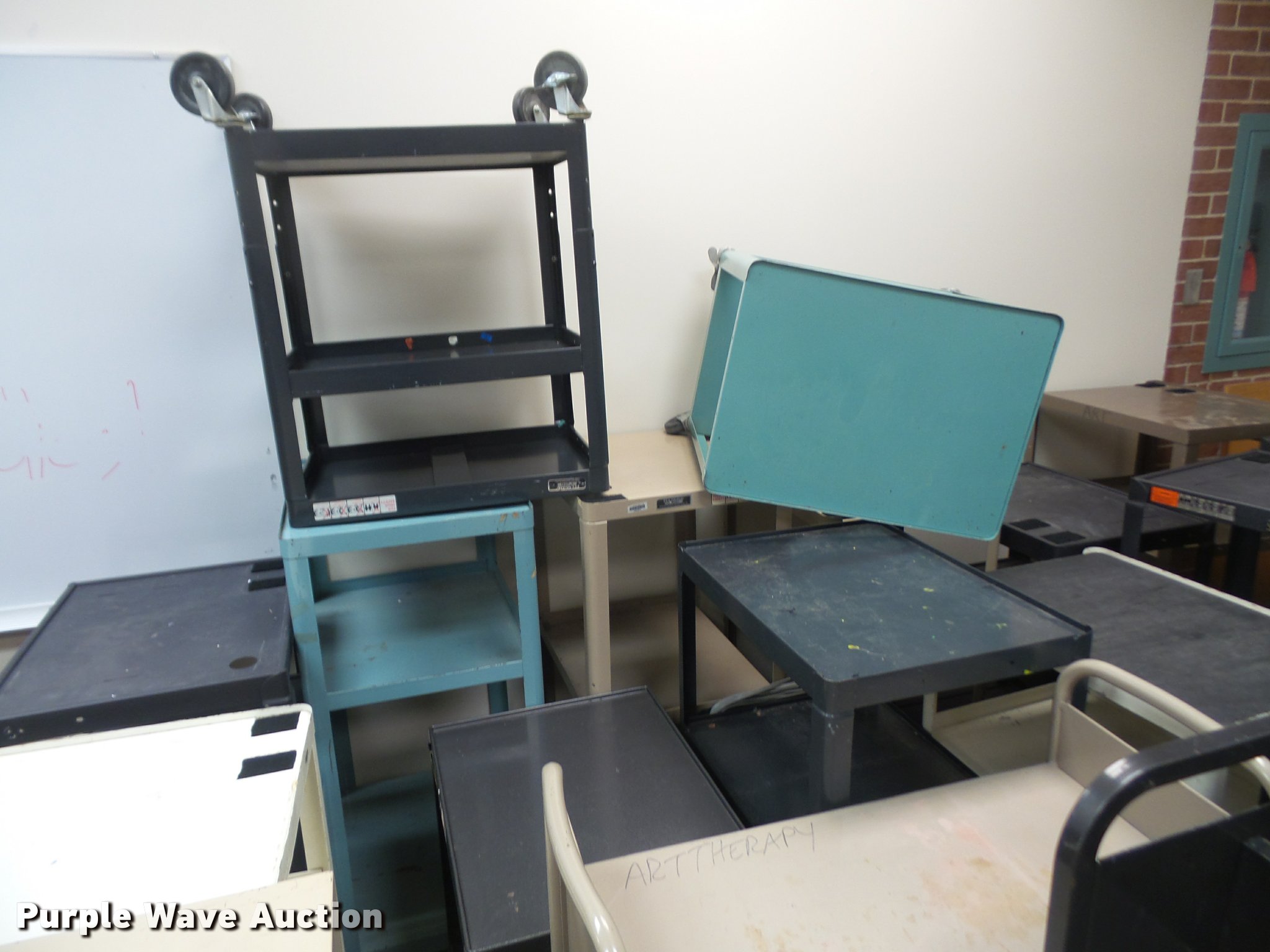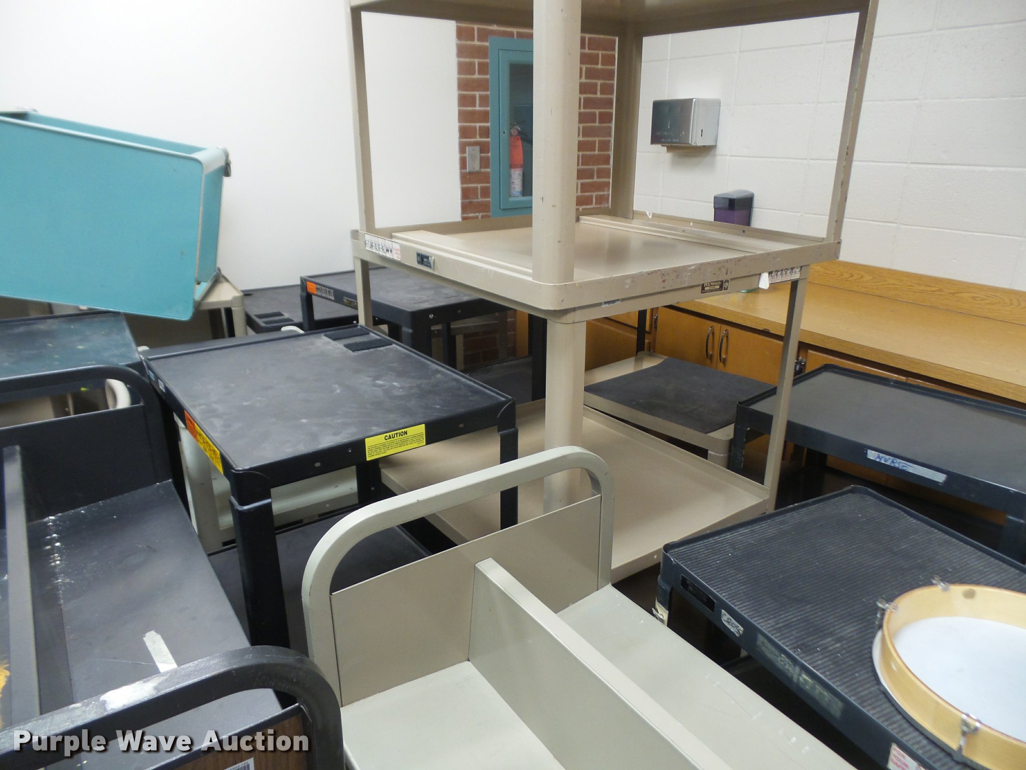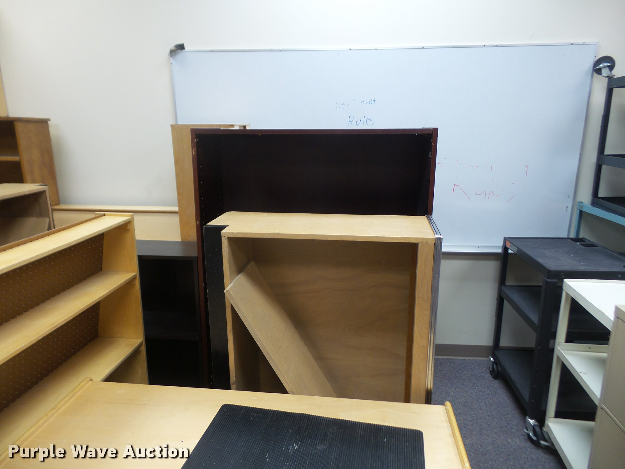 Purple Wave is selling a used Furniture in Kansas. This item is a Furniture with the following: (25) assorted carts, (3) filing cabinets, (32) wood and metal shelves, Various sizes and shapes, Desk, Unit# 135C