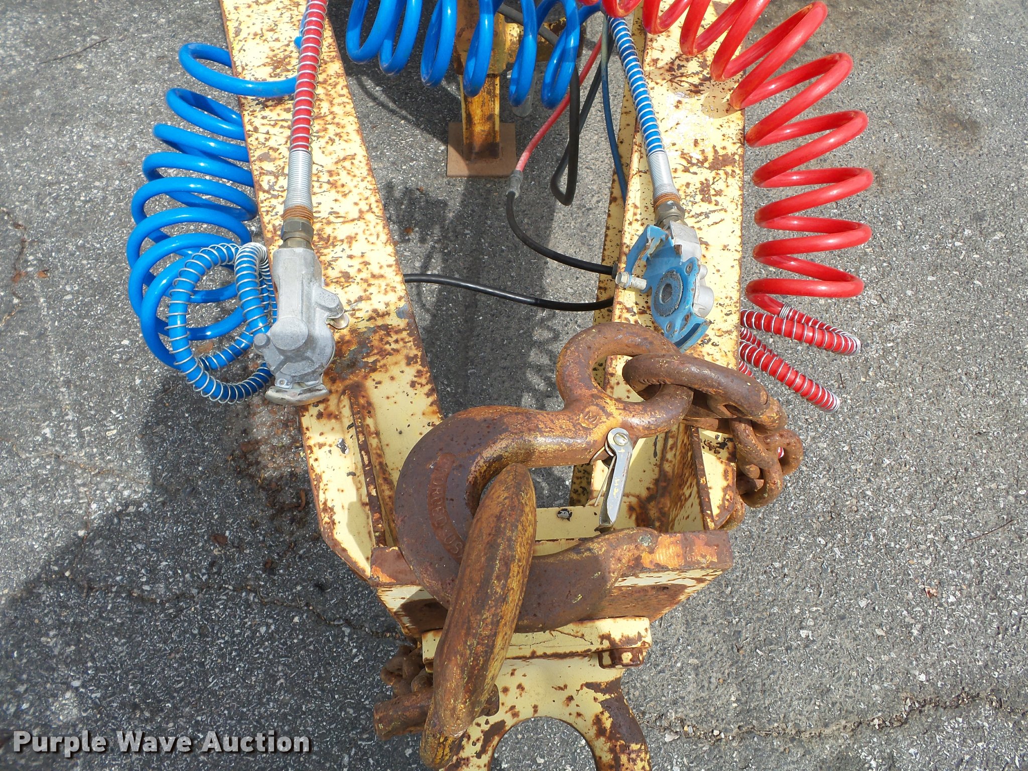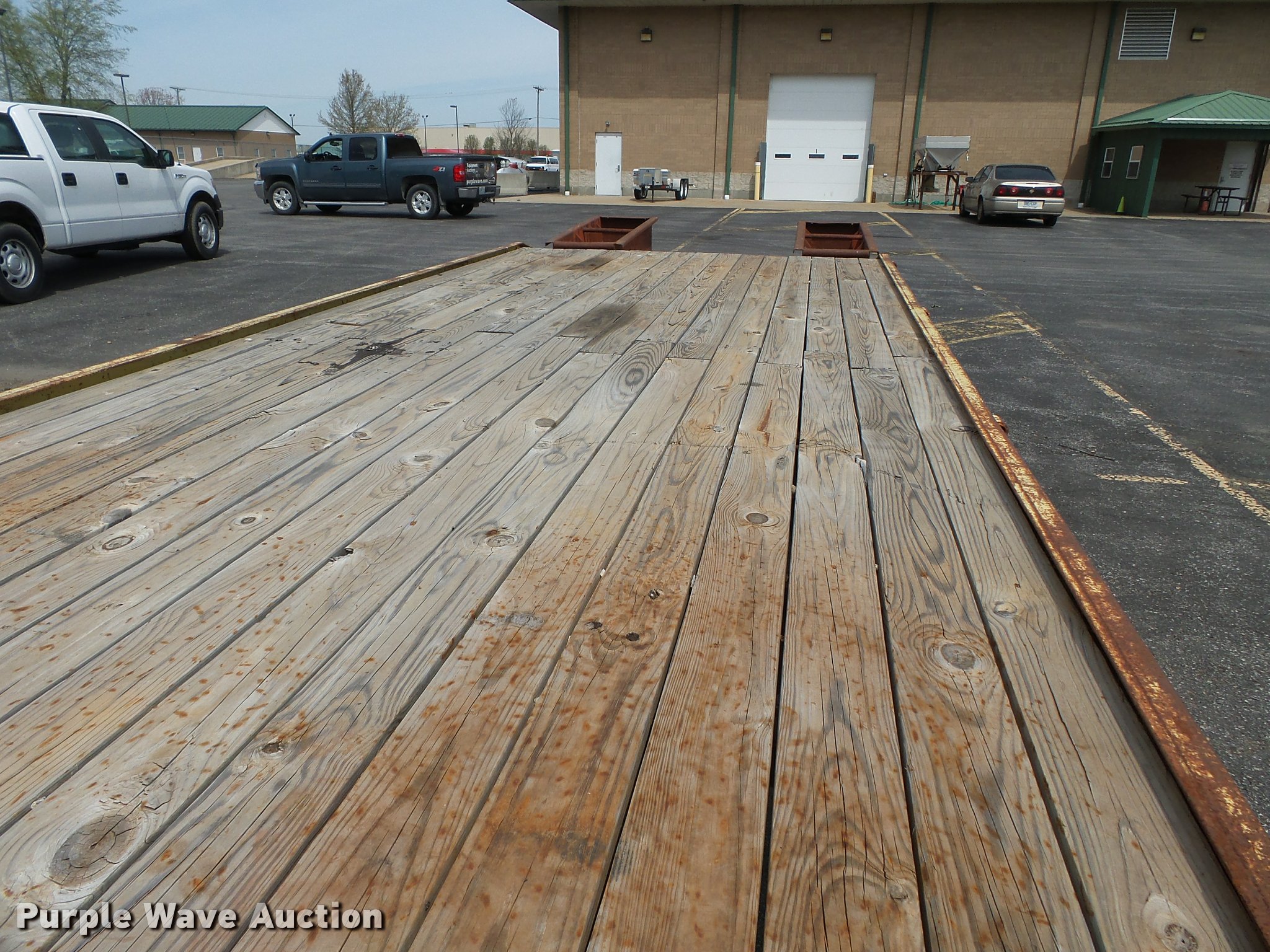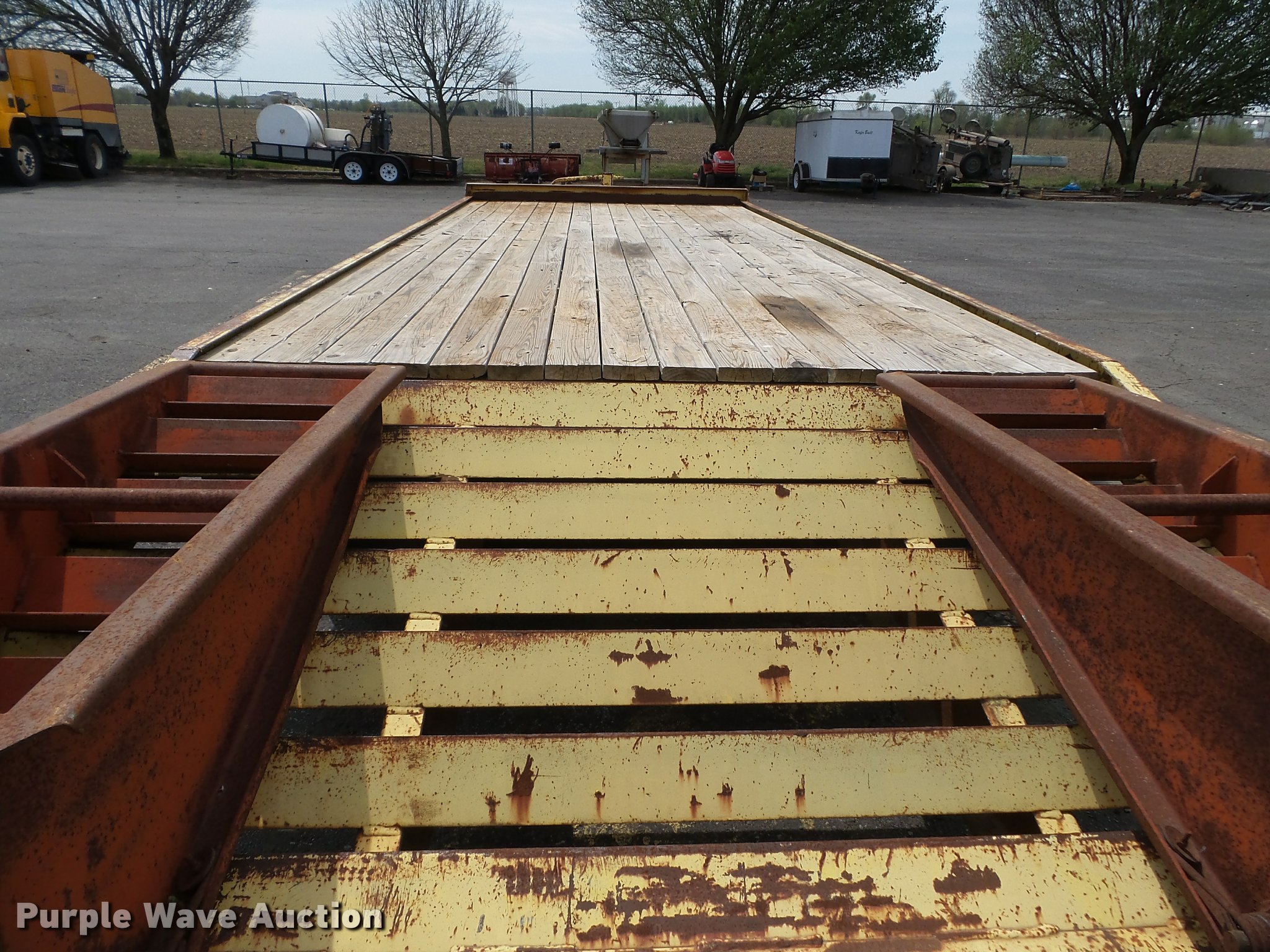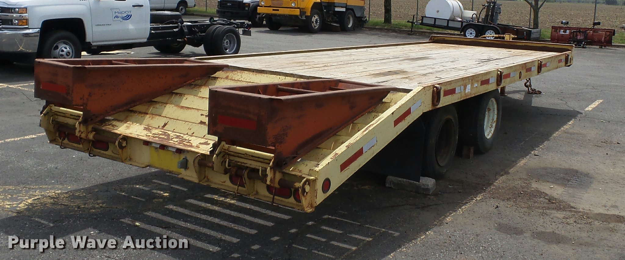 Purple Wave is selling a used Equip. Trailer in Missouri. This item is a 1997 Towmaster 0020 equipment trailer with the following: 29'L x 96"W overall, 19'L main deck, 5'L dovetail, 5'L ramps, 35" floor height, Wood deck, D-ring tie downs, Recessed toolbox, Pintle hitch, Single leg landing gear, Spring suspension, Air brakes, Tandem axle, Steel wheels, Nanco 9.5-16.5 tires, GVWR 20,000 lbs, GAWR 10,000 lbs, Brake issues, Unit# 68402