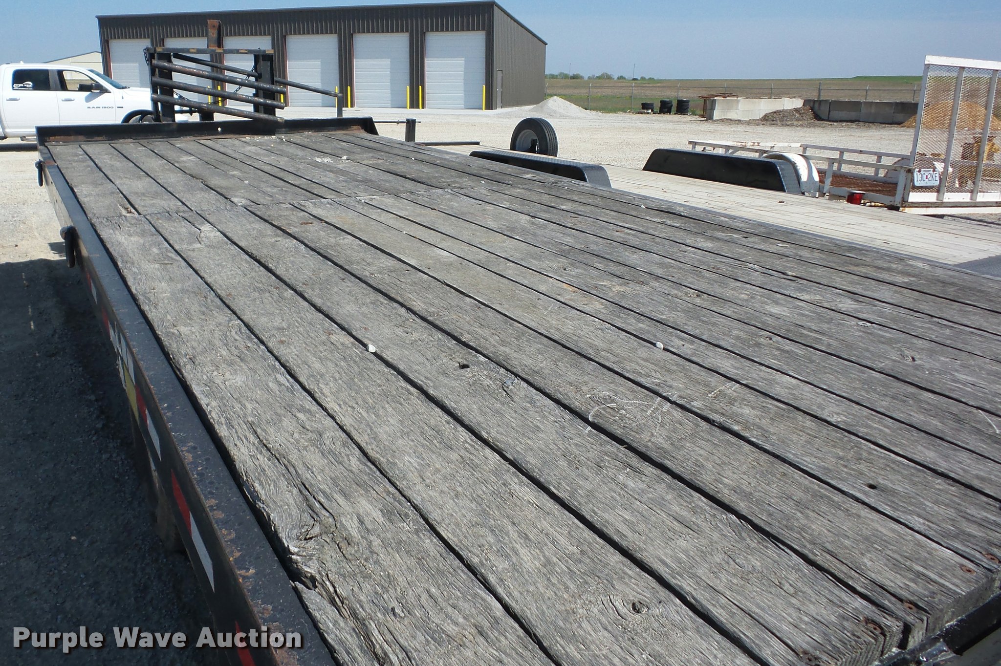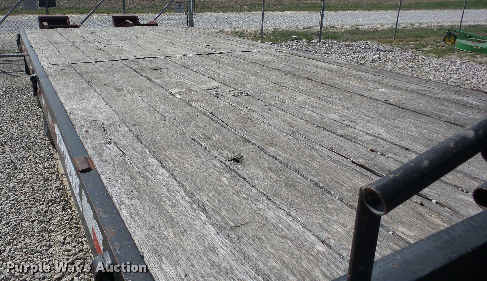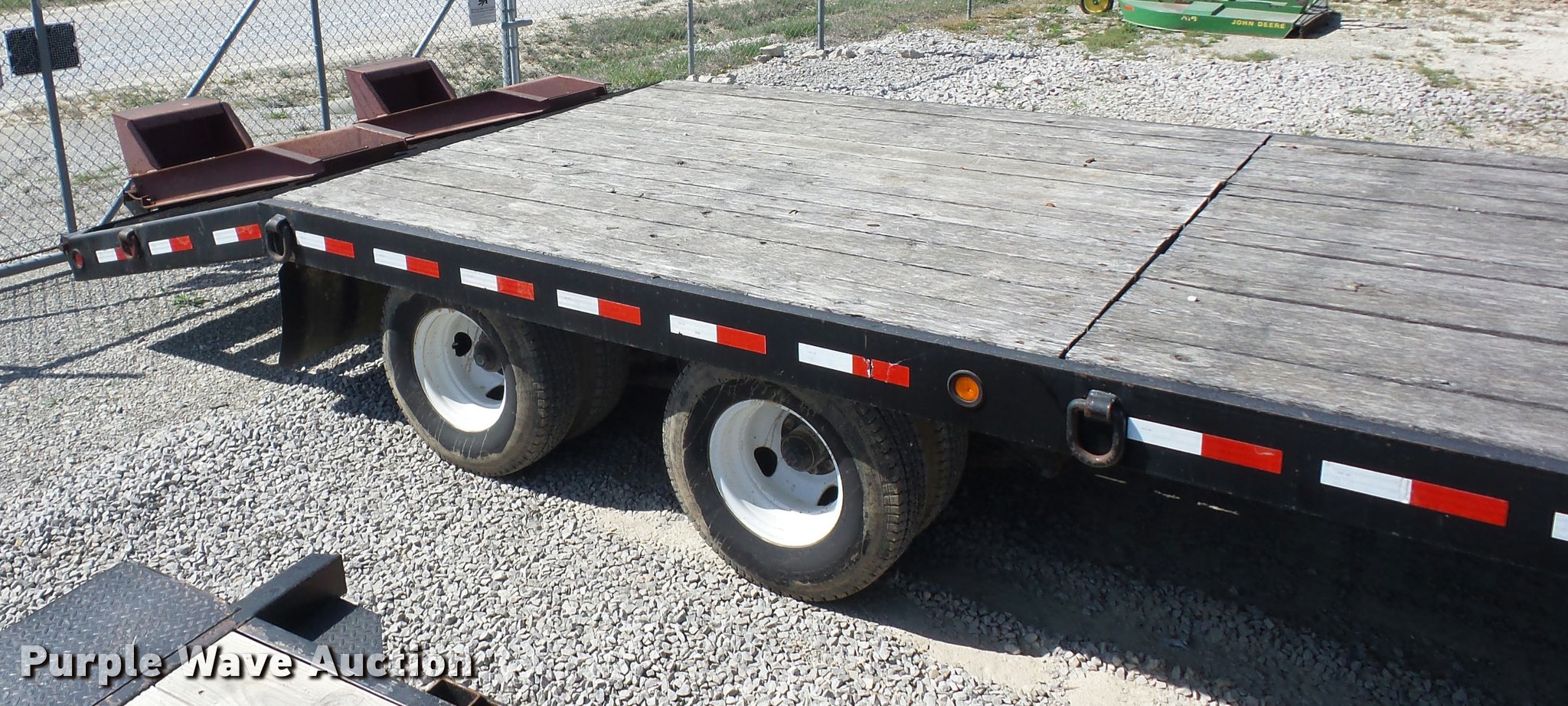 Purple Wave is selling a used Equip. Trailer in Missouri. This item is a 2005 Towmaster T20 equipment trailer with the following: 24'L x 102"W, 5'L dovetail, Ramps, Wood deck, D-ring tie downs, Single leg landing gear, Pintle hitch, Tandem axle, Spring suspension, Air brakes, Steel wheels