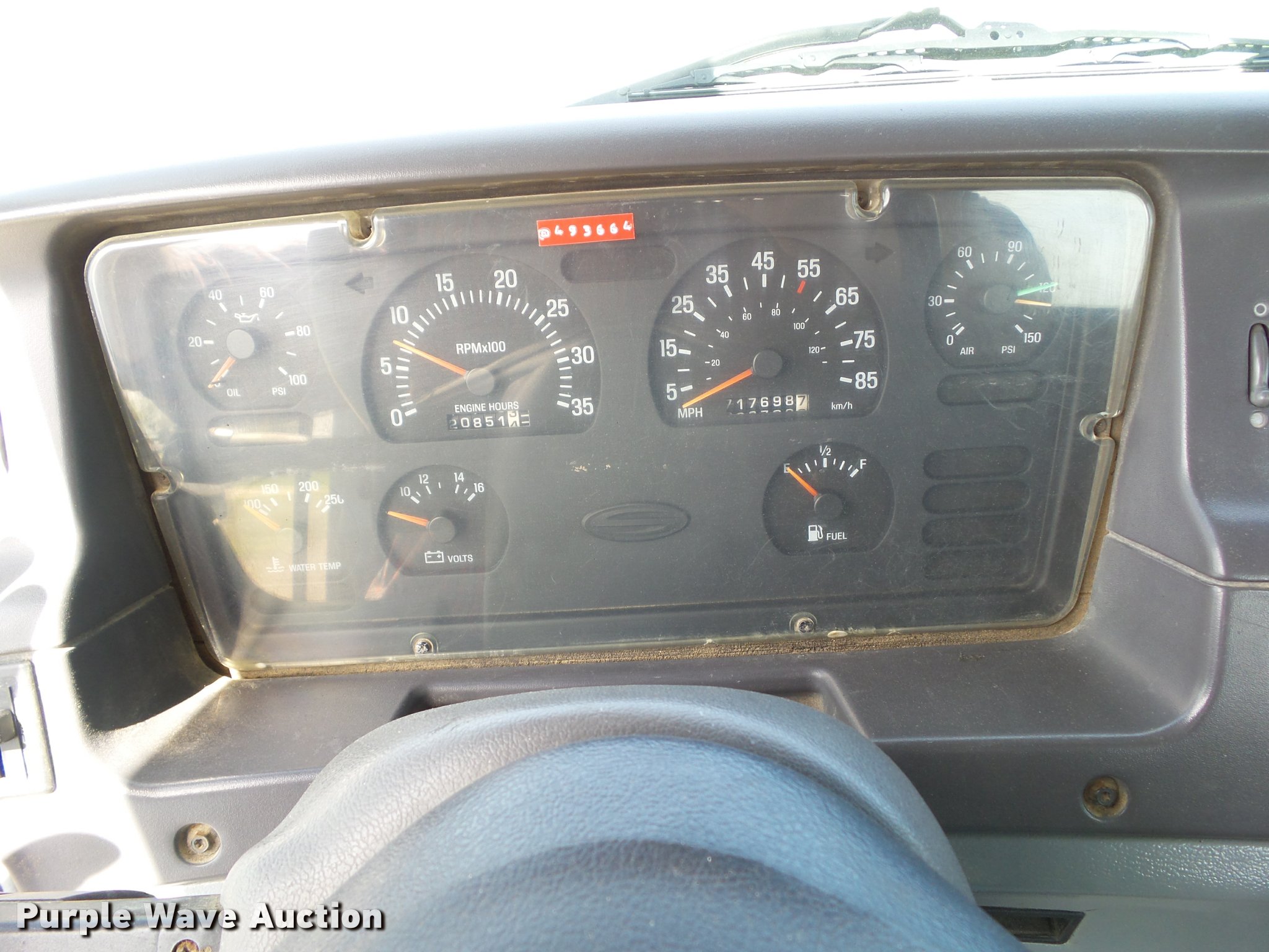 Purple Wave is selling a used Truck Tractor in Iowa. This item is a 2000 Sterling AT9500 semi truck with the following: 717,698 miles on odometer, 20,851 hours on meter, Cummins M11 10.8L L6 turbo diesel engine, Serial 34969836, Eaton Fuller 10 speed manual transmission, Tandem axle, Inter-axle differential lock, AC and heat, Tilt, Telescoping steering wheel, Cruise, AM/FM, Heated mirrors, Air suspension seat, Air ride cab, Backup alarm, Block heater, Exterior visor, Sliding fifth wheel plate, Single exhaust stack, Dual fuel tanks, Quarter fenders, Mud flaps, Aluminum outer wheels, Steel inner wheels, Air suspension, Air brakes, 11R22.5 tires, GVWR 52,000 lbs, FAWR 12,000 lbs, IAWR 20,000 lbs, RAWR 20,000 lbs