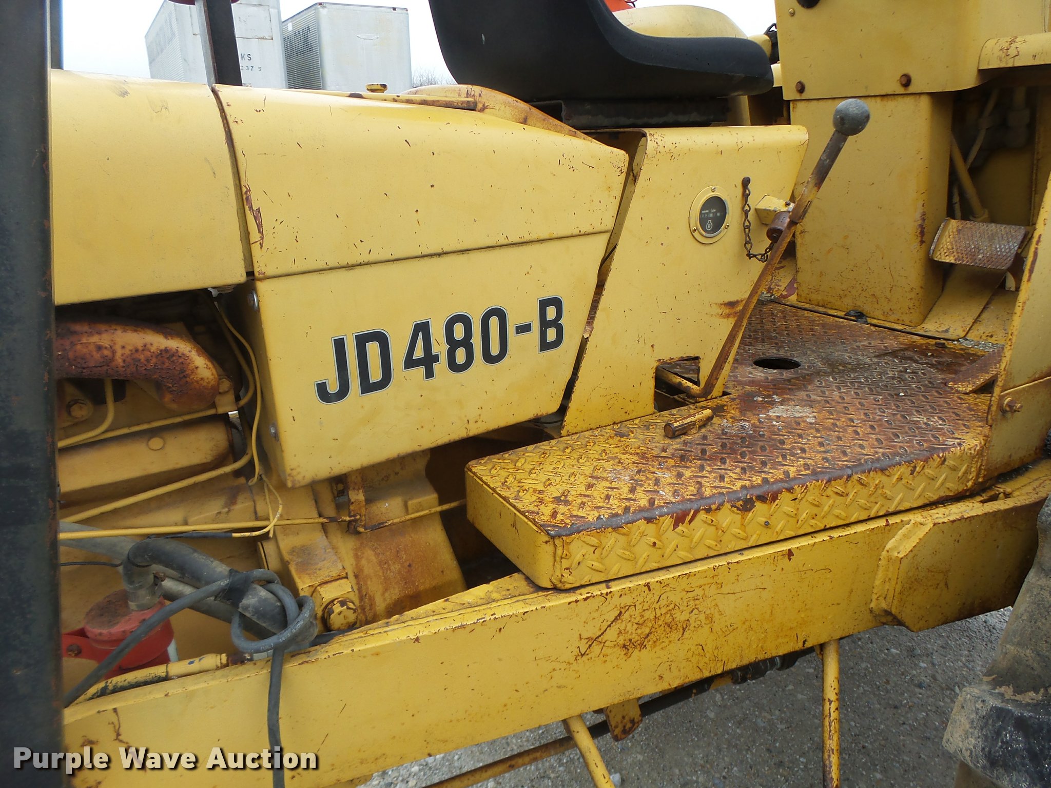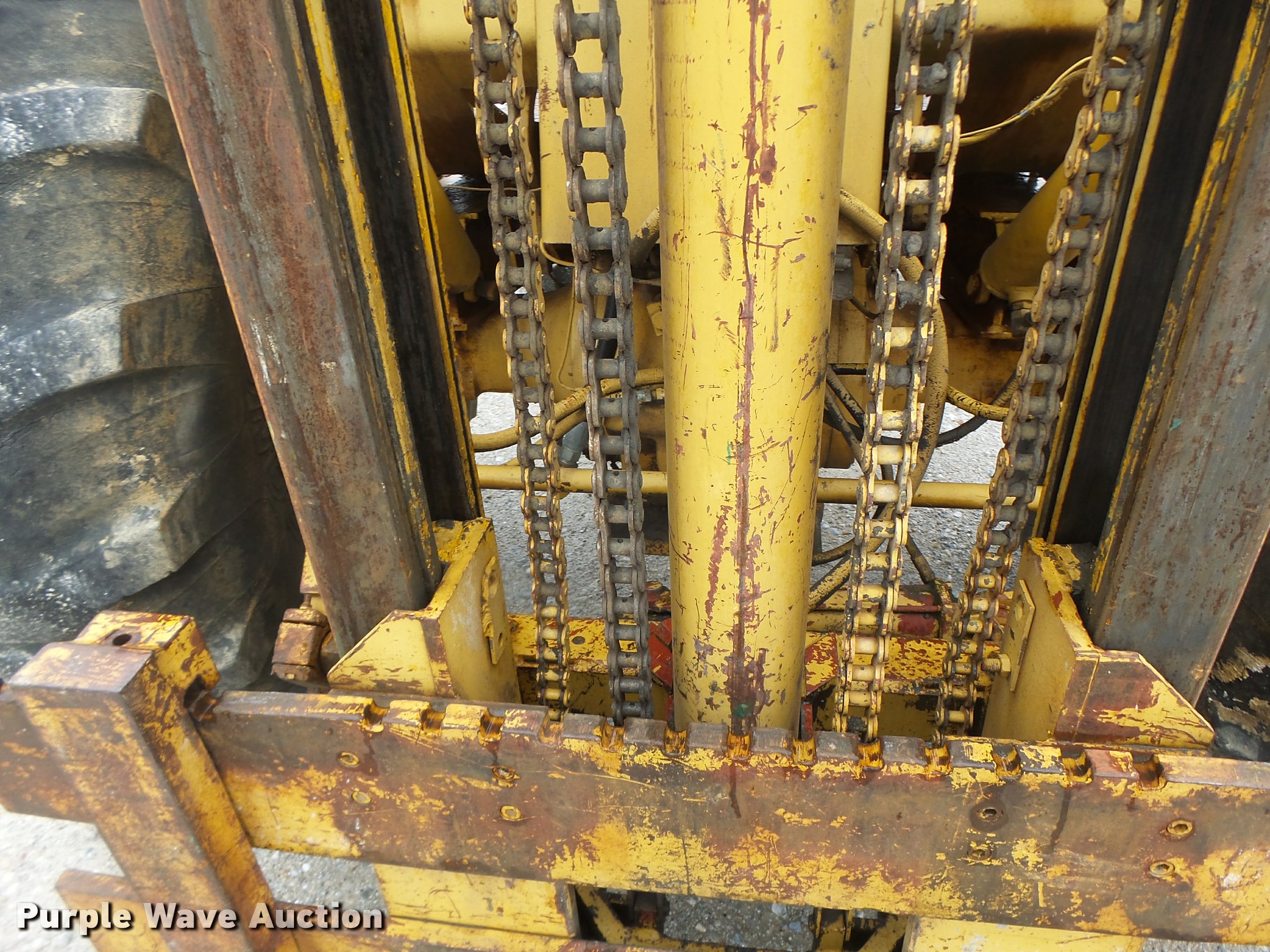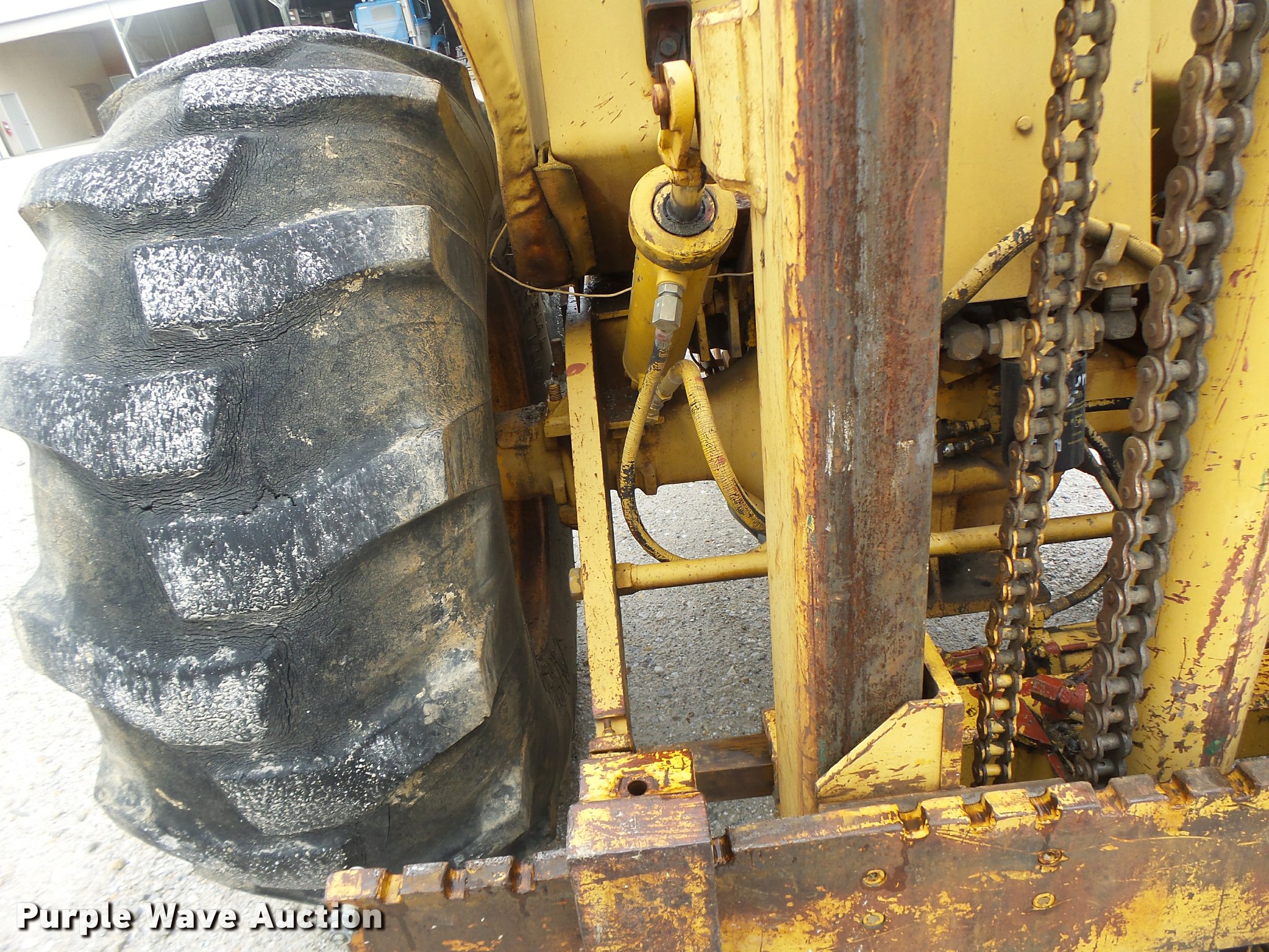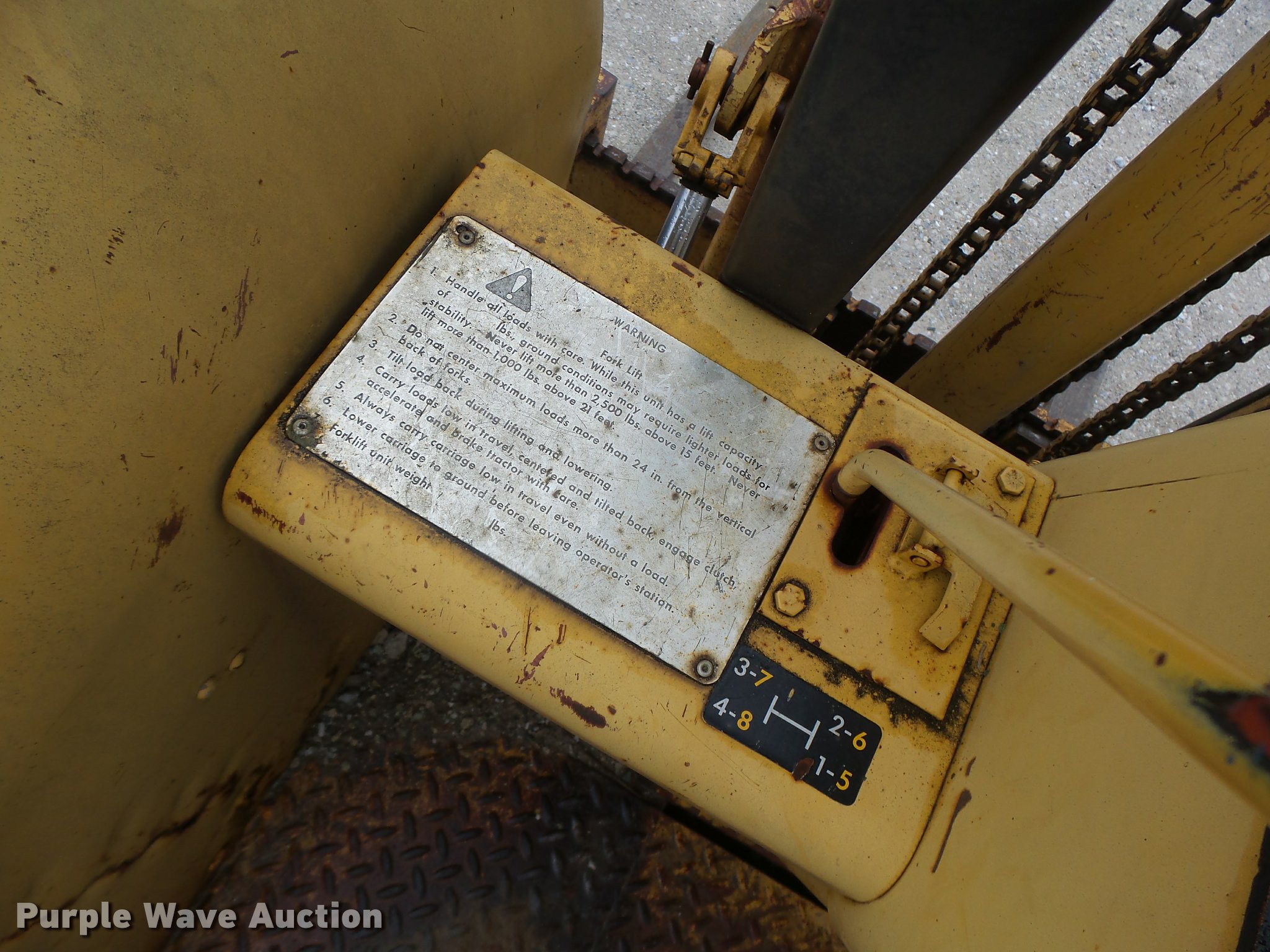 Purple Wave is selling a used Strt. Mast Rough Terr. Forklift in Missouri. This item is a John Deere 480-B forklift with the following: 4,092 hours on meter, John Deere four cylinder diesel engine, Manual transmission, 8F-8R gears, Canopy, 5,000 lbs maximum lift capacity, 21' maximum lift height, 48"L forks, Side shift, Counter weights, 19.5L-24 tires, 11L-15 tires, Serial 347155T