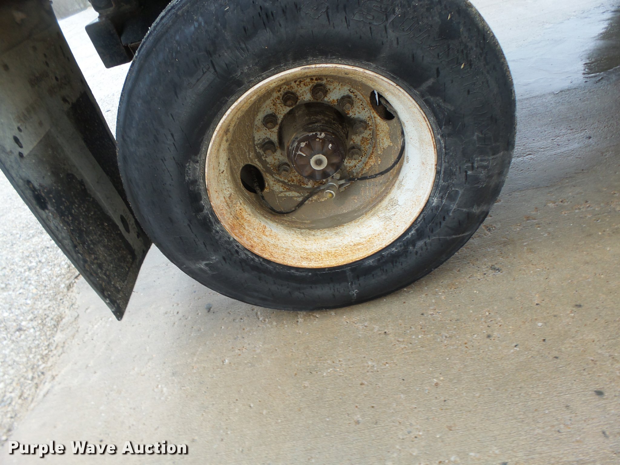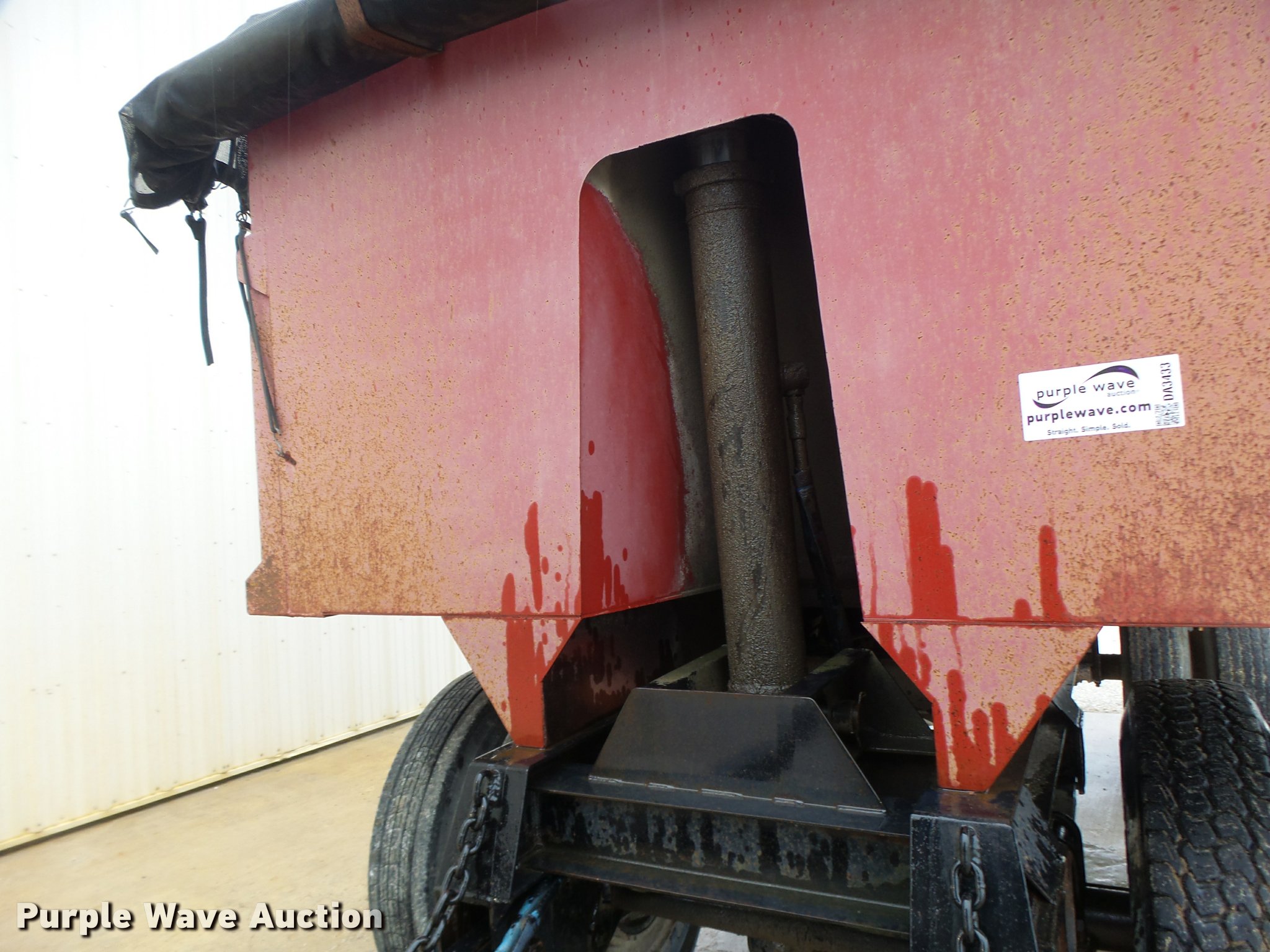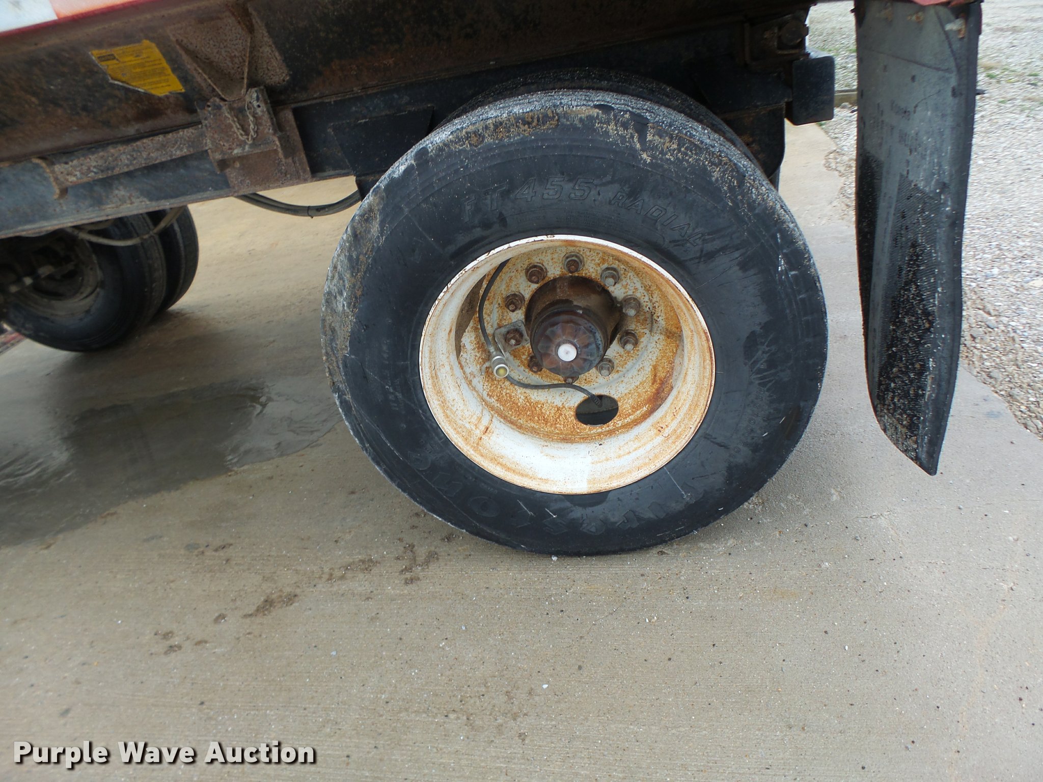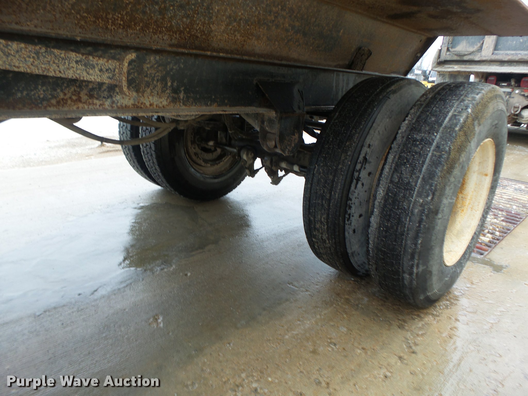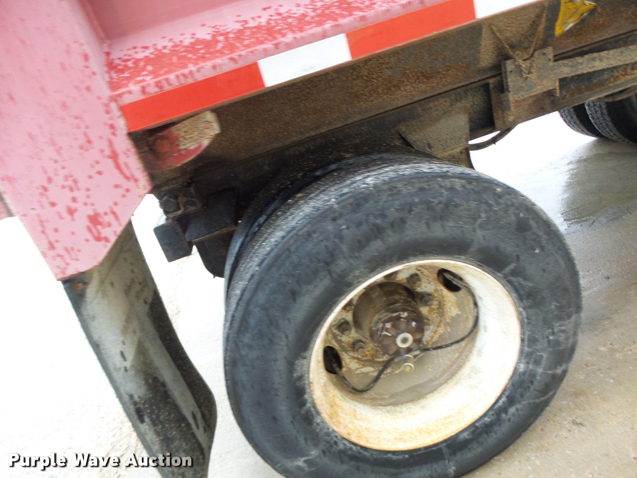 Purple Wave is selling a used Dump Trailer in Missouri. This item is a 1998 Wheeler end dump trailer with the following: 14'L x 8'W steel dump bed, 12" side boards, Single ram hoist, Manual tarp, Pintle hitch, Tandem axle, Spring suspension, Air brakes, Steel wheels, 11R22.5 tires
