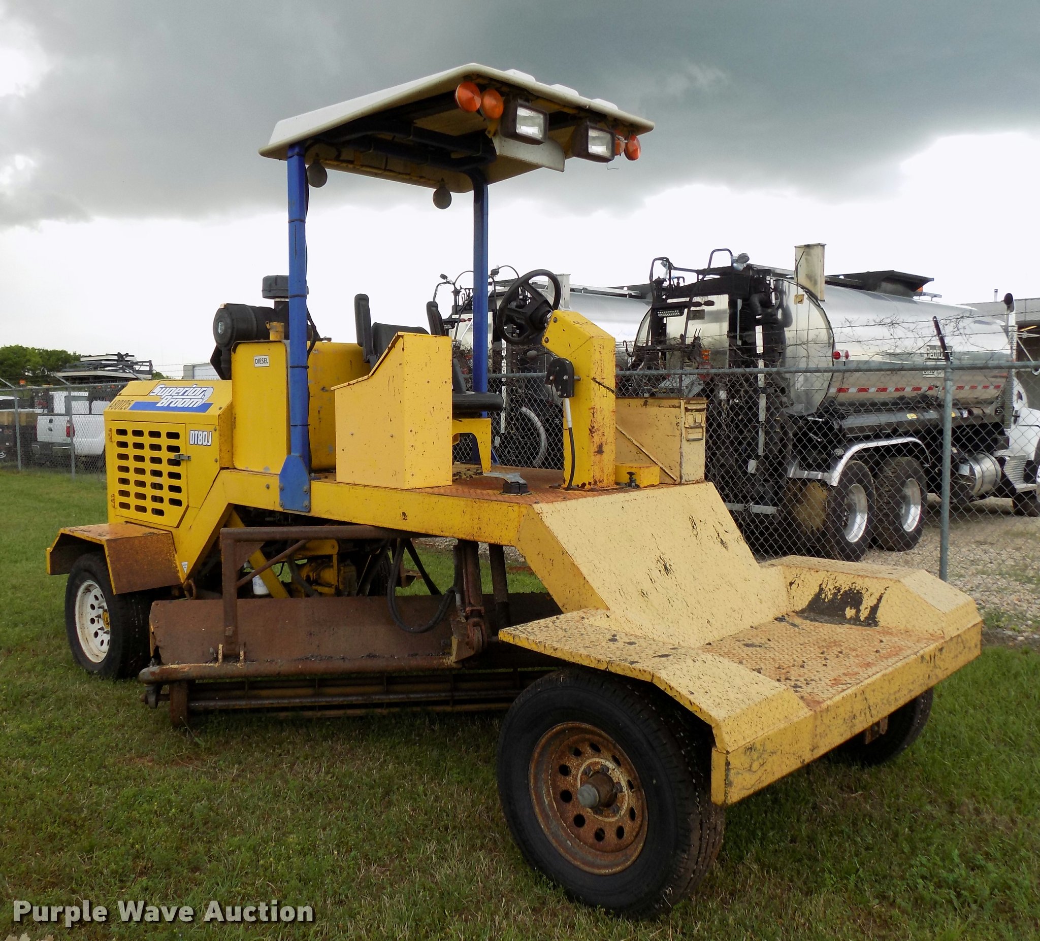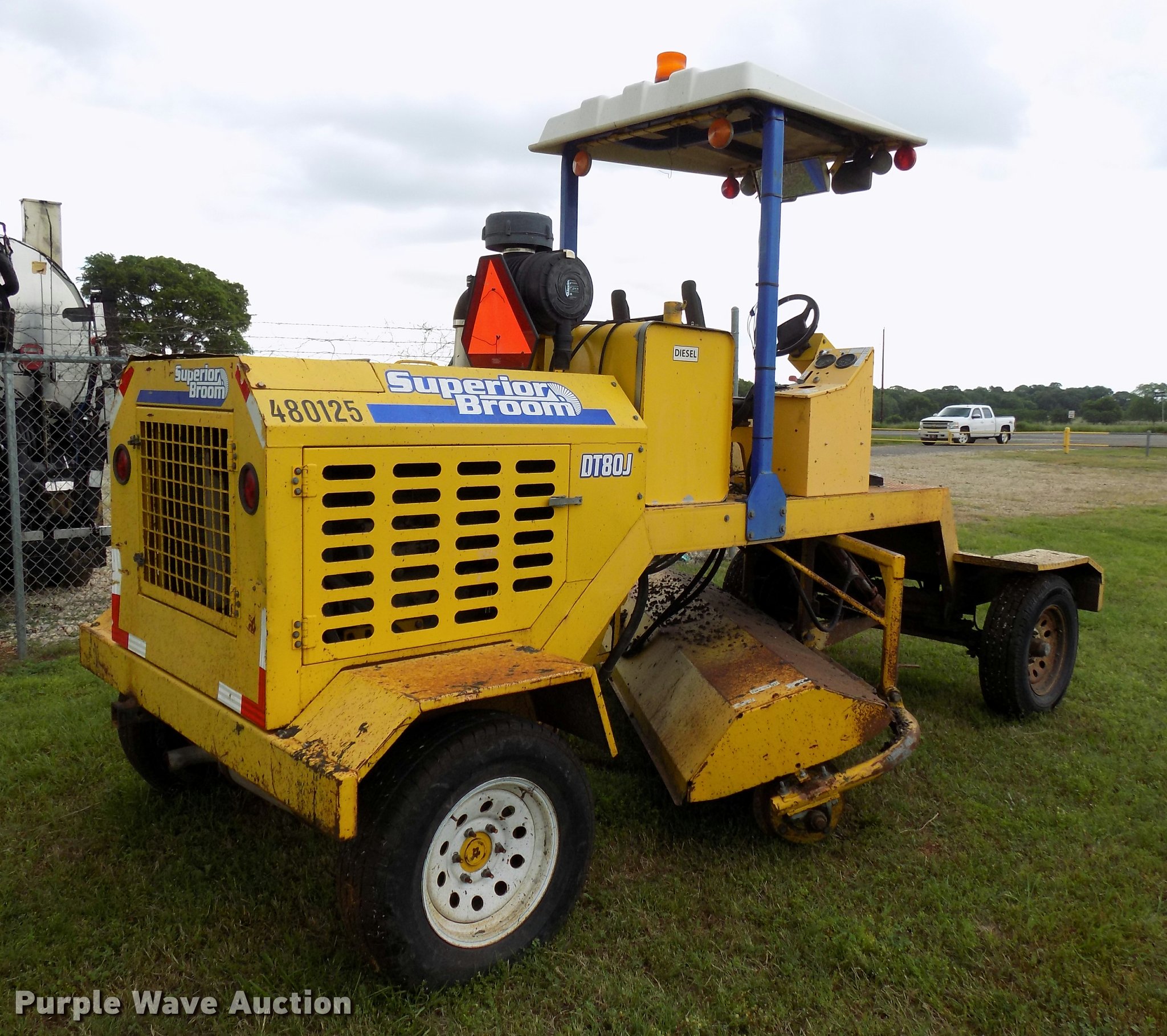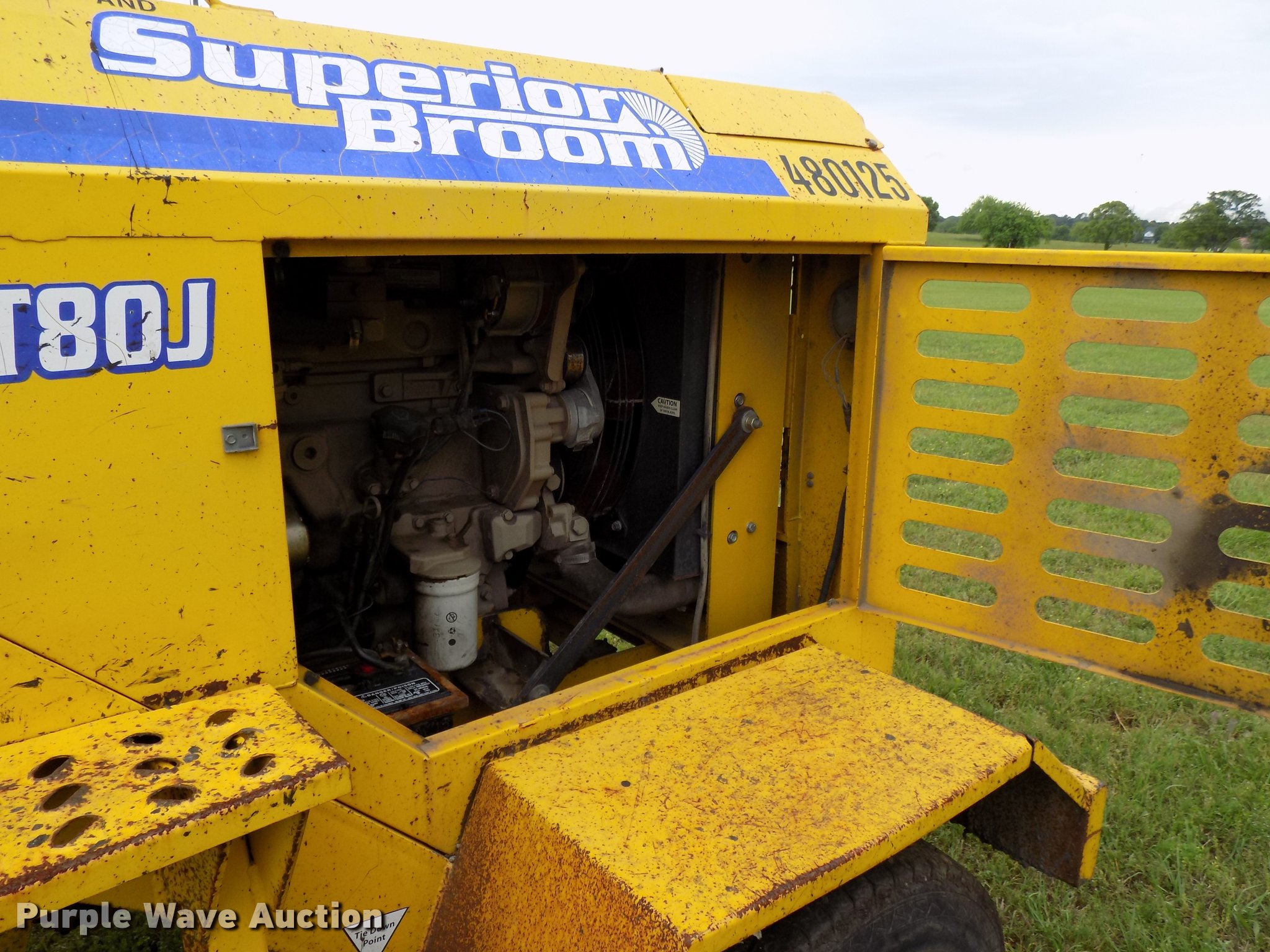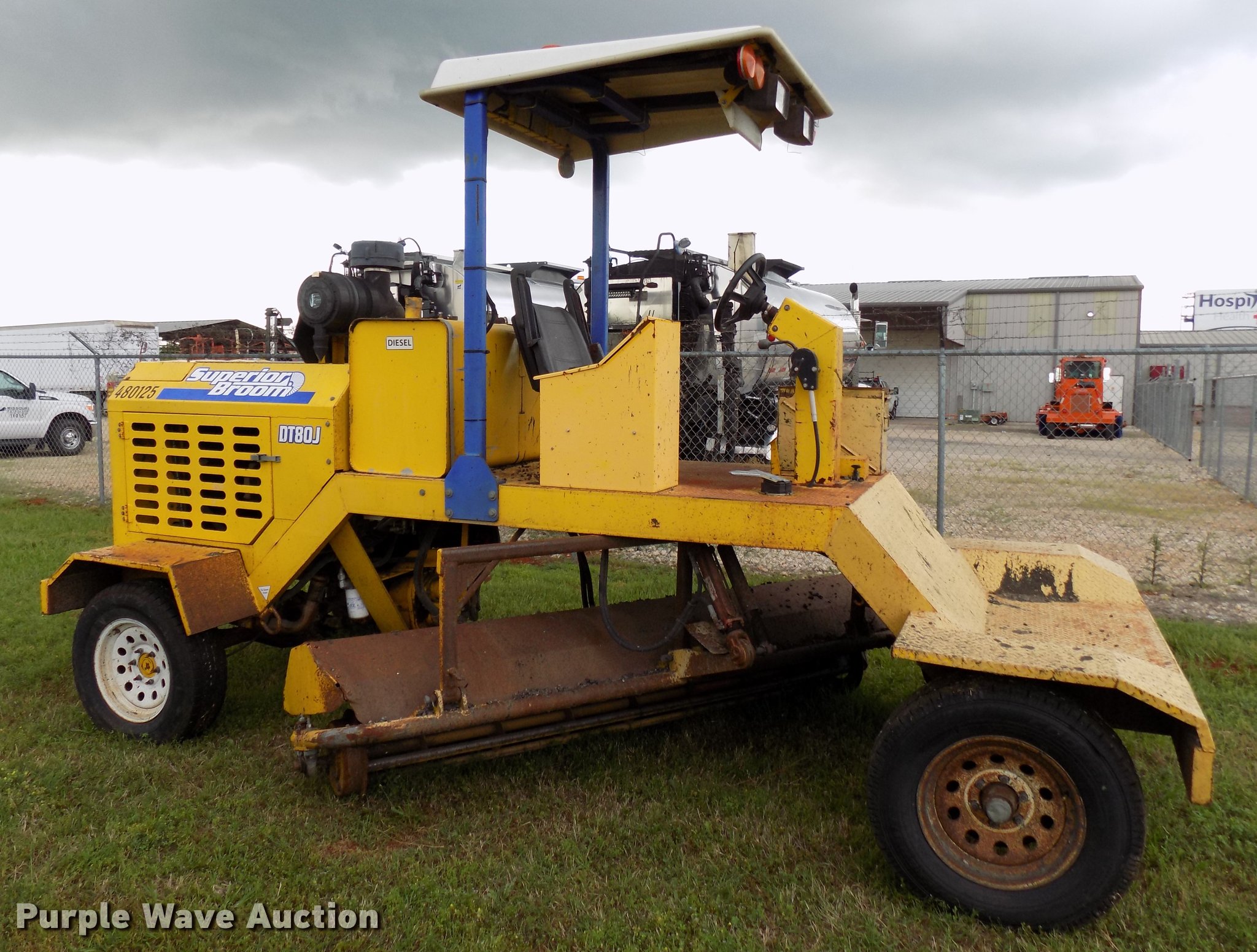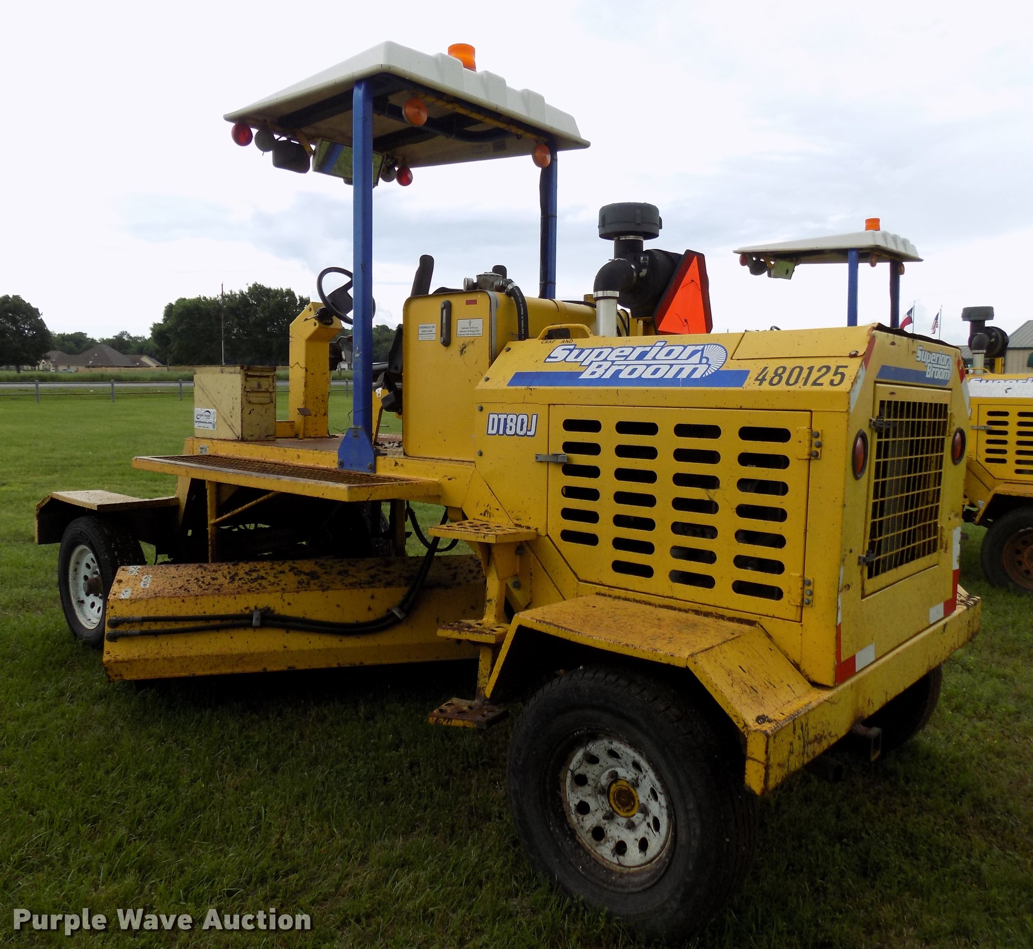 Purple Wave is selling a used Broom in Texas. This item is a 2010 Superior Broom DT80-J broom with the following: 3,373 hours on meter, John Deere 4045DF270B 4.5L four cylinder diesel engine, 60 kW, Serial PE4045D742460, Two speed hydrostatic transmission, OROPS, 9'W broom, No bristles, Hydraulic height adjustment, Beacon light, Receiver hitch, 225/75R16 tires, Non-operational engine, Hole in block, Fuel tank cap missing, Broom joystick control missing, Serial 810024