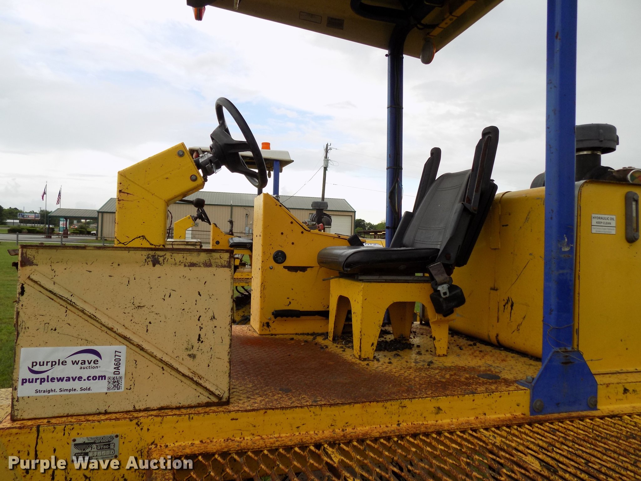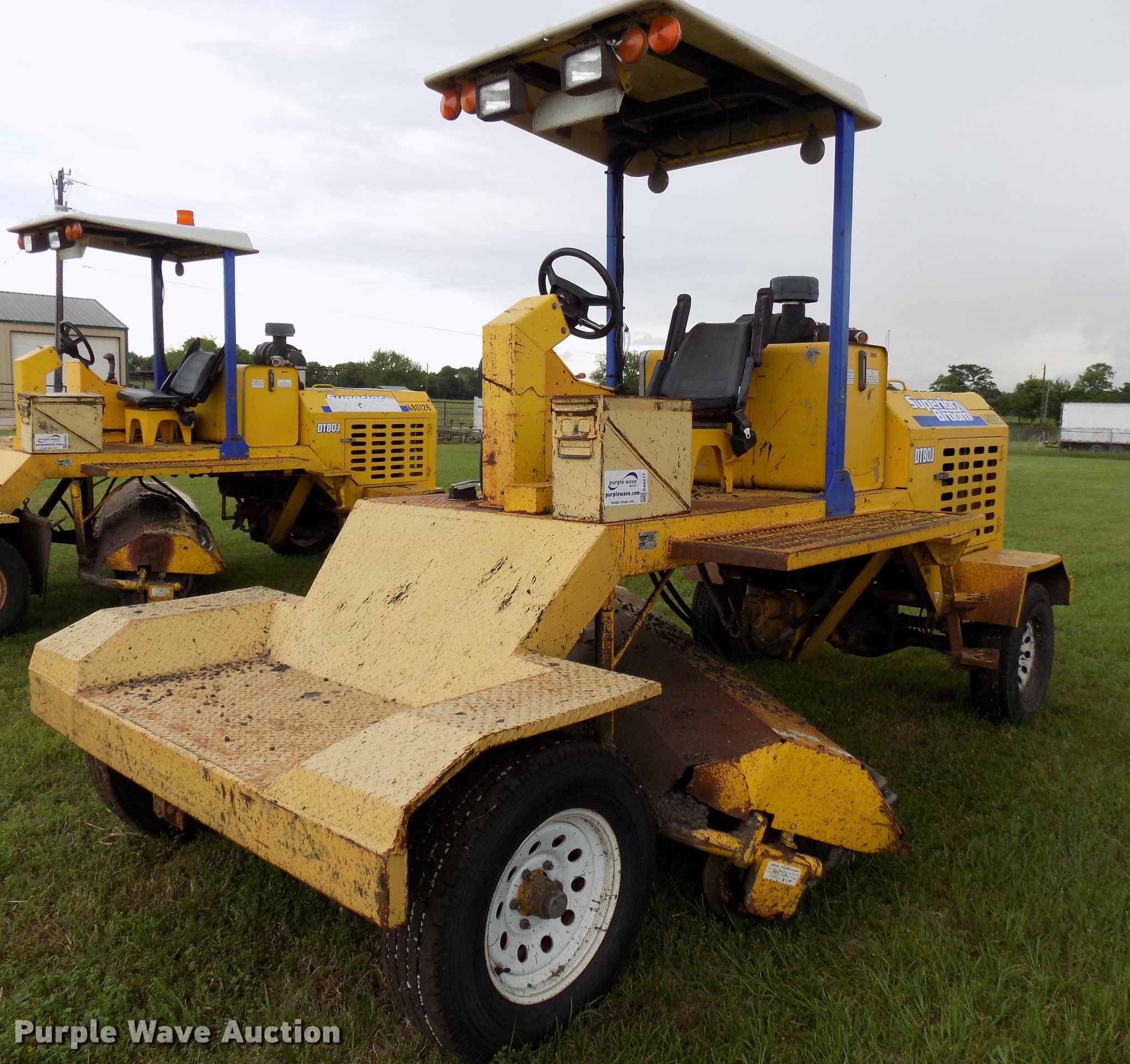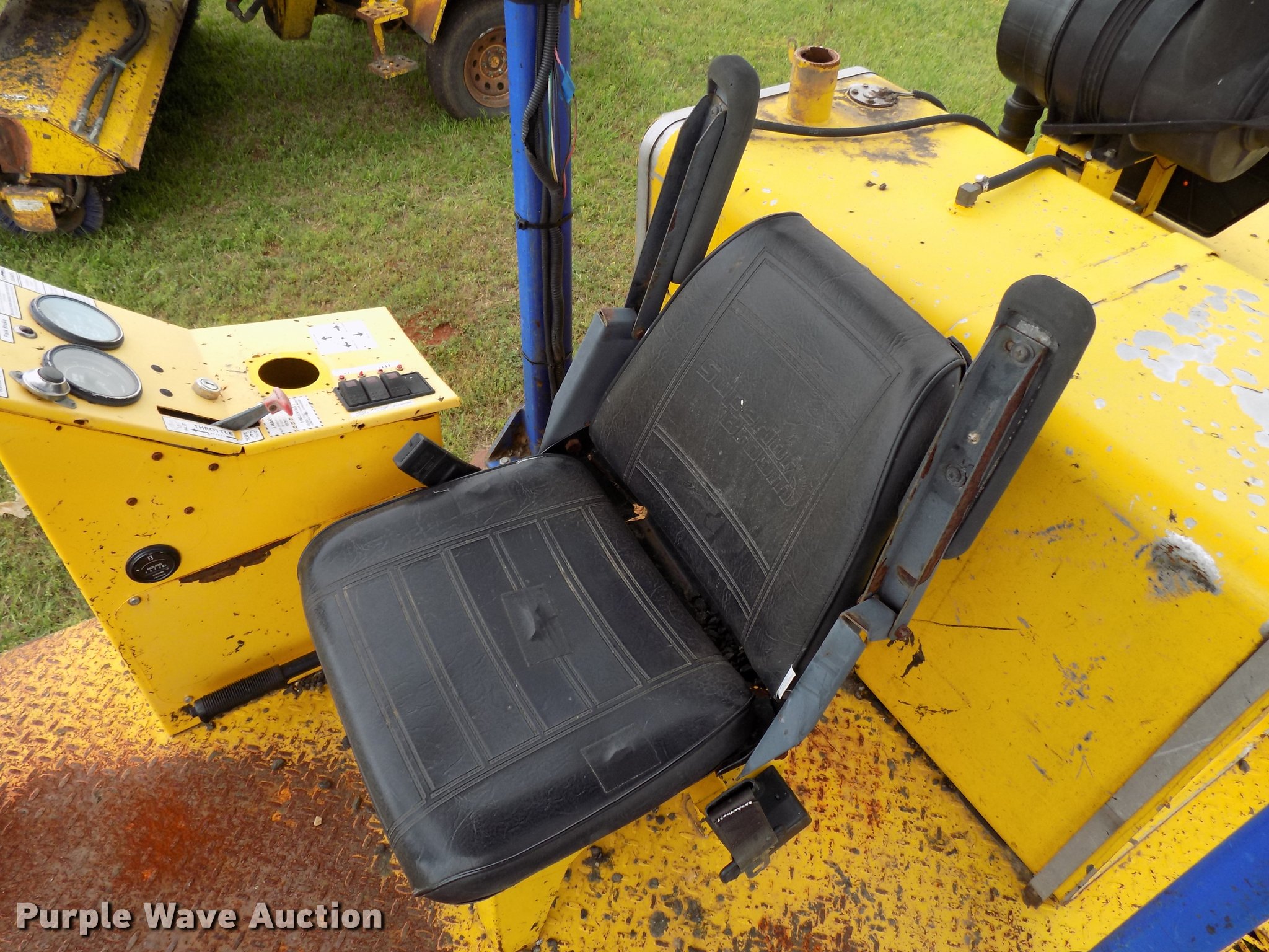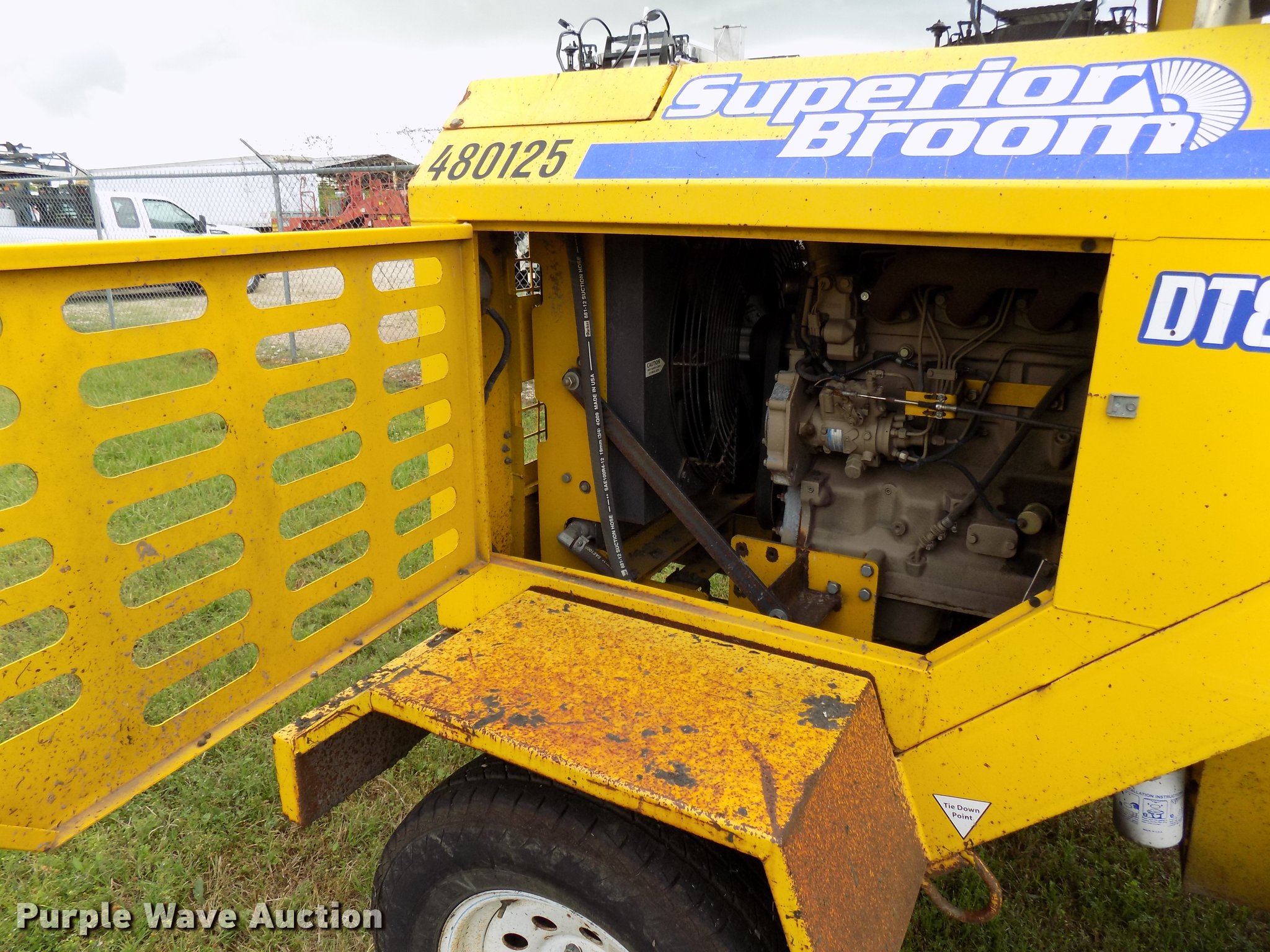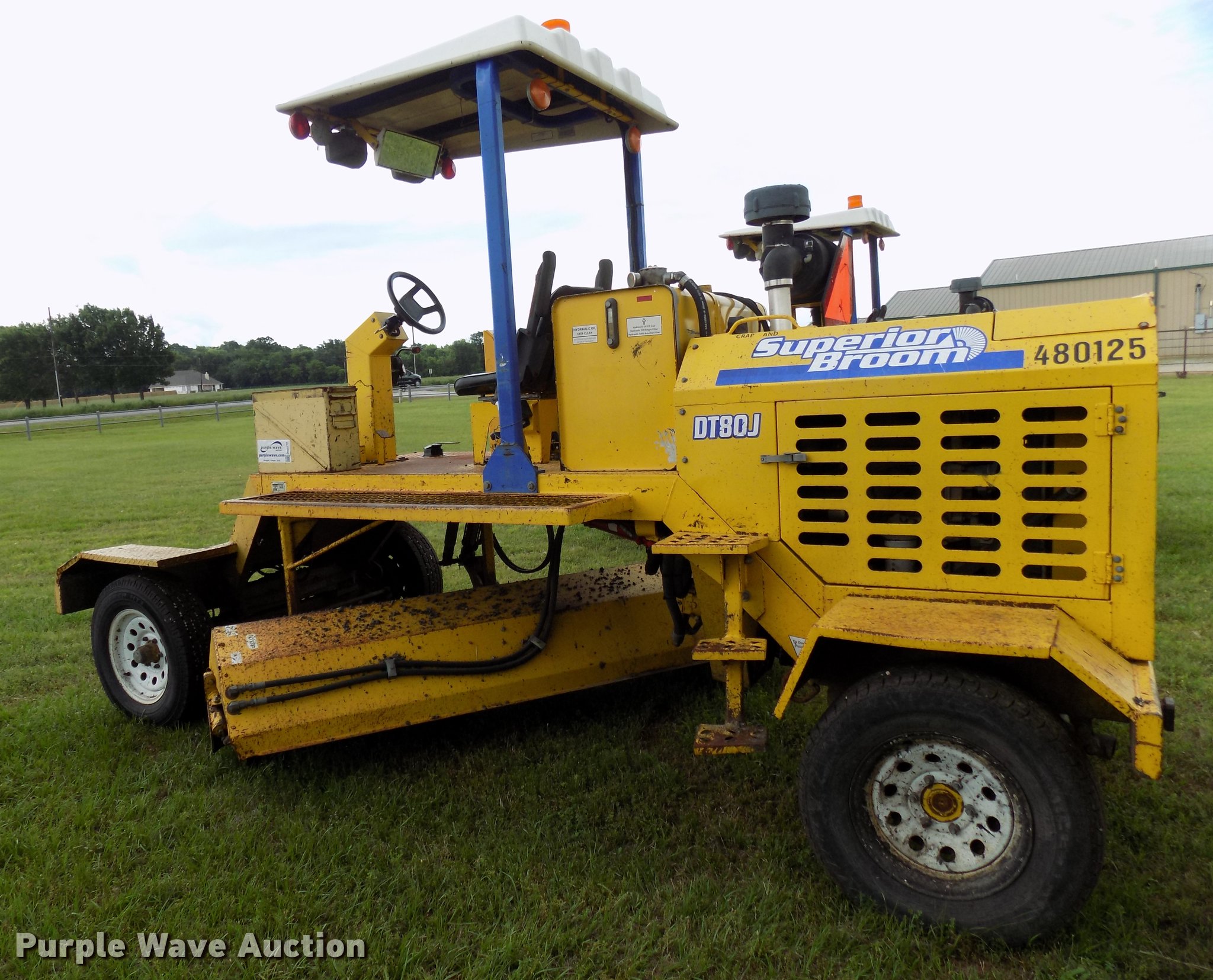 Purple Wave is selling a used Broom in Texas. This item is a 2010 Superior Broom DT80-J broom with the following: 3,373 hours on meter, John Deere 4045DF270B 4.5L four cylinder diesel engine, 60 kW, Serial PE4045D742460, Two speed hydrostatic transmission, OROPS, 9'W broom, No bristles, Hydraulic height adjustment, Beacon light, Receiver hitch, 225/75R16 tires, Non-operational engine, Hole in block, Fuel tank cap missing, Broom joystick control missing, Serial 810024