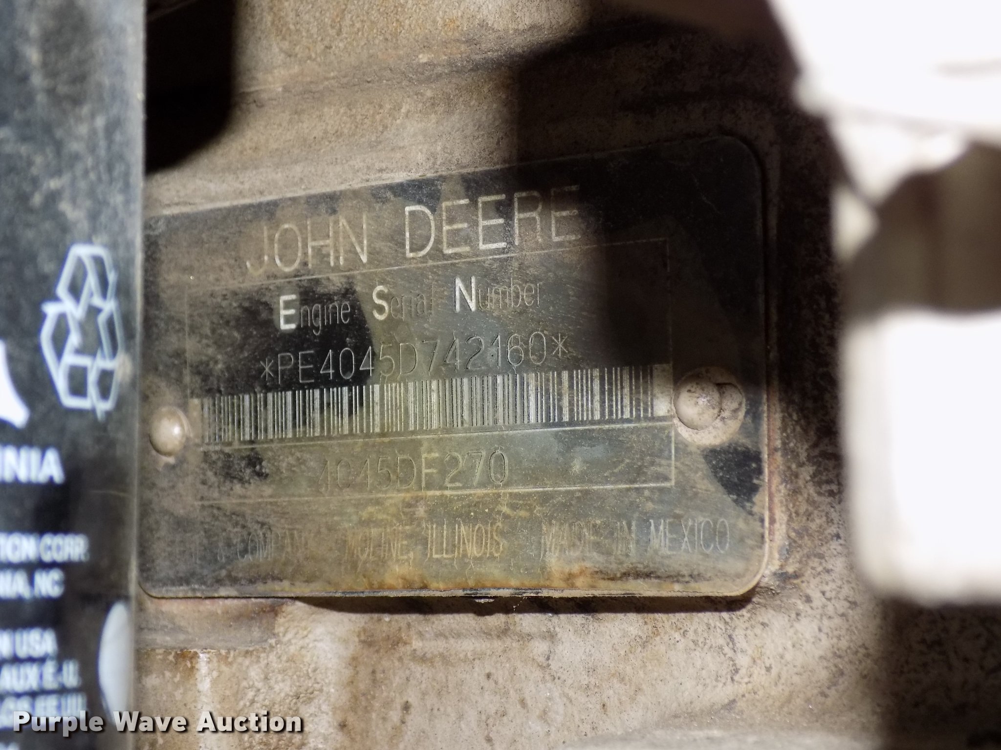 - John Deere 4045DF270B 4.5L four cylinder diesel engine