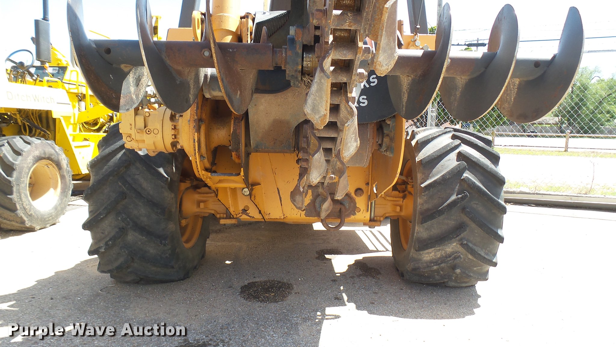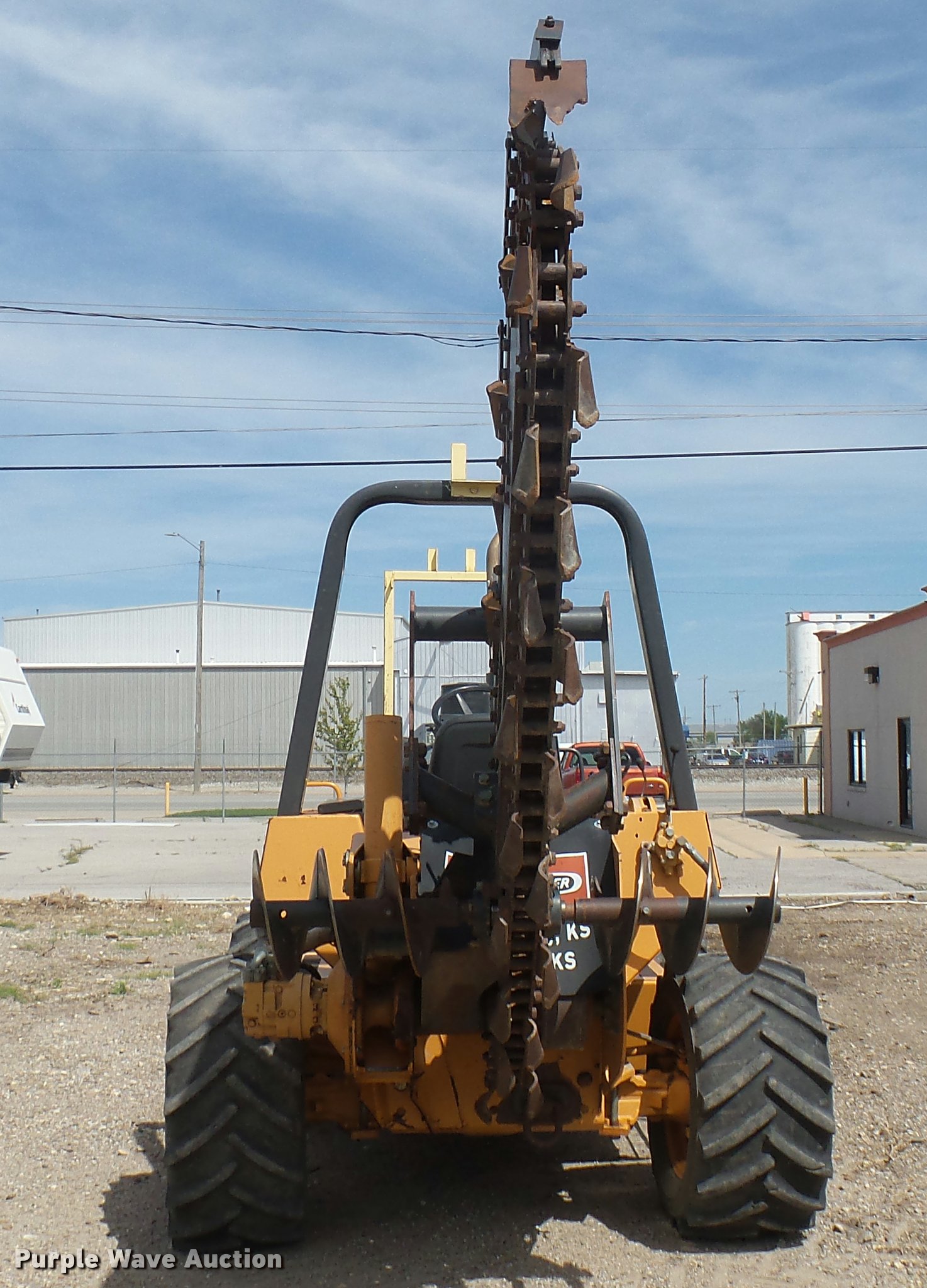 Purple Wave is selling a used Trencher or Rock Saw in Kansas. This item is a Case 960 Turbo trencher with the following: 3,052 hours on meter, Cummins four cylinder turbo diesel engine, Hydrostatic transmission, Four wheel drive, Four wheel steer, Two post ROPS, 8' trencher bar, 5' maximum digging depth, 8" trench width, Crumber shoe, 80"W six-way backfill blade, (19) suitcase weights, 38 x 18.00-20 tires, Serial DFG0005116