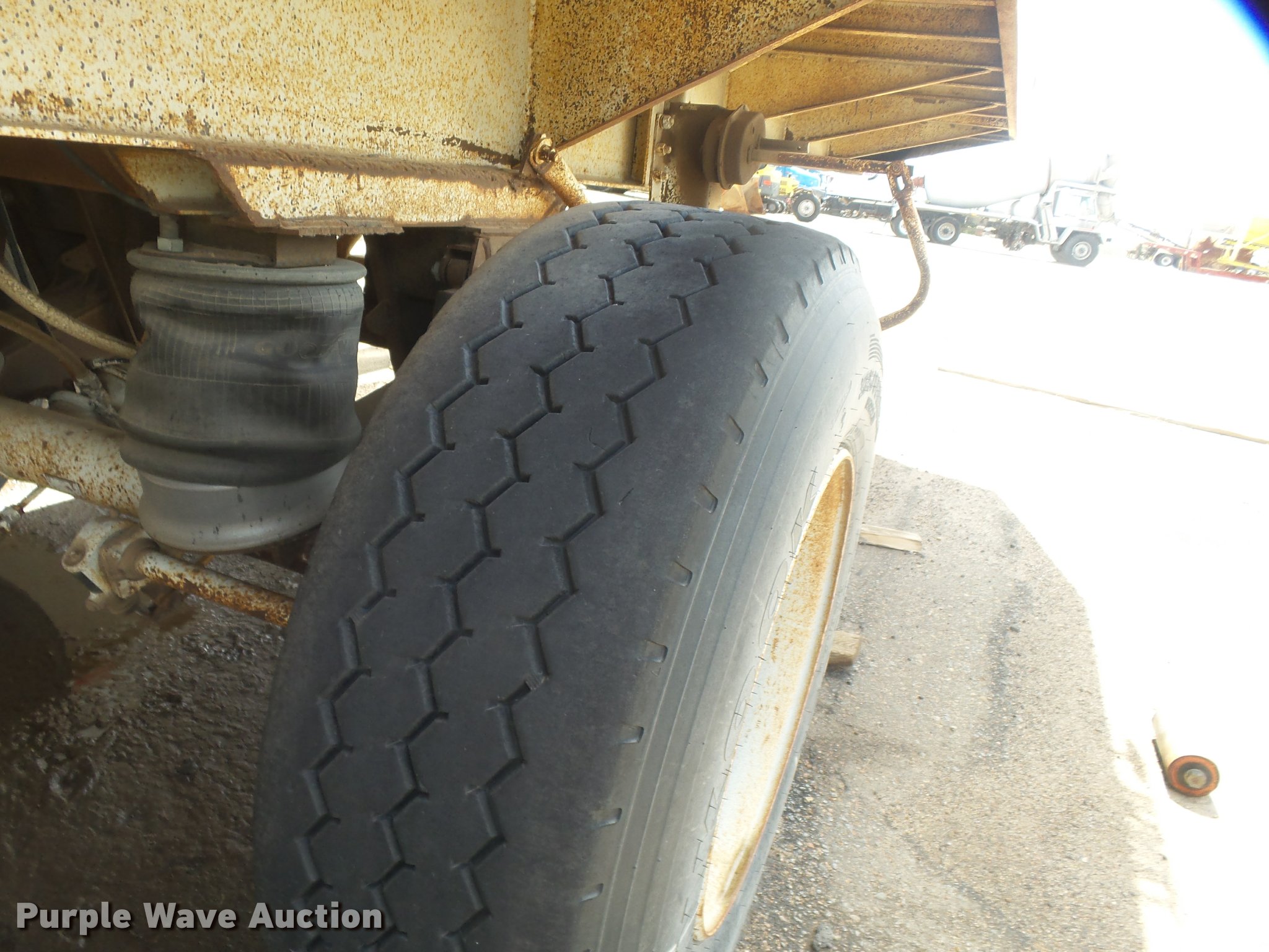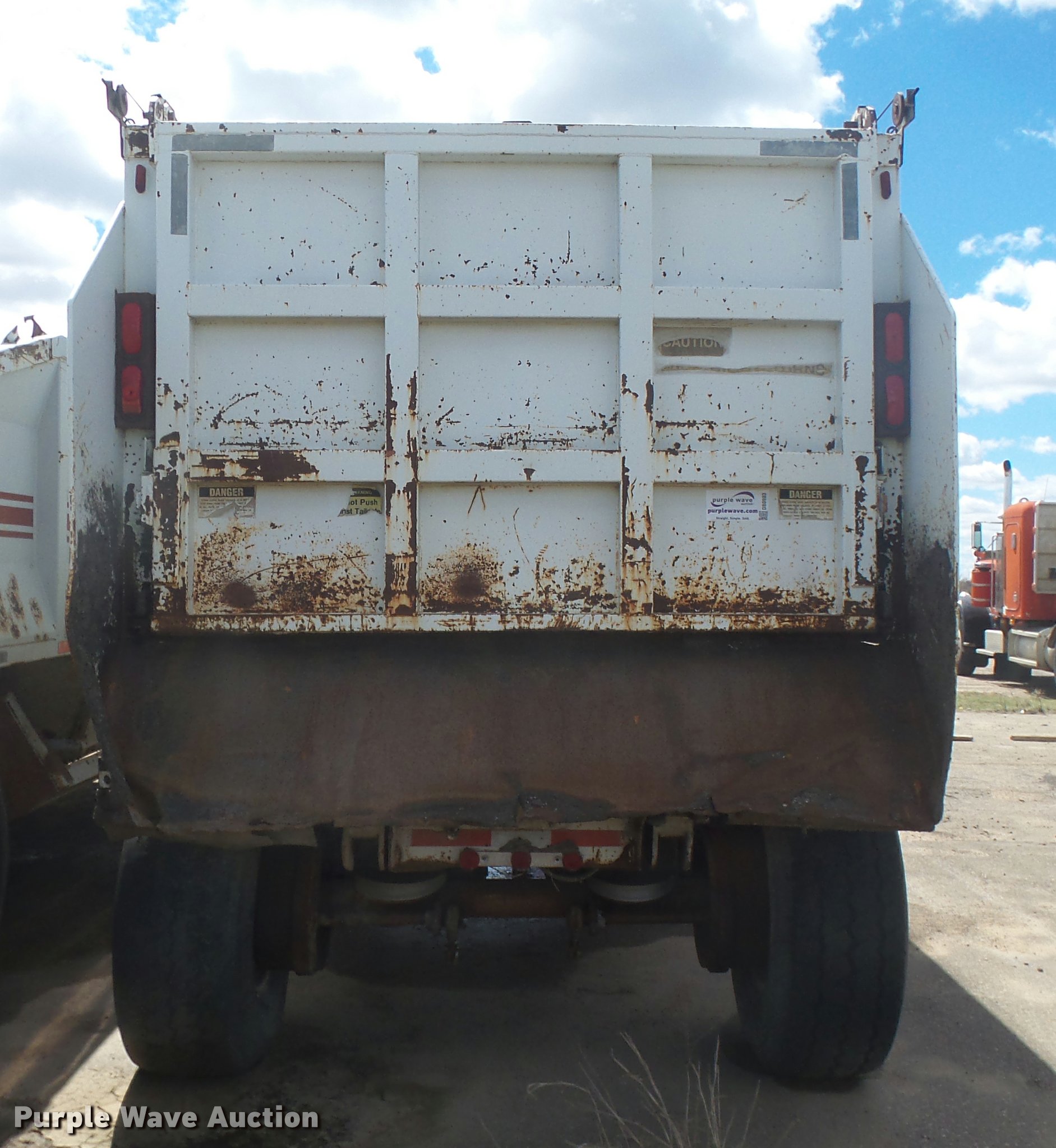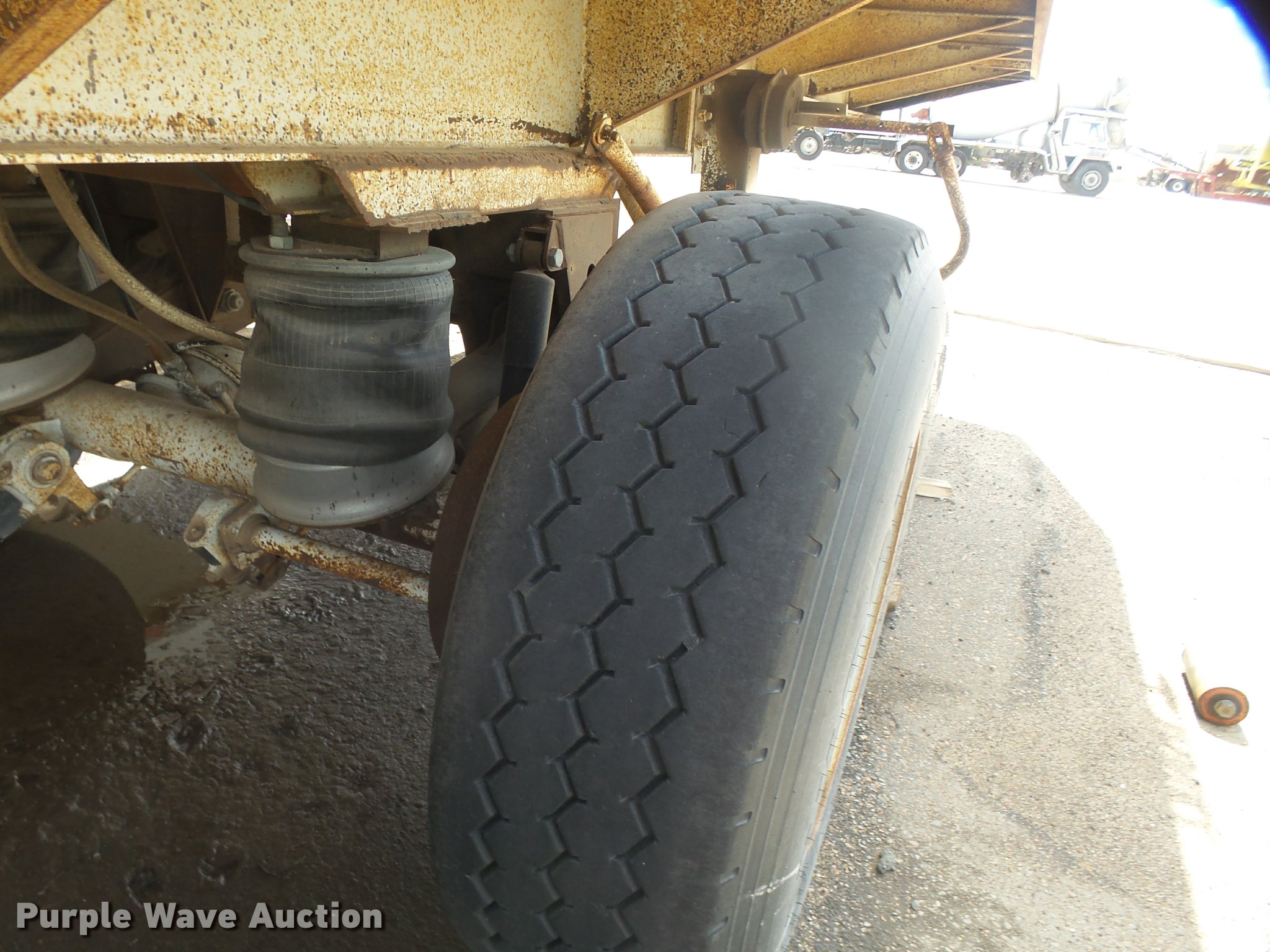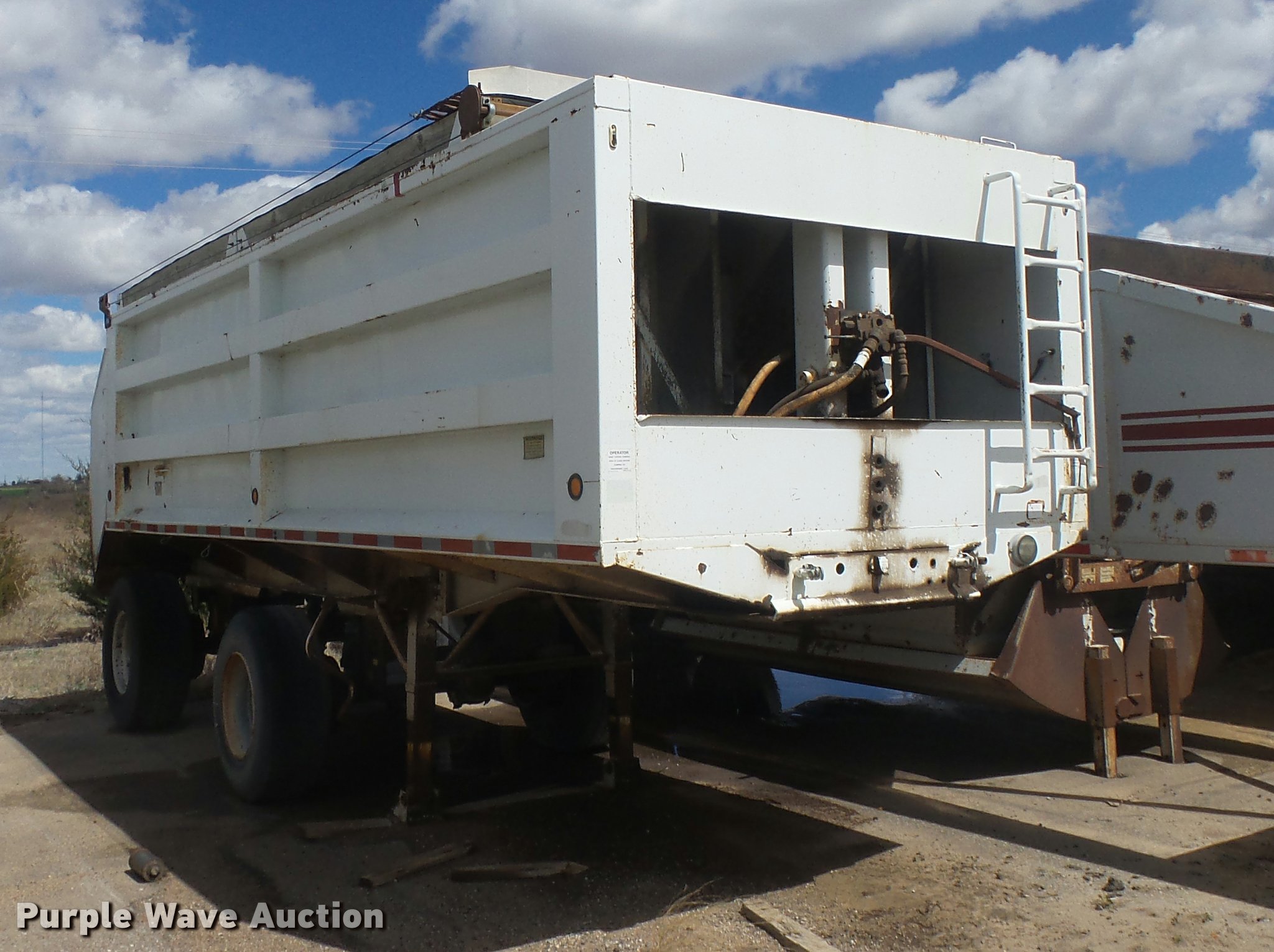 Purple Wave is selling a used End Dump Rock Trailer in Kansas. This item is a 1996 Converto REJ-23-25 dump trailer with the following: 23'L x 8'W box, Front mounted ram, Rear material discharge, Load trap, Spread axle, Air suspension, Air brakes, 325/65R22.5 tires