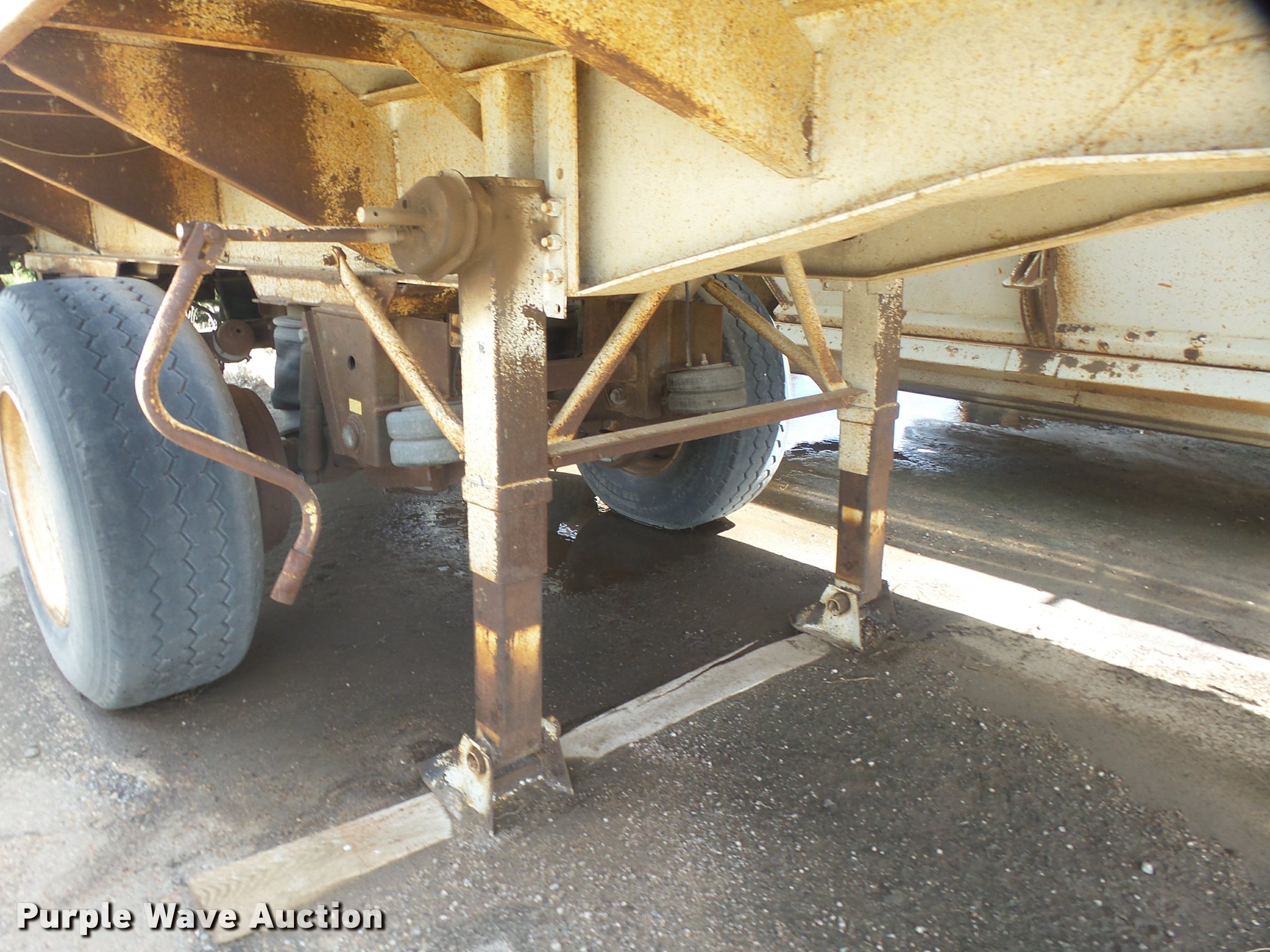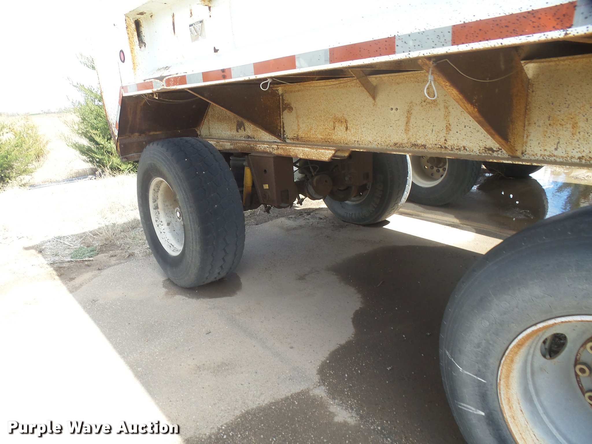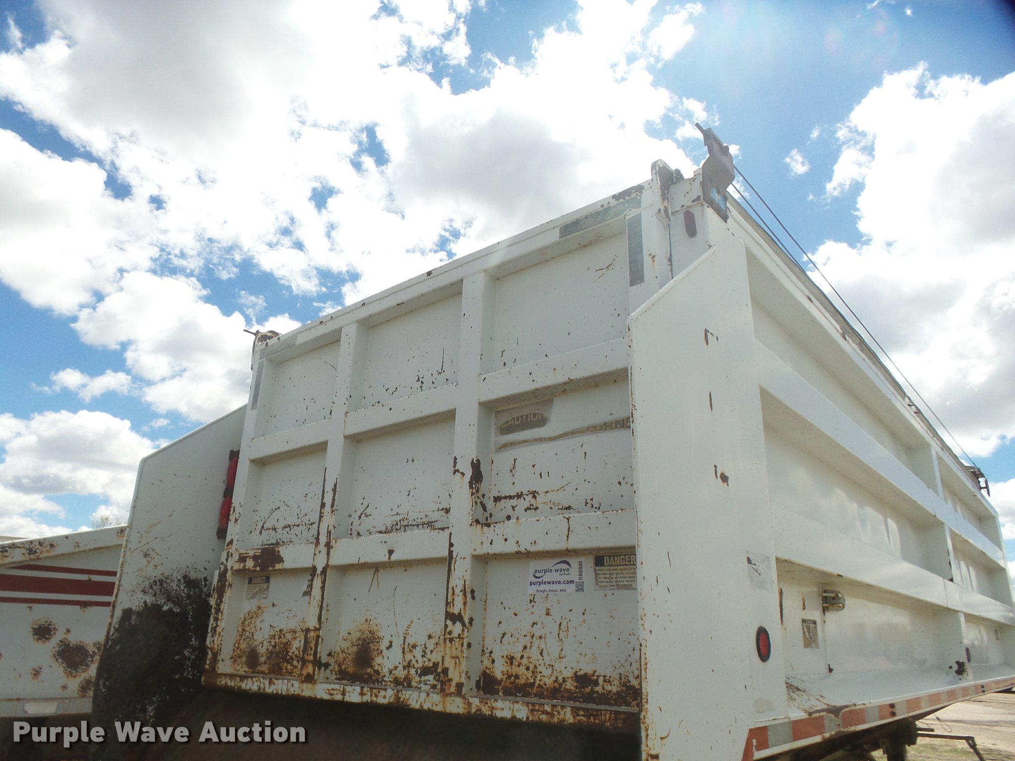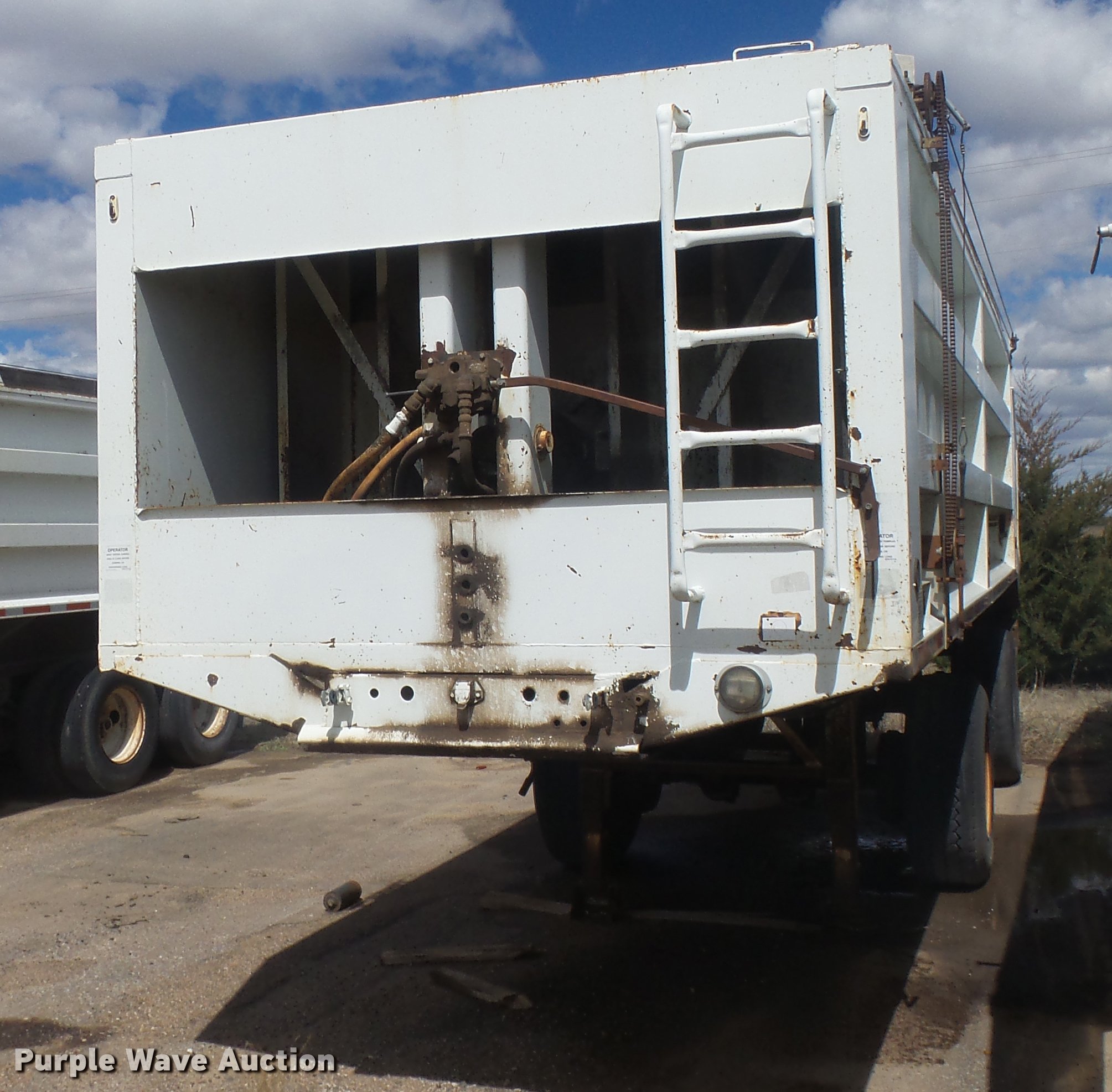 Purple Wave is selling a used End Dump Rock Trailer in Kansas. This item is a 1996 Converto REJ-23-25 dump trailer with the following: 23'L x 8'W box, Front mounted ram, Rear material discharge, Load trap, Spread axle, Air suspension, Air brakes, 325/65R22.5 tires