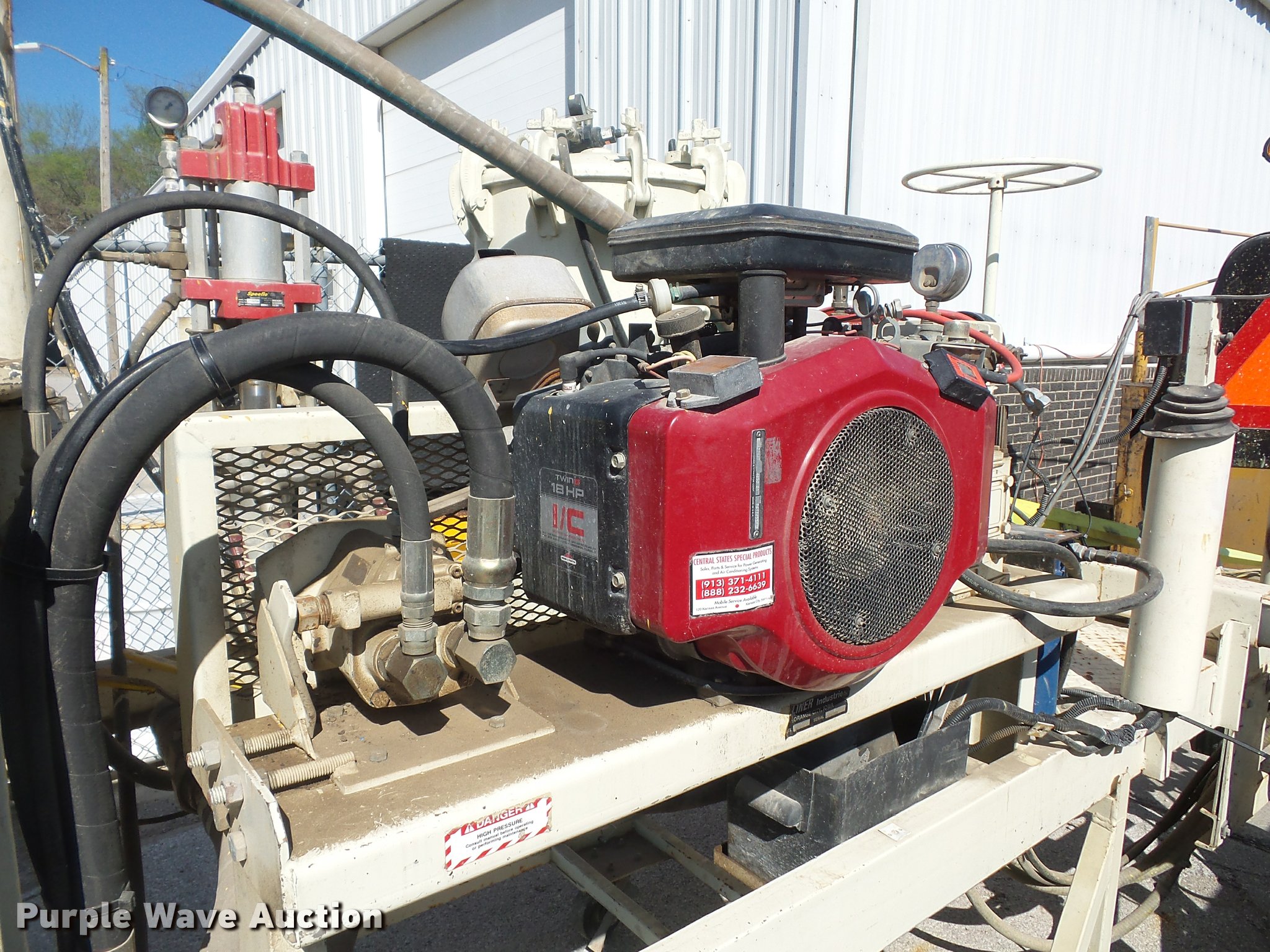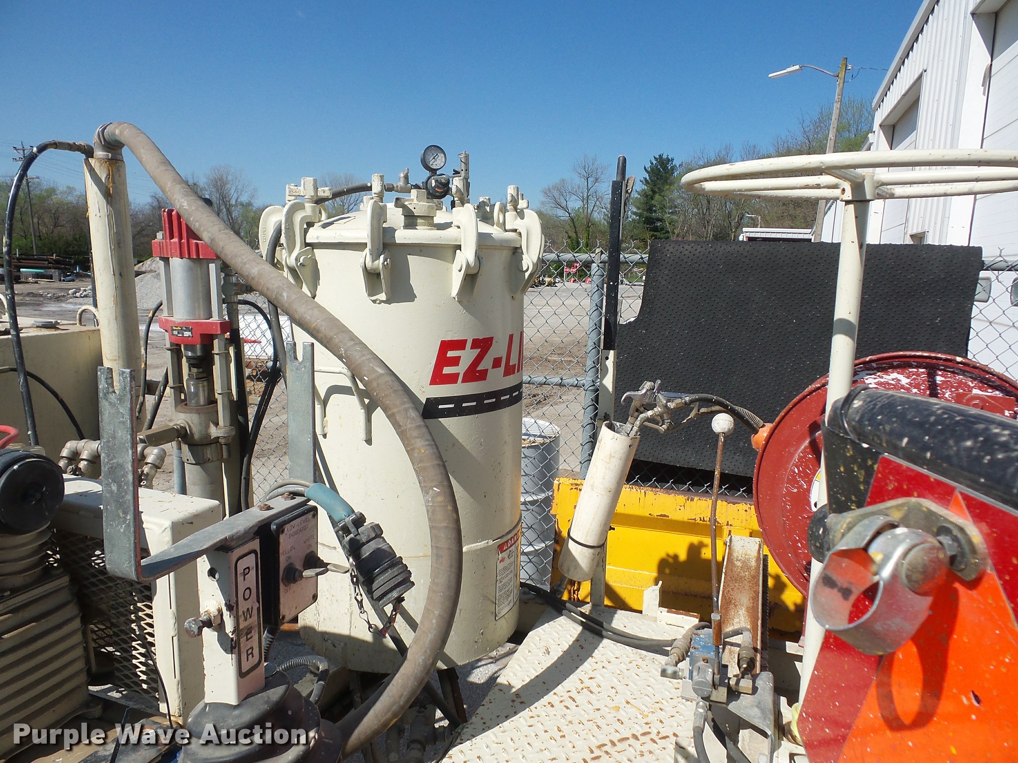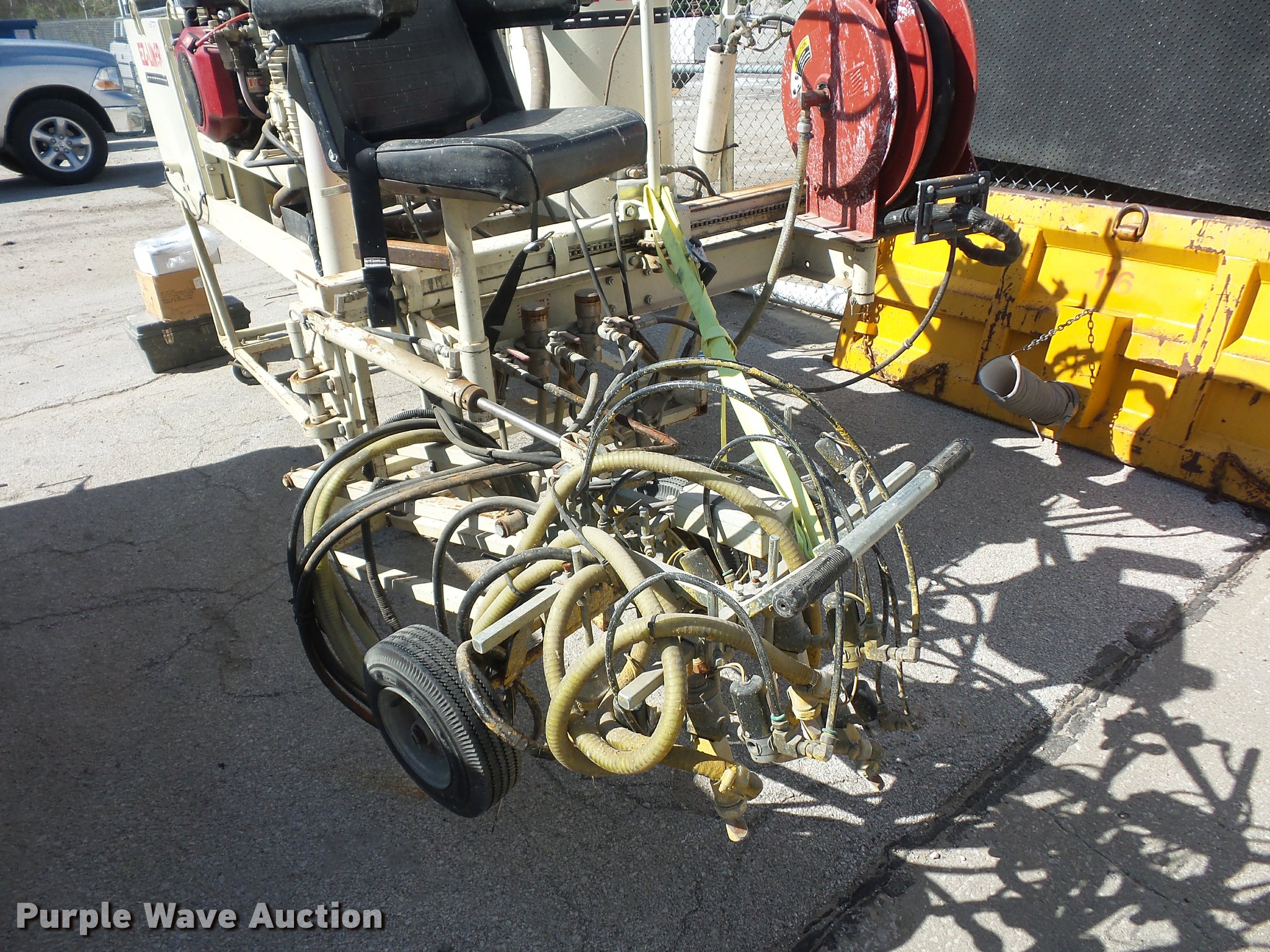 Purple Wave is selling a used Paving Sply. or Attach. in Missouri. This item is a EZ-Liner D120 paint striper with the following: Briggs & Stratton twin cylinder gas engine, 18 HP, Hose reel, Fits in 8' truck bed, Serial 1D97217DS