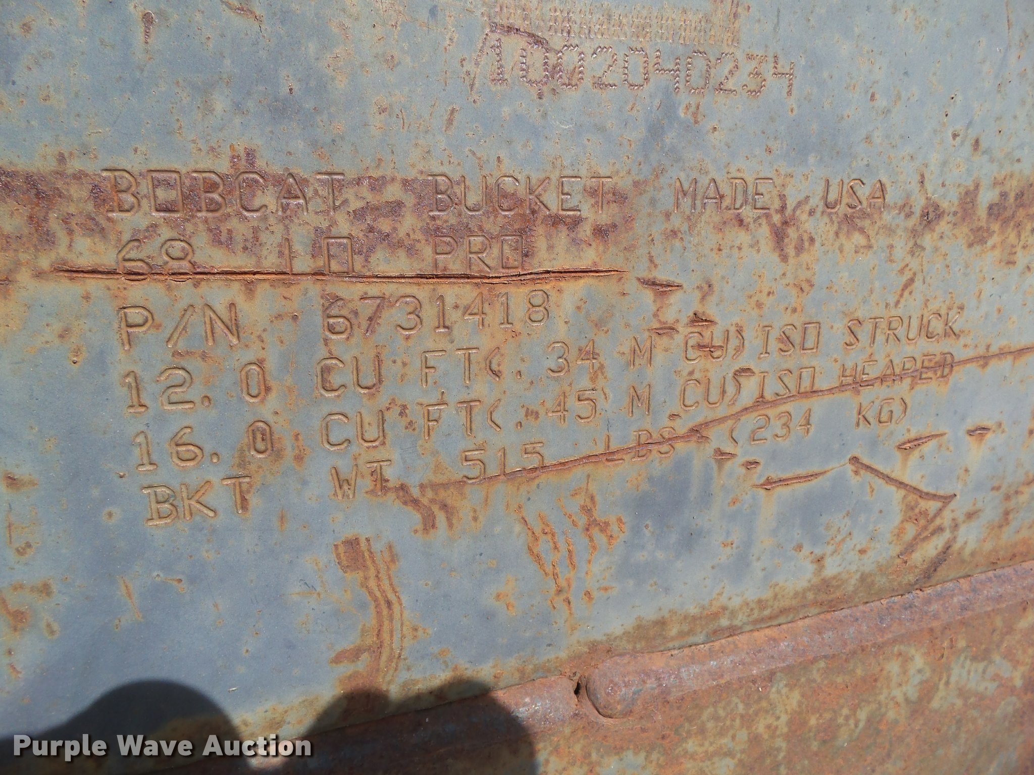 Purple Wave is selling a used Skid Steer Attach. in Iowa. This item is a Bobcat skid steer bucket with the following: 68"W, Serial 1002040234