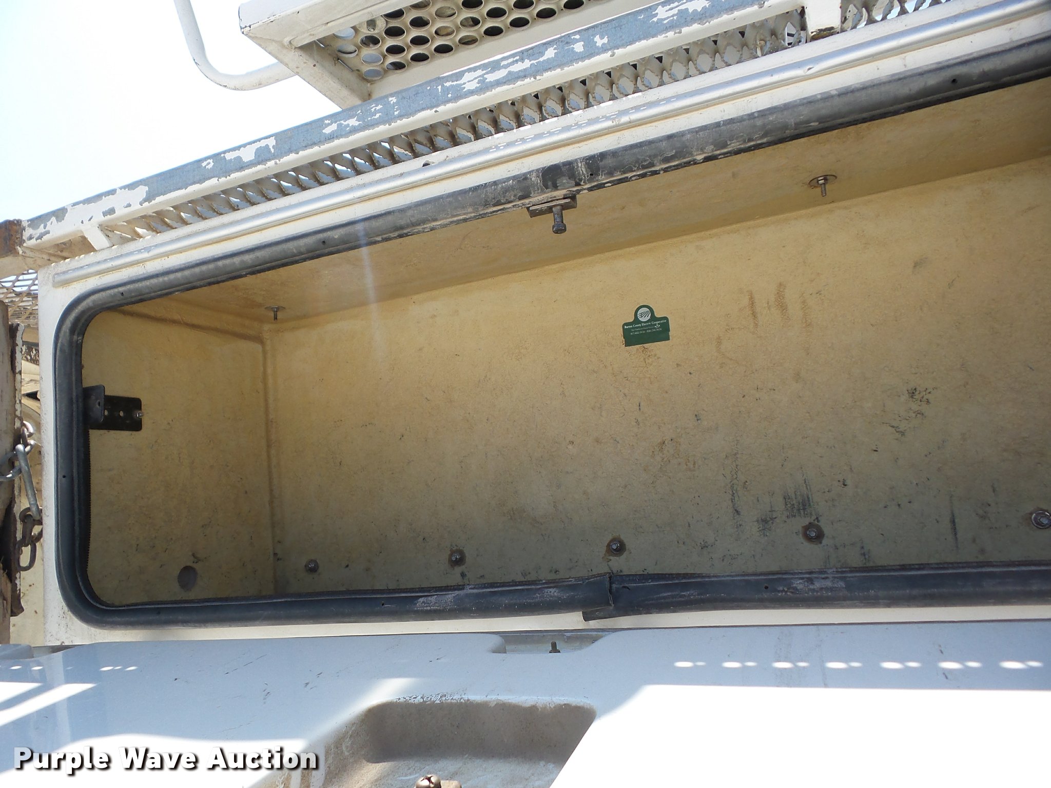 2002 Freightliner FL80 digger derrick truck. 143,933 miles on odometer, 2,621 PTO hours on meter, Caterpillar 3126 7.2L L6 turbo diesel engine, Automatic transmission, Inter-axle differential lock, Tandem axle, AC and heat, Cruise, AM/FM, Heated mirrors, Air suspension seat, Block heater, Front tow hooks, PTO, Altec service bed 15'L, Shelving, Slide-out drawers, Catwalk, Worklights, Serial 37-74913, 2002 Altec D2050TR boom 30,000 lbs maximum lift height, 50' maximum lift height, Man basket, Ground and platform controls, Boom rotation, Pole guide, Remote control, Insulated, telescopic boom, Rope material handler, Outriggers, Certification valid through August 2017, Auger not included, Single exhaust stack, Dual fuel tanks, Pintle hitch, Spring over walking beam suspension, Air brakes, Hankook 315/80R22.5 front tires, 11R22.5 rear tires, GVWR 56,000 lbs, Unit# 4. Missouri title. 1FVHBXAK82HK27872. Barton County Electric Cooperative. 91 US-160. Lamar, MO 64759
