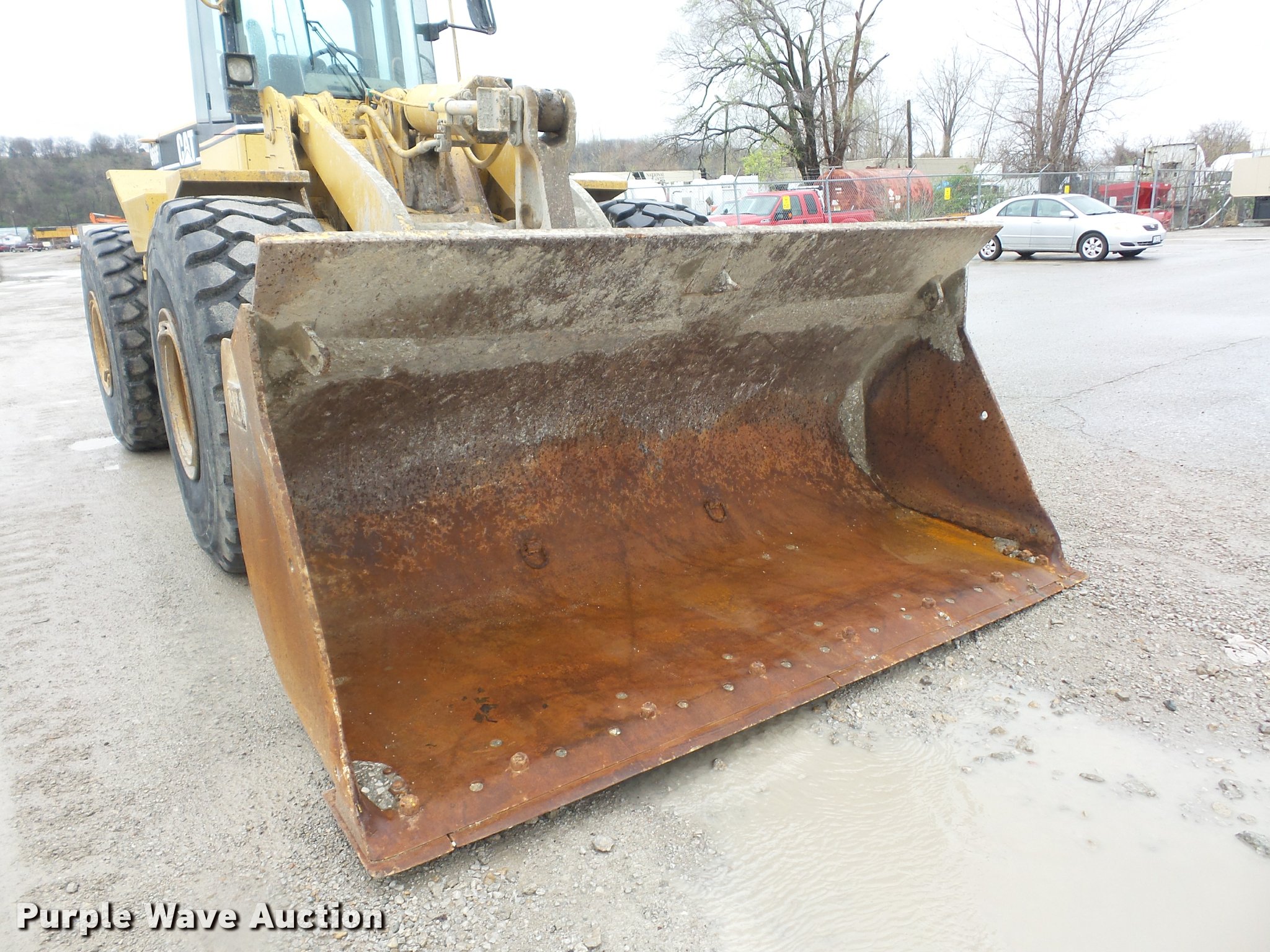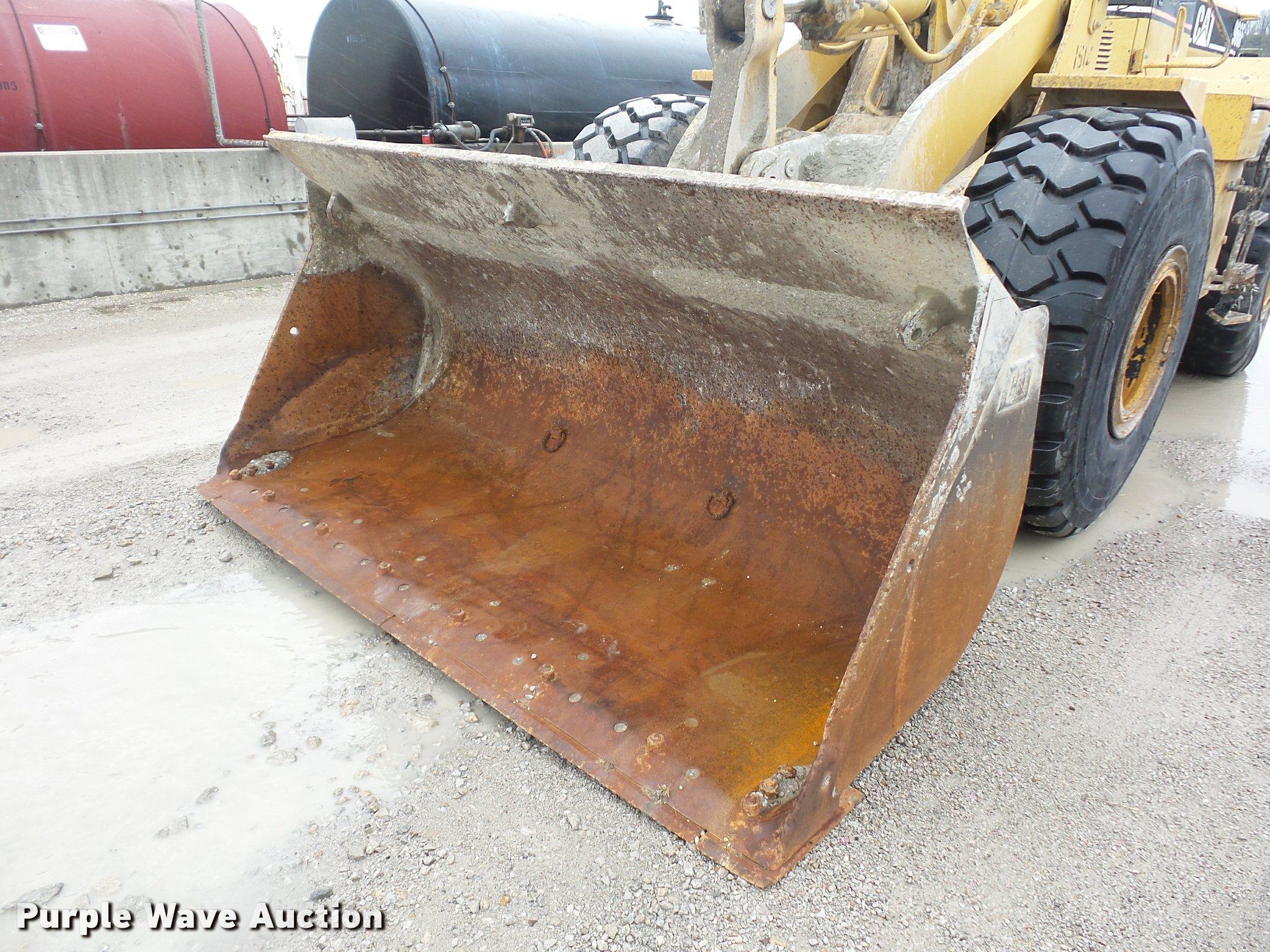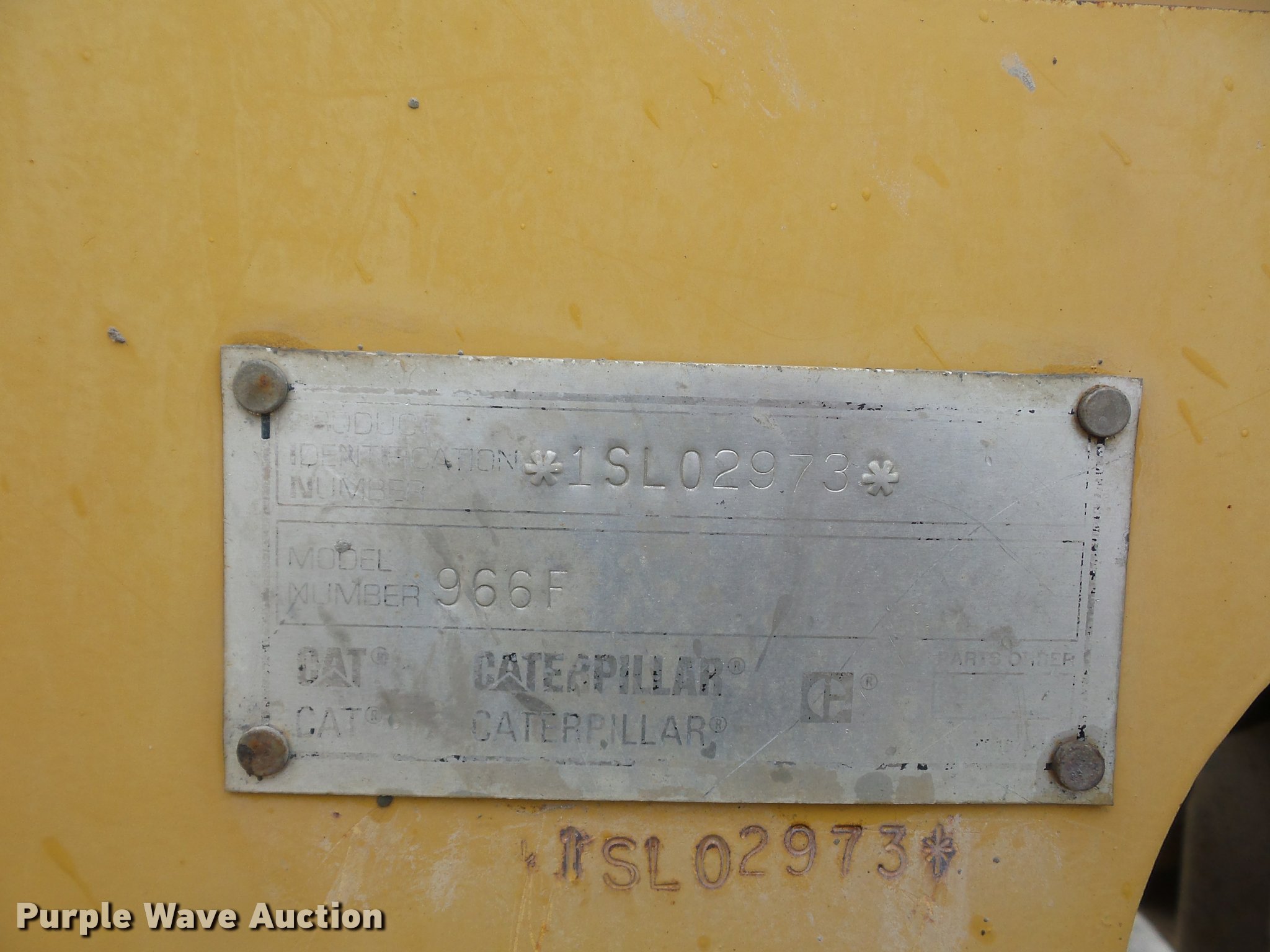 Purple Wave is selling a used Wheel Loader in Missouri. This item is a 1998 Caterpillar 966F wheel loader with the following: 10,820 hours on meter, Caterpillar six cylinder turbo diesel engine, Powershift transmission, 4F-4R gears, Enclosed cab, Two-lever bucket control, Front and rear work lights, 119"W bucket, Bolt-on cutting edge, 26.5R25 tires, Serial 1SL02973