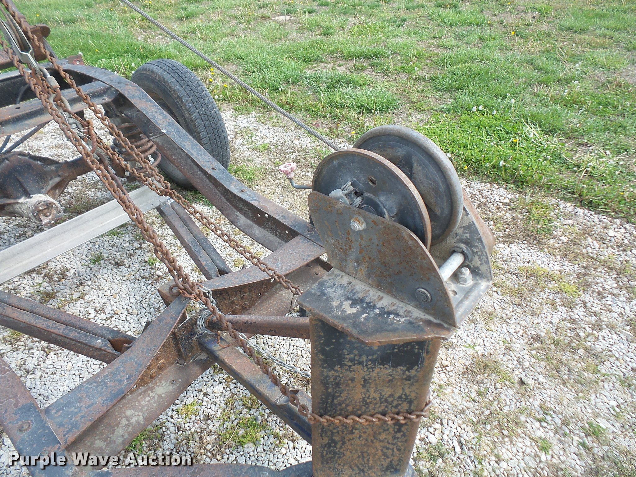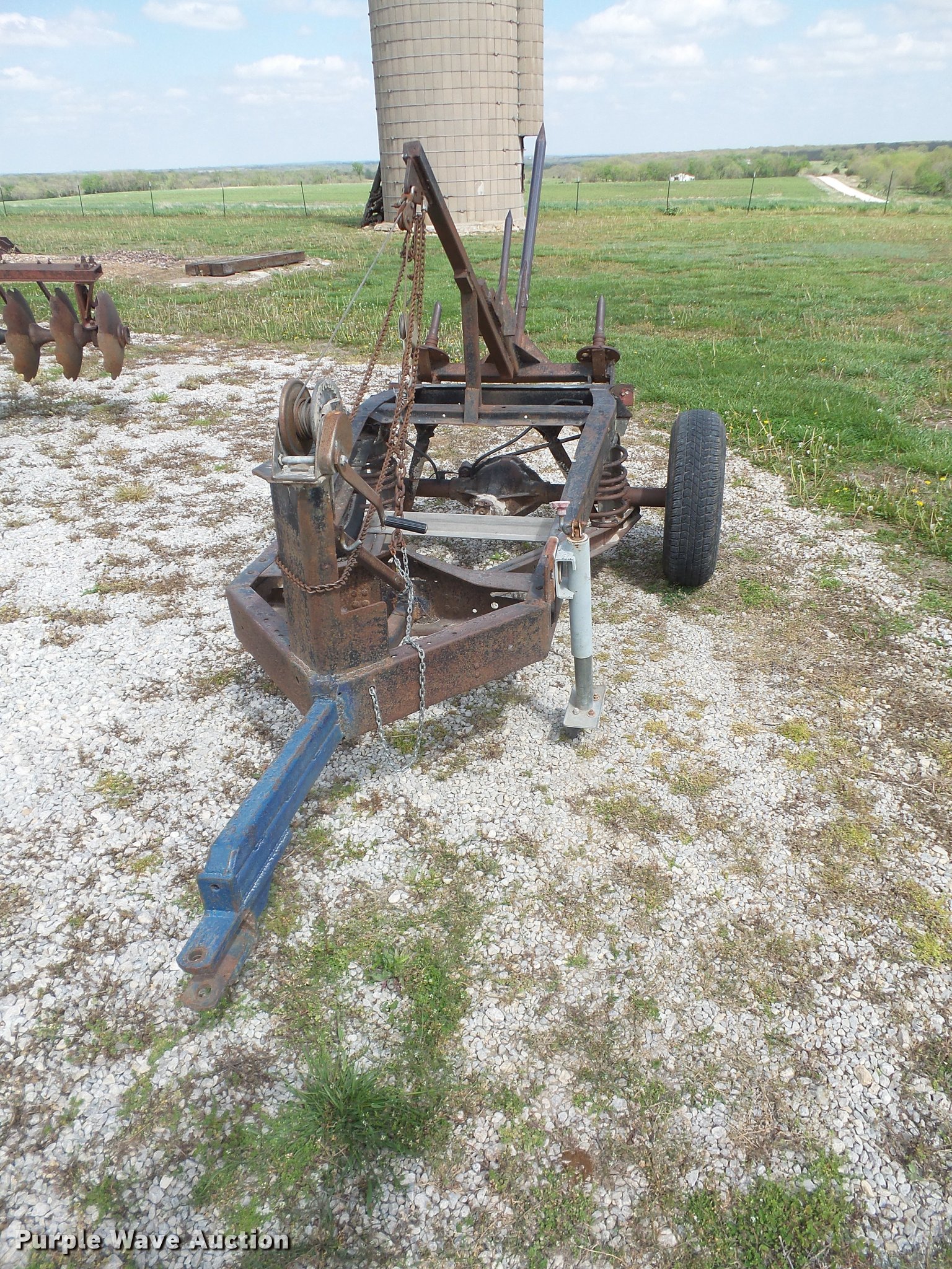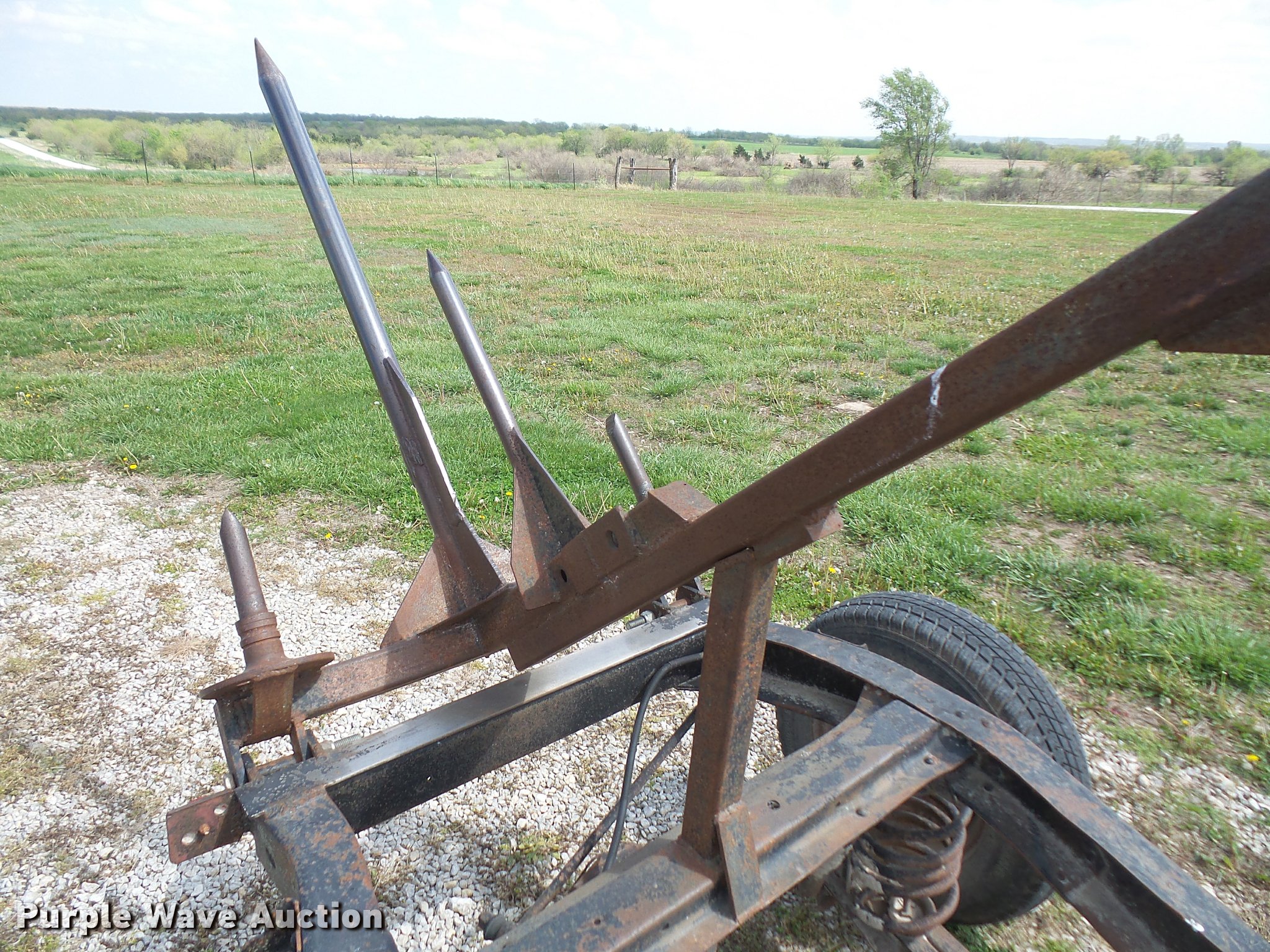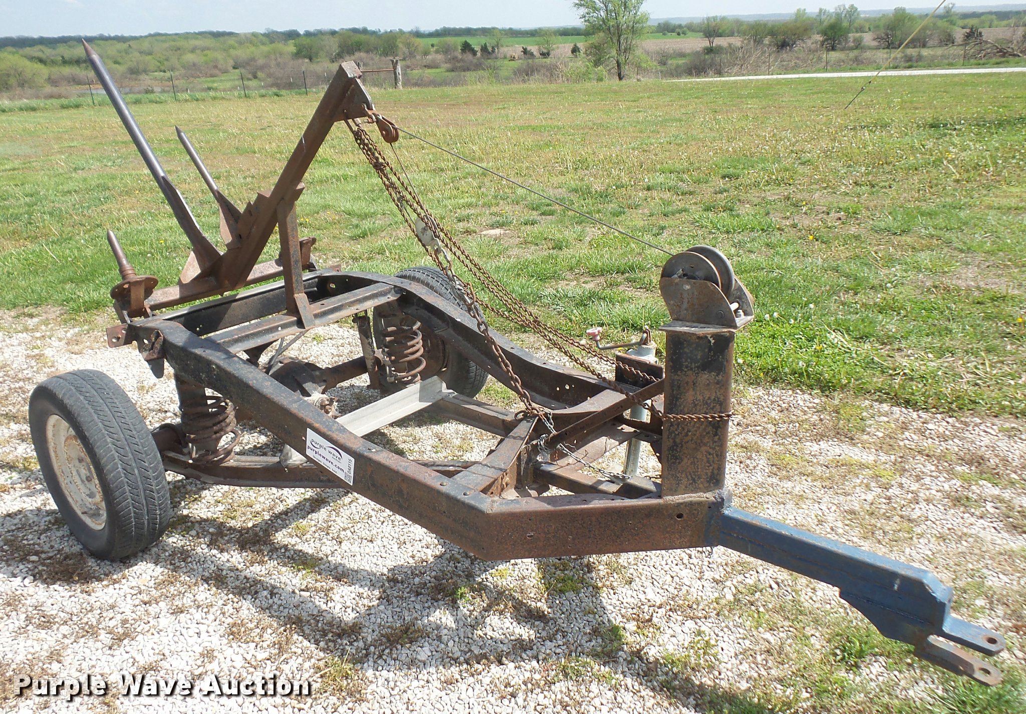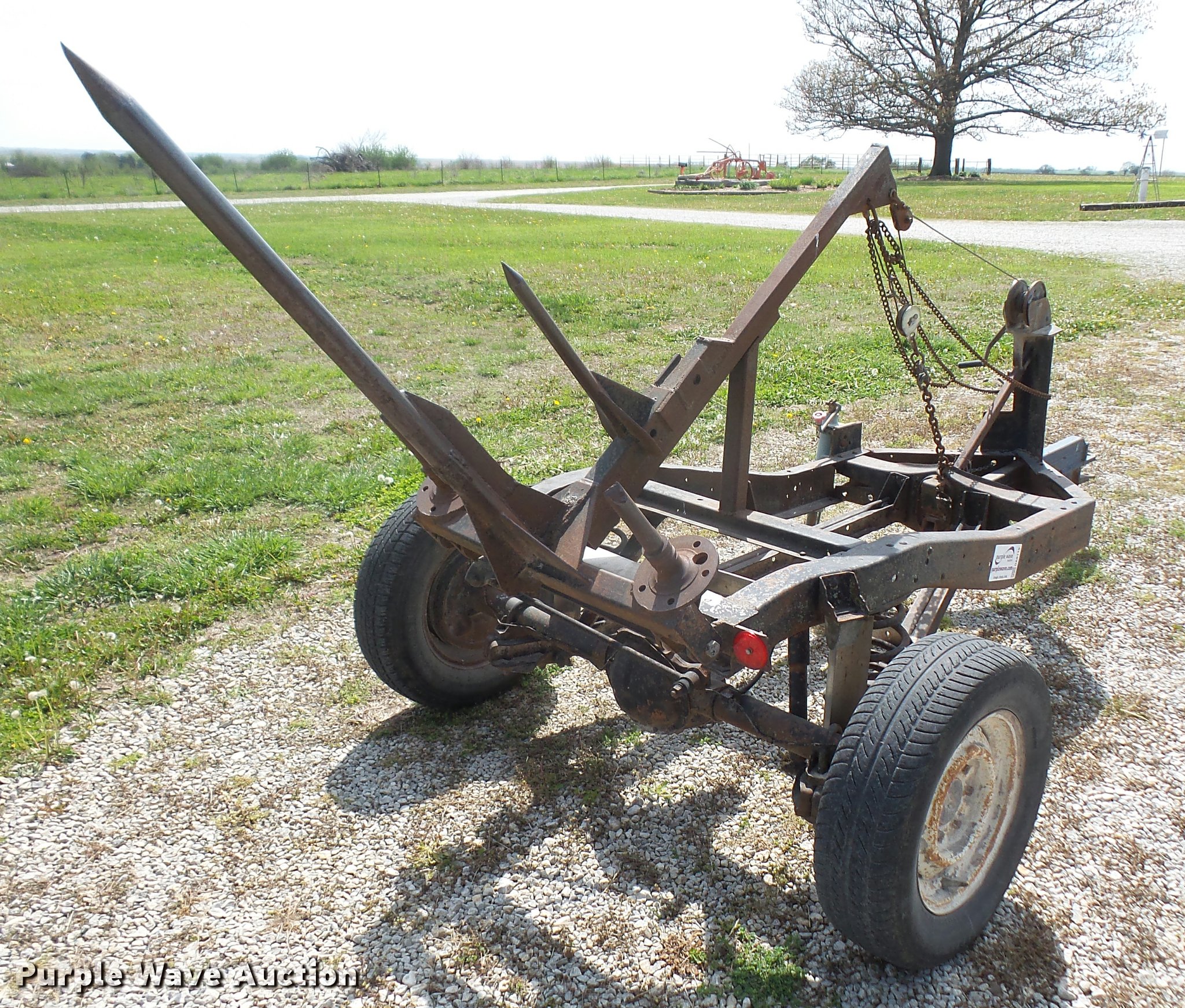 Purple Wave is selling a used Hay Handling in Kansas. This item is a Shop built round bale carrier with the following: 48" spike, Manual winch, Pin hitch, 15" tires