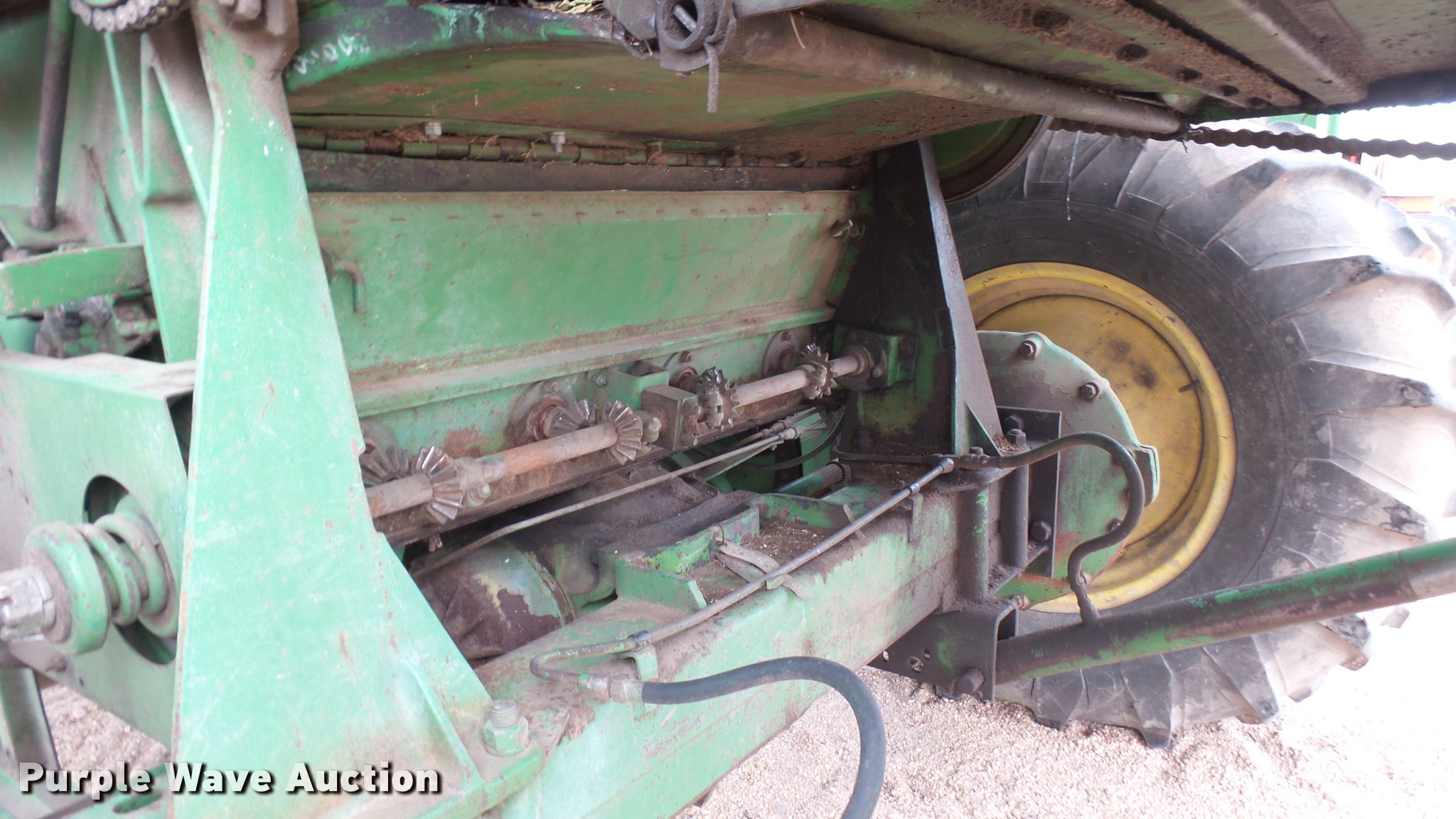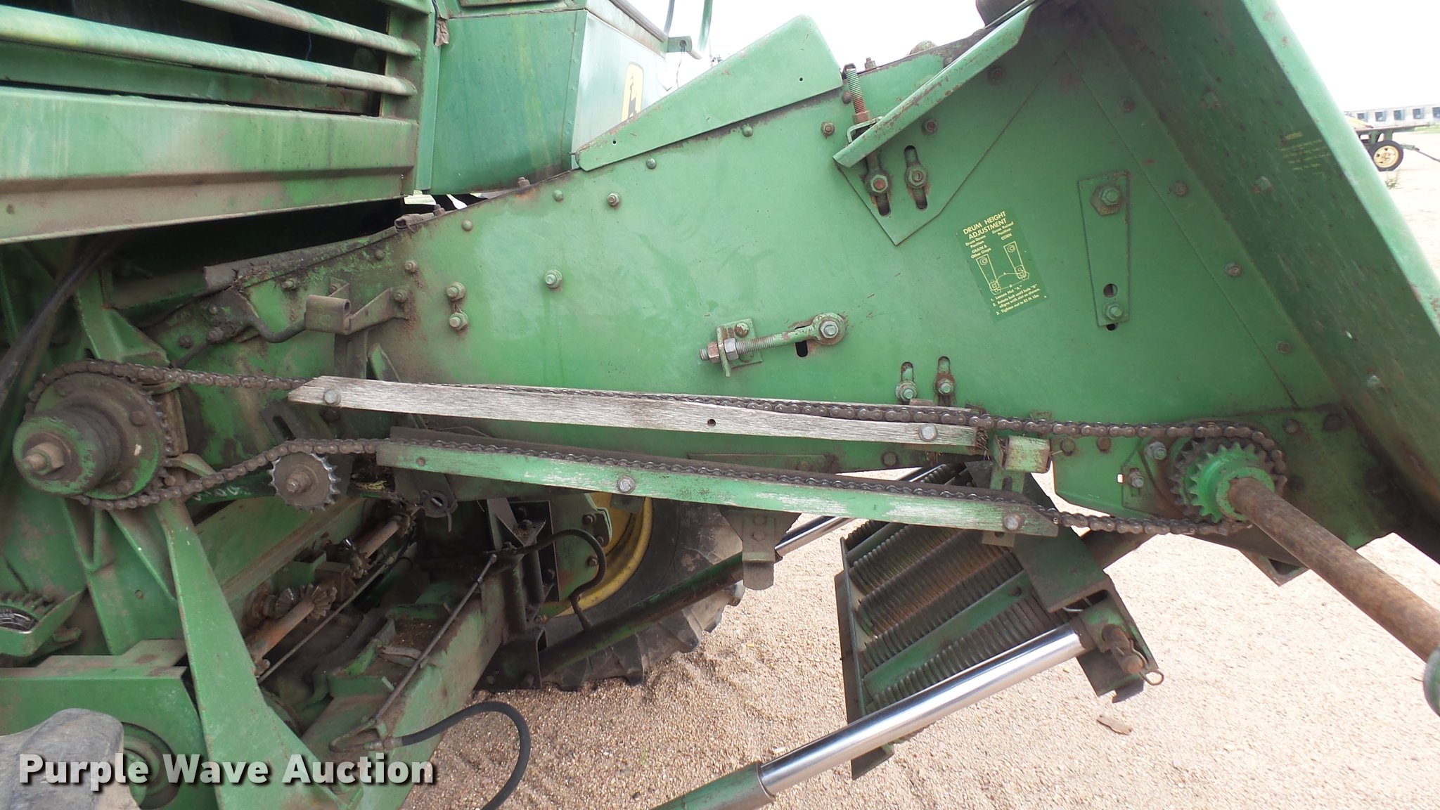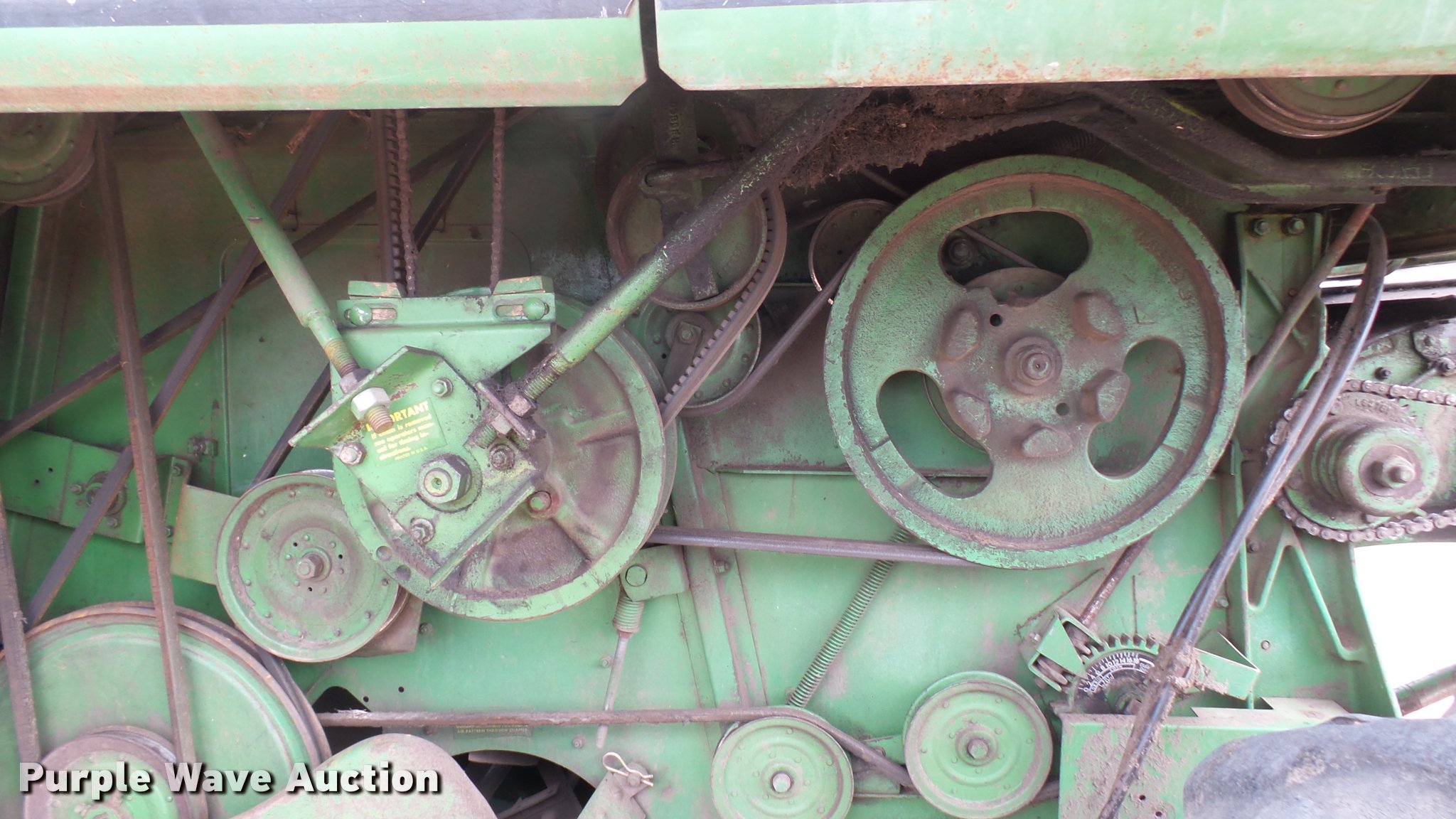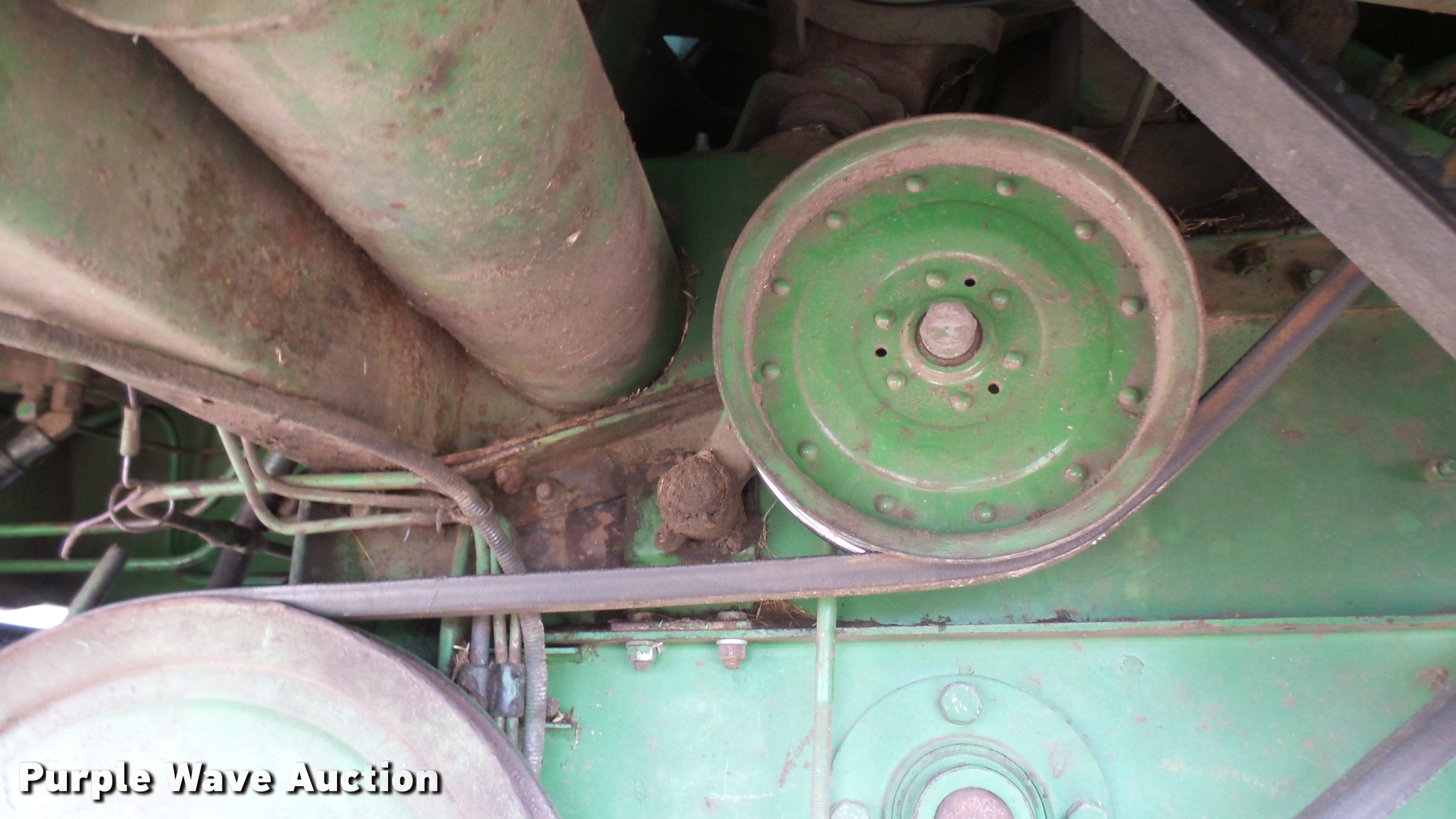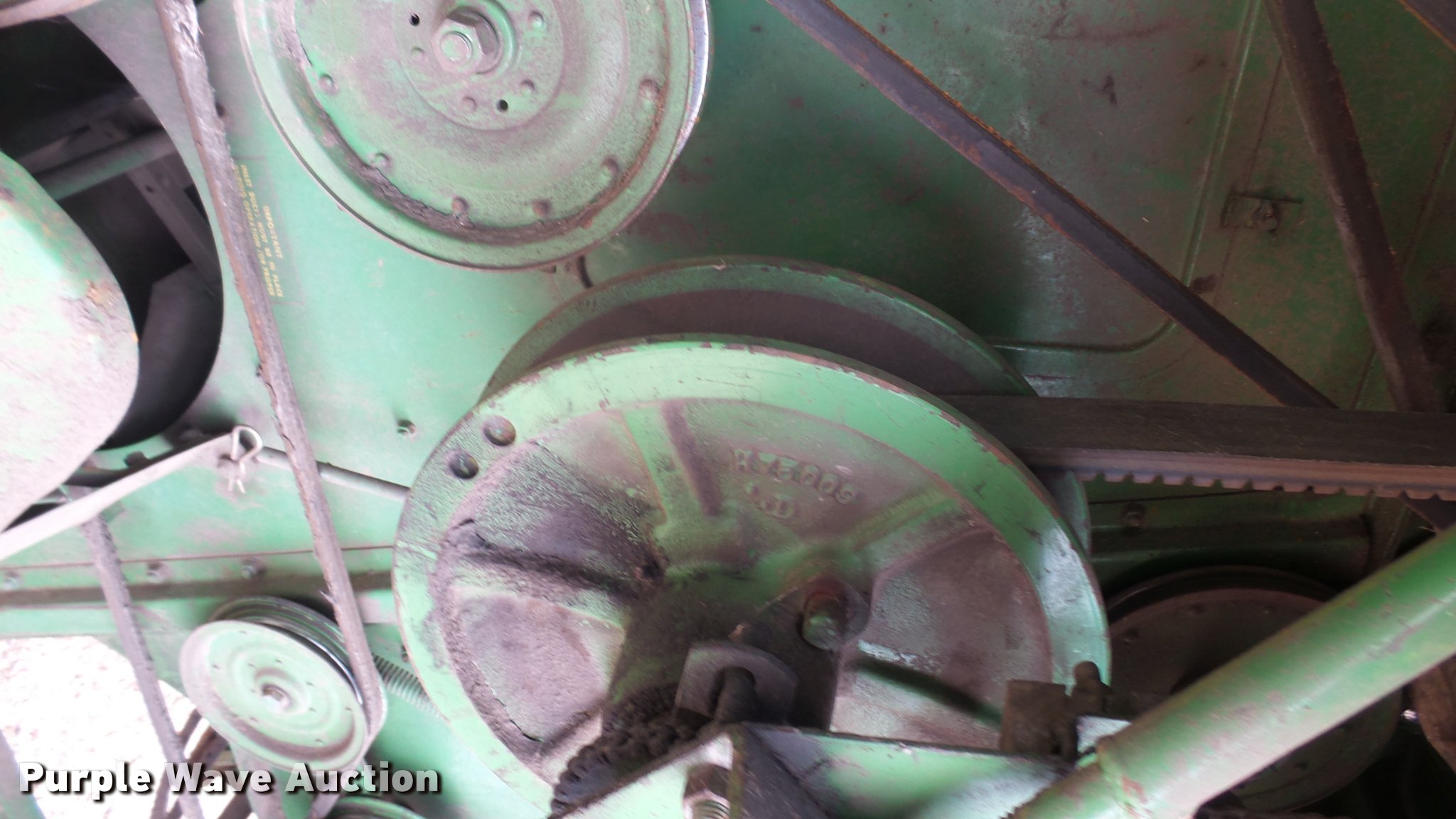 Purple Wave is selling a used Combine in Kansas. This item is a 1975 John Deere 4400 combine with the following: 3,042 engine hours on meter, John Deere six cylinder diesel engine, Hydrostatic transmission, 4F-4R gears, AC and heat, Work lights, Straw chopper, 18.4-26 front tires, 245/75R16 rear tires, Serial 15253H