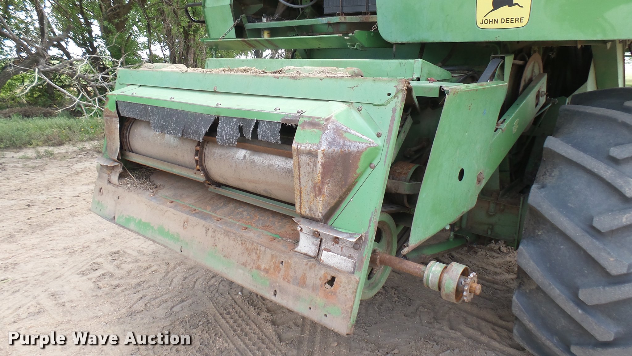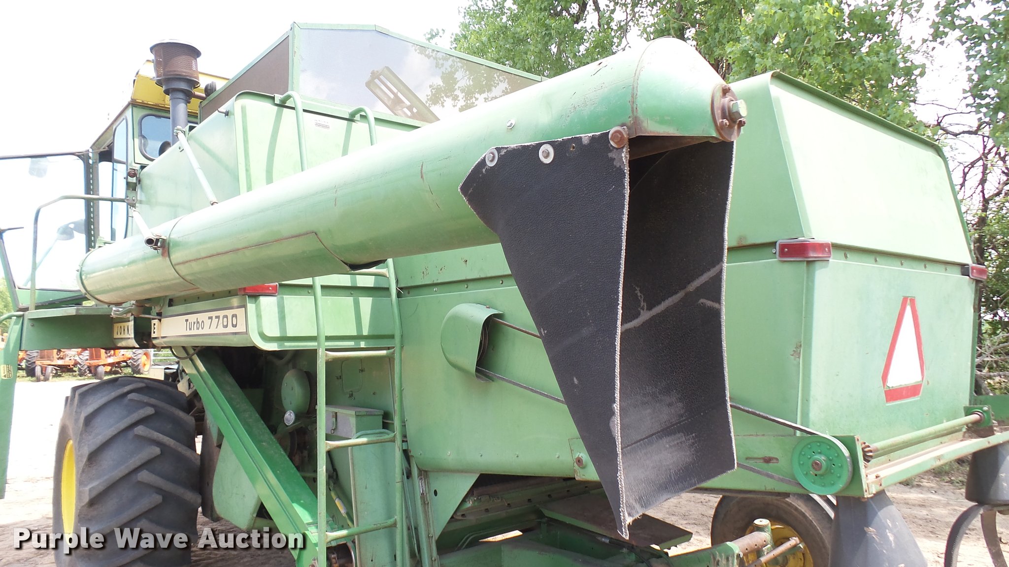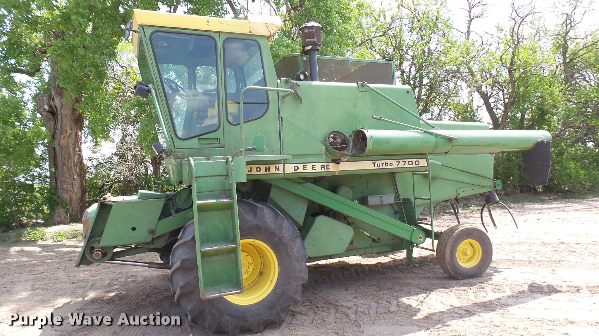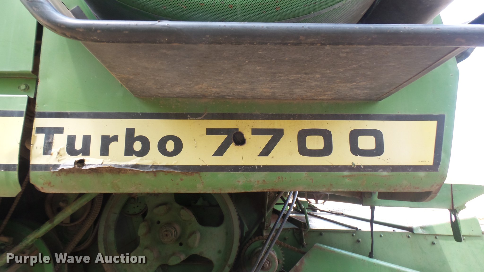 Purple Wave is selling a used Combine in Kansas. This item is a John Deere 7700 Turbo combine with the following: 3,658 engine hours on meter, John Deere six cylinder turbo diesel engine, Hydrostatic transmission, Single point header coupler, AC and heat, Straw chopper, 28L-26 front tires, 11.00-16 rear tires