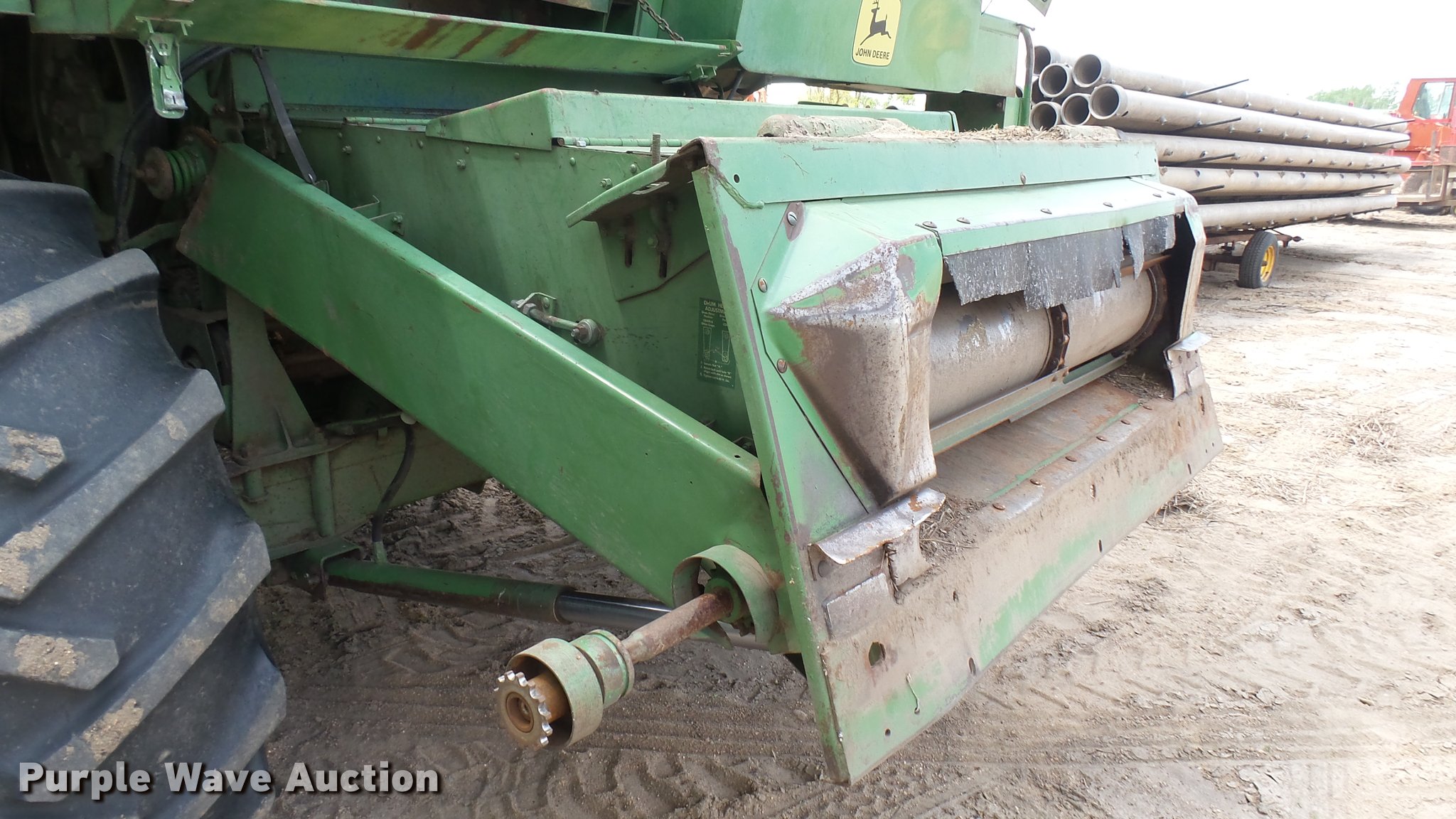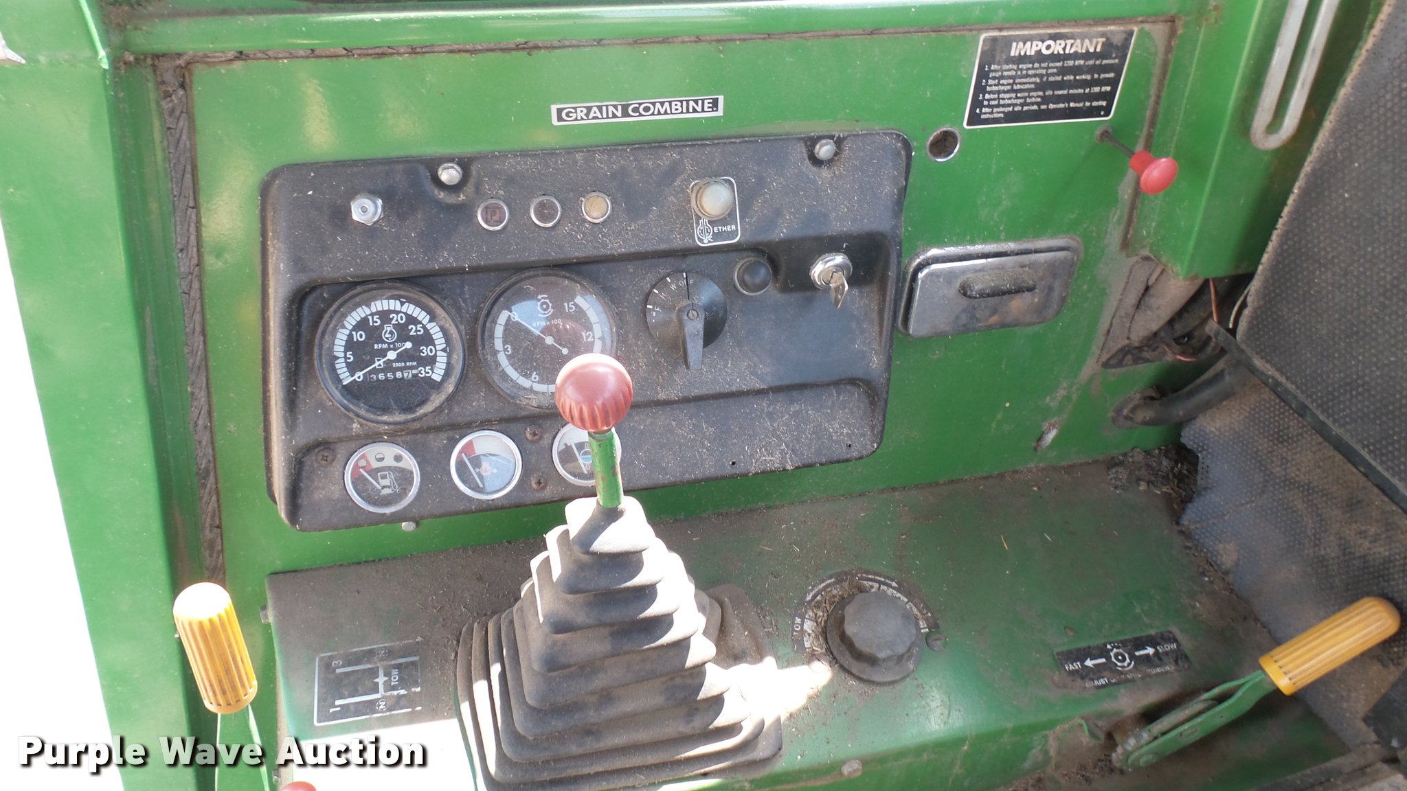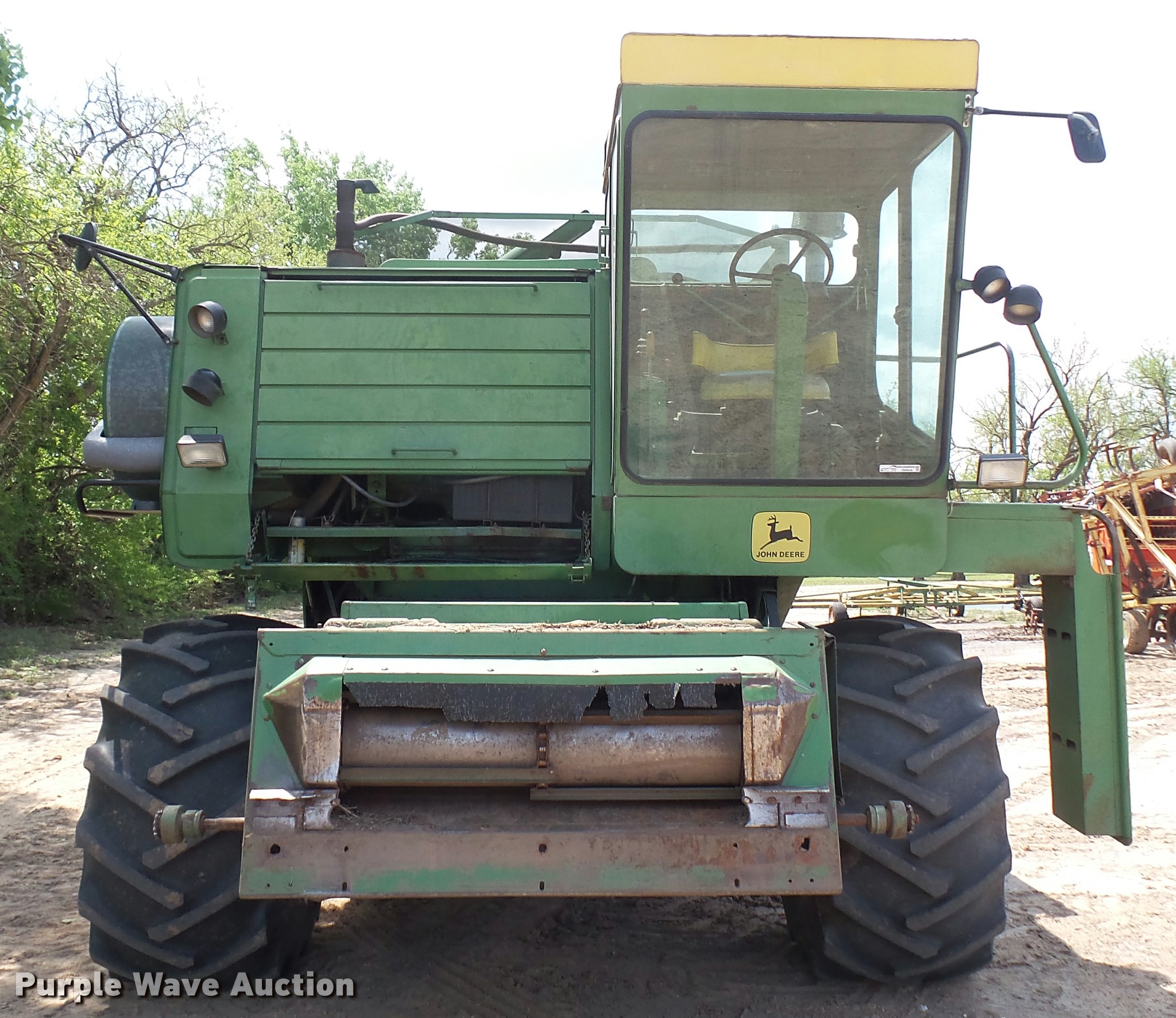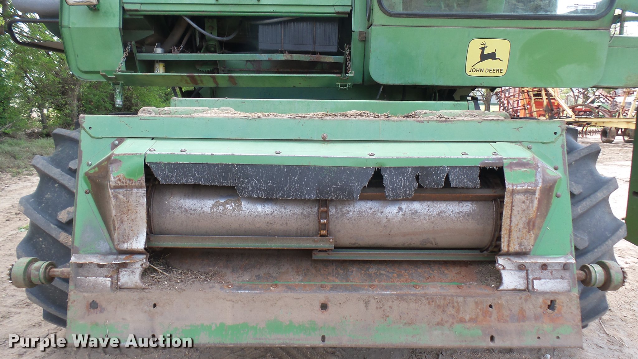 Purple Wave is selling a used Combine in Kansas. This item is a John Deere 7700 Turbo combine with the following: 3,658 engine hours on meter, John Deere six cylinder turbo diesel engine, Hydrostatic transmission, Single point header coupler, AC and heat, Straw chopper, 28L-26 front tires, 11.00-16 rear tires