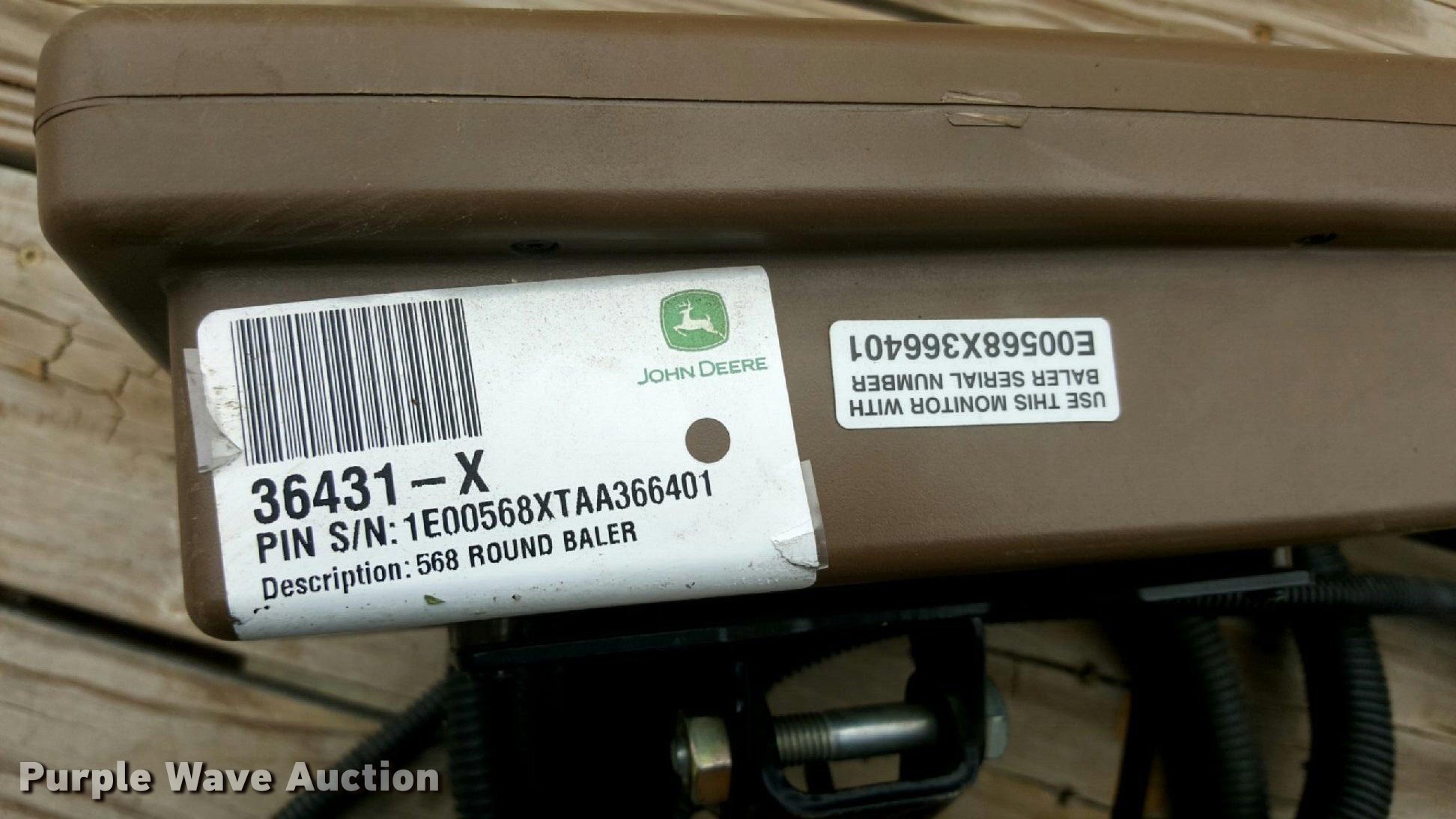 Purple Wave is selling a used Round Baler in Kansas. This item is a 2010 John Deere 568 Mega Wide Plus round baler with the following: Approx. 11,000 bales, 5' x 6' bale capacity, 78"W pickup, Hydraulic pickup lift, 4.00-8/3.75 gauge wheels, John Deere Bale Trak monitor, Twin twine tie, Net-wrap, Bale kicker, 1000 PTO, Clevis hitch, 21.5-16.1 tires, Serial 1E00568XTAA366401