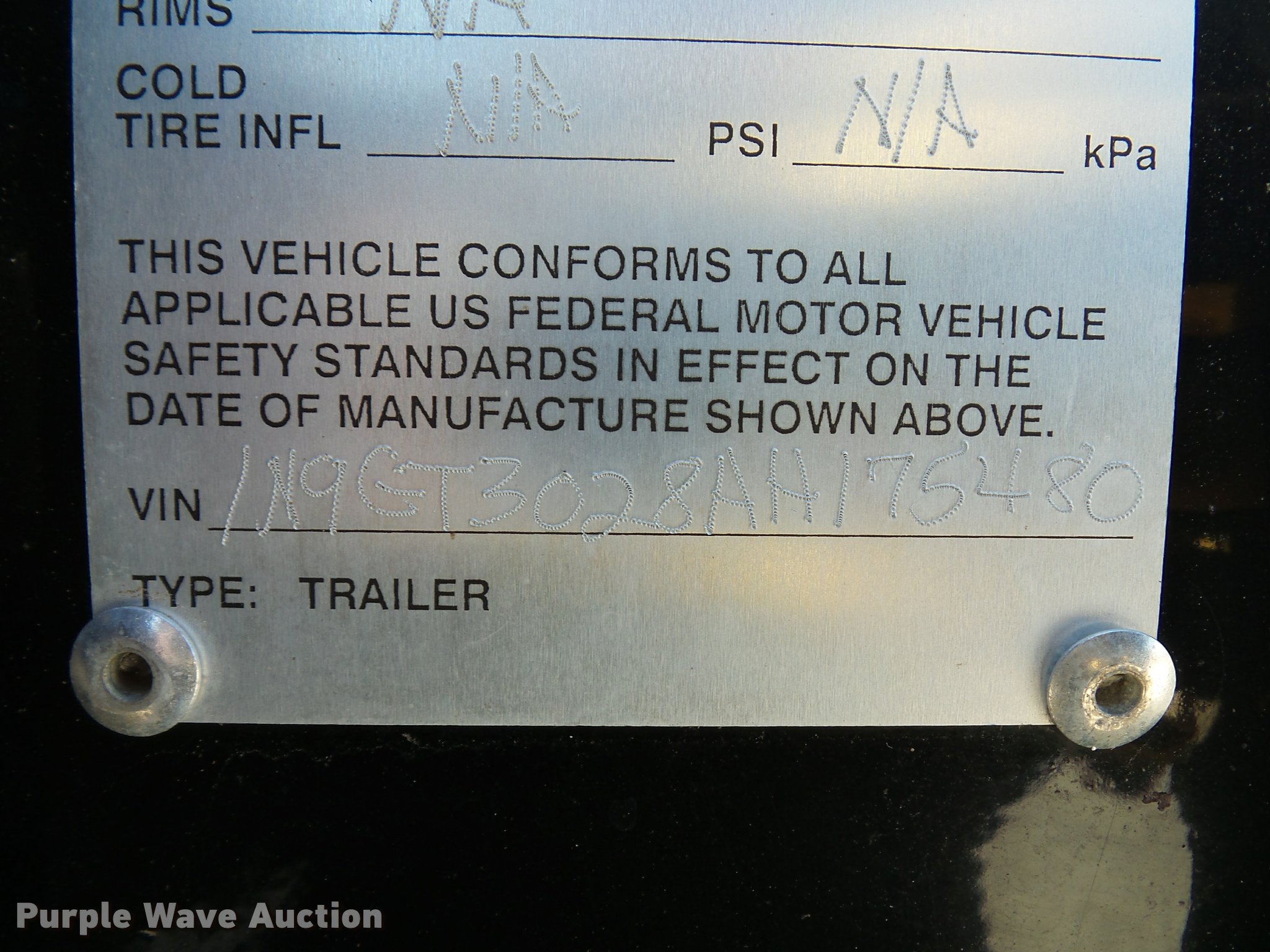 2010 Neville Built double hopper grain trailer. 30'L x 100"W, Tarp, Front and rear ladders, Fifth wheel hitch, Manual jacks, Spring suspension, Air brakes, Tandem axle, 11R24.5 tires, GVWR 68,000 lbs, GAWR 20,000 lbs, Spring suspension, Air brakes. Missouri title. Title distribution may be delayed up to 14 days from verification of funds. 1N9GT3028AH175480. 13816 Pleasant Prairie Rd. Napoleon, MO 64074