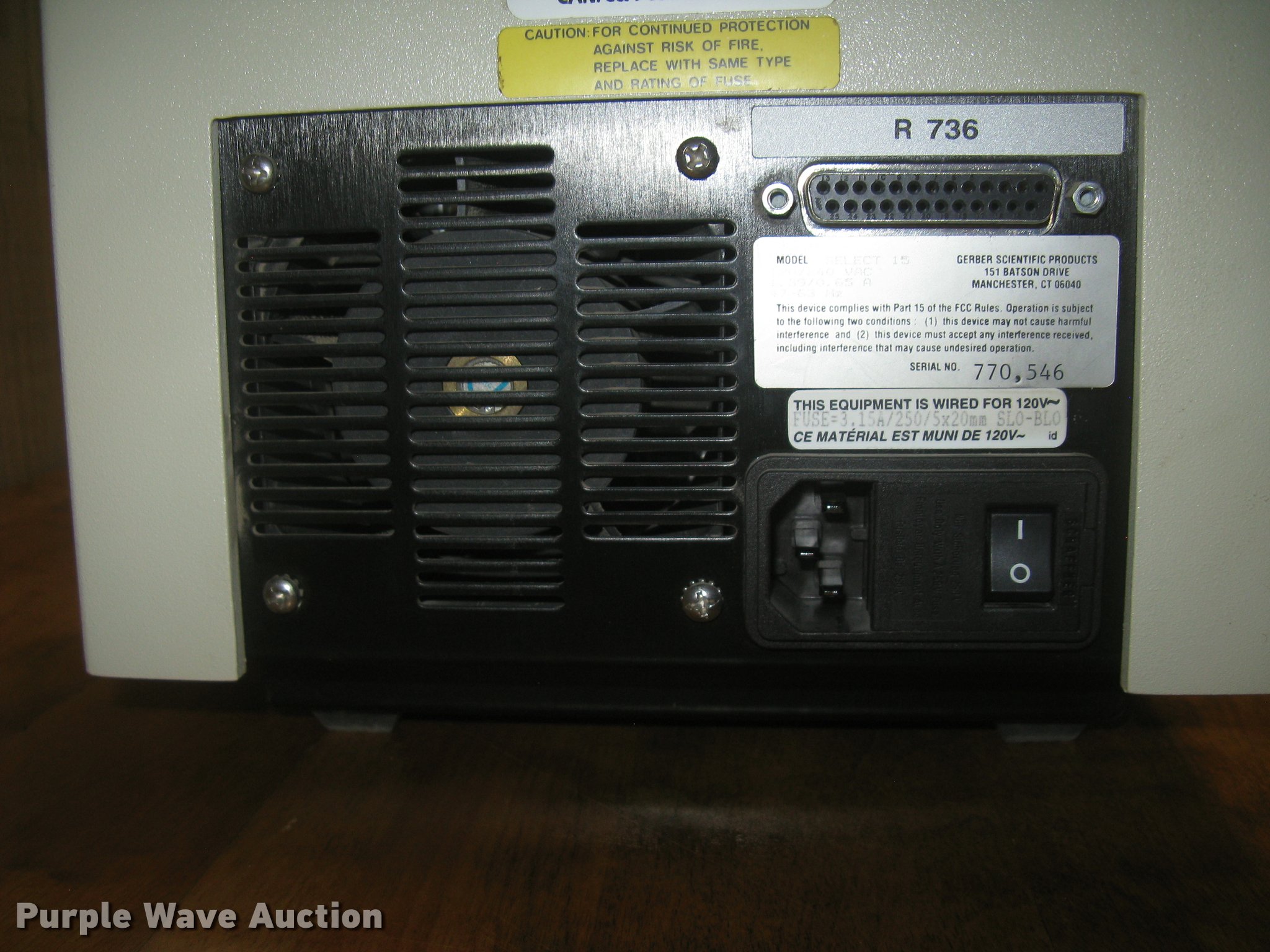 Purple Wave is selling a used Tools in Kansas. This item is a Gerber Select 15 vinyl cutter with the following: 15"W material capacity, Table-top unit, Accessories, Manuals, Creative 52XMX hard drive, 15" monitor, Keyboard, Serial 770.546