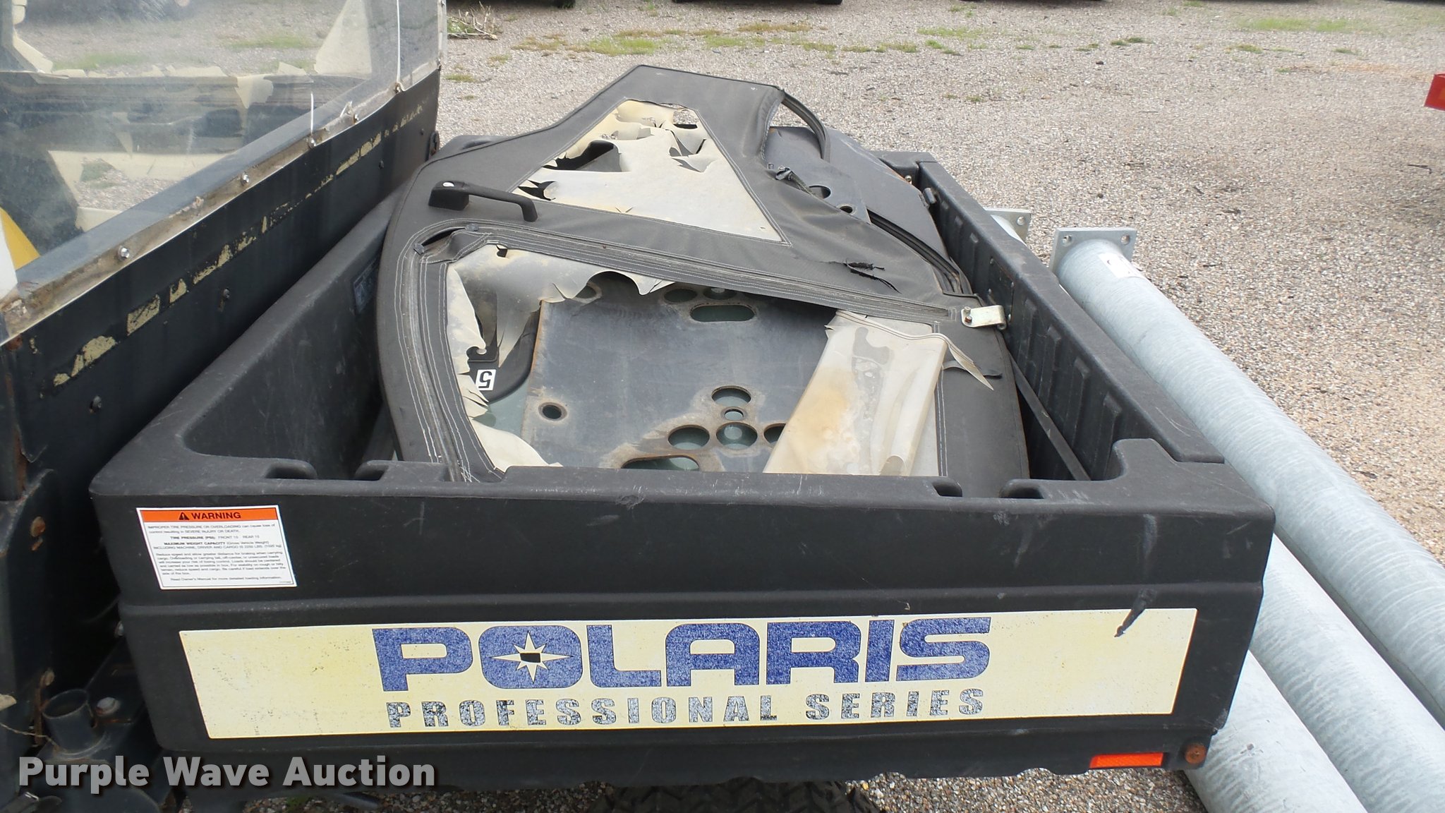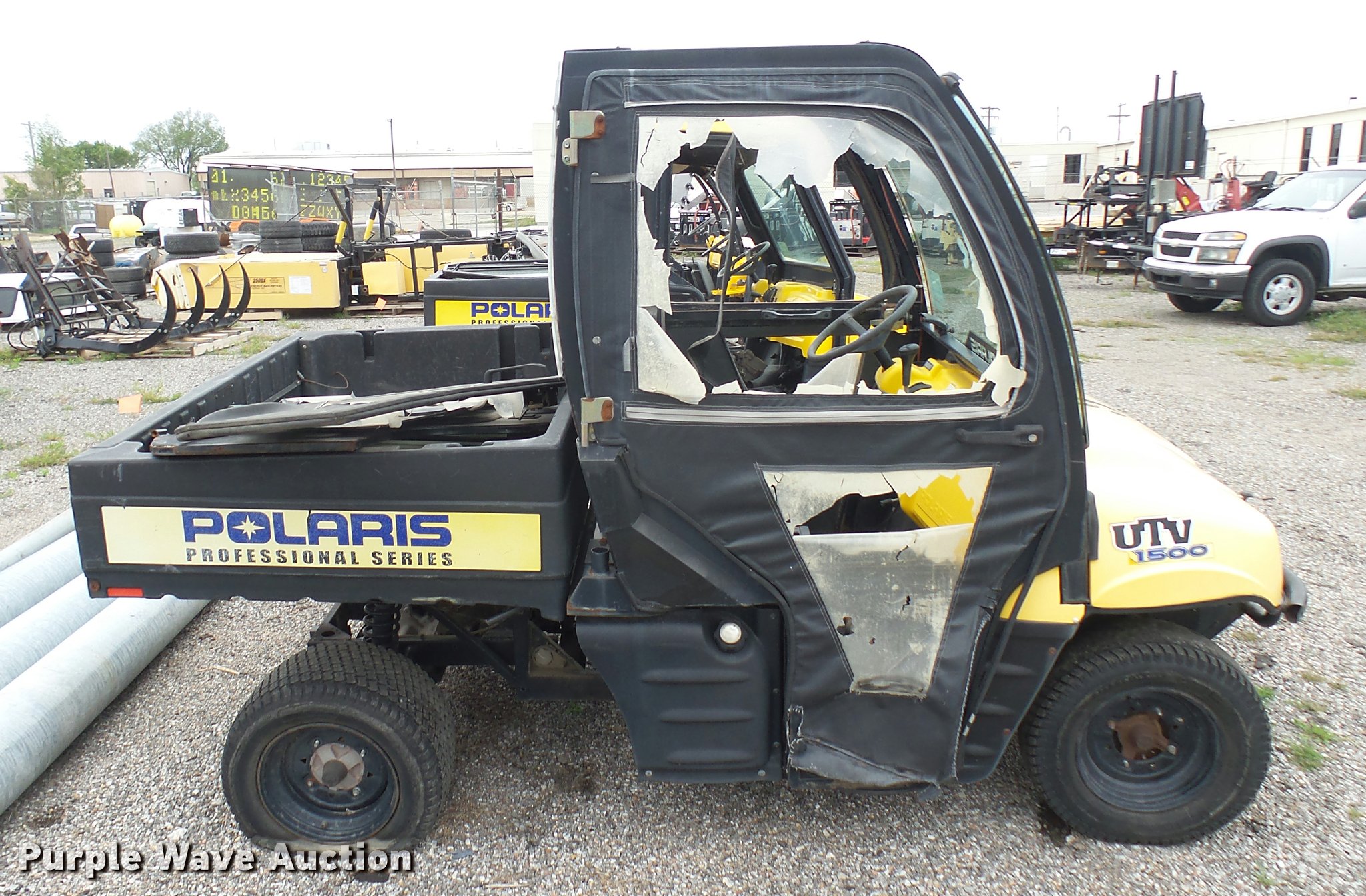 Purple Wave is selling a used Utility Vehicle in Kansas. This item is a 2003 Polaris 1500 utility vehicle with the following: 4,263 hours on meter, No engine, Automatic transmission, Lights, Plastic utility bed, 23x10.50-12 tires, Non-operational unit, parts only