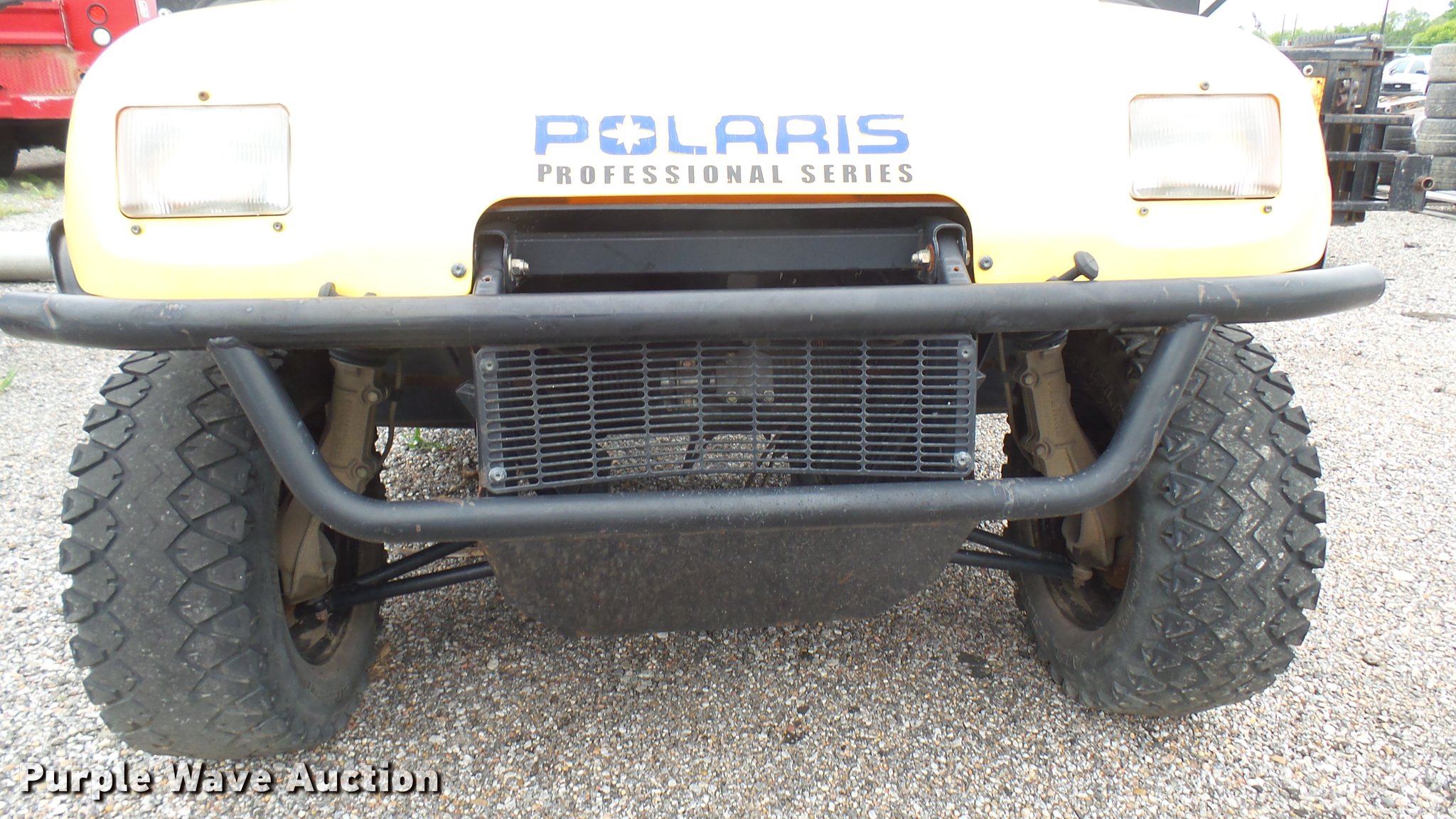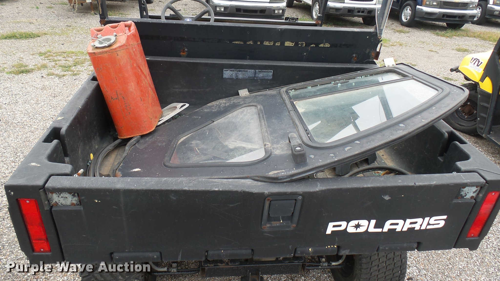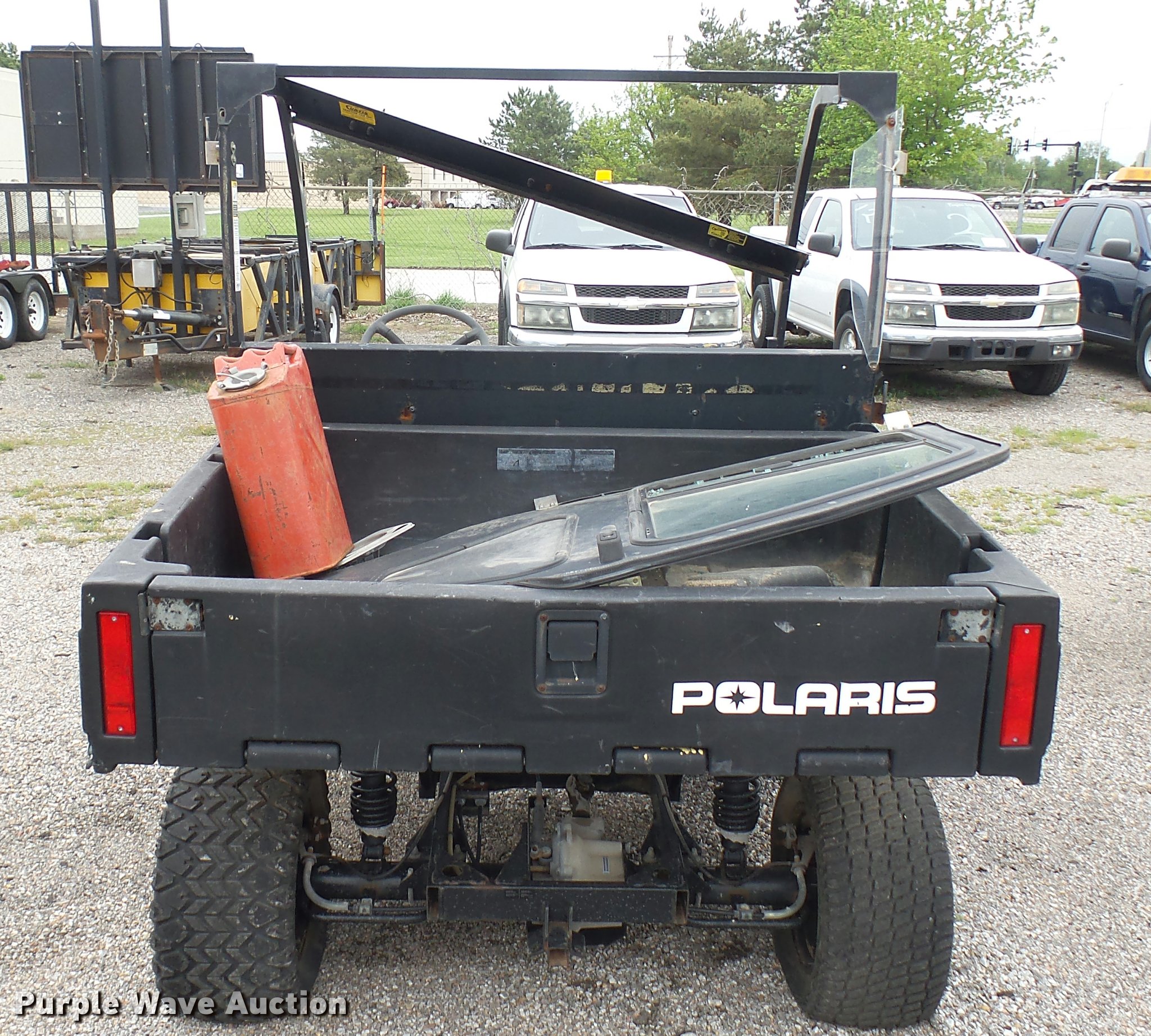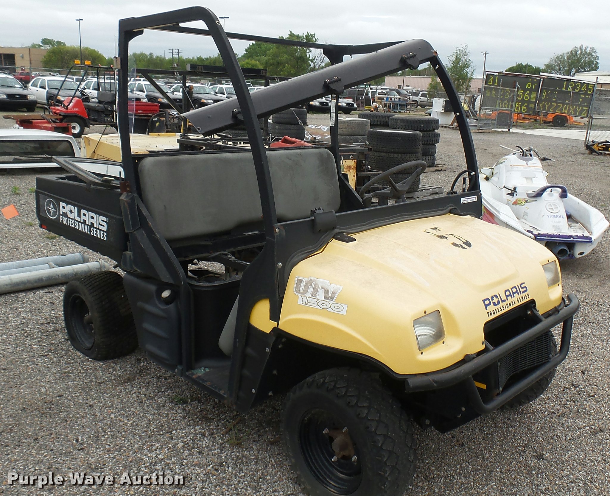 Purple Wave is selling a used Utility Vehicle in Kansas. This item is a 2003 Polaris 1500 utility vehicle with the following: 308 hours on meter, No engine, Automatic transmission, Lights, Plastic utility bed, 23x8.00-12 tires, Non-operational unit, parts only