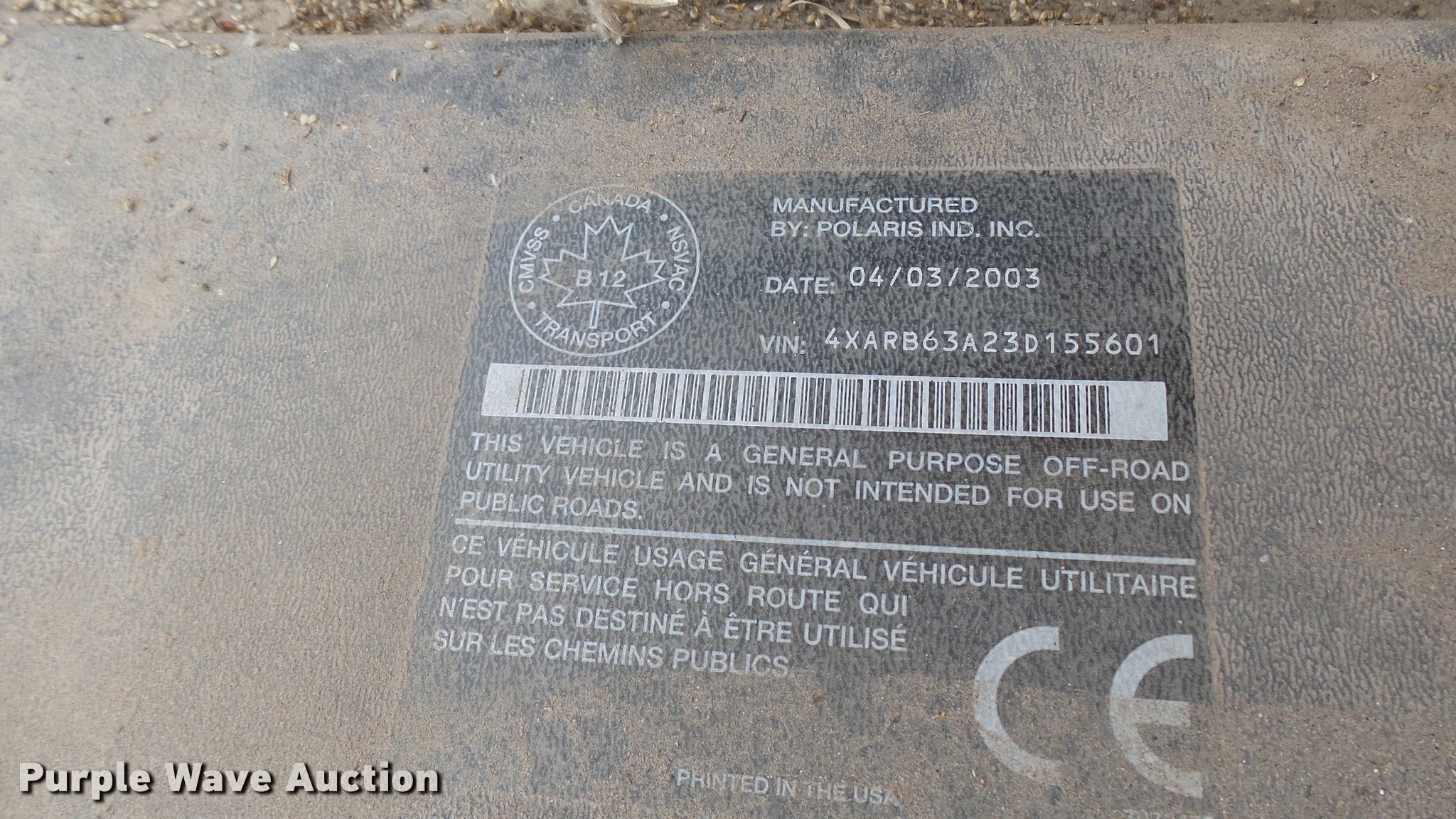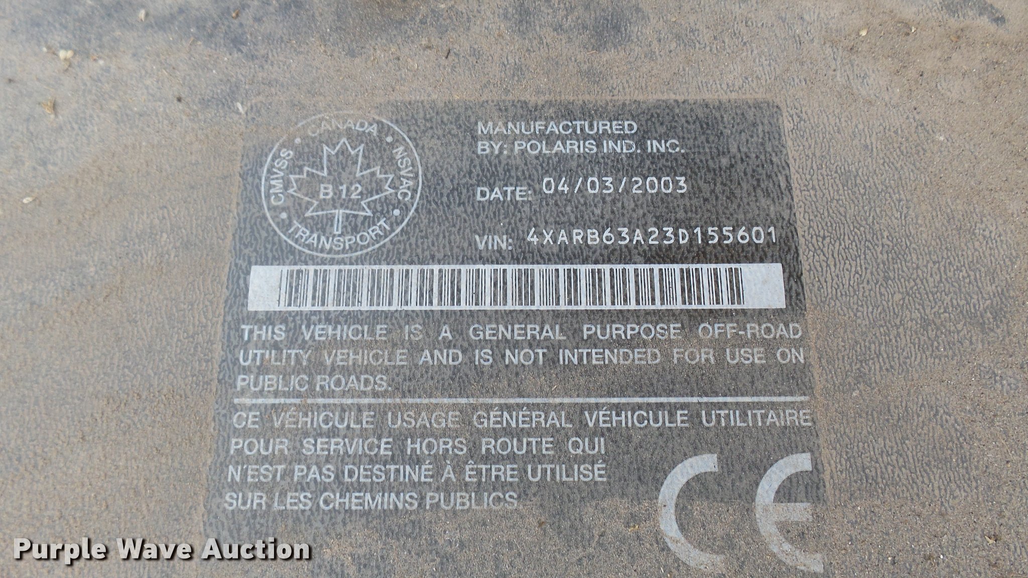 2003 Polaris 1500 utility vehicle | SOLD! May 23 City of Wichita Auction