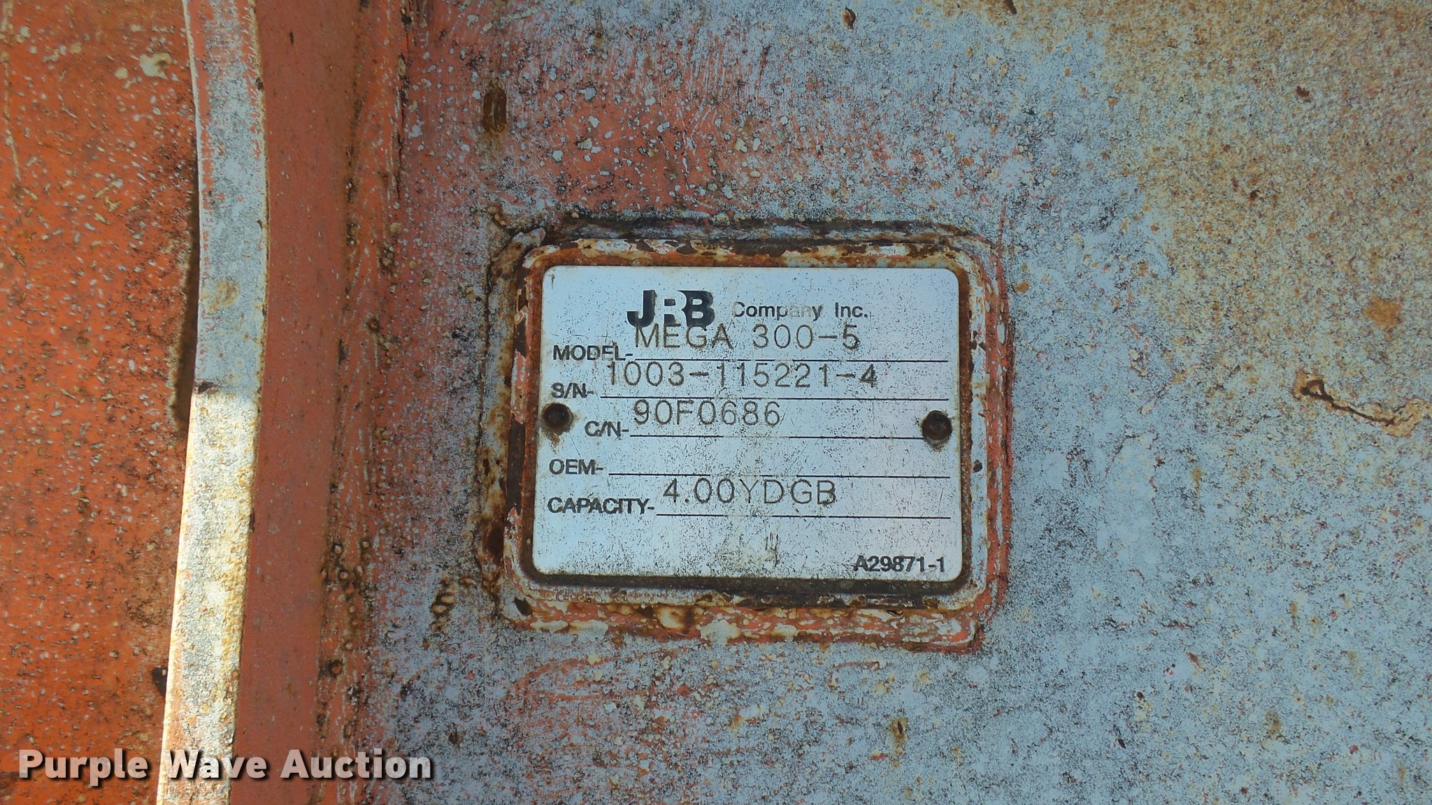 Purple Wave is selling a used Wheel Loader Attach. in Kansas. This item is a JRB Mega 300-5 grapple bucket with the following: 9.5'W, 4 yd. GB capacity, Dual 30"W grapples, Bolt-on cutting edge, Serial 1003-115221-4