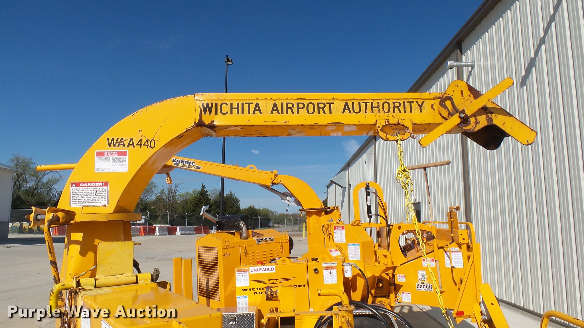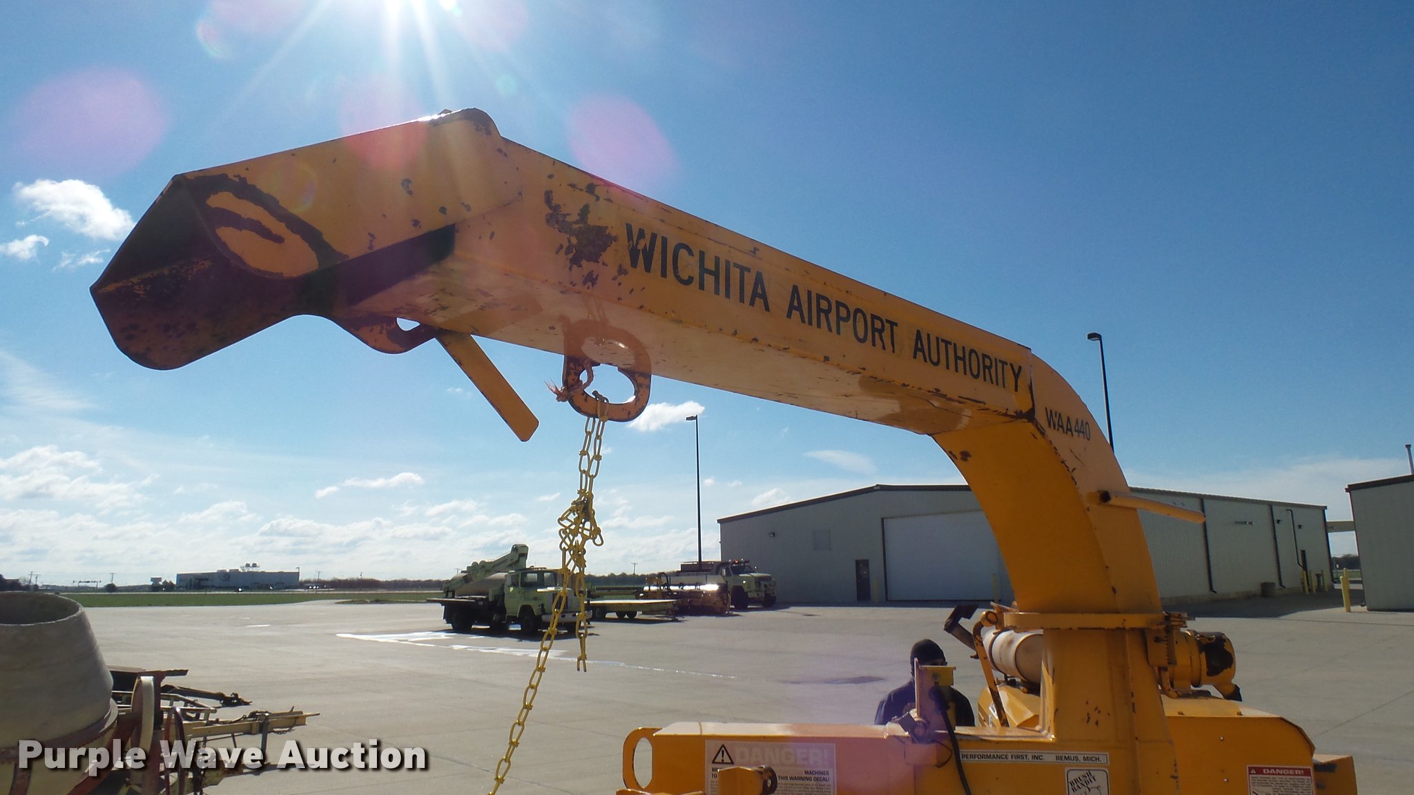 1996 Brush Bandit 150XP wood chipper. 947 hours on meter, Great Lakes 3.0LA four cylinder gas engine Serial 001187, 16" throat, 36" hopper, Oscillating discharge, 9.50-16.5LT, Serial 010782, Unit# WAA440. Kansas title. 010782. City of Wichita Airport Authority Yard. 7710 W Southwest Blvd. Wichita, KS 67215
