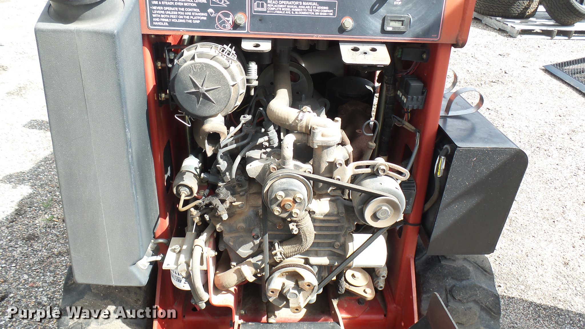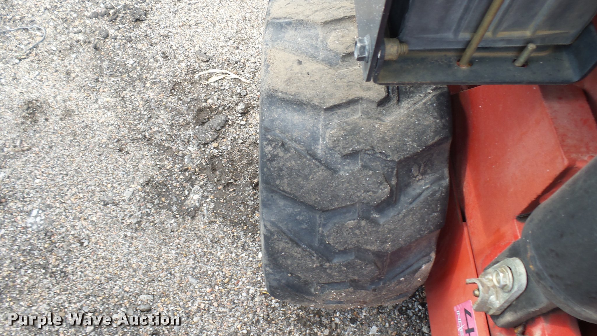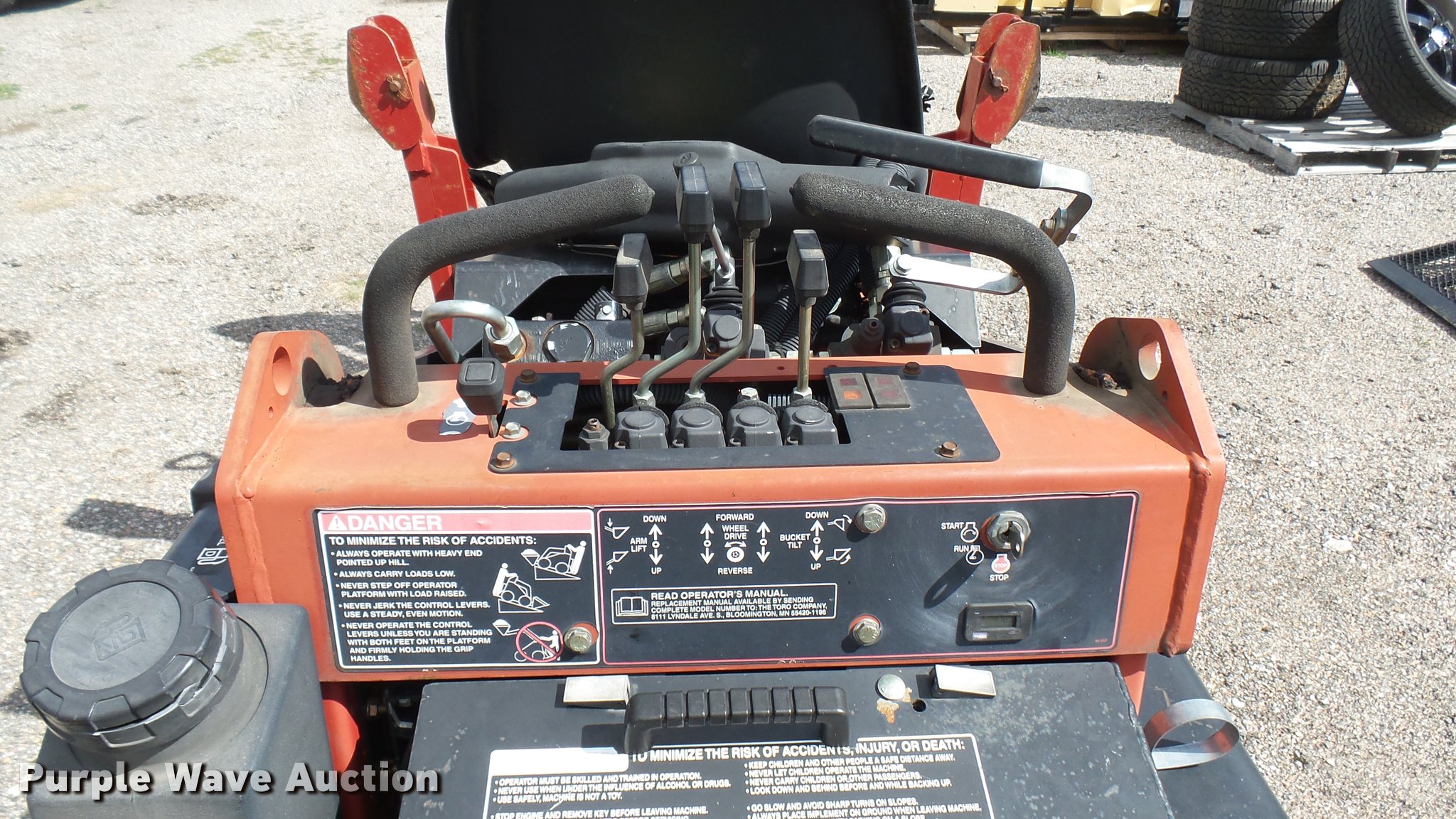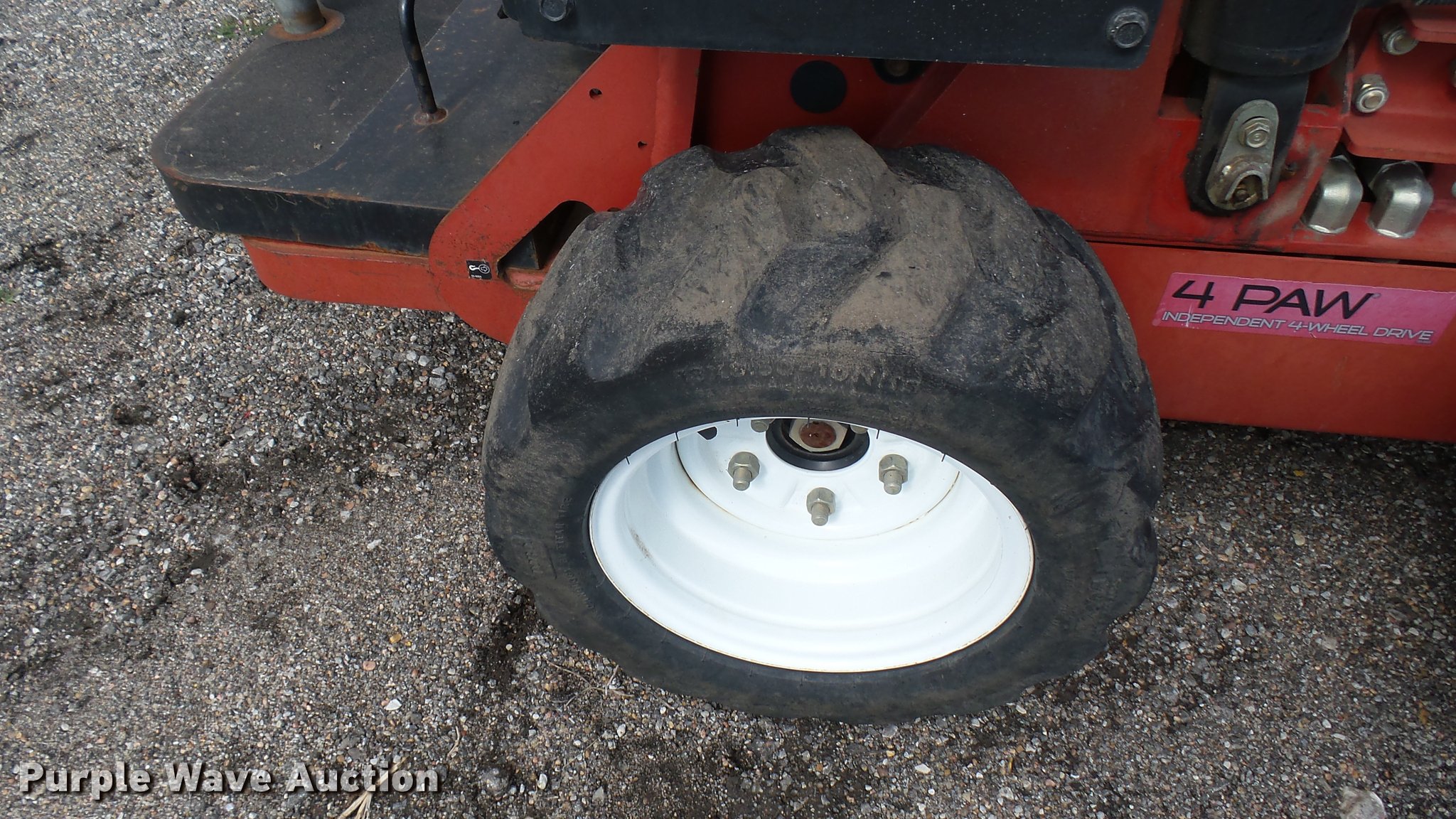 Purple Wave is selling a used Compact Utility Loader in Kansas. This item is a Toro Dingo 320D compact utility loader with the following: 470 hours on meter, Kubota three cylinder diesel engine, Hydrostatic transmission, Independent four wheel drive, Operators platform, 4-Paw, Rear counterweight, 18x8.50-10 tires, Serial 190884, Toro backhoe attachment, Model 23163, Two stick controls, 36" stick, 12"W bucket, Three teeth, Operators seat, Hydraulic outriggers, Toro 22414 blade, 48"W, Weld-on cutting edge, Hydraulic angle, Toro loader bucket, 40"W, Weld-on cutting edge, Toro 22470 trencher attachment, 48" bar, 6"W trench, Crumber, Toro auger attachment, (2) dirt bits, Toro fork attachment, 30"W carriage, 36"L fork, Unit# 000823