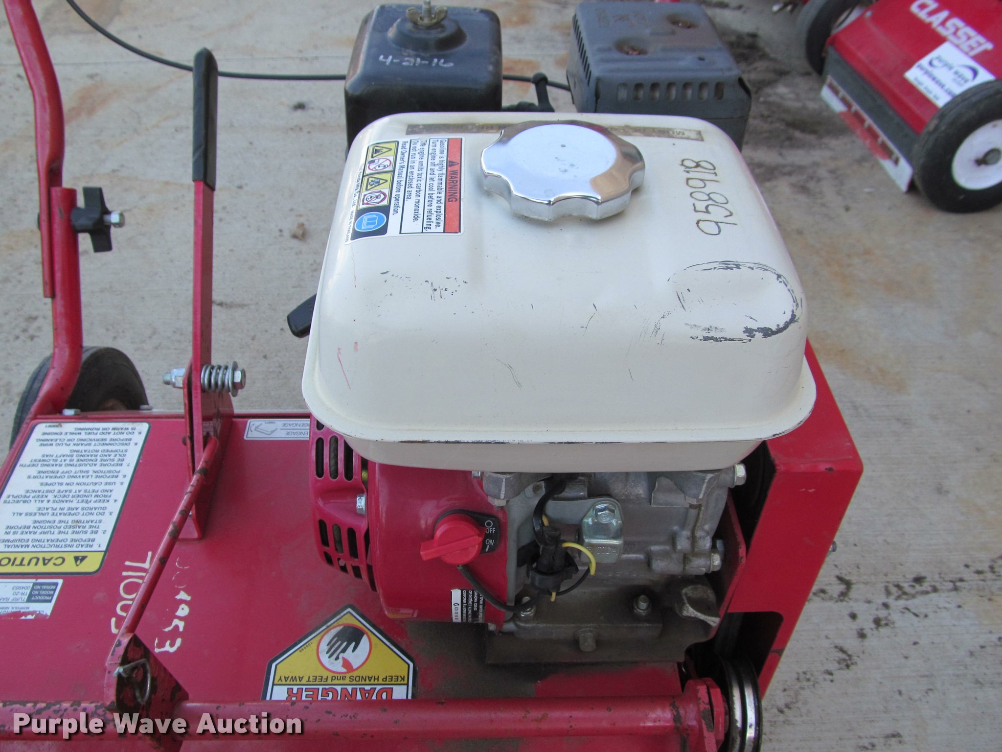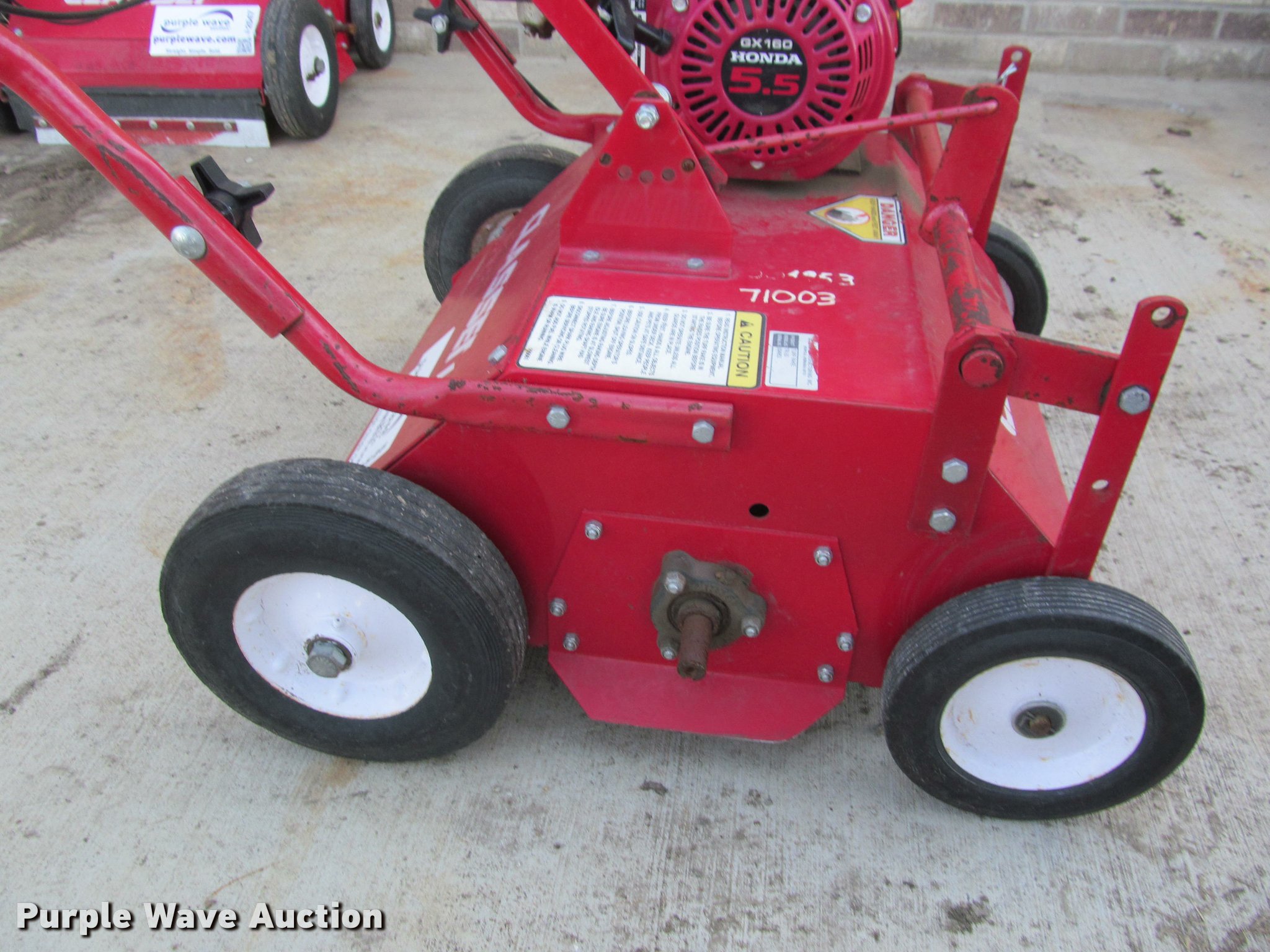 Purple Wave is selling a used Lawn and Garden in South Dakota. This item is a Classen TR-20 turf rake with the following: Honda gas engine, 5.5 HP, 20" working width, Serial 004953, Unit# 71003