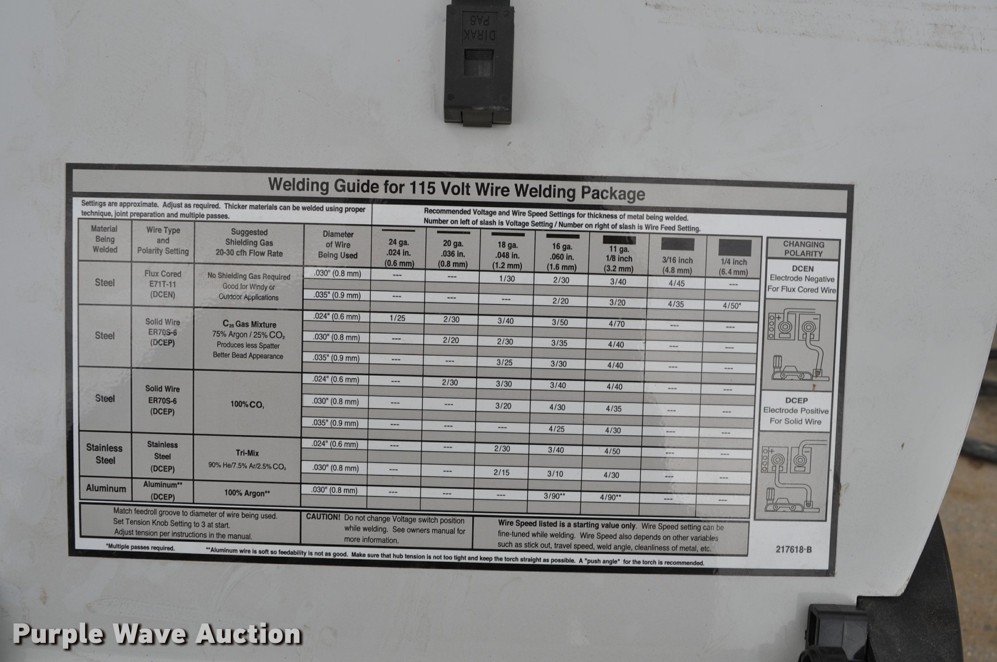 Purple Wave is selling a used Welder (Manual) in South Dakota. This item is a Hobart Handler 140 wire feed welder with the following: 25 to 140 amp output, 110V, Serial MB051338Y, Unit# 91002