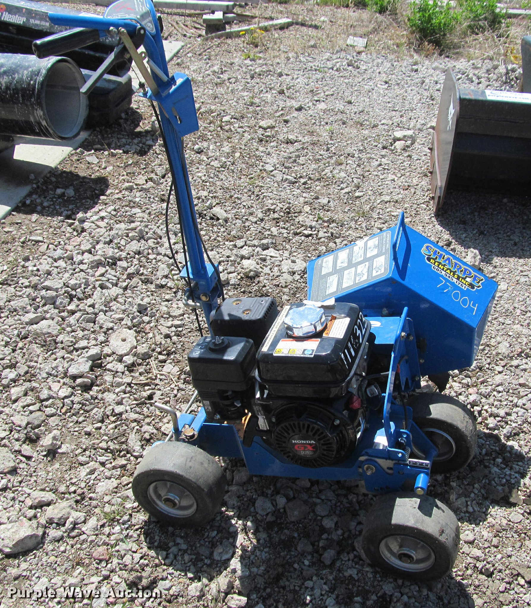 Purple Wave is selling a used Lawn and Garden in South Dakota. This item is a Blue Bird Bed Bug edger with the following: Honda GX160 gas engine, 9x3.50 tires, Serial 10047813, Unit# 77004