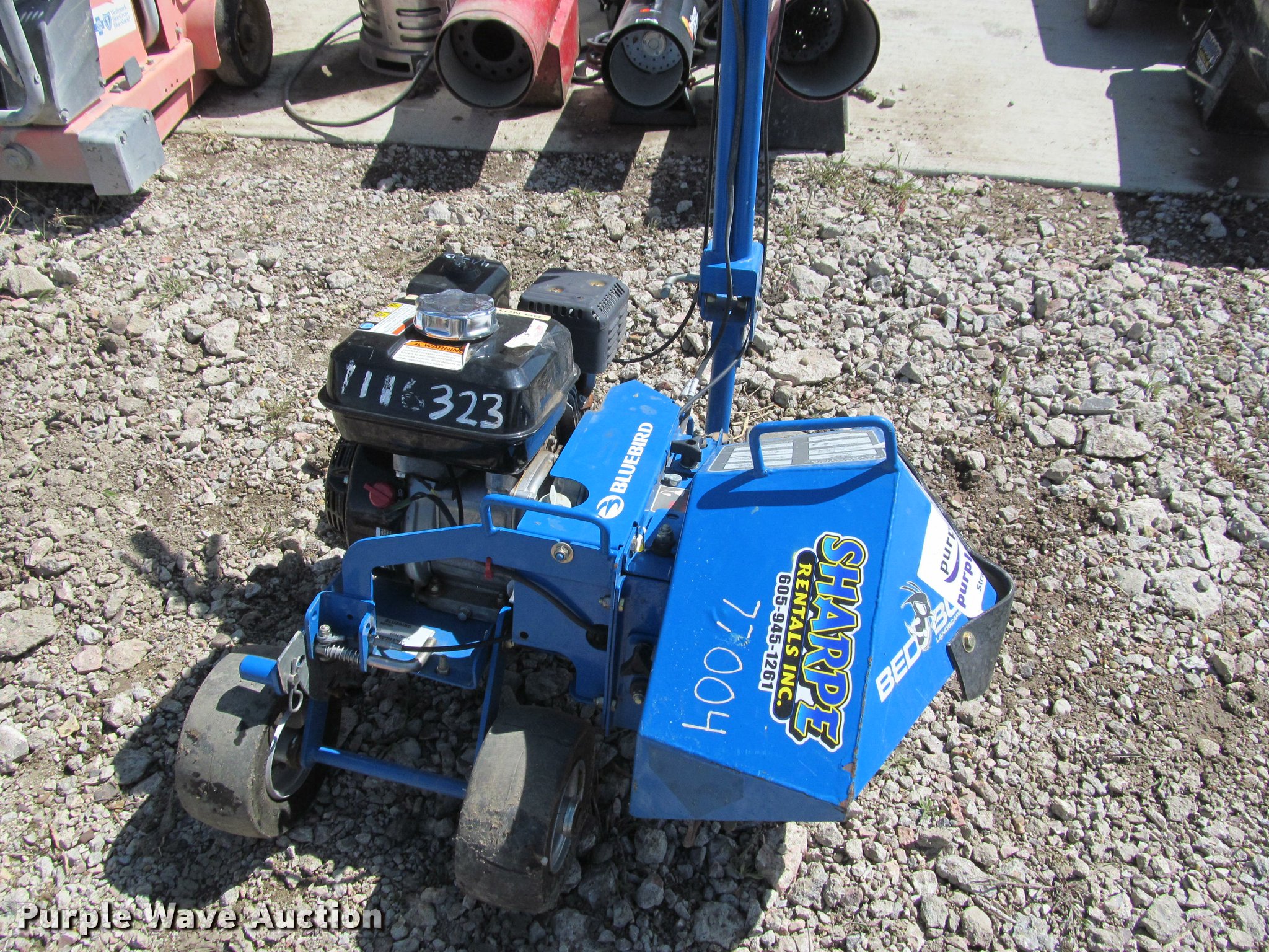 Blue Bird Bed Bug edger. Honda GX160 gas engine, 9x3.50 tires, Serial 10047813, Unit# 77004. Sharpe Rentals, Inc. - Inspection available May 18 and 19. 720 N Garfield Ave. Pierre, SD 57501