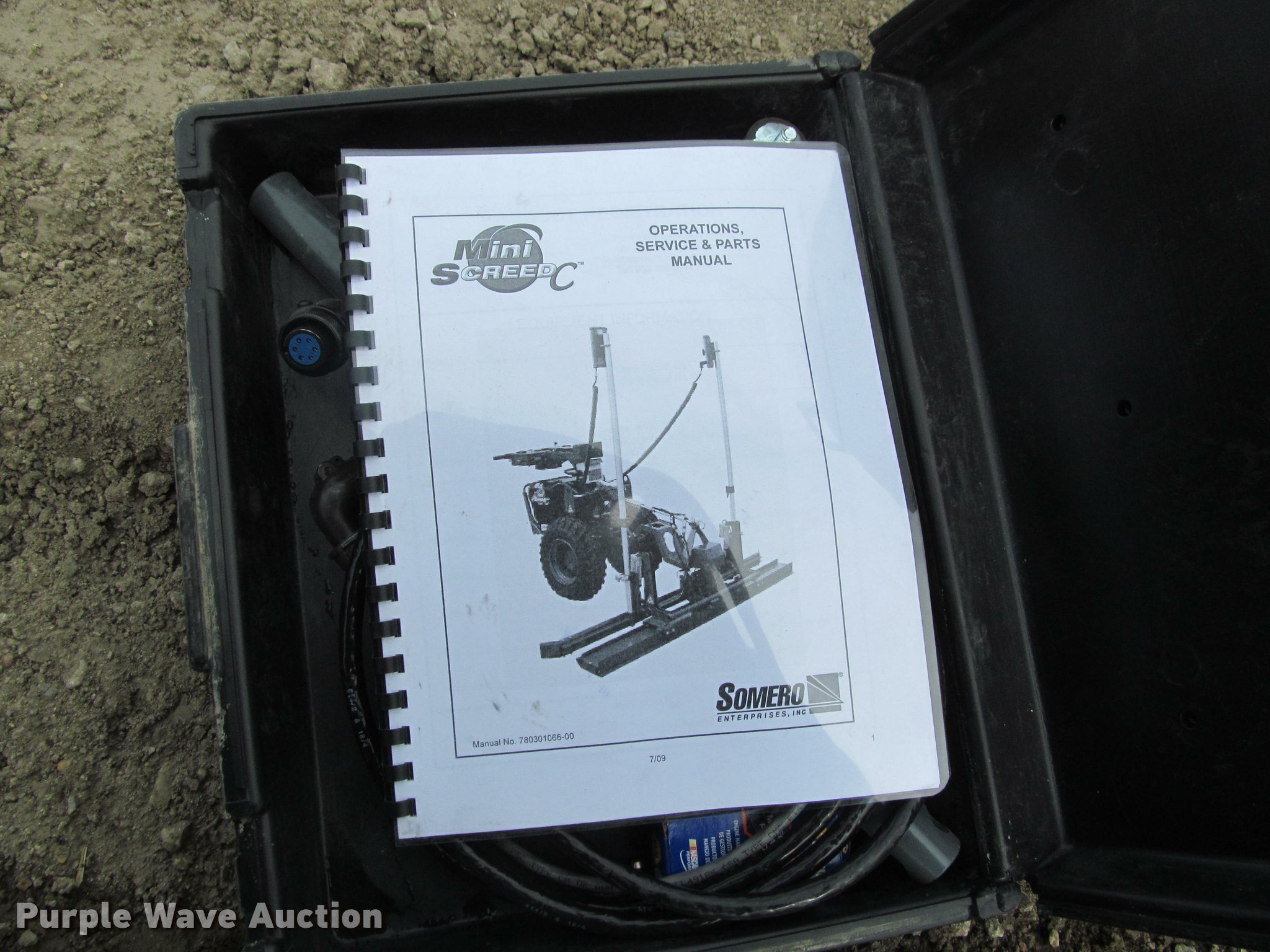Purple Wave is selling a used Paver or Screed in South Dakota. This item is a Somero mini screed with the following: Subaru 6FJXS 169cc single cylinder gas engine, Forward and reverse, 81"W vibratory screed, Dual elctric control arm height, Weights, Work lights, (2) Milville K771 90/100-14 tires, (2) SSR laser receivers, Serial 1495, 1422, Cases, Additional parts, (2) AT25 x 8-12 spare tries, Operator, parts, and service manuals, Serial 55118-0510, Unit# 55008
