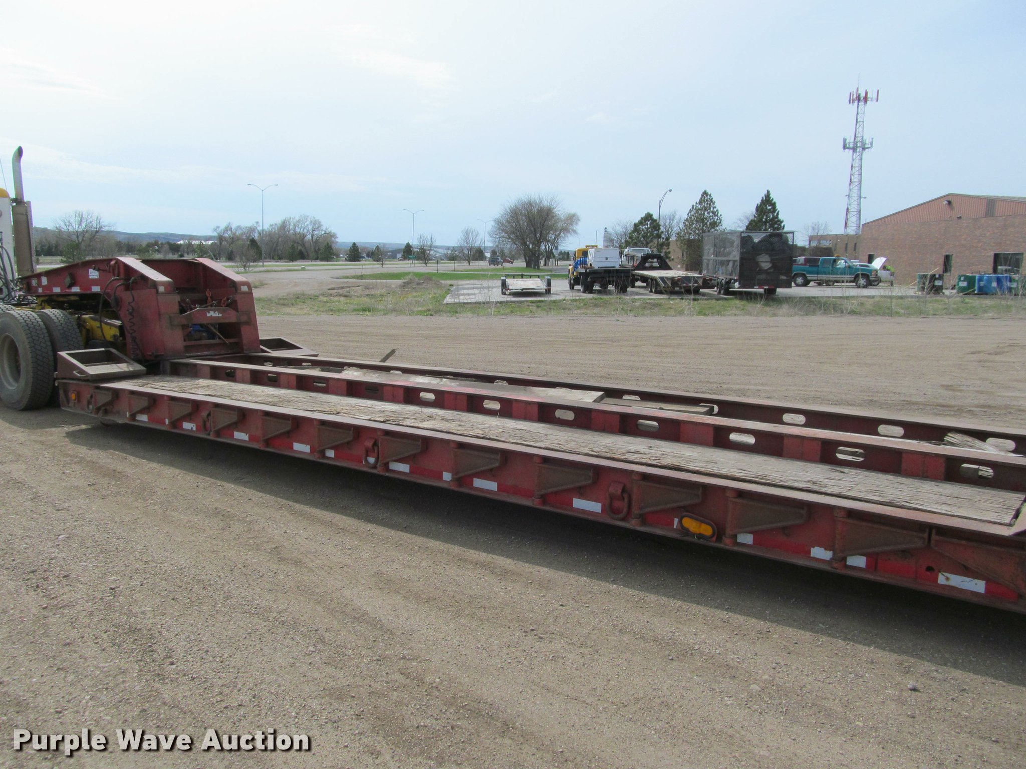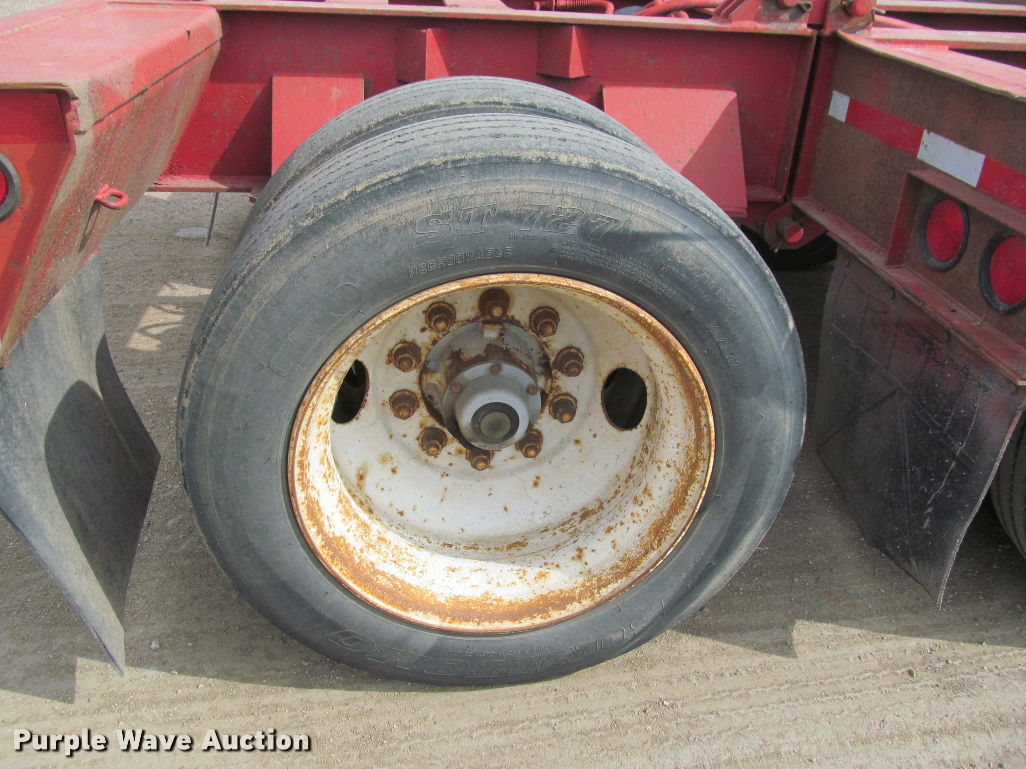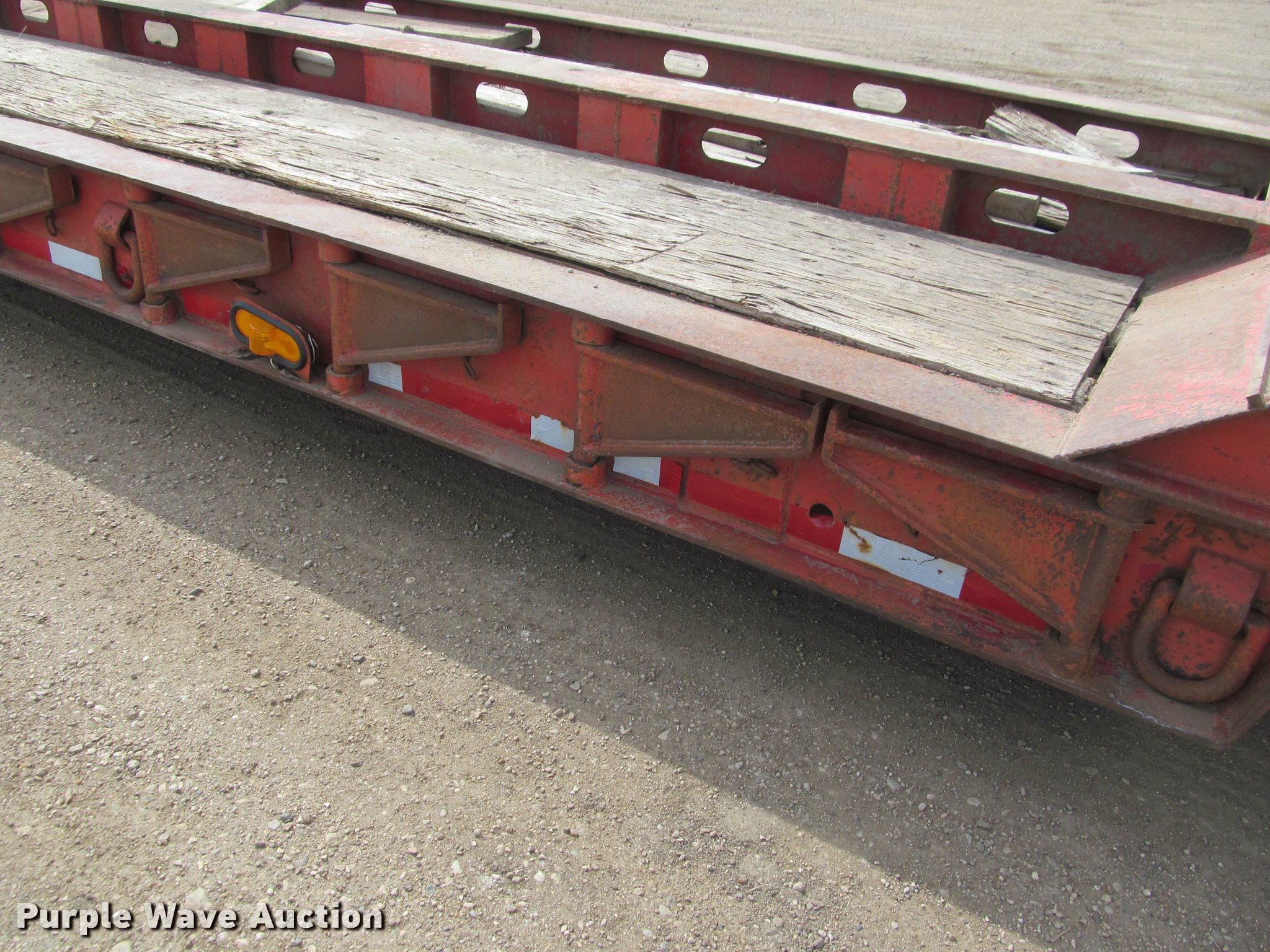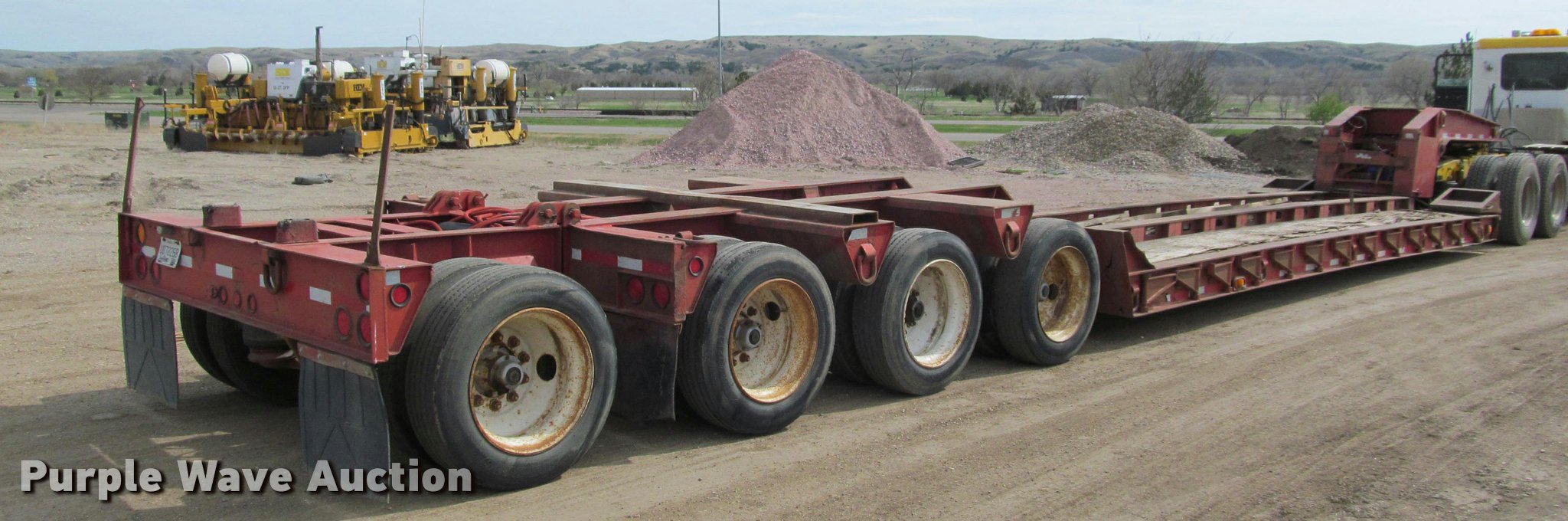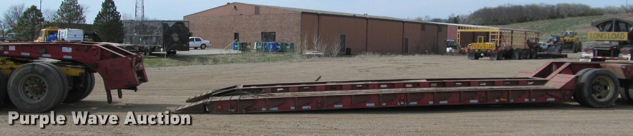 Purple Wave is selling a used Equip. Trailer in South Dakota. This item is a 1991 Trail King lowboy equipment trailer with the following: Approx. 54' overall length, 23'4"L well, 19'9"L rear deck, 101.5"W, 13" swing-out outriggers, 27"L ramps, Detachable neck, Wood deck, D-ring tie downs, 5"H deck mid-rail, Fifth wheel plate, Air suspension, Air brakes, Detachable tag axle, 56" manual fold, Triple axle, Steel wheels, 255/70R22.5 tires, Unit# 0701