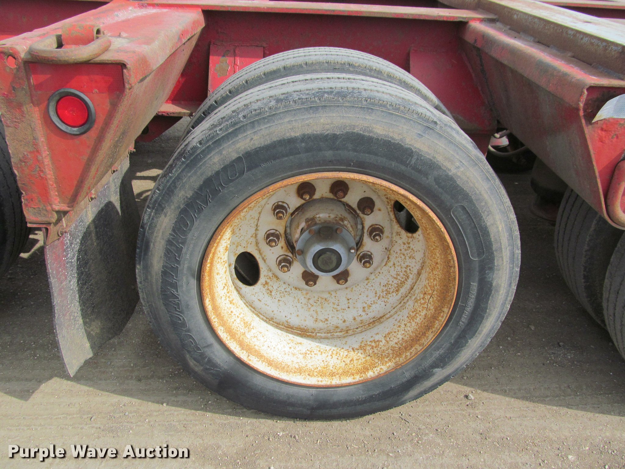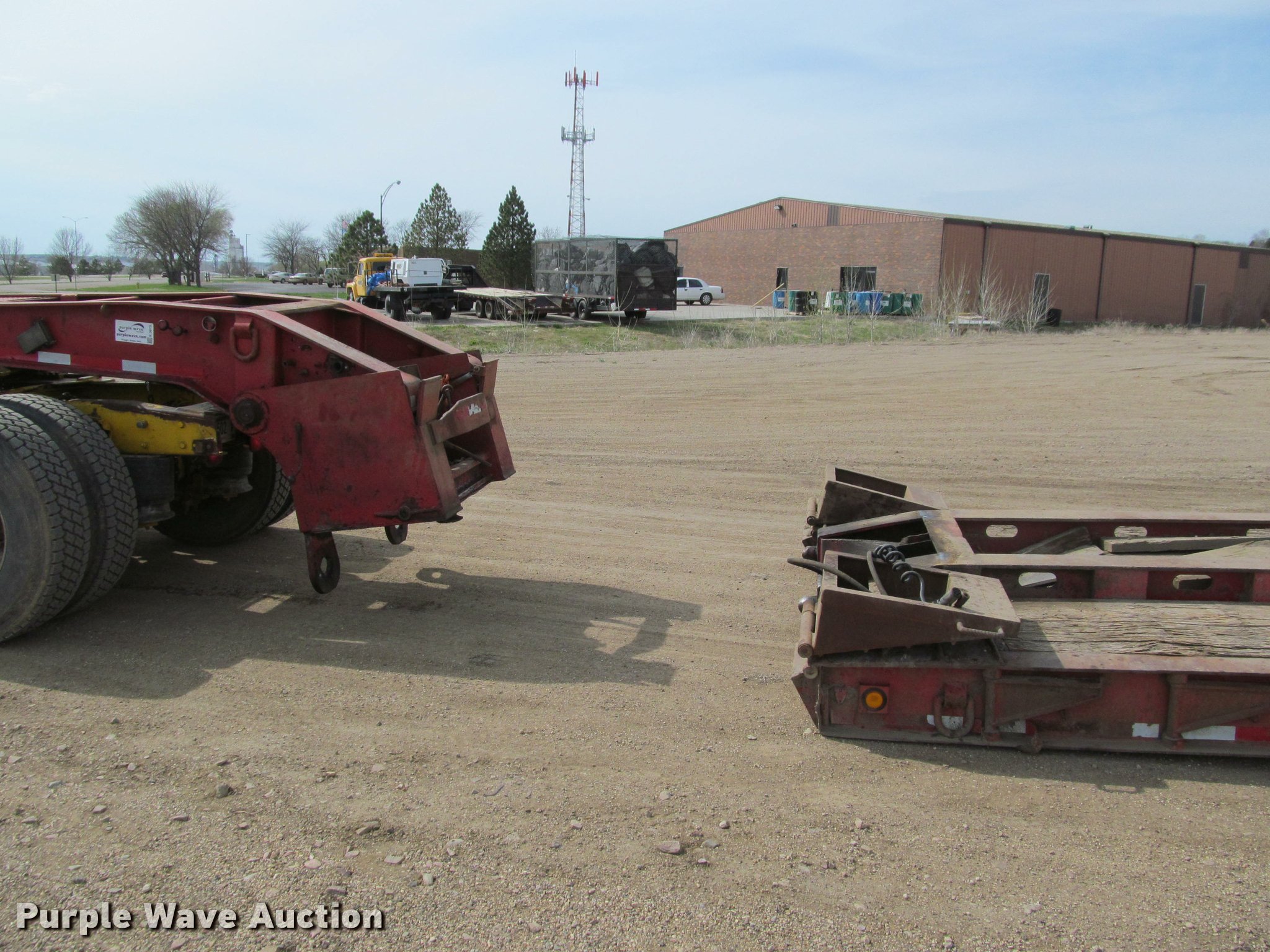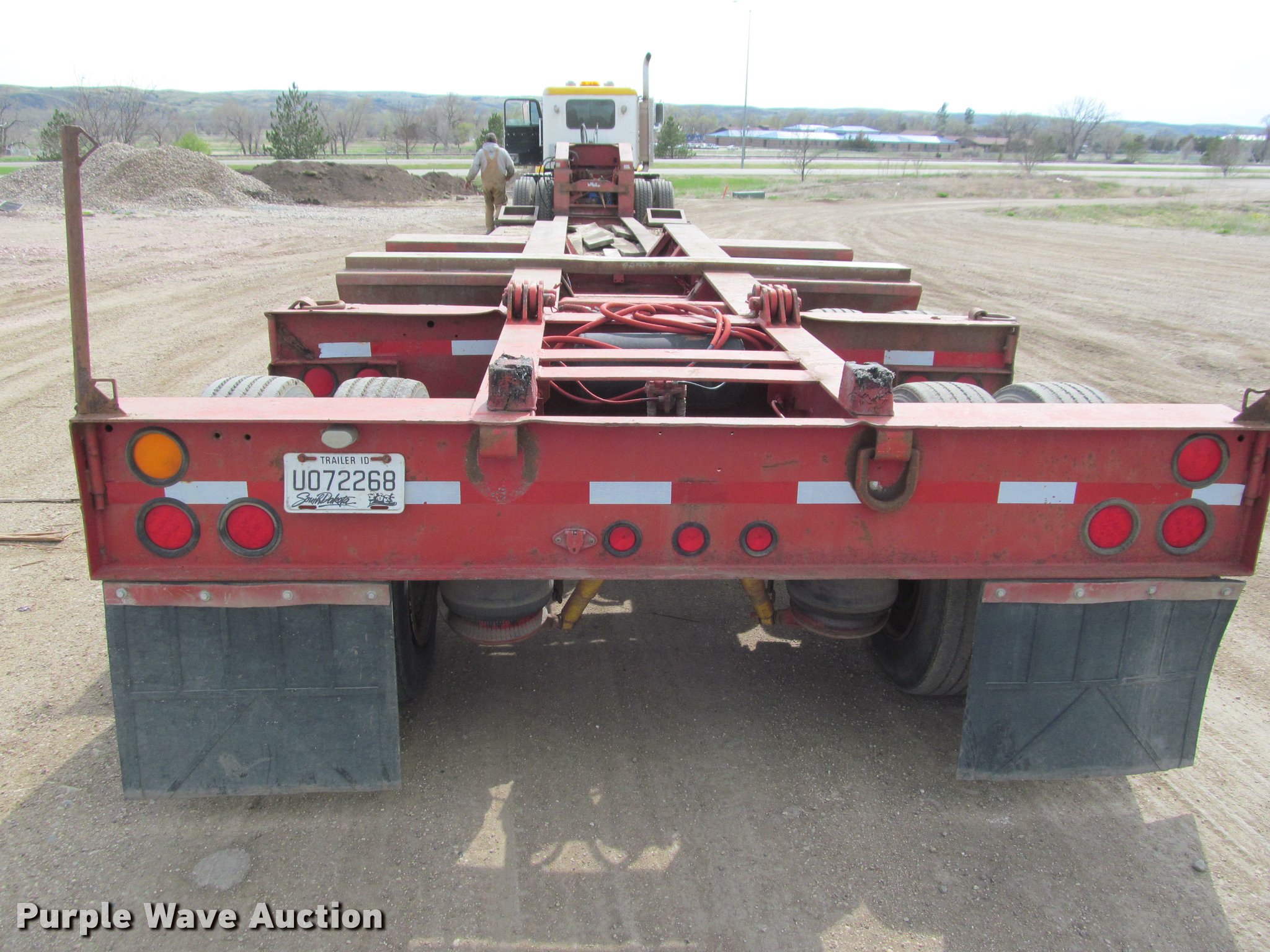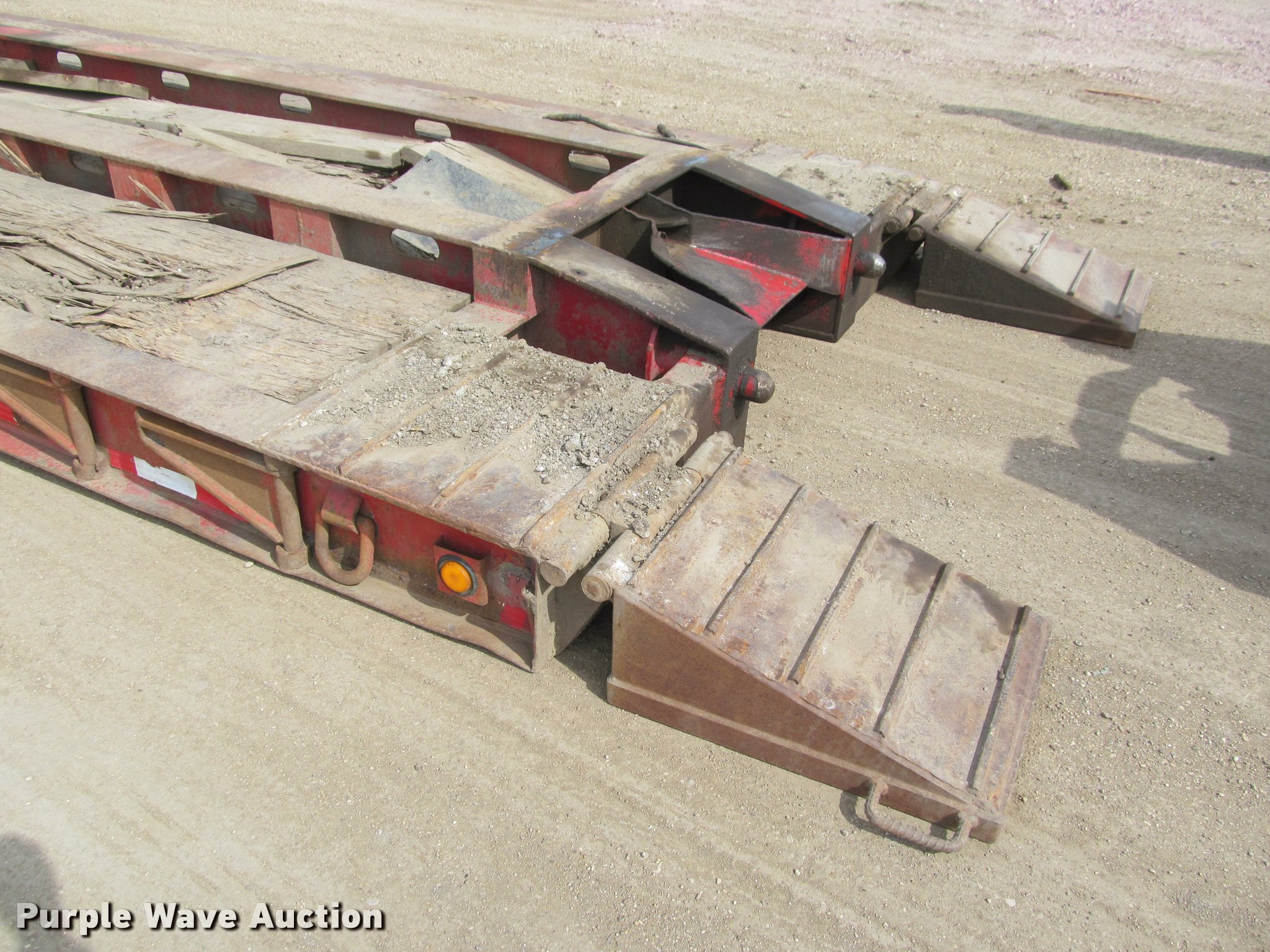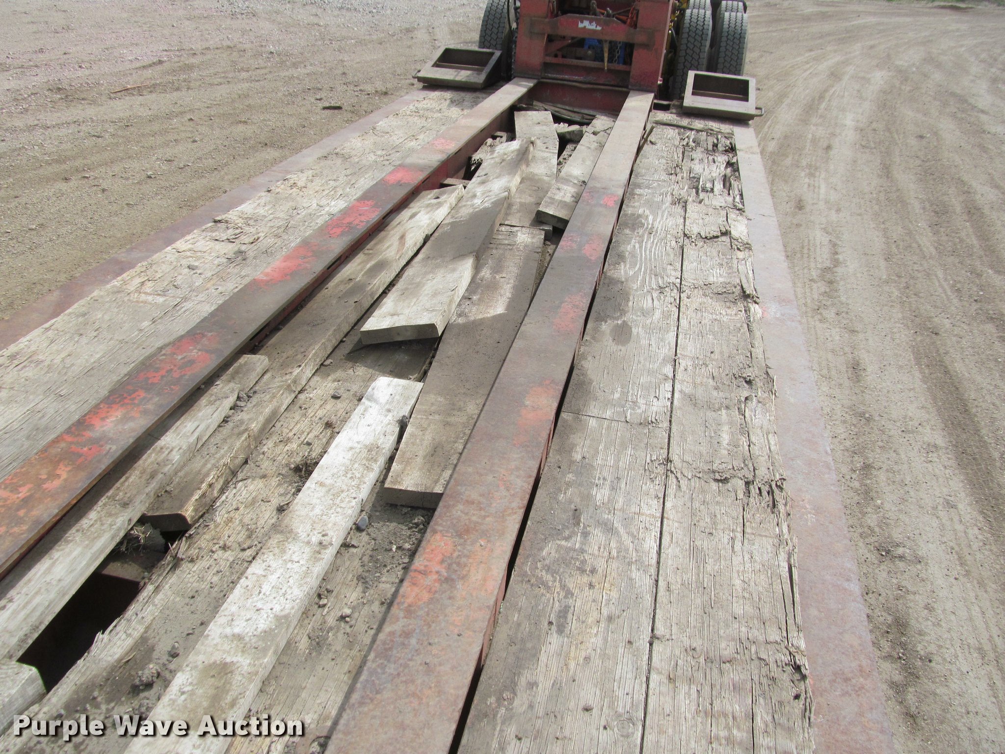 Purple Wave is selling a used Equip. Trailer in South Dakota. This item is a 1991 Trail King lowboy equipment trailer with the following: Approx. 54' overall length, 23'4"L well, 19'9"L rear deck, 101.5"W, 13" swing-out outriggers, 27"L ramps, Detachable neck, Wood deck, D-ring tie downs, 5"H deck mid-rail, Fifth wheel plate, Air suspension, Air brakes, Detachable tag axle, 56" manual fold, Triple axle, Steel wheels, 255/70R22.5 tires, Unit# 0701
