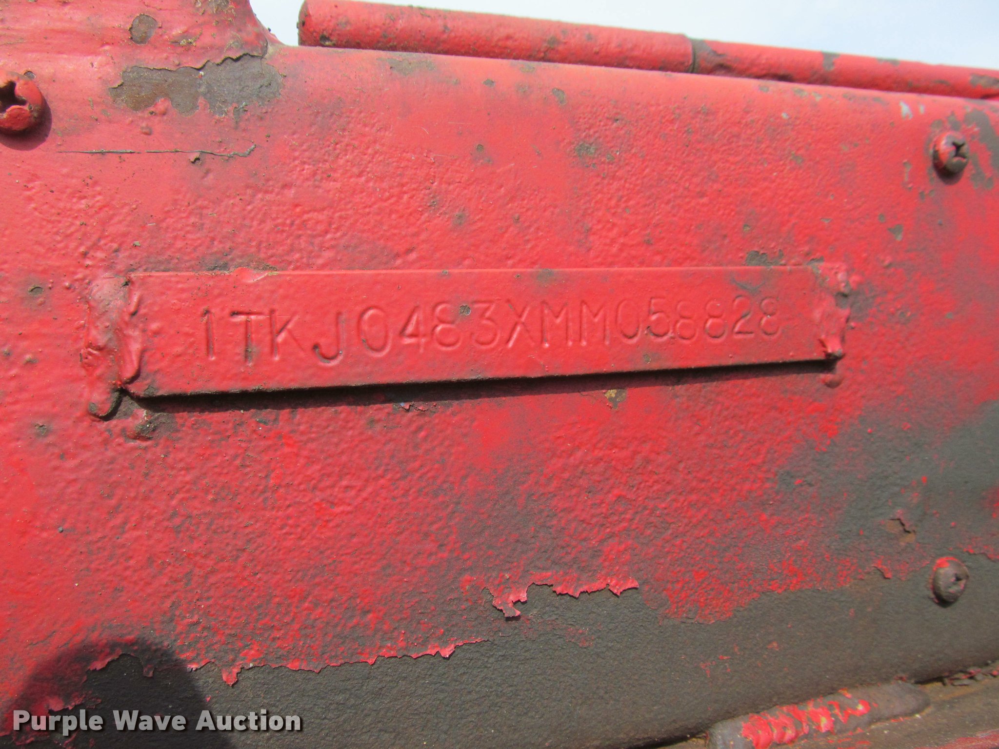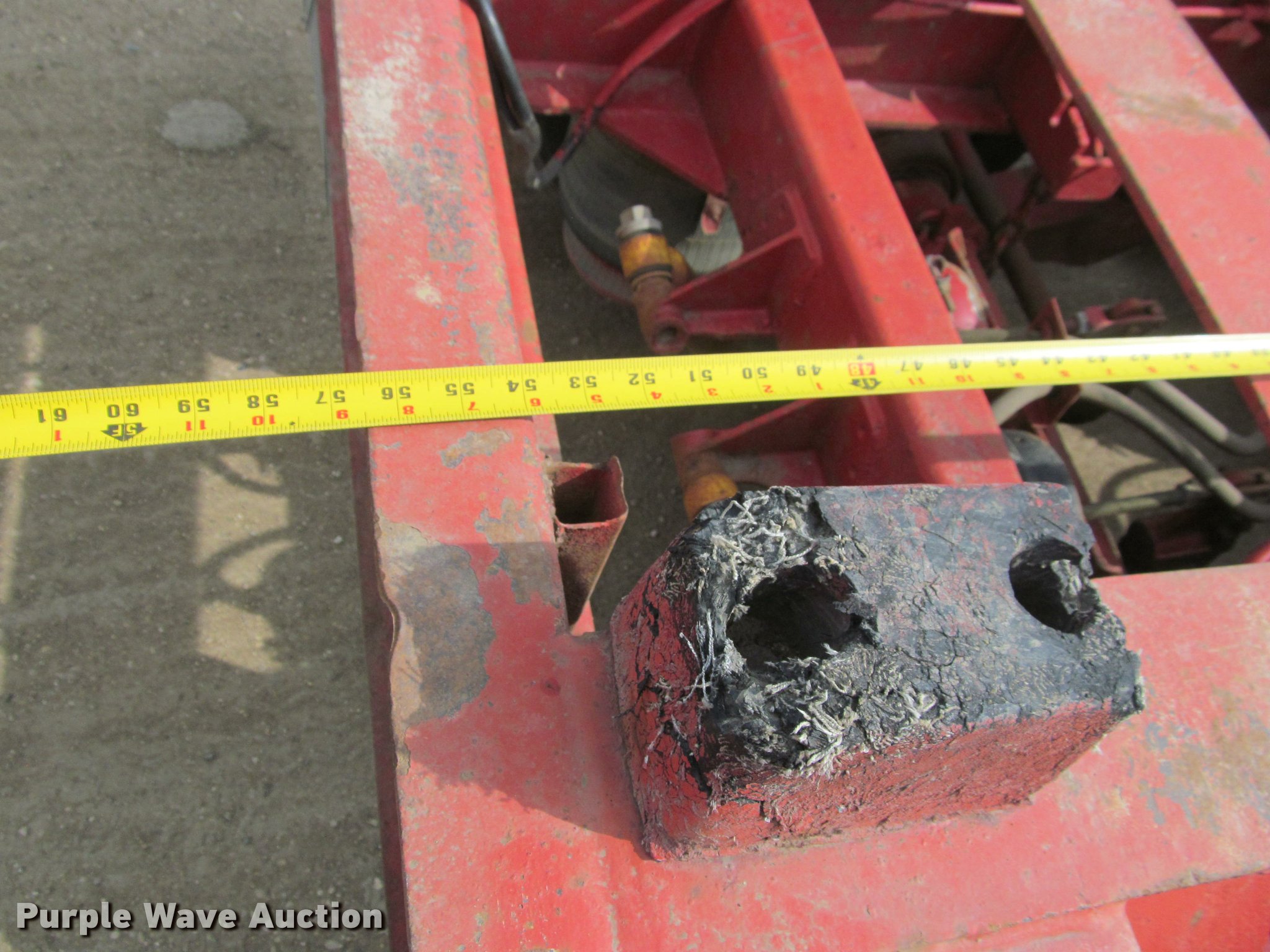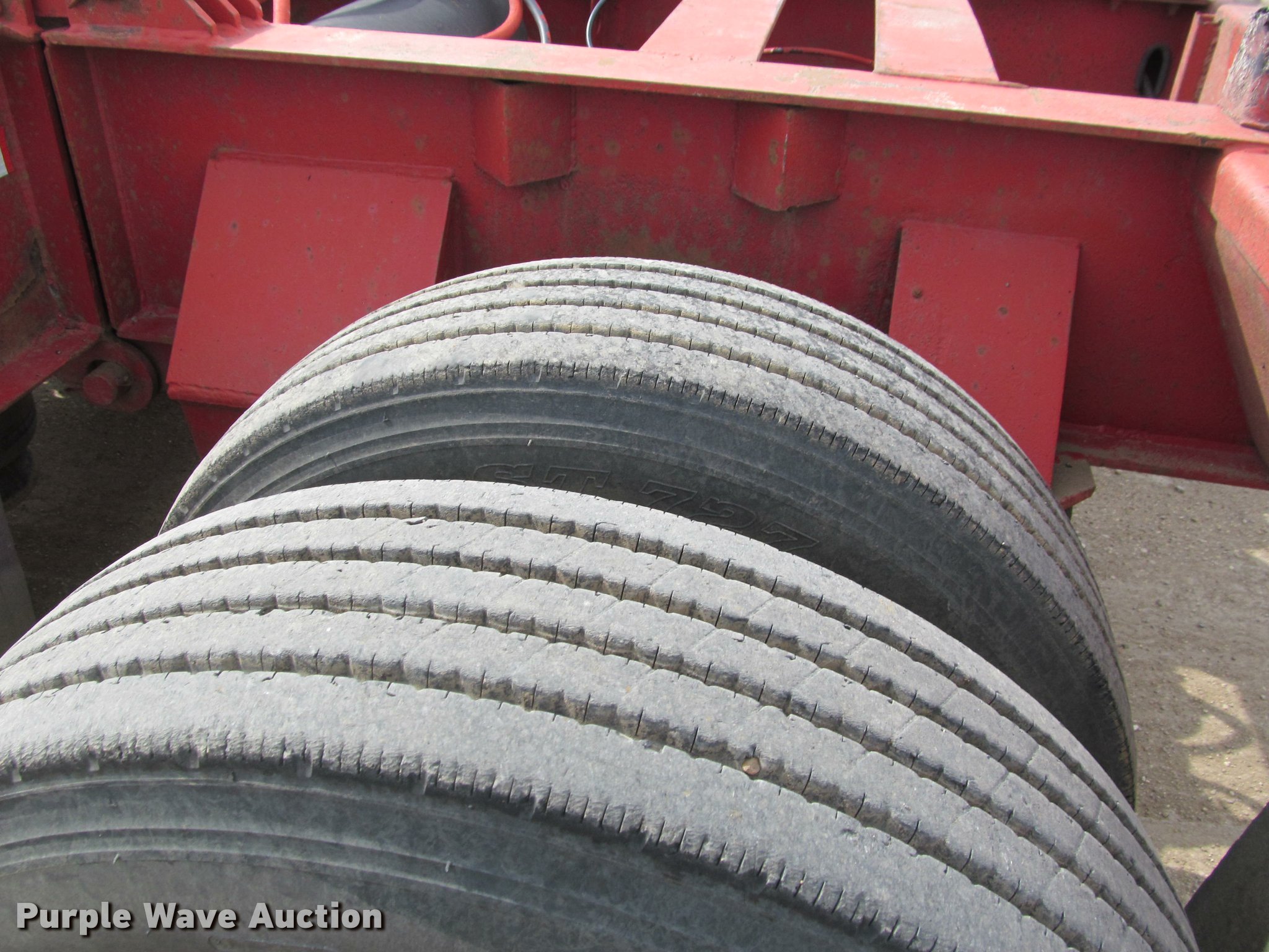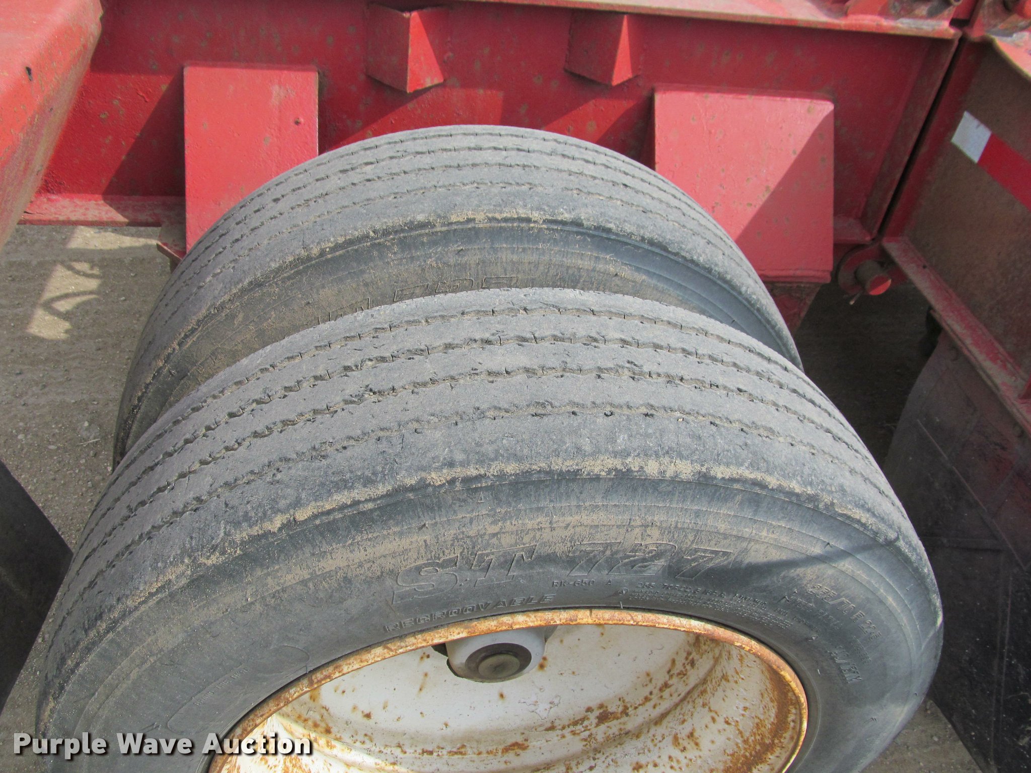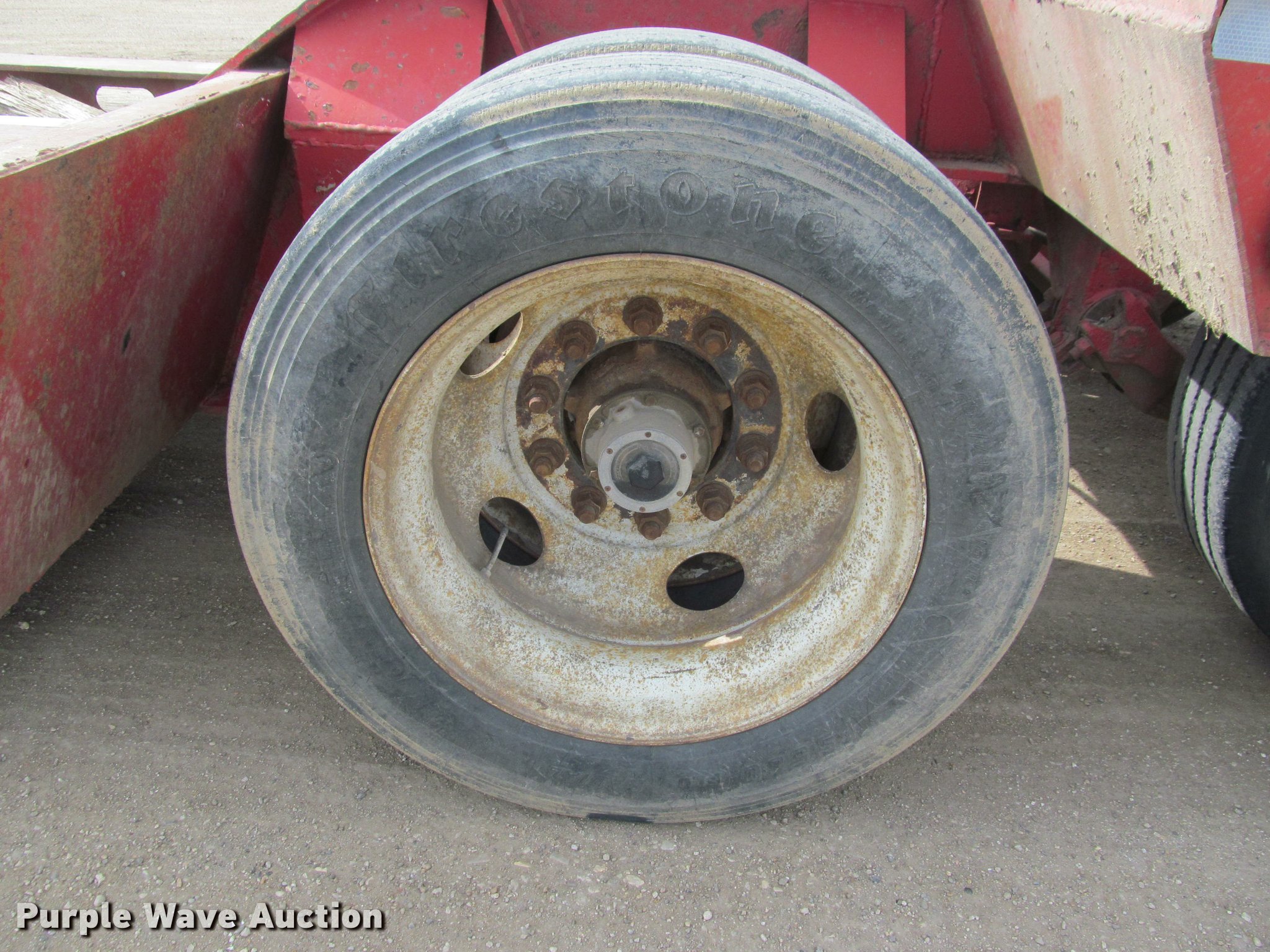 Purple Wave is selling a used Equip. Trailer in South Dakota. This item is a 1991 Trail King lowboy equipment trailer with the following: Approx. 54' overall length, 23'4"L well, 19'9"L rear deck, 101.5"W, 13" swing-out outriggers, 27"L ramps, Detachable neck, Wood deck, D-ring tie downs, 5"H deck mid-rail, Fifth wheel plate, Air suspension, Air brakes, Detachable tag axle, 56" manual fold, Triple axle, Steel wheels, 255/70R22.5 tires, Unit# 0701