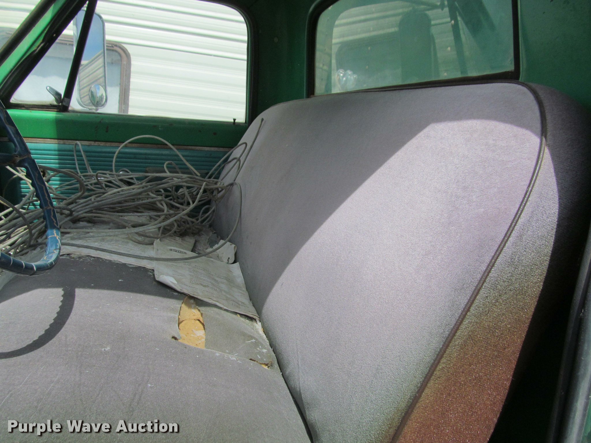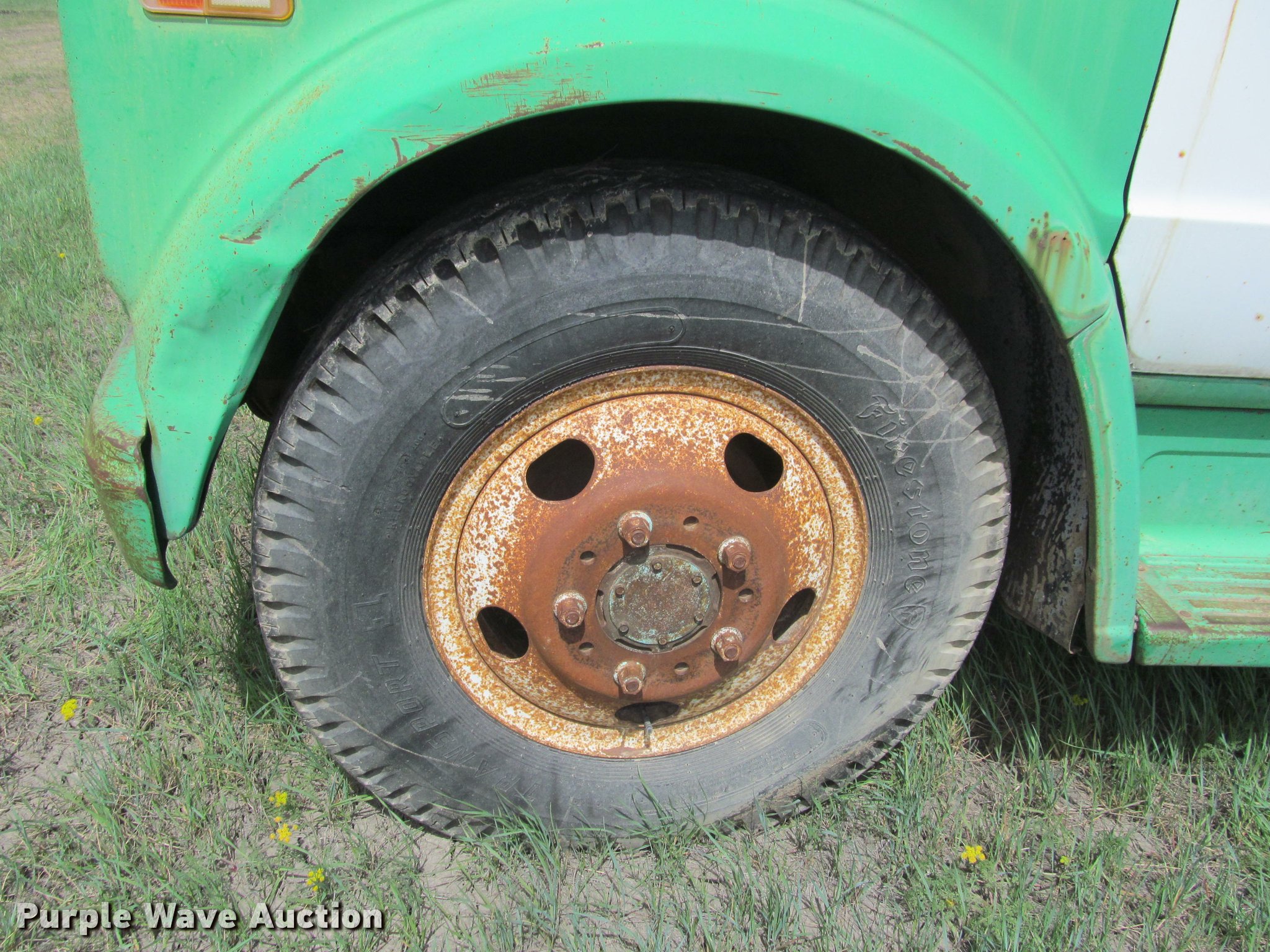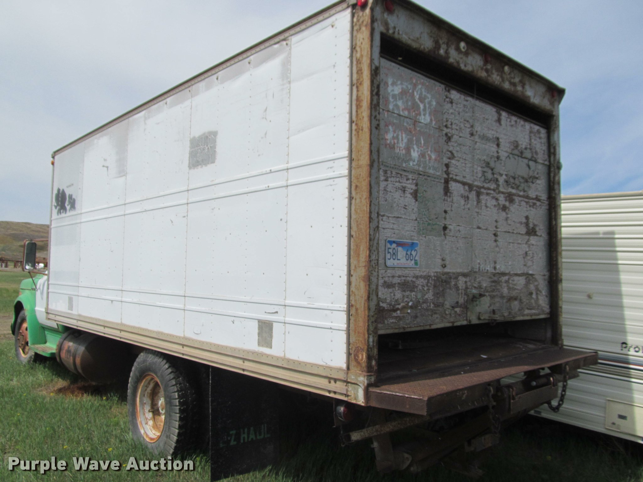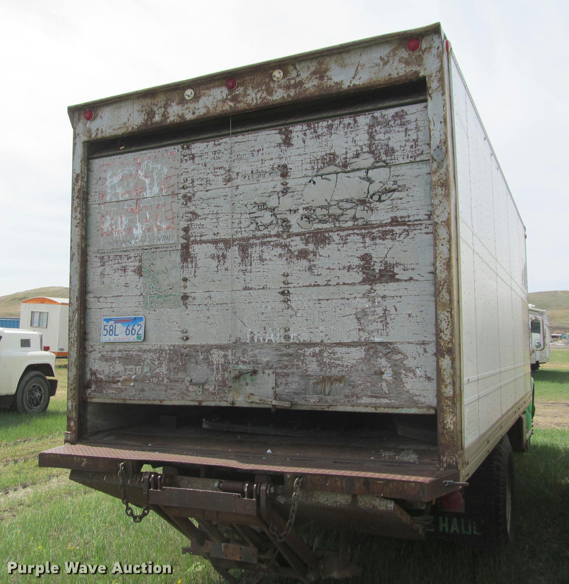 Purple Wave is selling a used Box Truck in South Dakota. This item is a 1970 Chevrolet C50 box truck with the following: 87,540 miles on odometer, V8 5.7L V8 gas engine, Four speed manual transmission, Heat, Manual windows and locks, Cloth interior, PTO, 18'L x 91"W x 7'H box bed, Wood floor, Work bench, End gate lift, Roll-up door, Running boards, Dual fuel tanks, Spring suspension, Hydraulic brakes, 9.00-20 tires, GVWR 18,000-24,000 lbs, Cracked dash, Unit# 11201