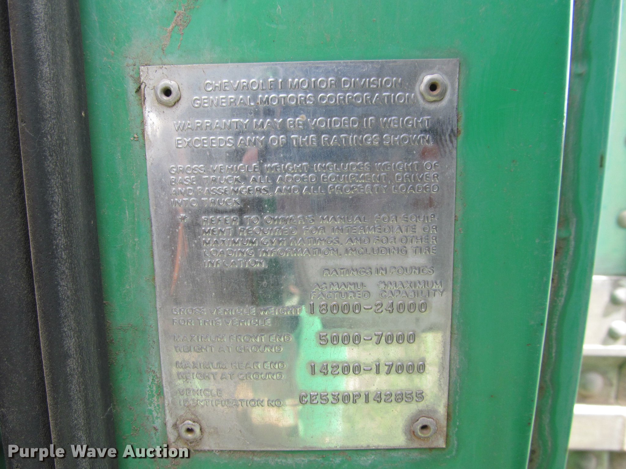 1970 Chevrolet C50 box truck. 87,540 miles on odometer, V8 5.7L V8 gas engine, Four speed manual transmission, Heat, Manual windows and locks, Cloth interior, PTO, 18'L x 91"W x 7'H box bed Wood floor, Work bench, End gate lift, Roll-up door, Running boards, Dual fuel tanks, Spring suspension, Hydraulic brakes, 9.00-20 tires, GVWR 18,000-24,000 lbs, Cracked dash, Unit# 11201. South Dakota title. Titles will be distributed after confirmation of payment and removal. CE530P142855. Sharpe Rentals, Inc.. 1009 Walleye Dr. Fort Pierre, SD 57532