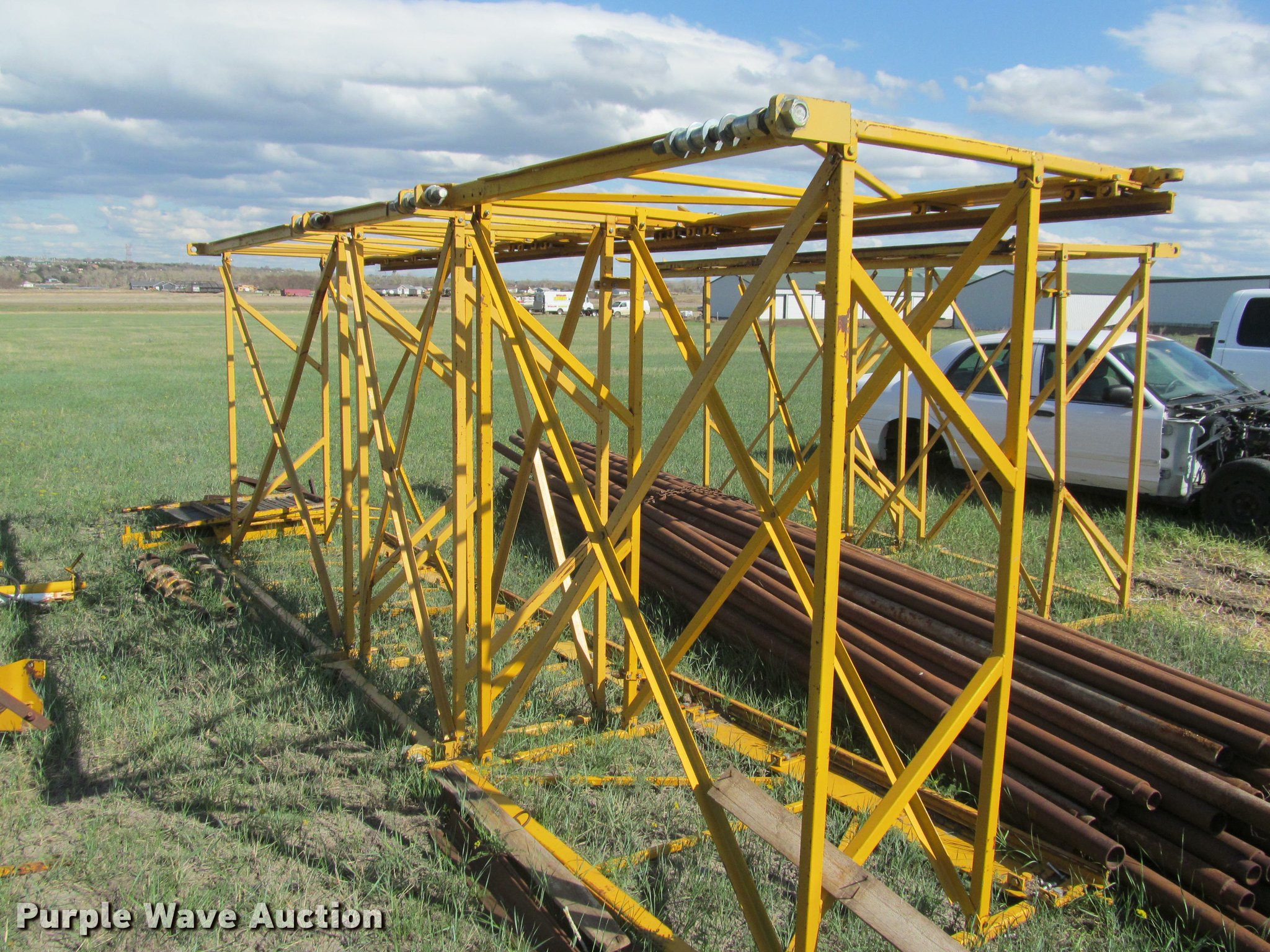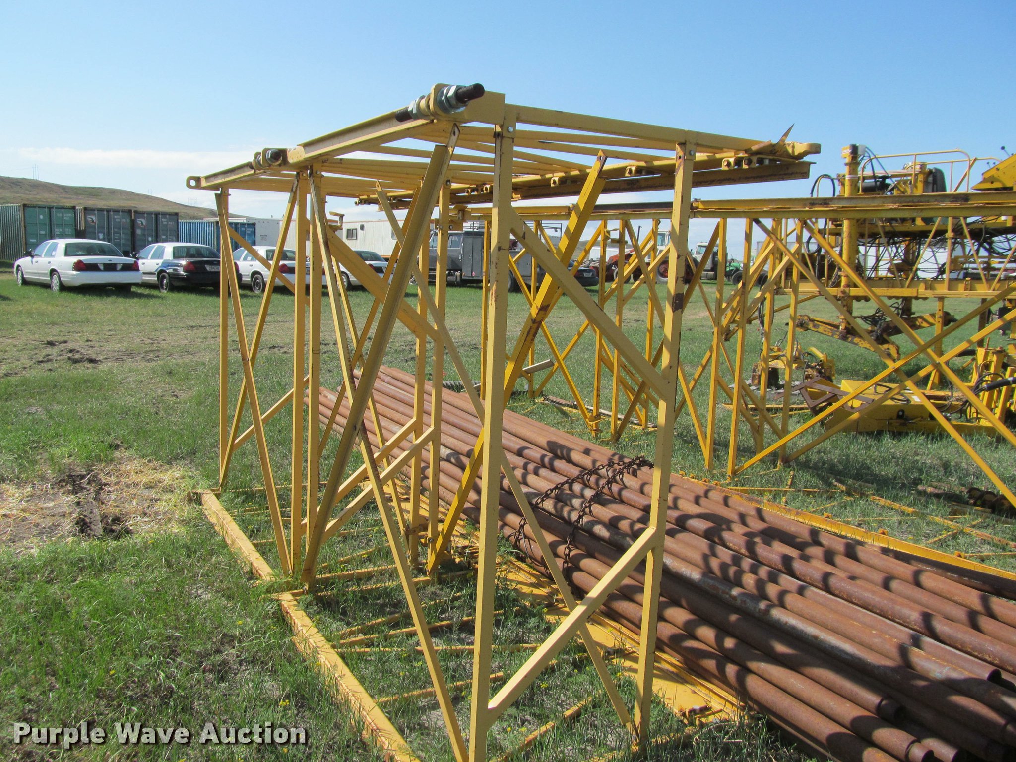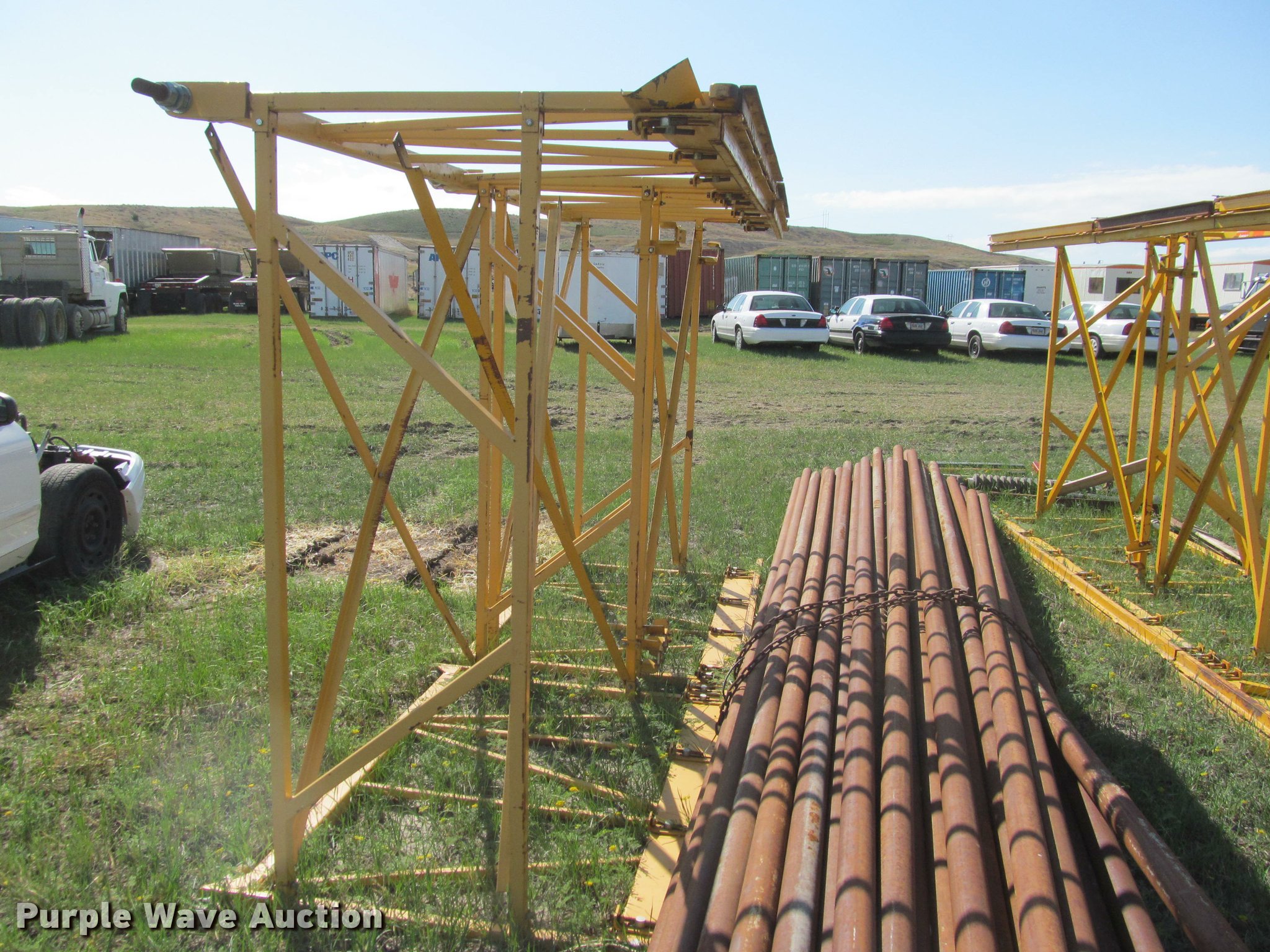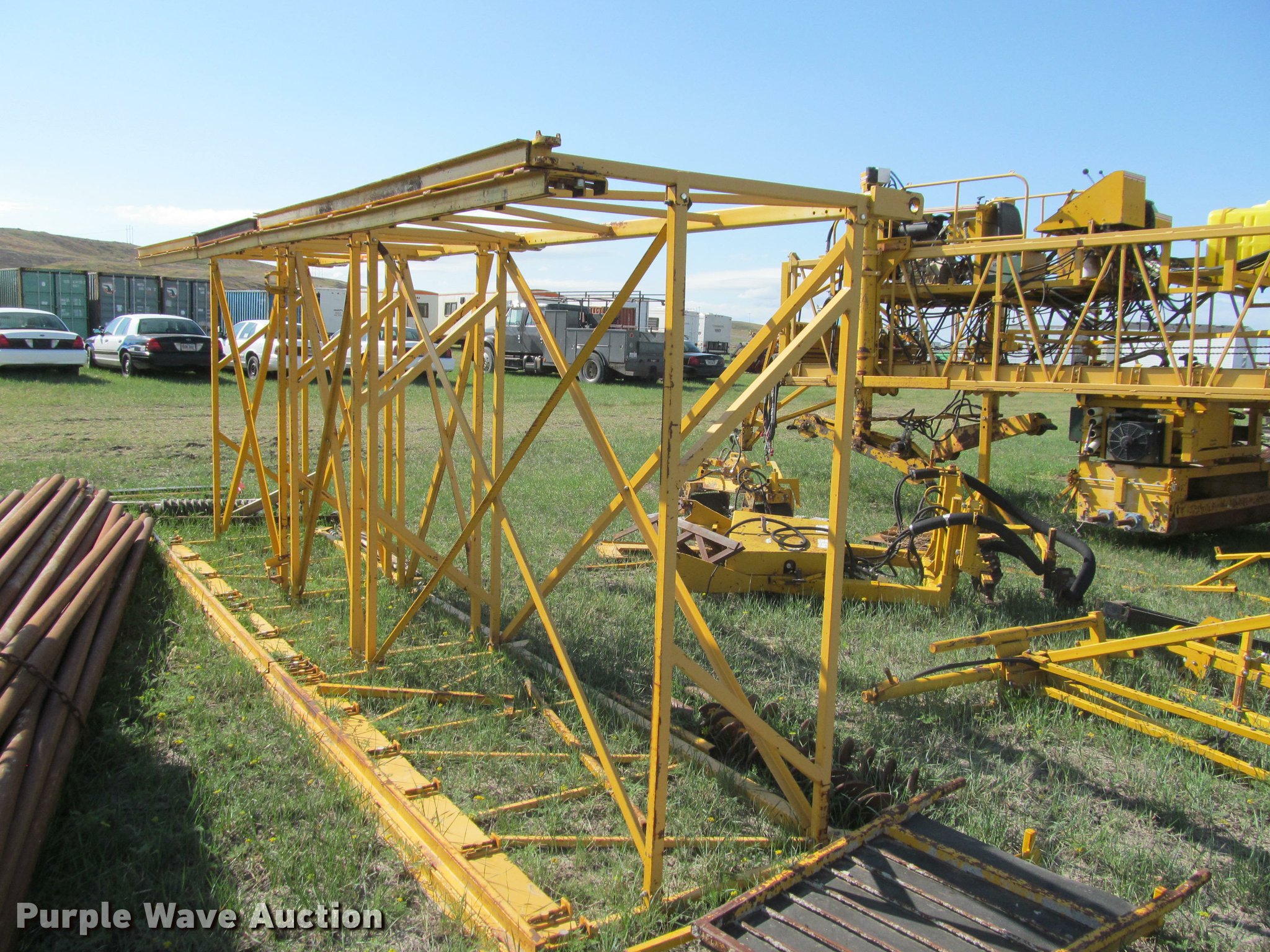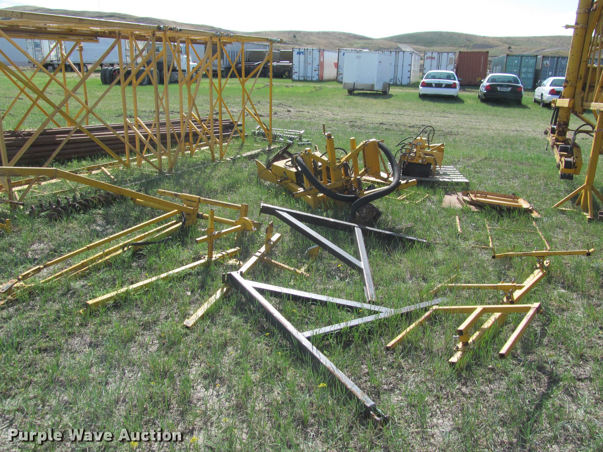 Bid-Well 5000 concrete paver. (2) John Deere 220 three cylinder diesel engines Model 3015DF05 354 hours on meter, Serial XCM3015D034303, Model 3015DF05 459 hours on meter, Serial XCH3015D032813, Top operators staion, 100 gallon water tank, Paving carriage Hydraulic swivel, Hydraulic up and down, Dual 6'L steel rollers, Dual carriage travel chains, Grade sensor control, (4) drive bogies Hydraulic drive, Pintle hitch, Tandem axle, 9.50-16.5 transport tires, GAWR 7,000 lbs, Additional parts included Assorted brackets, Additional boom extensions, (2) auger bits, Additional rollers for carrier, Approx. 85 additional travel rails 21'L joints, Approx. 1,750' total, Manuals, Serial 48.2001964-2-HD-SV-D. Sharpe Rentals, Inc.. 1009 Walleye Dr. Fort Pierre, SD 57532