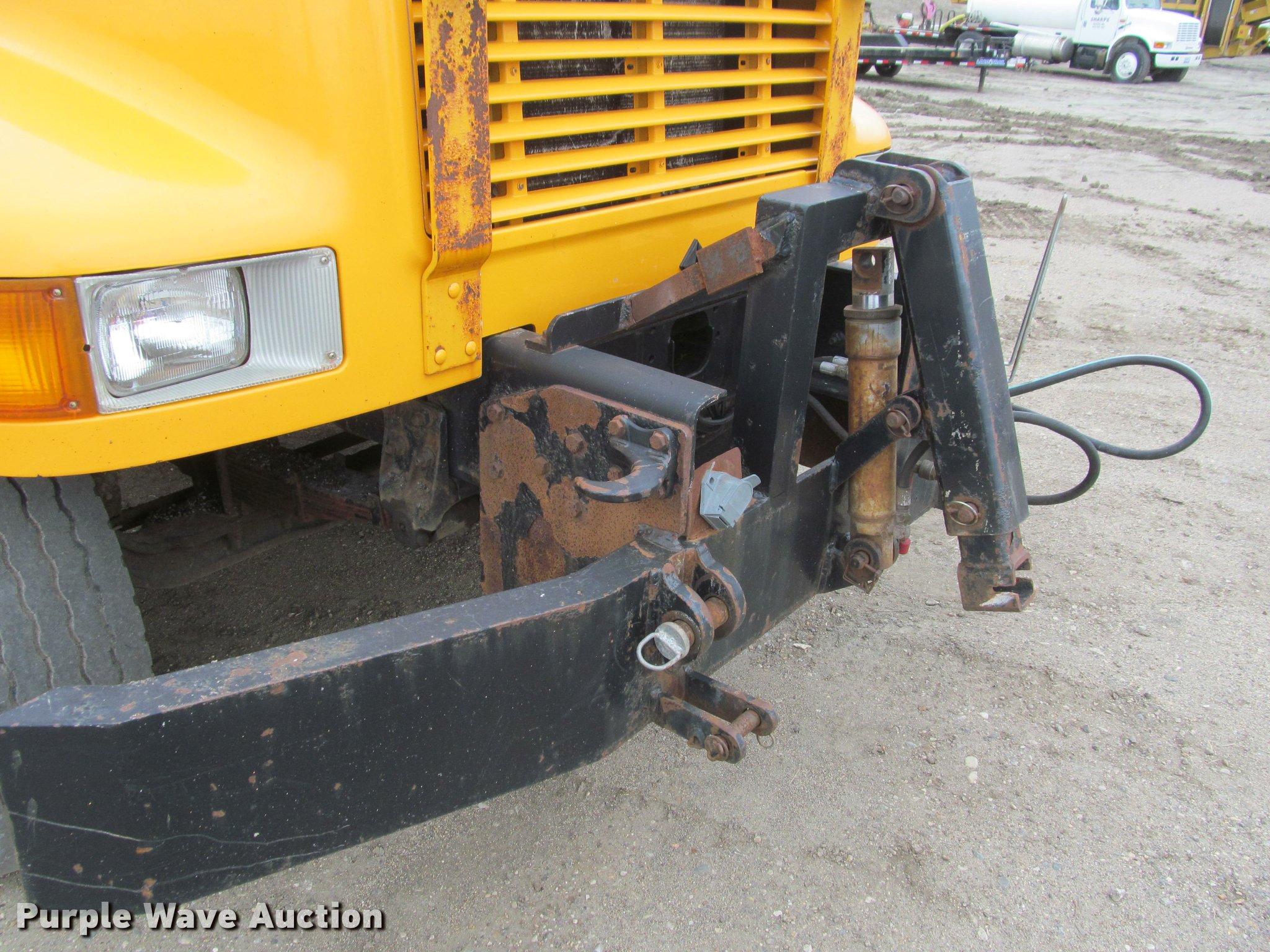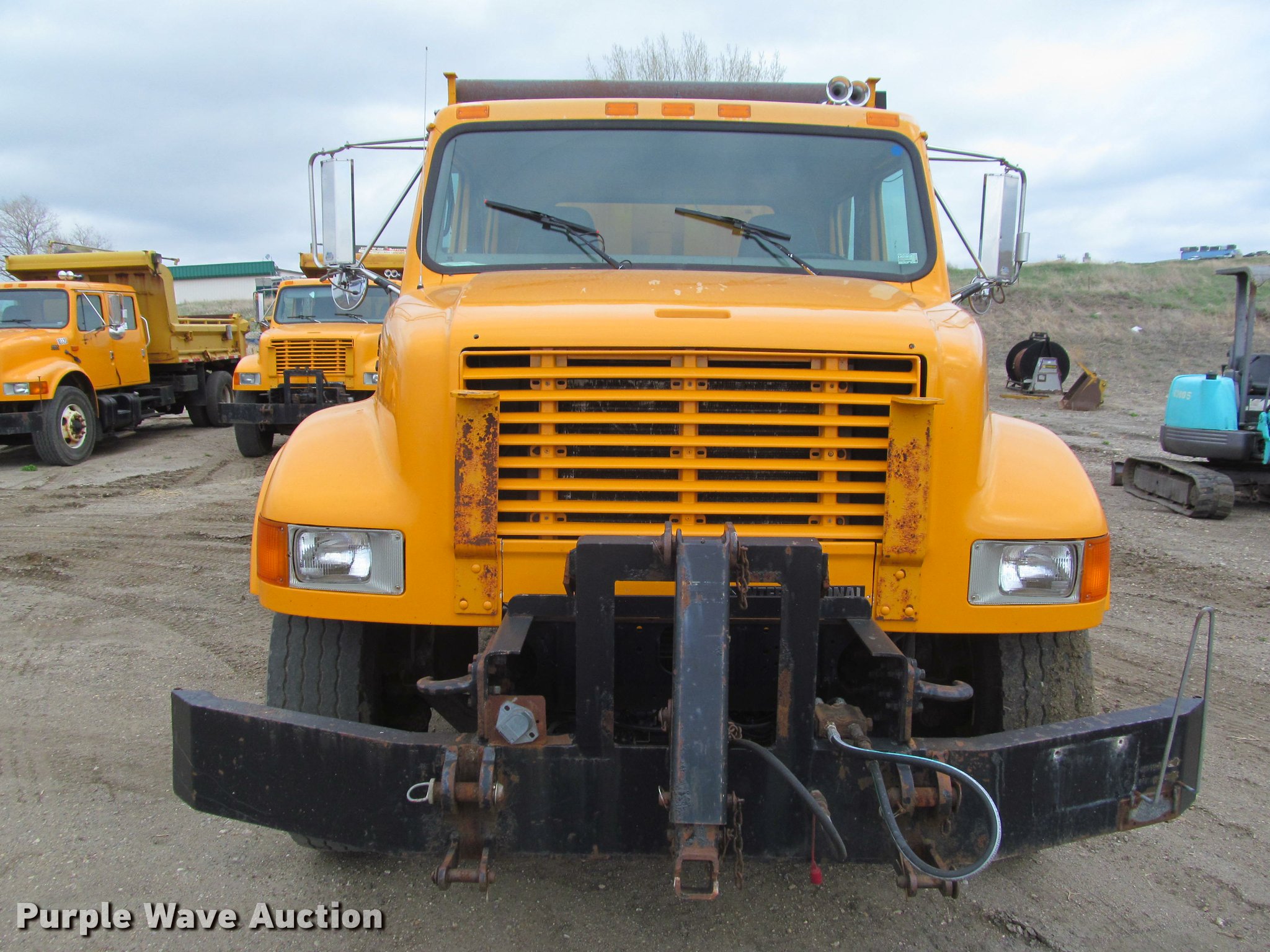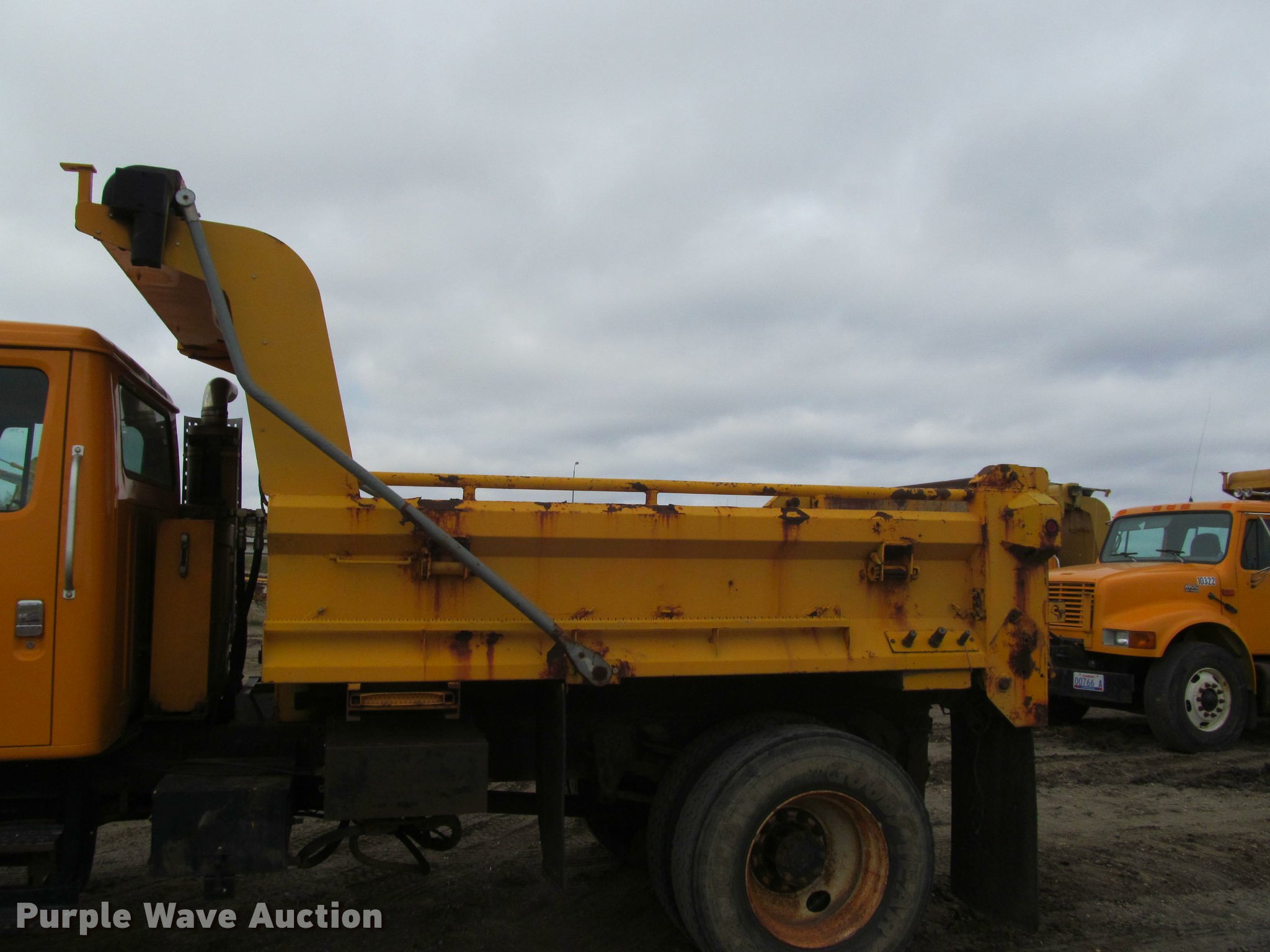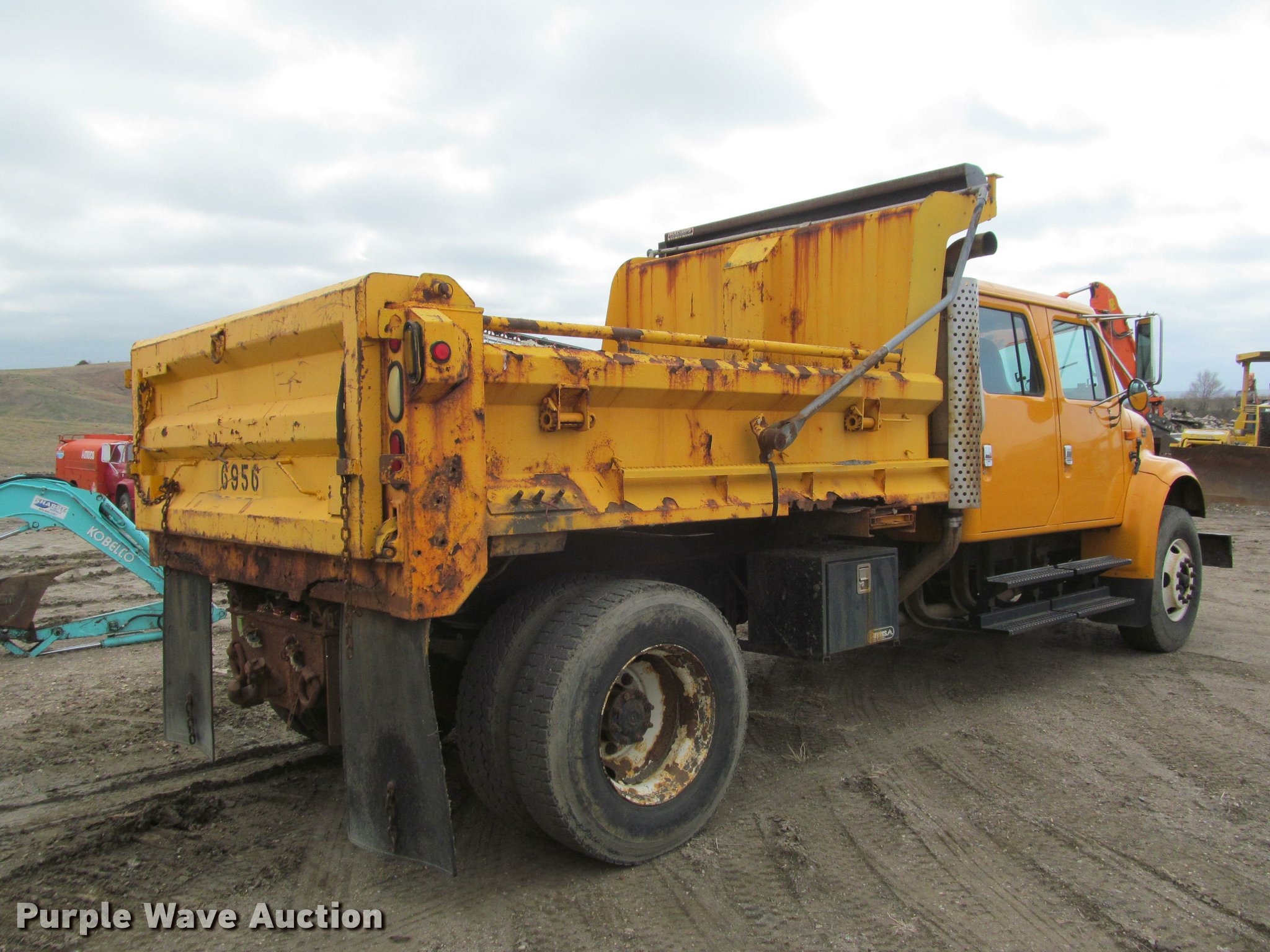 Purple Wave is selling a used Construction Dump Truck in South Dakota. This item is a 2002 International 4900 Crew Cab dump truck with the following: 70,026 miles on odometer, 111,686 hours on meter, International DT466 7.6L L6 turbo diesel engine, Allison automatic transmission, Single axle, Inter-axle differential lock, Heat, Cruise, AM/FM, Power windows, Power and heated mirrors, Air suspension seat, Block heater, PTO, 10'L x 96"W steel dump bed, 24" side height, Pulltarps electric rollover tarp, Bed vibrator, Air operated end gate, Single ram hoist, Dual rear hydraulics, Buyer toolbox, Snow plow mount, Front hydraulic remotes, Single fuel tank, Pintle hitch, Trailer wiring, 206" wheelbase, Goodyear 315/80R22.5 front tires, Goodyear 11R22.5 rear tires, GVWR 35,000 lbs, FAWR 14,000 lbs, RAWR 21,000 lbs, Rust, Bed will not raise, Unit# 10323
