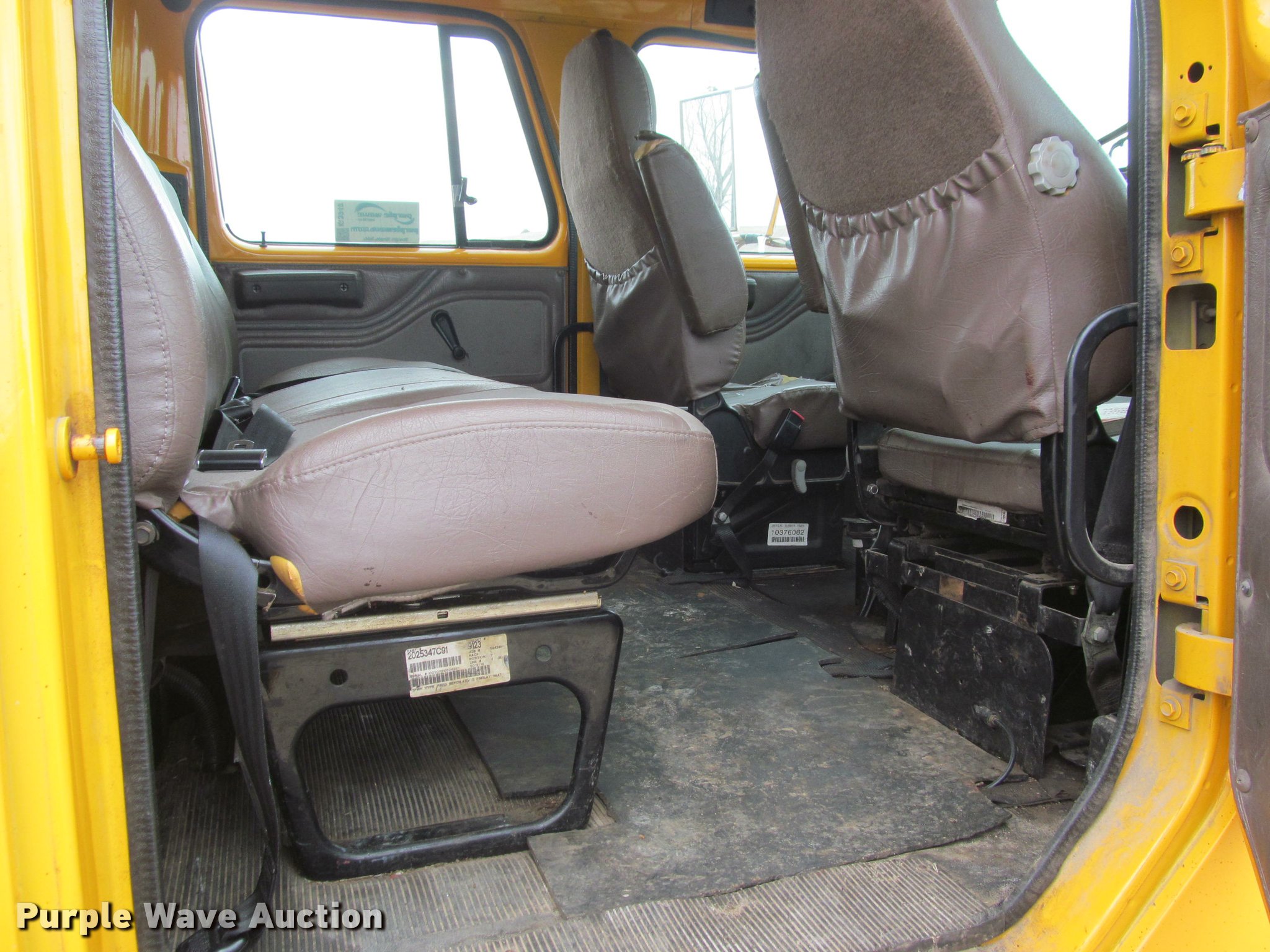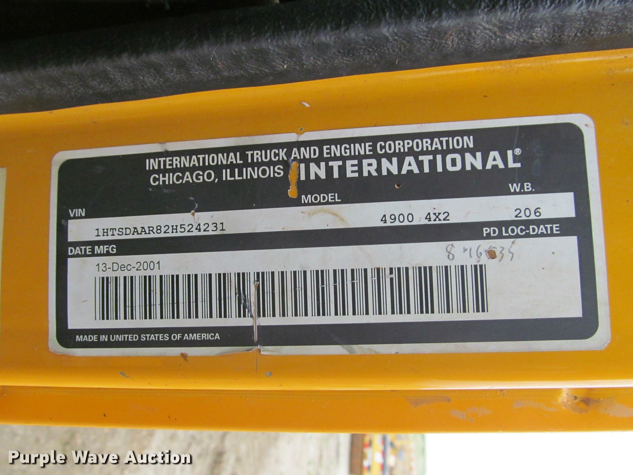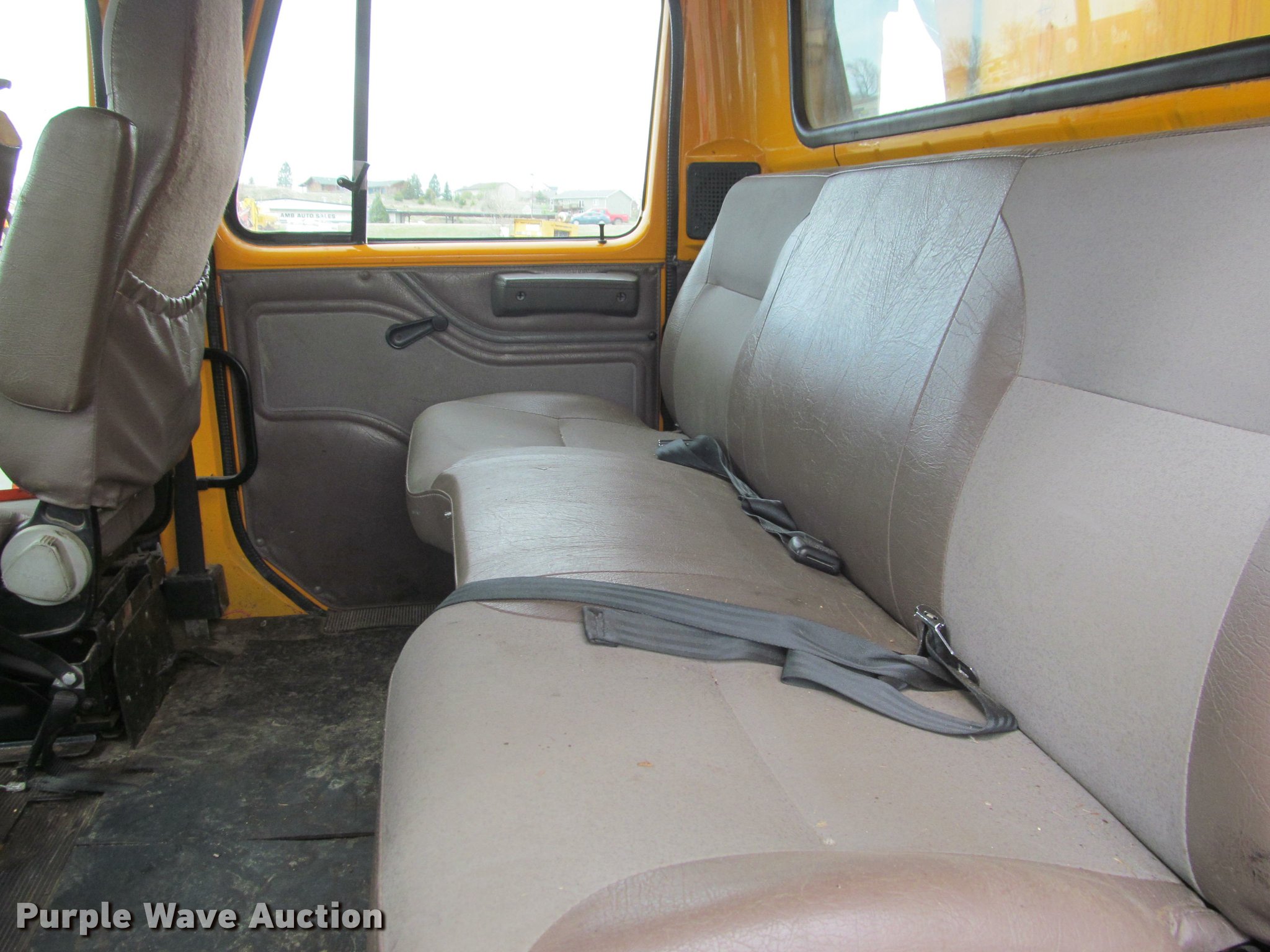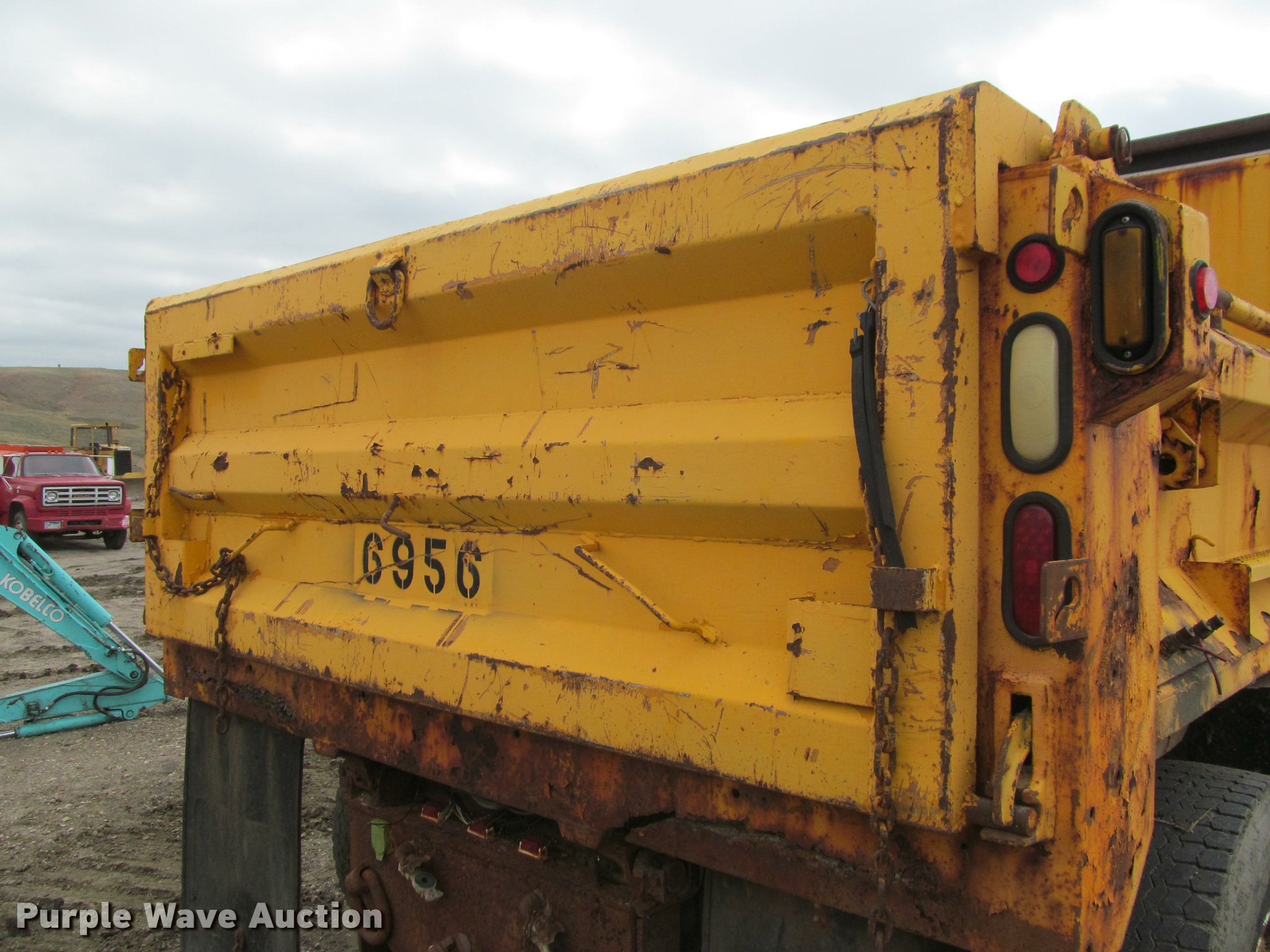 Purple Wave is selling a used Construction Dump Truck in South Dakota. This item is a 2002 International 4900 Crew Cab dump truck with the following: 70,026 miles on odometer, 111,686 hours on meter, International DT466 7.6L L6 turbo diesel engine, Allison automatic transmission, Single axle, Inter-axle differential lock, Heat, Cruise, AM/FM, Power windows, Power and heated mirrors, Air suspension seat, Block heater, PTO, 10'L x 96"W steel dump bed, 24" side height, Pulltarps electric rollover tarp, Bed vibrator, Air operated end gate, Single ram hoist, Dual rear hydraulics, Buyer toolbox, Snow plow mount, Front hydraulic remotes, Single fuel tank, Pintle hitch, Trailer wiring, 206" wheelbase, Goodyear 315/80R22.5 front tires, Goodyear 11R22.5 rear tires, GVWR 35,000 lbs, FAWR 14,000 lbs, RAWR 21,000 lbs, Rust, Bed will not raise, Unit# 10323