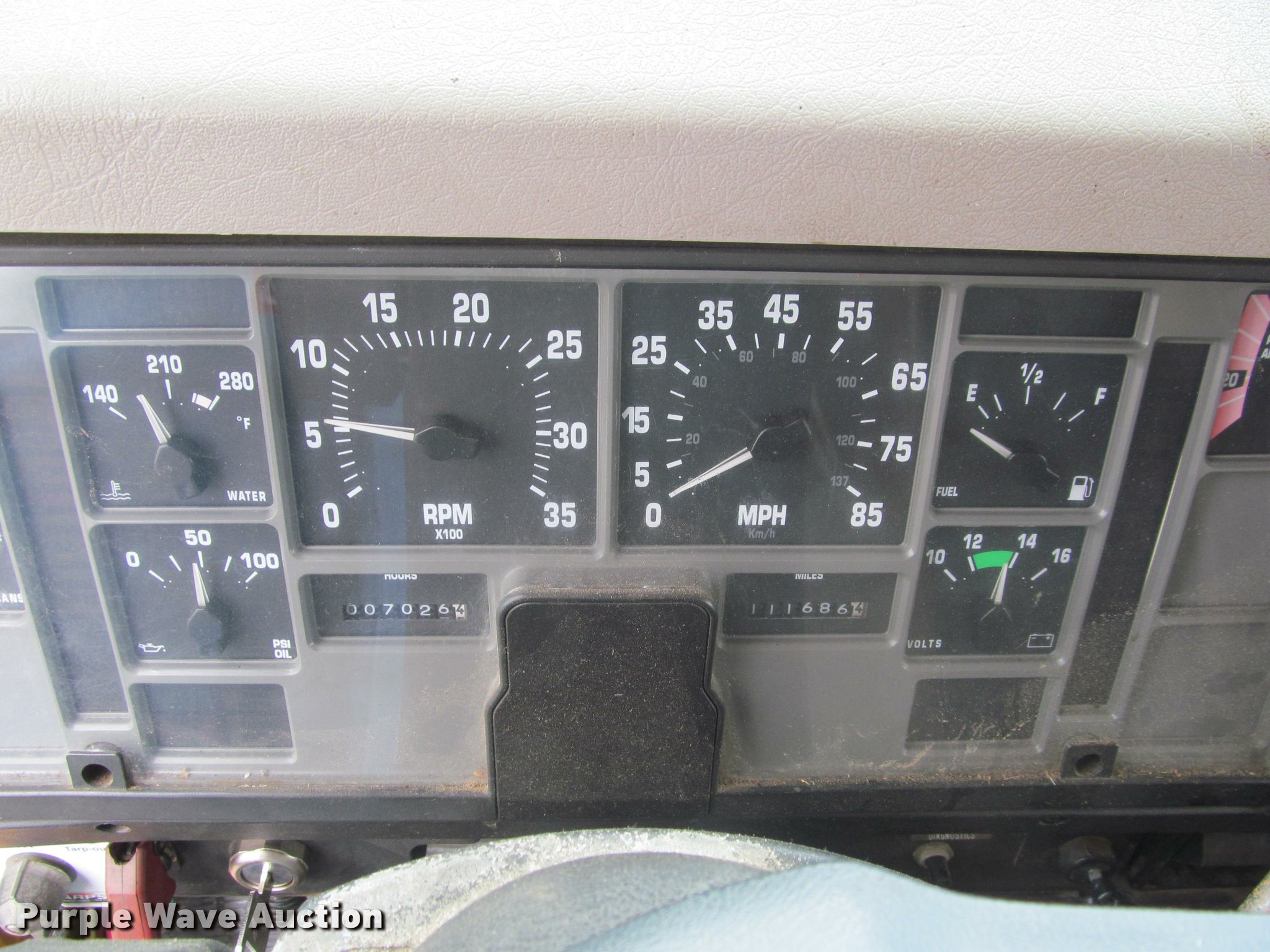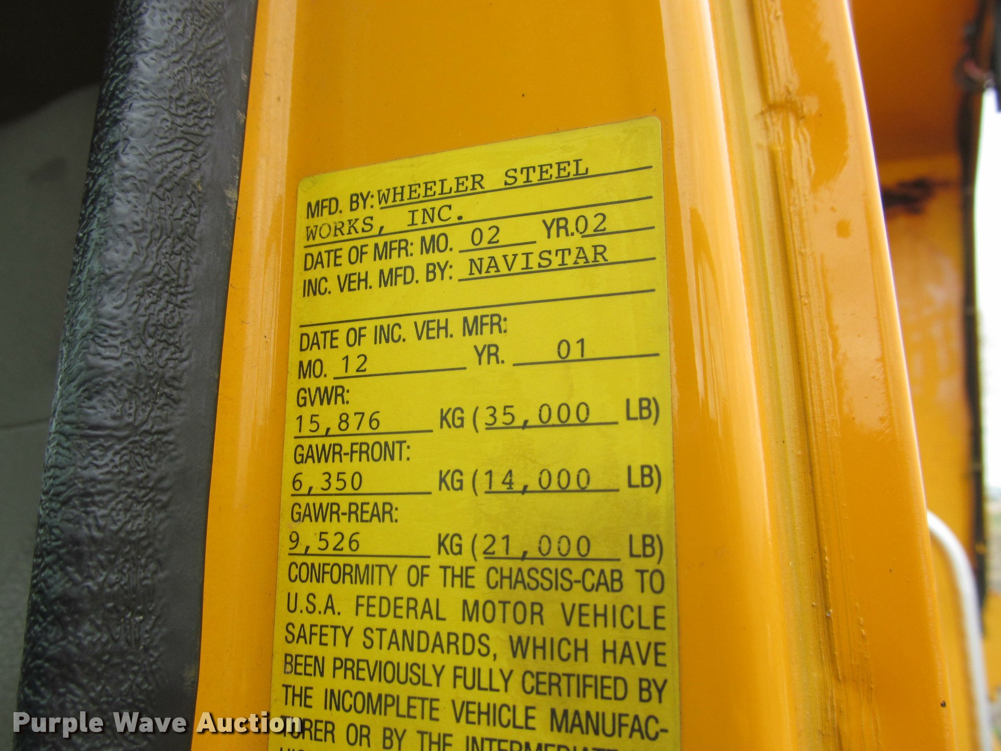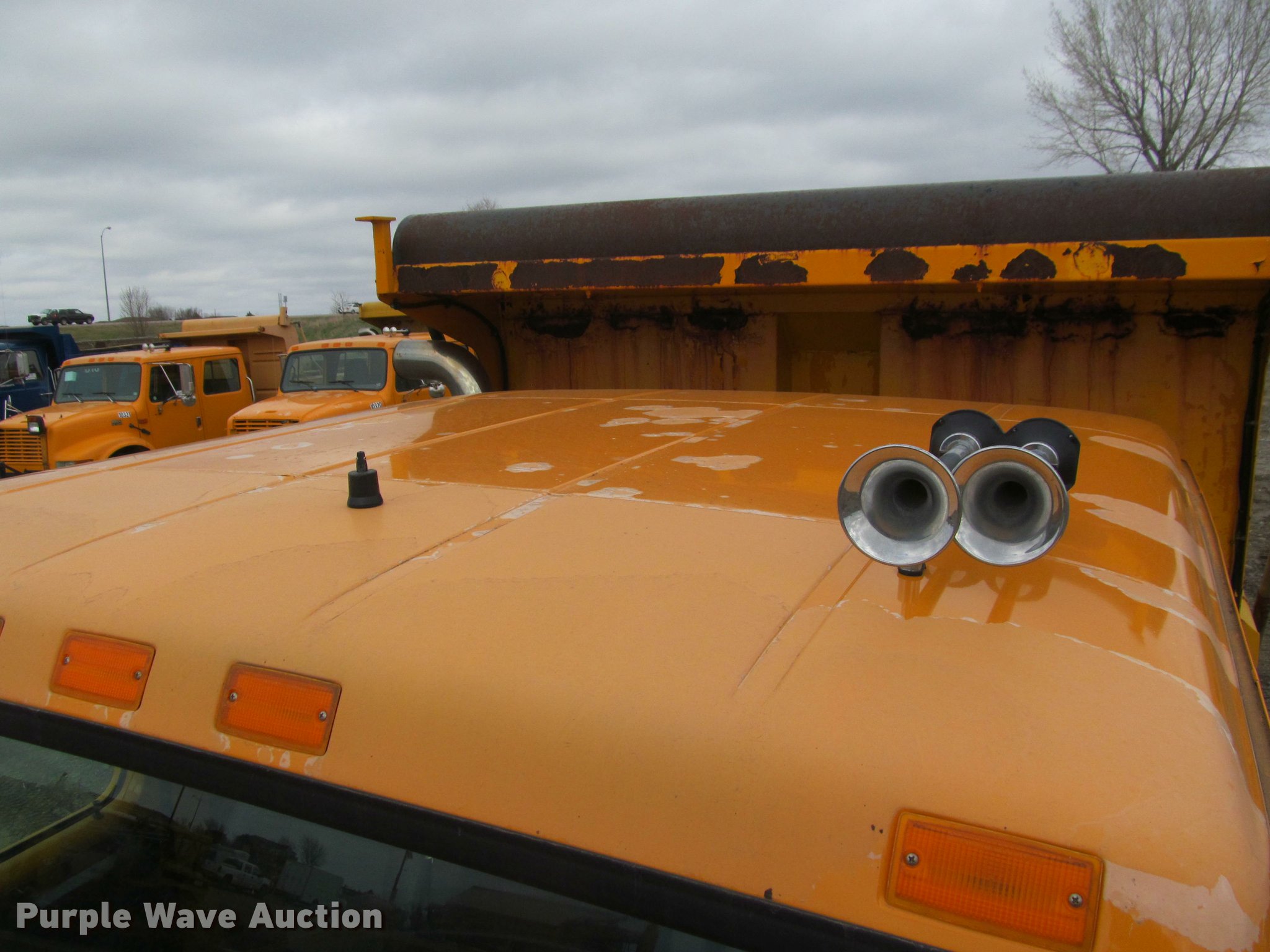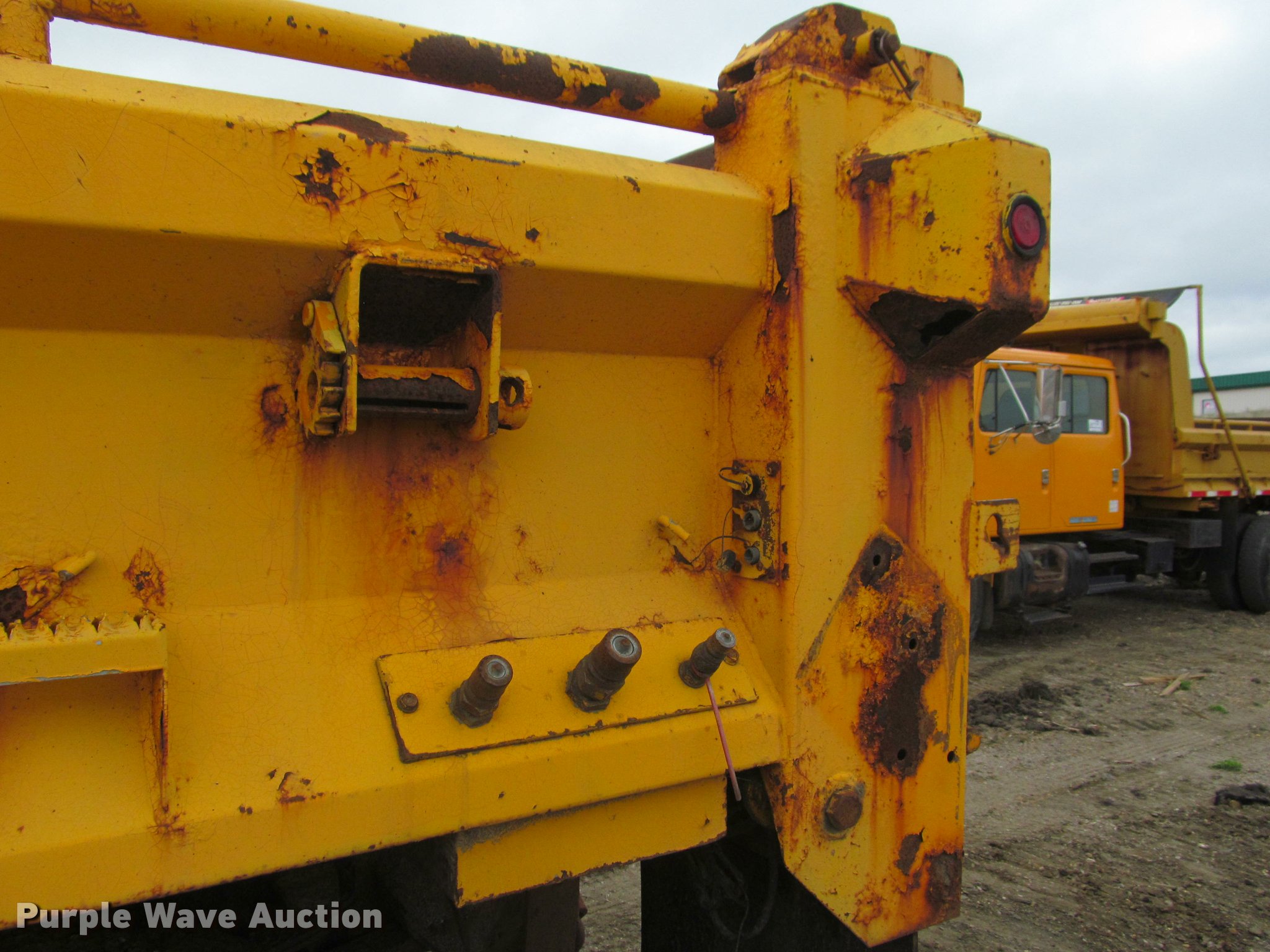 Purple Wave is selling a used Construction Dump Truck in South Dakota. This item is a 2002 International 4900 Crew Cab dump truck with the following: 70,026 miles on odometer, 111,686 hours on meter, International DT466 7.6L L6 turbo diesel engine, Allison automatic transmission, Single axle, Inter-axle differential lock, Heat, Cruise, AM/FM, Power windows, Power and heated mirrors, Air suspension seat, Block heater, PTO, 10'L x 96"W steel dump bed, 24" side height, Pulltarps electric rollover tarp, Bed vibrator, Air operated end gate, Single ram hoist, Dual rear hydraulics, Buyer toolbox, Snow plow mount, Front hydraulic remotes, Single fuel tank, Pintle hitch, Trailer wiring, 206" wheelbase, Goodyear 315/80R22.5 front tires, Goodyear 11R22.5 rear tires, GVWR 35,000 lbs, FAWR 14,000 lbs, RAWR 21,000 lbs, Rust, Bed will not raise, Unit# 10323