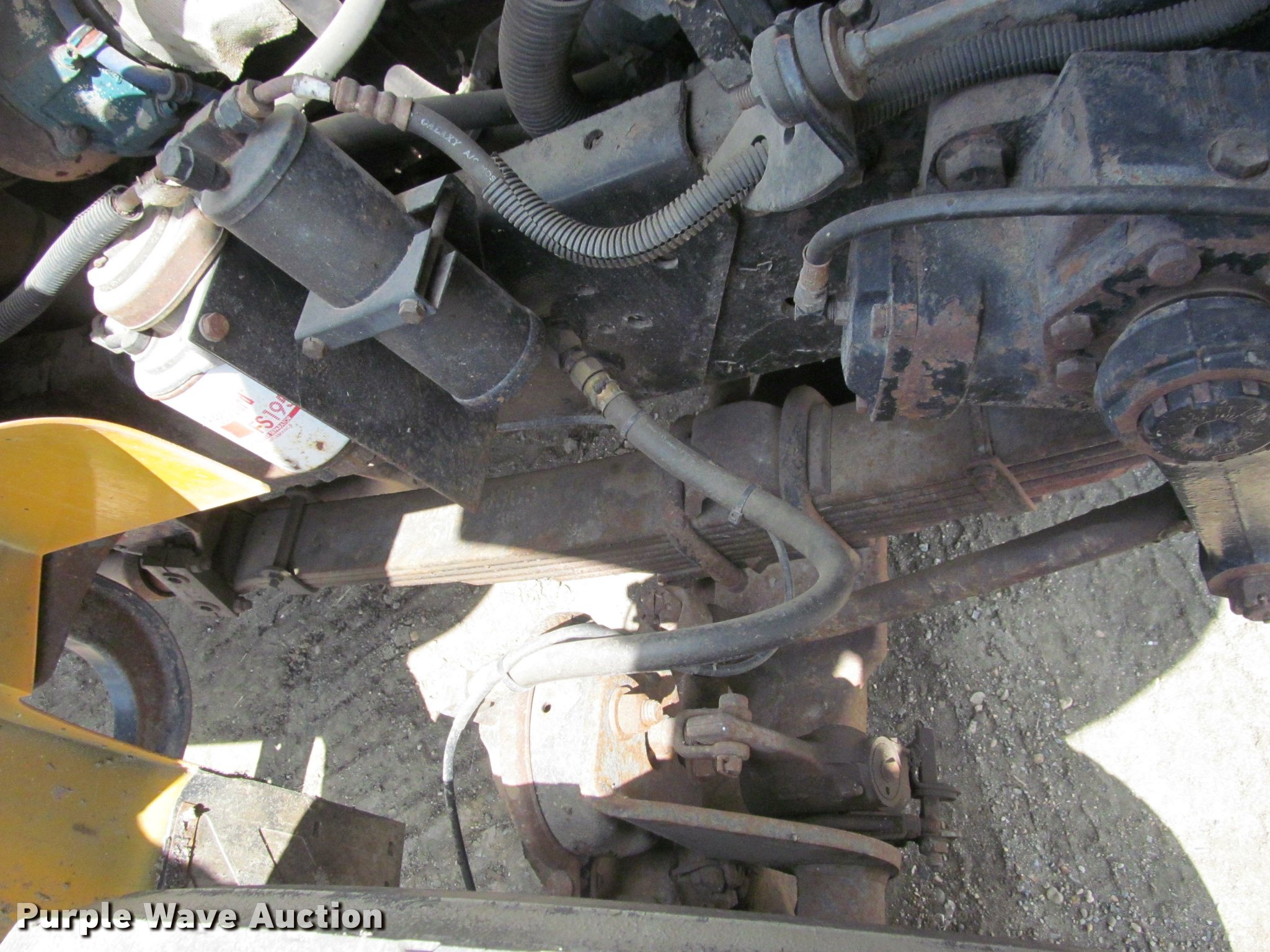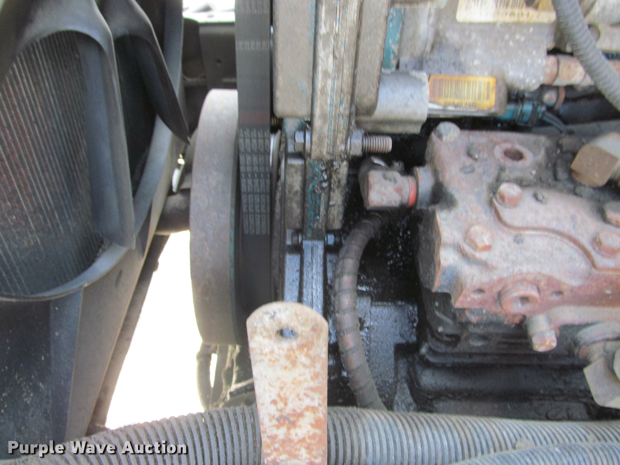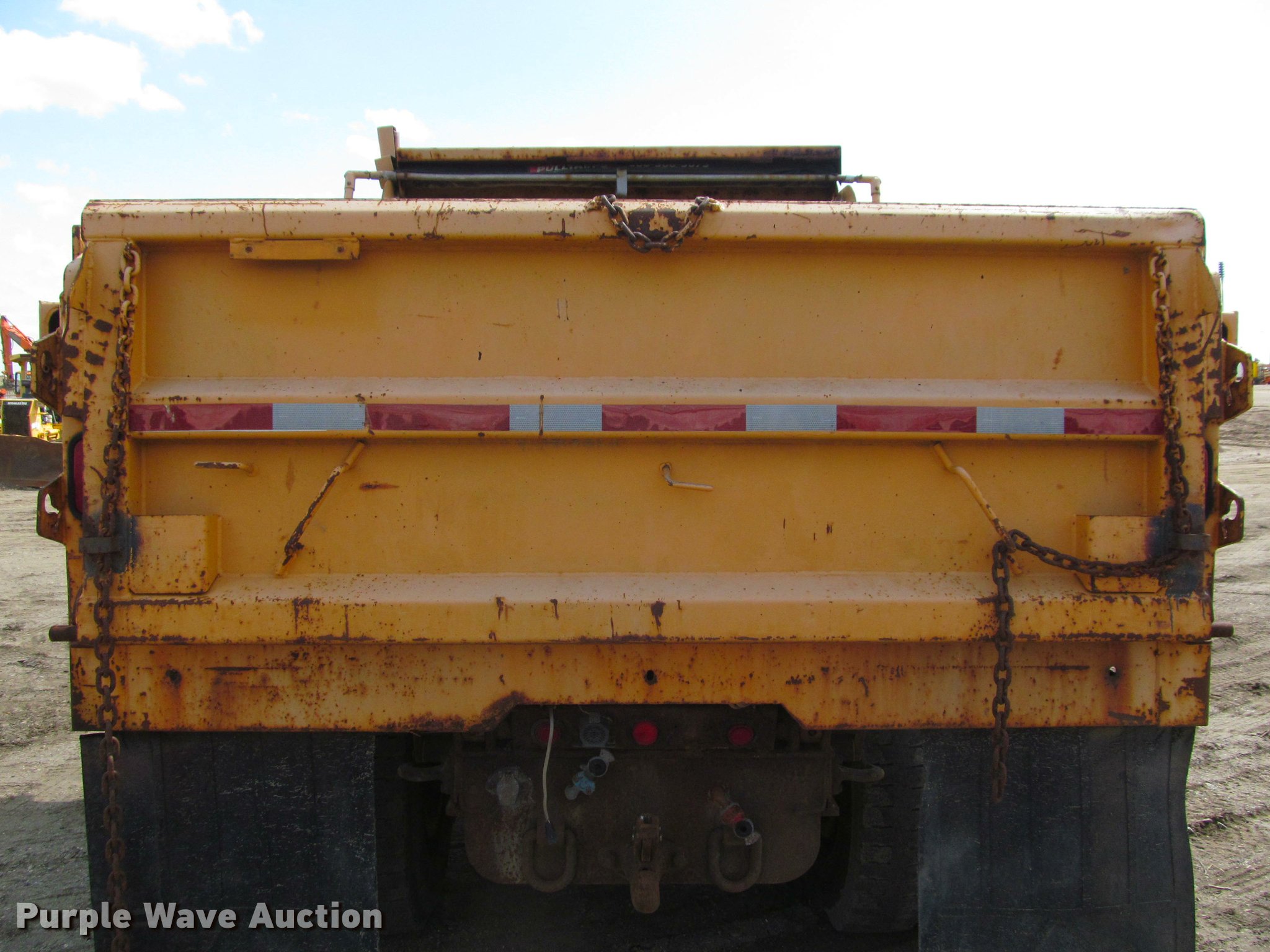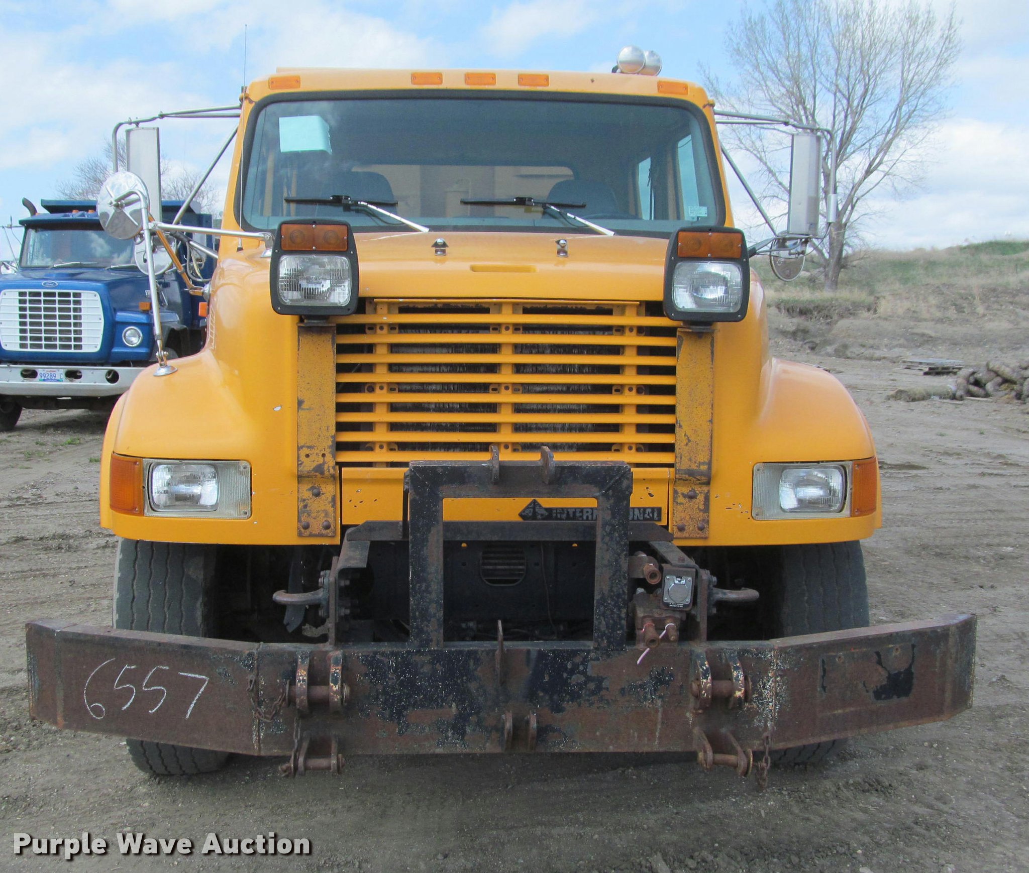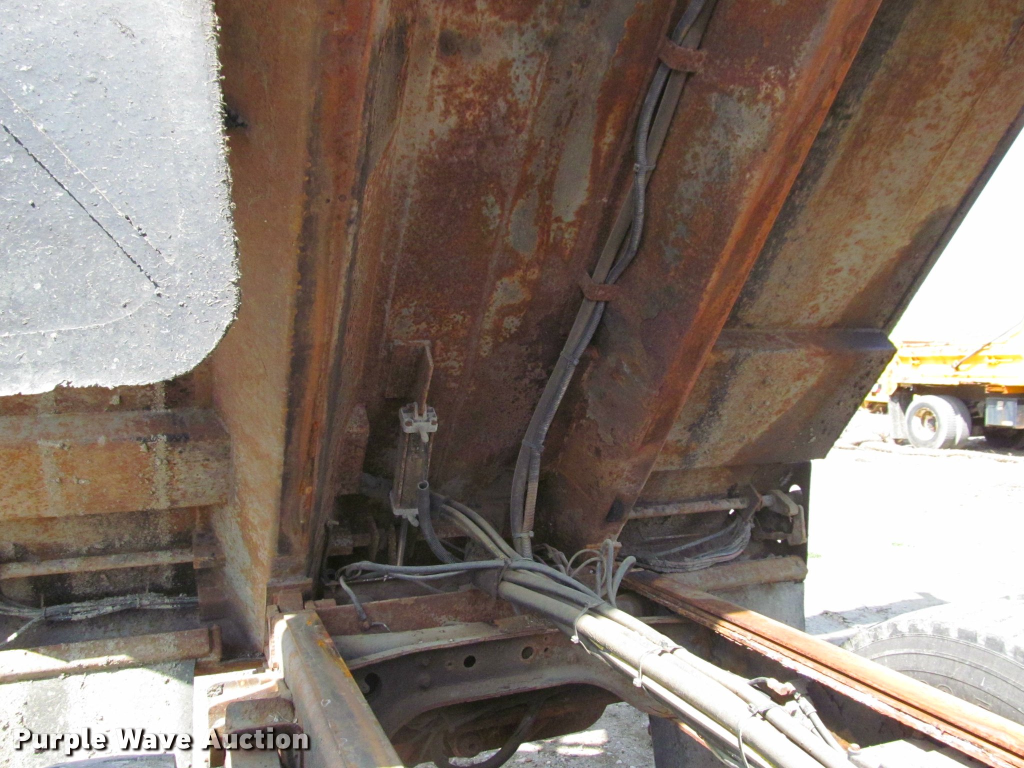 Purple Wave is selling a used Construction Dump Truck in South Dakota. This item is a 2002 International 4900 Crew Cab dump truck with the following: 169,567 miles on odometer, 11,015 hours on meter, International DT466 7.6L L6 turbo diesel engine, Allison automatic transmission, Single axle, AC and heat, Cruise, AM/FM, Power windows, Power and heated mirrors, Block heater, PTO, Galion UFT 4.5-3-90 steel dump bed, 10'L x 8'W, 26" side height, Electric rollover tarp, Bed vibrator, Air operated end gate, Single ram hoist, Dual bed mounted hydraulic remotes, Under-mounted toolbox, Serial H-21165, Plow bracket bumper, Wing plow mount, Single fuel tank, Pintle hitch, Spring suspension, Air brakes, Engine brake, 315/80R22.5 front tires, 11R22.5 rear tires, Rust, Unit# 10321