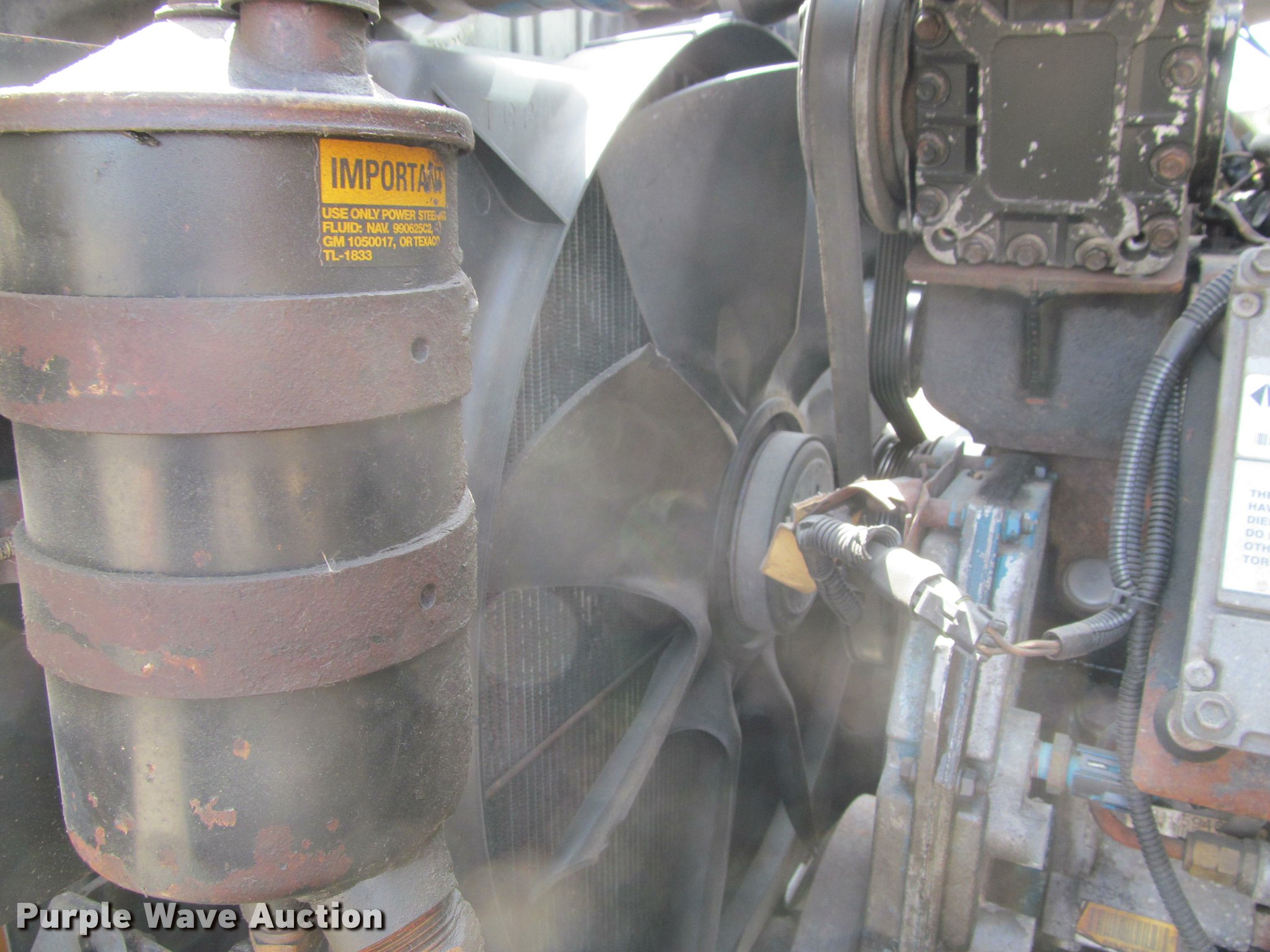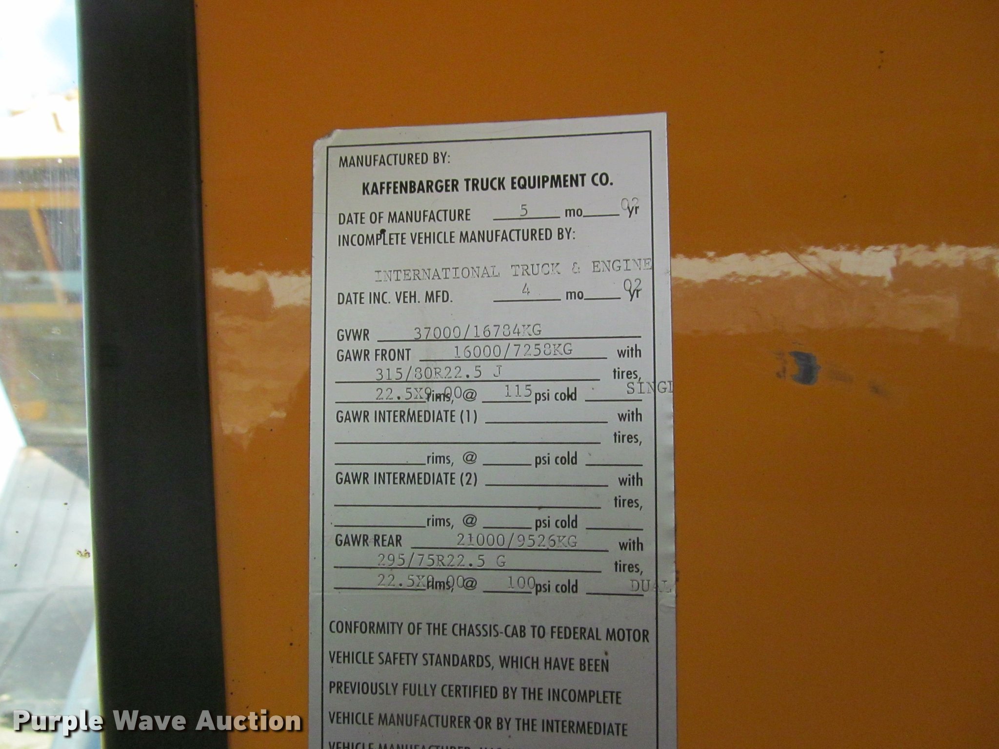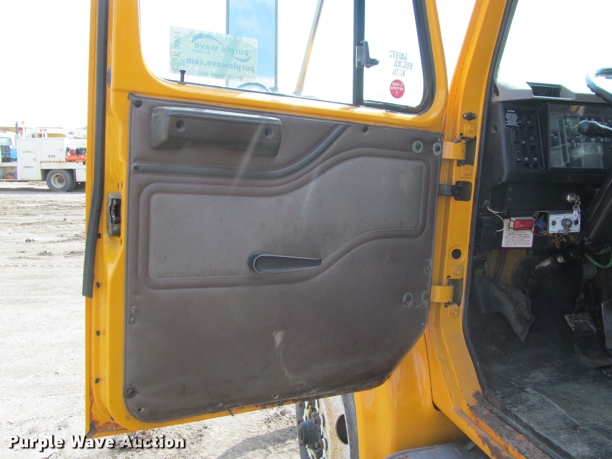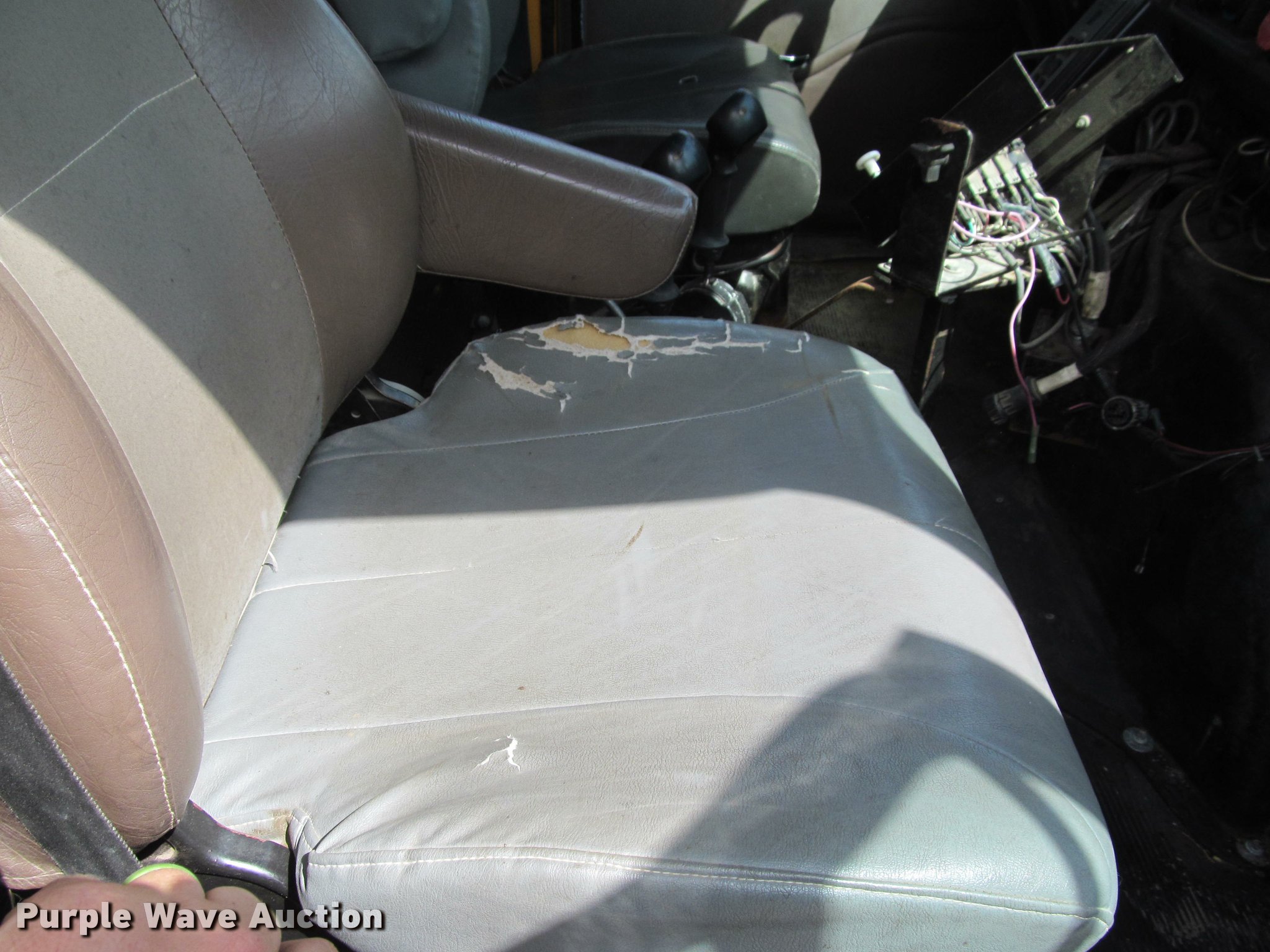 Purple Wave is selling a used Construction Dump Truck in South Dakota. This item is a 2002 International 4900 Crew Cab dump truck with the following: 169,567 miles on odometer, 11,015 hours on meter, International DT466 7.6L L6 turbo diesel engine, Allison automatic transmission, Single axle, AC and heat, Cruise, AM/FM, Power windows, Power and heated mirrors, Block heater, PTO, Galion UFT 4.5-3-90 steel dump bed, 10'L x 8'W, 26" side height, Electric rollover tarp, Bed vibrator, Air operated end gate, Single ram hoist, Dual bed mounted hydraulic remotes, Under-mounted toolbox, Serial H-21165, Plow bracket bumper, Wing plow mount, Single fuel tank, Pintle hitch, Spring suspension, Air brakes, Engine brake, 315/80R22.5 front tires, 11R22.5 rear tires, Rust, Unit# 10321