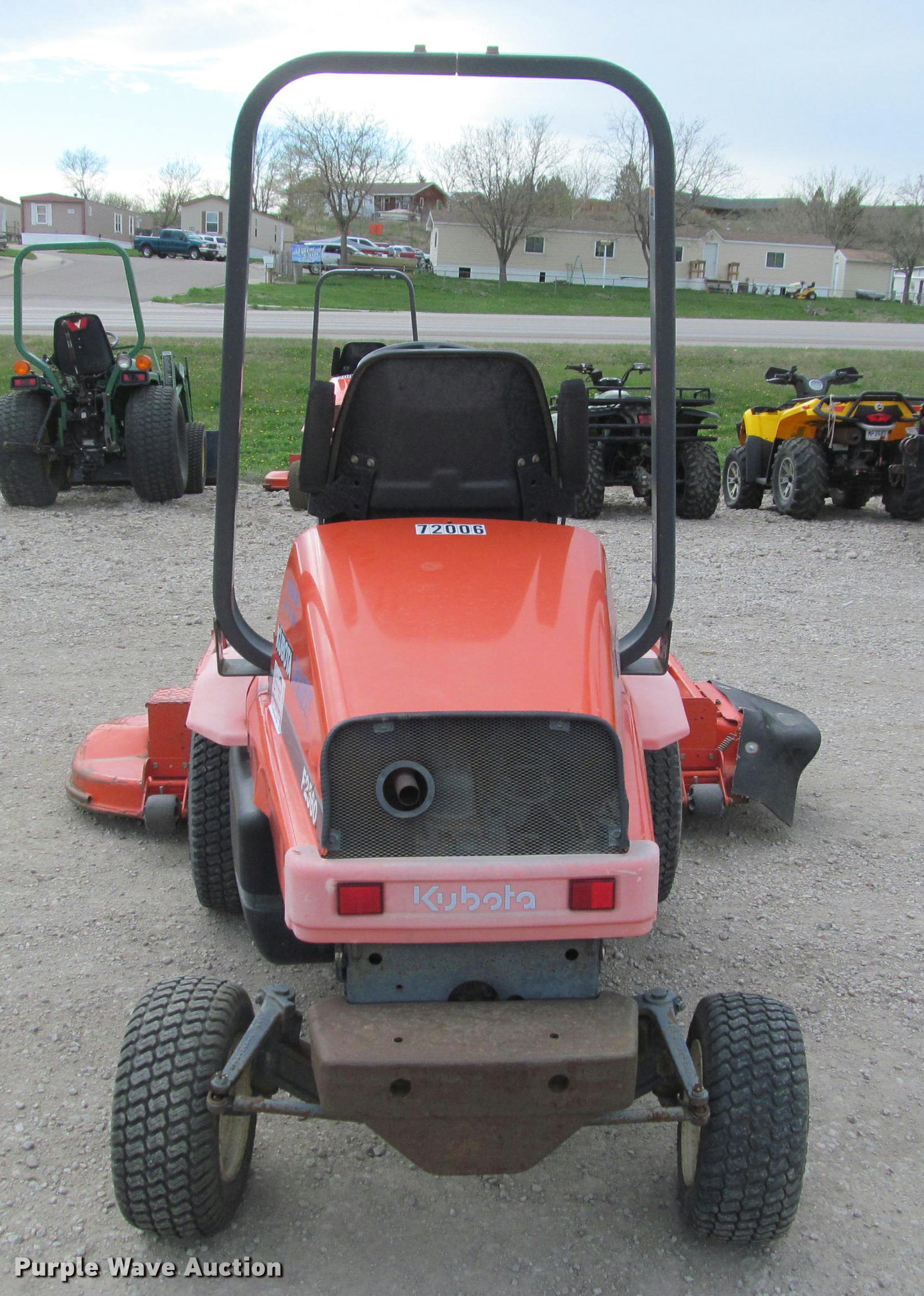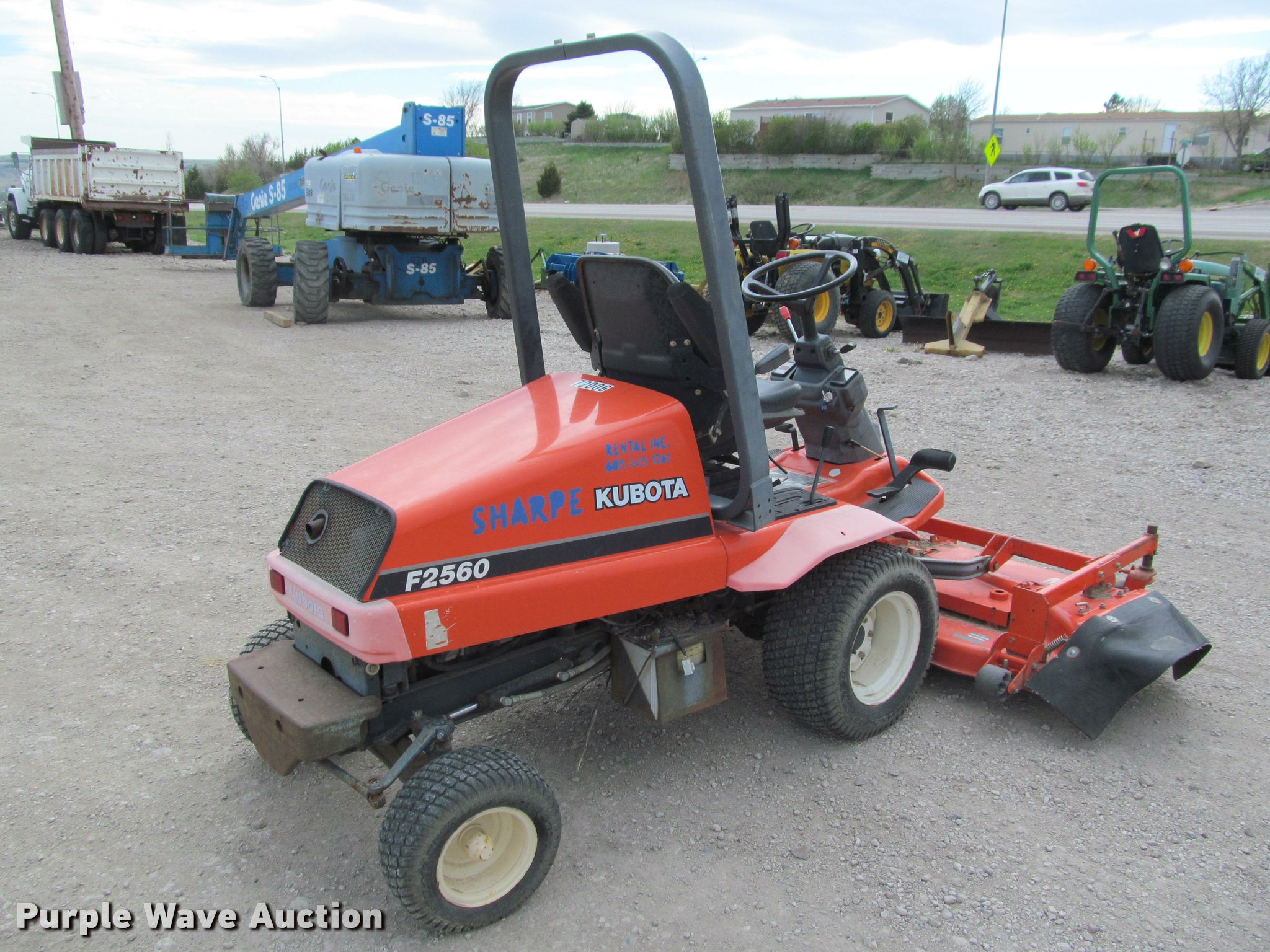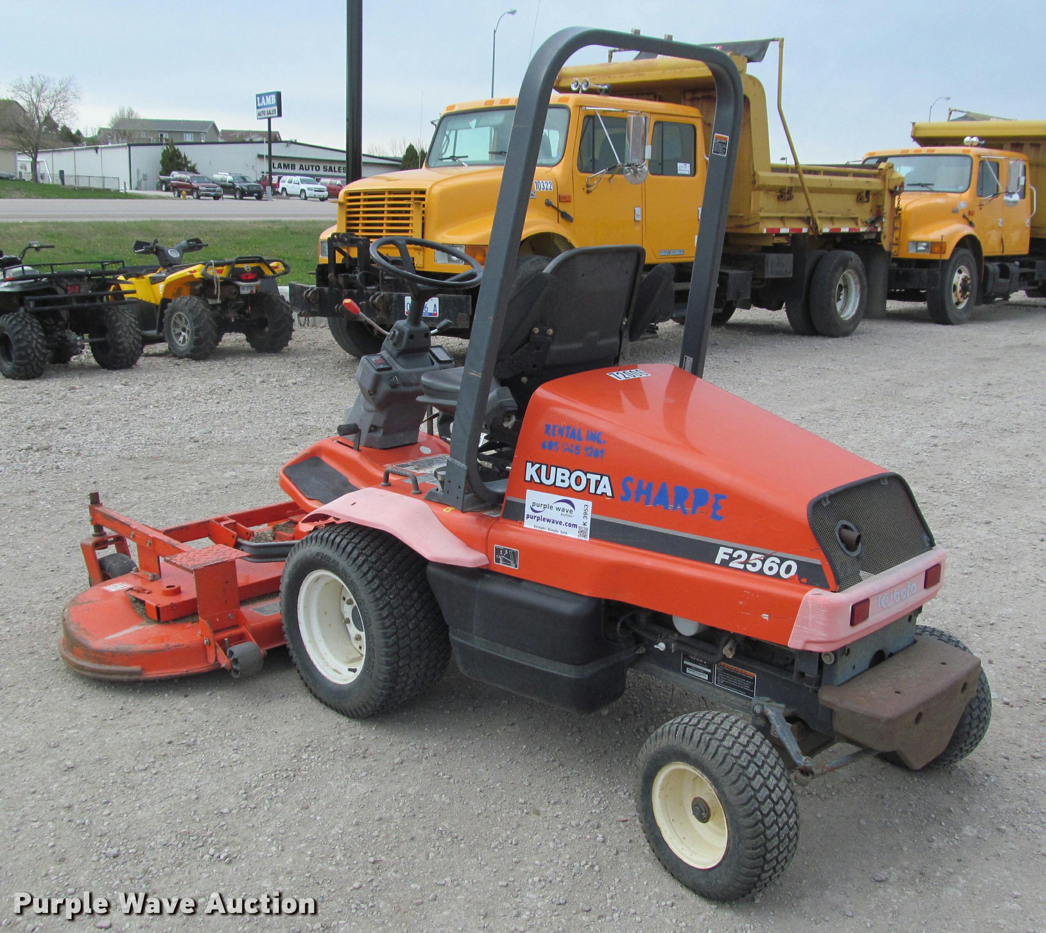 Purple Wave is selling a used Commercial Turf Mower in South Dakota. This item is a Kubota F2560E lawn mower with the following: 943 hours on meter, 72"W cutting capacity, Kubota D1105-E 1.1L three cylinder diesel engine, Hydrostatic transmission, ROPS, Model SFF-30, Serial 54366, PTO, Front work lights, 23 x 10.50-12 front tires, 16 x 6.50-8 rear tires, Serial 82536, Unit# 72006