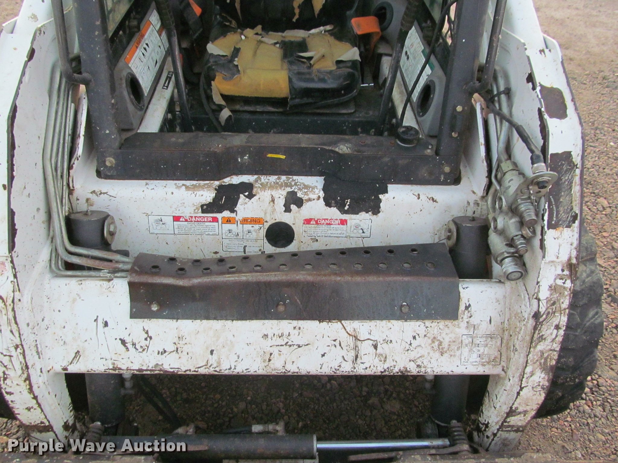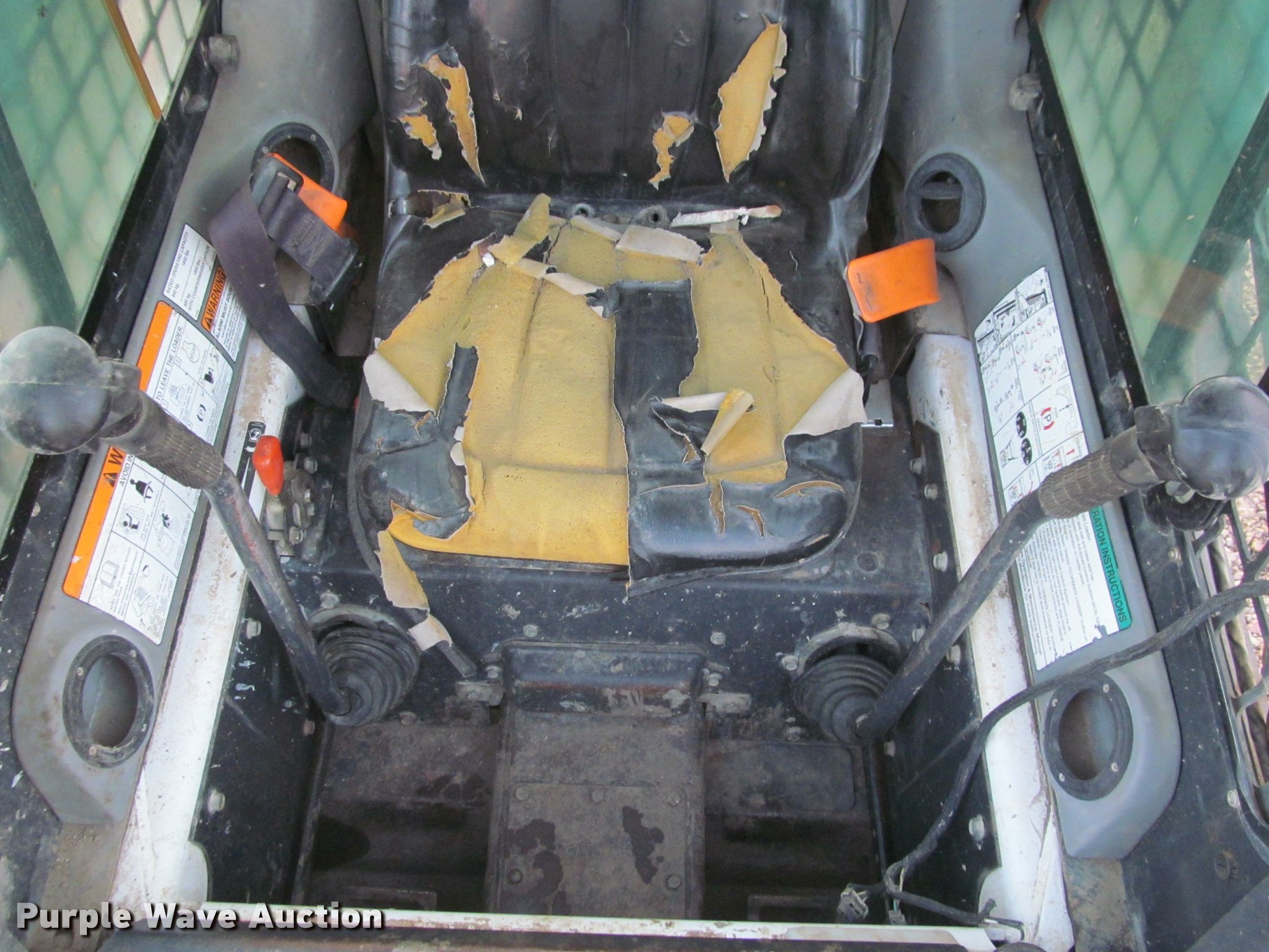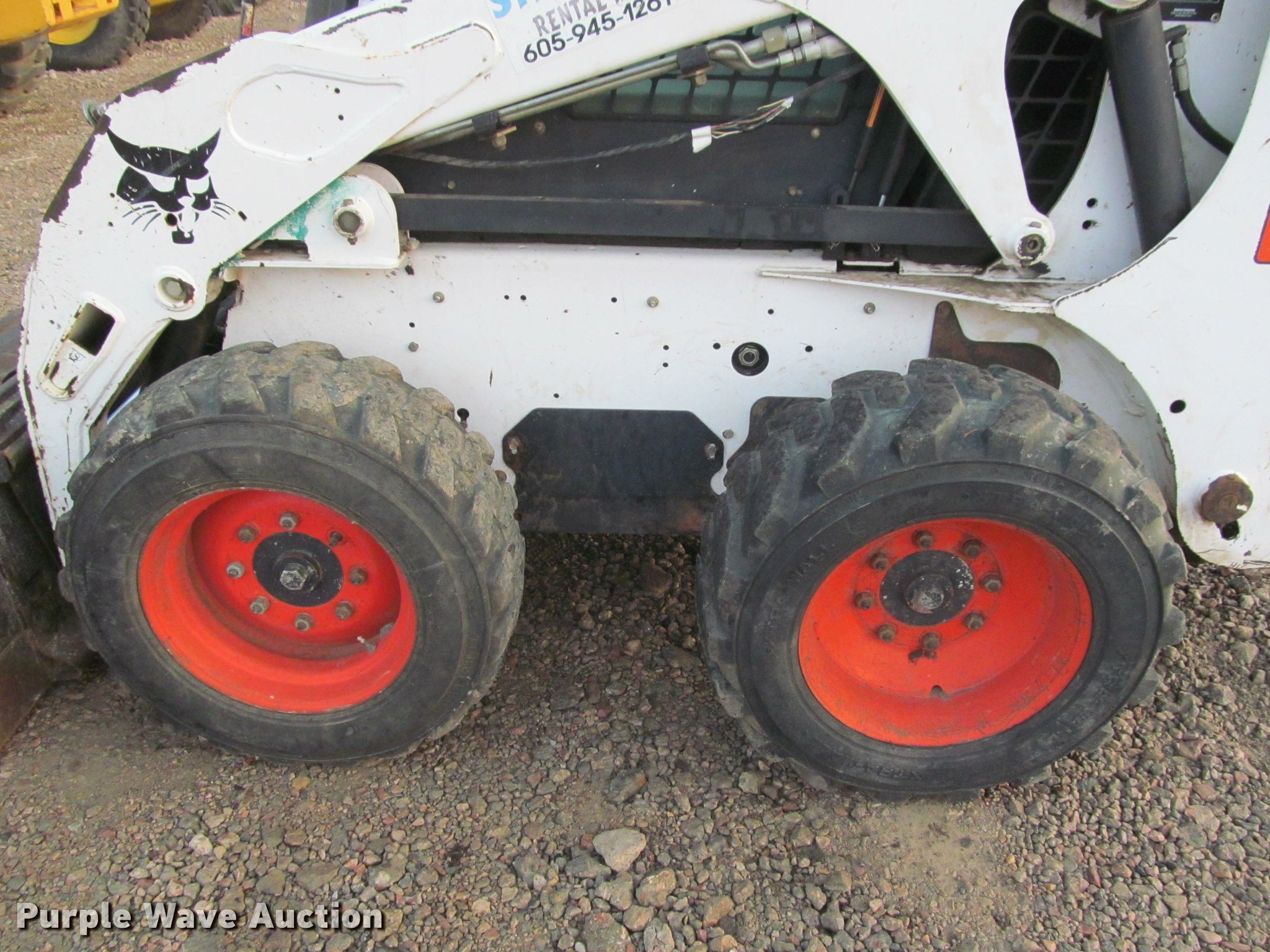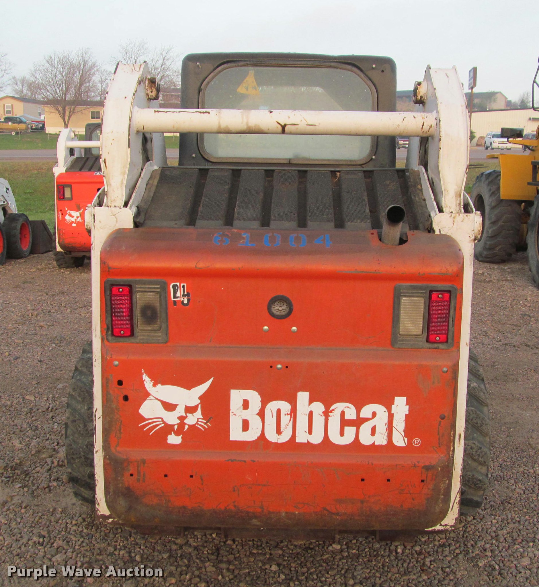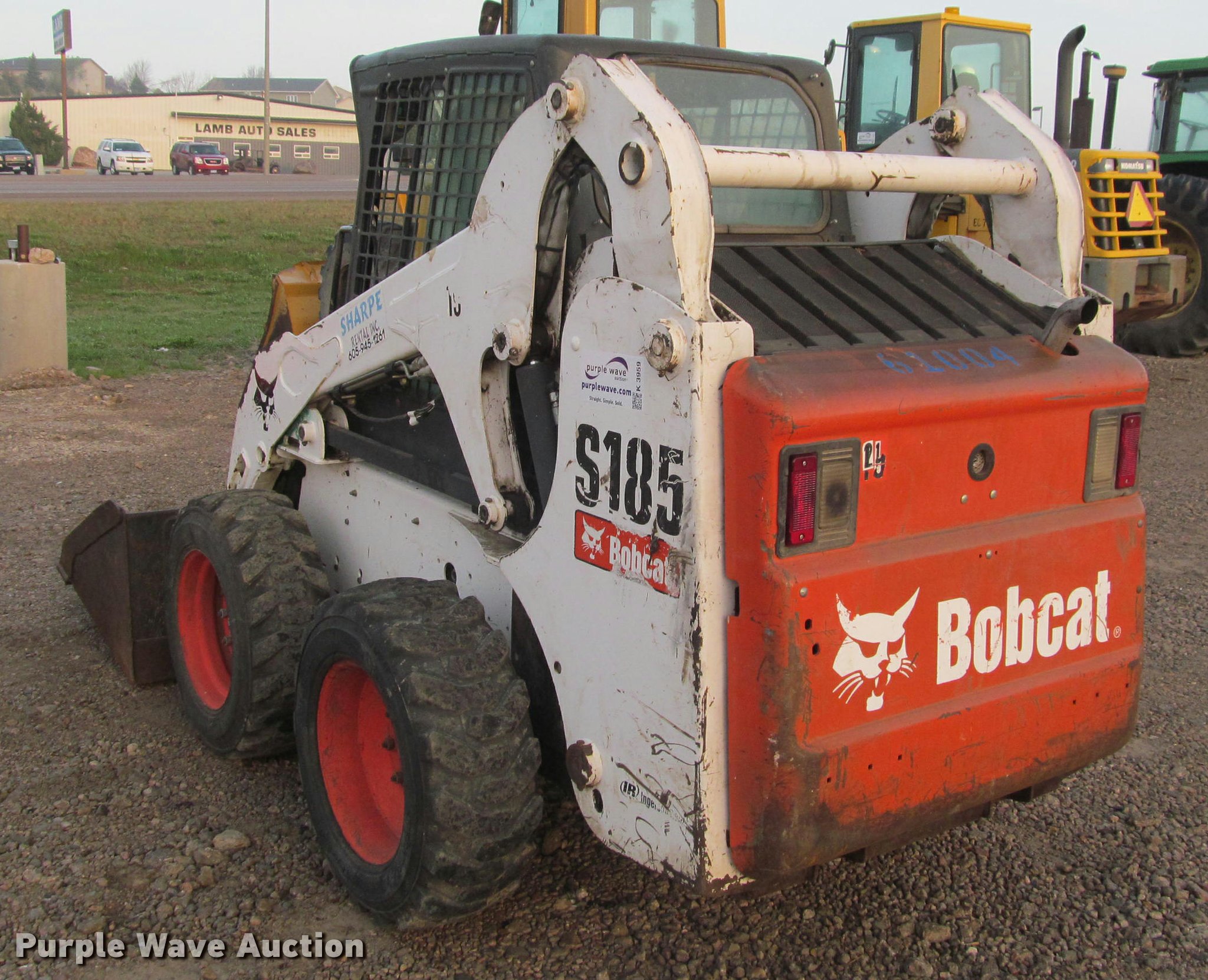 Purple Wave is selling a used Skid Steer Loader in South Dakota. This item is a 2006 Bobcat S185 skid steer with the following: 5,804 hours on meter, Four cylinder turbo diesel engine, Hydrostatic transmission, OROPS, Heat, Hand/foot controls, Suspension seat, Front work lights, Auxiliary hydraulics, Hydraulic quick coupler, 67"W bucket, Bolt-on cutting edge, Marcher 10-16.5 tires, Seat torn, Serial 530312640, Unit# 61004